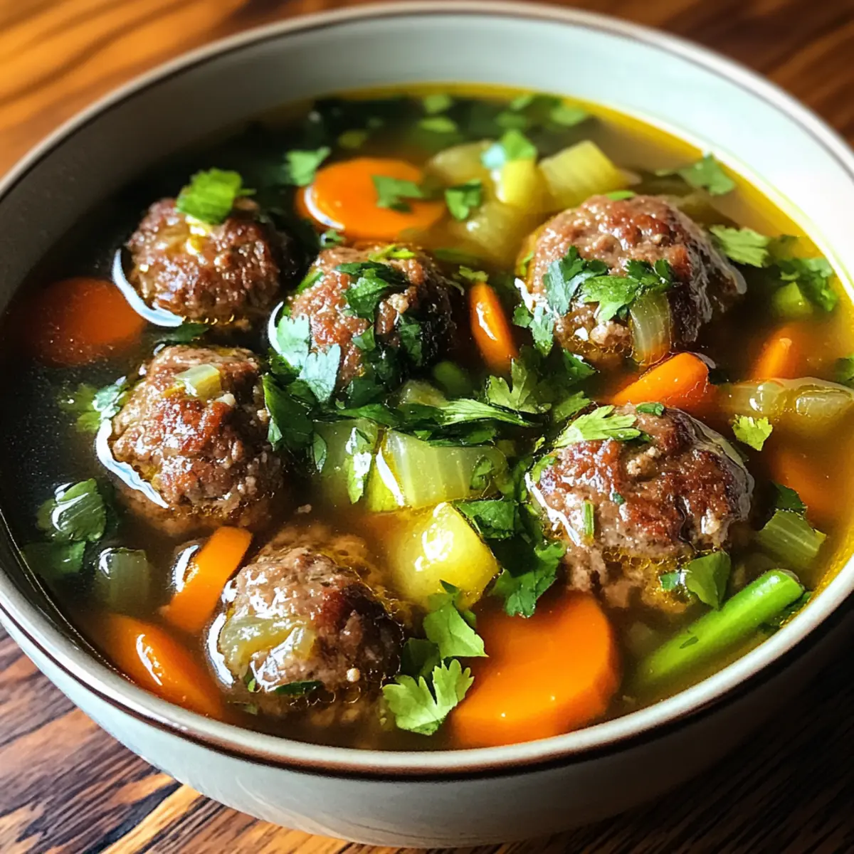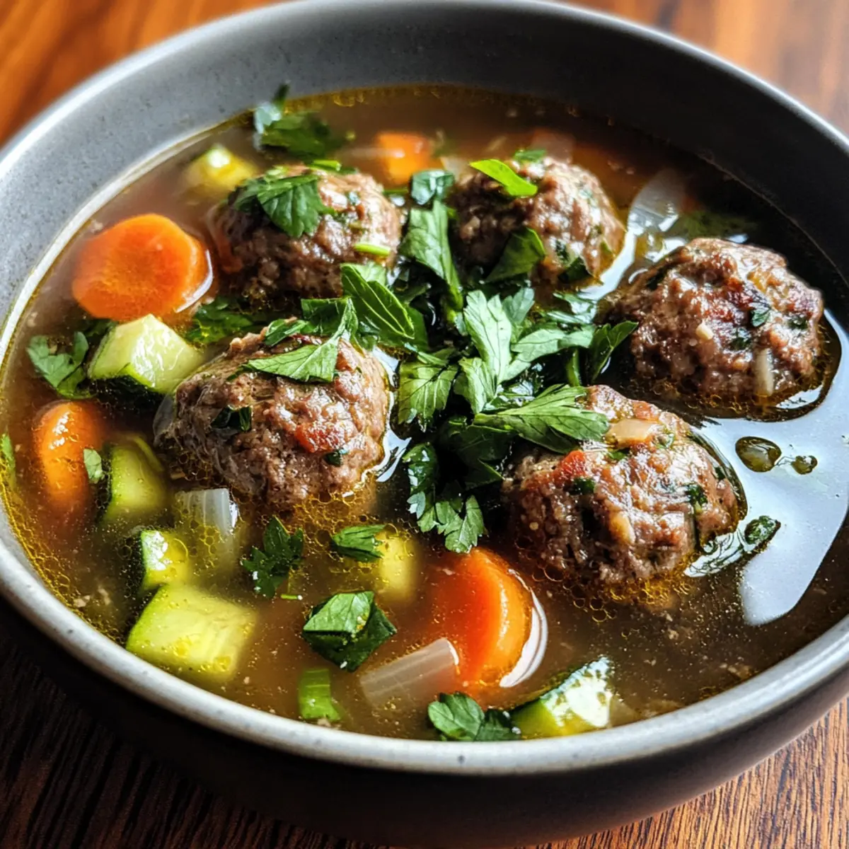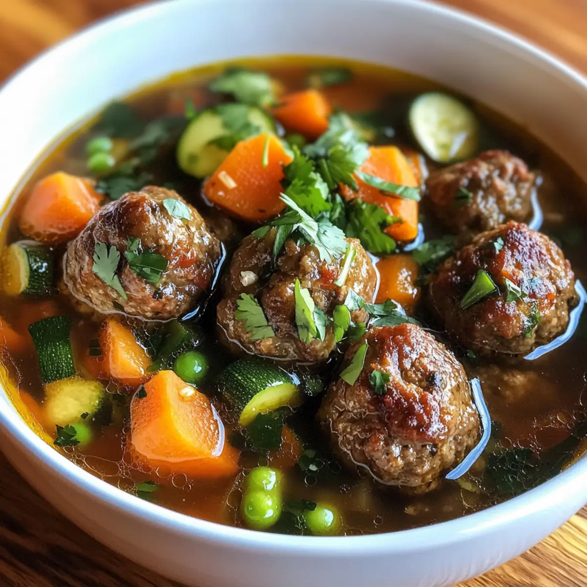 The aroma of simmering beef meatballs and vibrant vegetables dances through my kitchen, instantly whisking me back to my grandmother’s warm embrace. This is the essence of my Traditional Albondigas Soup, a cozy dish that marries comfort with tradition. Packed with hearty flavors and fresh ingredients, this one-pot meal not only nourishes the body but also warms the soul. With its healthy blend of vegetables, this soup invites you to use up whatever’s in your fridge while creating a feast that feels like a warm hug on a chilly day. So, whether you’re serving it for a casual family dinner or for friends at a gathering, this heartwarming Albondigas Soup is sure to impress. Ready to dive into a bowl of homemade goodness? Why Is Albondigas Soup a Must-Try? Amazingly Versatile: This soup can adapt to whatever fresh vegetables you have on hand, making it a true kitchen staple. One-Pot Wonder: It simplifies your cooking process, meaning less cleanup and more time spent enjoying your meal. Hearty & Healthy: Packed with nutritious ingredients, this dish is a comforting yet wholesome option. Rich in Flavor: The unique blend of spices and fresh herbs elevates every spoonful, offering a taste explosion. If you’re looking for more delicious comfort food, consider trying my Crockpot Chicken Soup for an effortless meal or the delightful flavors of Street Corn Soup for a refreshing change! Albondigas Soup Ingredients • Get ready to create a delightful bowl of comfort! For the Meatballs Ground Beef or Sirloin – Provides the base protein for meatballs; opt for 90/10 for perfect balance. White Onion – Adds aromatic depth to meatballs and soup; yellow onion works well too. Cooked White Rice – Acts as a binder for moisture; use leftover or minute rice as a substitute. Kosher Salt – Enhances all flavors; sea salt can replace it in the same quantity. Freshly Cracked Black Pepper – Adds a touch of spice to the mixture; ground black pepper is a fine alternative. Ancho Chili Powder – Infuses a rich, smoky flavor into the meatballs; regular chili powder can be used in a pinch. Ground Cumin – Offers warm, earthy notes; while there’s no direct substitute, feel free to omit if necessary. Garlic Powder – Contributes savory depth; substitute with fresh garlic if preferred (1 clove = 1/8 tsp powder). Egg – Binds the meatball ingredients together; for a vegan version, consider using a flax egg or chia egg. Minced Cilantro – Adds fresh brightness to meatballs; parsley can be a refreshing alternative. Chopped Fresh Mint – This surprising addition provides complementary flavor; it’s optional if you prefer to skip it. For the Soup Base Roma Tomatoes – Essential for a vibrant soup base; canned tomatoes are a great substitute if needed. Garlic Cloves – Infuse the soup during roasting for rich flavor; fresh garlic is preferred over powdered. Dried Chile de Arbol – Adds heat and depth; replace it with cayenne or simply omit if desired. Olive Oil – Vital for roasting tomatoes and sautéing onions; feel free to use vegetable oil as a substitute. Yukon Gold or Baby Potatoes – Adds hearty substance; sweet potatoes provide a delightful alternative. Carrots – Bring sweetness and texture to the soup; any variety will deliver similar results. Chicken or Beef Stock – Forms the core of the soup; for a vegetarian option, vegetable stock works beautifully. Bouillon Cube – Intensifies the broth’s flavor; feel free to leave it out if using homemade stock. Green Beans – Adds color and crunch; peas or corn can be used in their place if preferred. Zucchini – Provides mild flavor and texture; swap with other summer squash as desired. Chopped Cilantro (for garnish) – Brightens everything with fresh flavors; this garnish is optional based on your taste! Now that you have your ingredients ready, let’s dive into the heartwarming process of bringing this Albondigas Soup to life! Step‑by‑Step Instructions for Albondigas Soup Step 1: Prepare Meatballs In a mixing bowl, combine the ground beef, minced onion, cooked rice, spices, an egg, and chopped herbs. Mix gently until just combined, being careful not to overmix for tenderness. Preheat your broiler and line a baking sheet with parchment paper. Roll the mixture into 1-2 tablespoon meatballs and broil for 7-8 minutes until they are barely browned and cooked through. Step 2: Prepare Soup Base Preheat your oven to 425°F (218°C). On a baking sheet, toss quartered Roma tomatoes and garlic cloves with olive oil, kosher salt, and freshly cracked black pepper. Roast them in the oven for about 25 minutes, or until the tomatoes are blistered and fragrant. Carefully blend this roasted mixture with dried chile de arbol until smooth, creating your flavor-packed soup base. Step 3: Cook Soup In a large pot, heat the remaining olive oil over medium heat. Add the diced onion and sauté for about 3-4 minutes until it becomes translucent. Pour in the chicken stock, add the bouillon cube, diced carrots, and Yukon Gold potatoes, bringing everything to a gentle simmer. Once simmering, incorporate the broiled meatballs, cover, and let simmer for 30 minutes to meld the flavors perfectly. Step 4: Finish & Serve Add the zucchini and green beans to the pot, cooking for an additional 5-10 minutes until the vegetables are just tender. Taste and adjust the seasoning with extra salt and pepper as needed. Stir in chopped cilantro for freshness, and serve the hearty Albondigas Soup hot, garnished with lime wedges and alongside warm tortillas for dipping. Make Ahead Options Preparing Albondigas Soup in advance can save you precious time on busy weeknights! You can make the meatballs up to 24 hours ahead by rolling them and storing them in an airtight container in the fridge. Additionally, the soup base, including the roasted tomatoes and blended mixture, can be prepared up to 3 days in advance; simply refrigerate it in a sealed container. When you’re ready to cook, sa