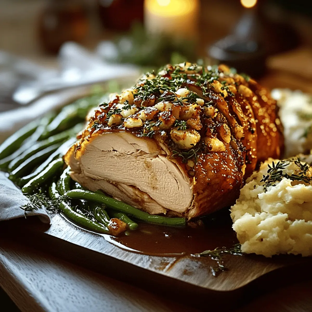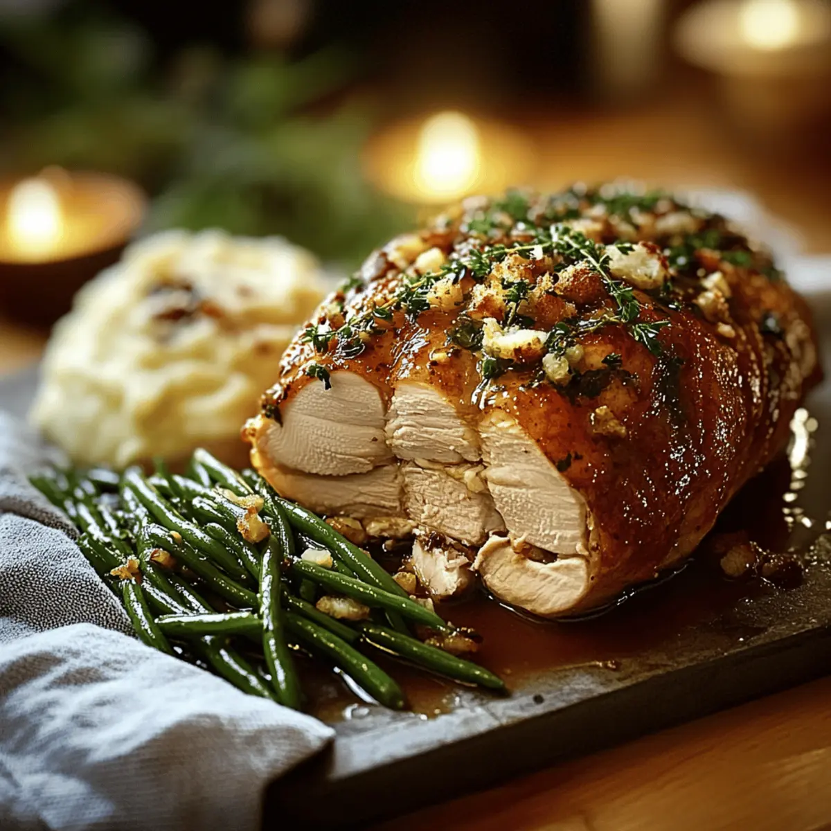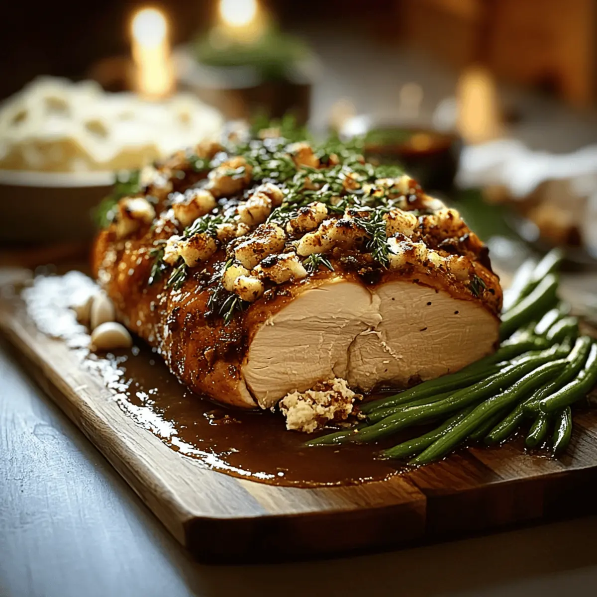 Amidst the twinkling lights and the sweet scent of pine, I found myself in the kitchen, surrounded by the comforting sounds of family laughter. It was a scene painted with love, where the centerpiece was my beloved American Christmas dinner—the ultimate holiday feast. Not only does this mouthwatering meal feature a perfectly roasted turkey, but it also comes with fluffy mashed potatoes, savory stuffing, and vibrant green beans, making it a true crowd-pleaser. One of the best perks? You can prepare several components in advance, leaving you more time to enjoy those precious moments with loved ones. With an emphasis on tradition and warmth, this festive spread not only delights the palate but also creates cherished memories around the table. Curious about how to bring this classic meal to life? Let’s dive in! Why is this Christmas dinner unforgettable? Heartwarming Tradition: This is not just a meal; it’s a gathering that embodies togetherness! Crowd-Pleasing Delight: Expect smiles as family and friends savor every component—from turkey to snacks. Easy Prep Options: Many dishes can be made ahead, giving you time to enjoy the holiday spirit. Comforting Flavors: Each bite is infused with familiar tastes, making your home feel cozy and inviting. Versatile Choices: Feel free to customize the stuffing or dessert based on family favorites. A Feast to Remember: With its inviting aromas and vibrant colors, this dinner is sure to leave lasting memories. American Christmas Dinner Ingredients For the Turkey Turkey – The star of the meal, brining enhances juiciness and flavor. Olive Oil – Use for basting to keep the turkey moist and flavorful. Salt & Pepper – Essential for seasoning, they elevate all the dish’s flavors. Herbs – Experiment with fresh thyme, rosemary, or sage for added depth. For the Stuffing Butter – Perfect for sautéing vegetables, it adds richness to the stuffing. Celery & Onions – Create a flavorful base for stuffing by sautéing until golden. Stuffing Mix – Choose between homemade or store-bought for convenience. Broth – Moistens the stuffing; chicken or vegetable broth works well. For the Green Beans Green Beans – A colorful side that provides freshness when roasted. Garlic – Enhances the green beans’ flavor, bringing out their aromatic profile. For the Mashed Potatoes Potatoes – Golden or russet varieties lead to creamy, delicious mashed potatoes. Cream & Butter – These ingredients ensure your mashed potatoes are luxuriously smooth. For Dessert Pumpkin/Pecan Pie Ingredients – Prepare for a sweet finish to your meal; classic fillings cap off the feast beautifully. This American Christmas dinner is the perfect blend of flavors and festive tradition, making it a feast everyone will cherish! Step‑by‑Step Instructions for Classic American Christmas Dinner Step 1: Preheat and Prepare the Turkey Preheat your oven to 325°F (165°C). While it heats, prepare the turkey by gently rubbing olive oil under the skin and seasoning it generously with salt, pepper, and herbs like thyme or rosemary. Place the turkey in a roasting pan and make sure to tuck the wings underneath for an even roast. This sets the stage for a juicy centerpiece for your American Christmas dinner. Step 2: Sauté the Vegetables for Stuffing In a large skillet, melt 4 tablespoons of butter over medium heat. Add 1 cup of diced celery and 1 cup of chopped onions, sautéing them until they turn golden and fragrant, about 5–7 minutes. This step infuses your stuffing with rich flavors, creating a savory base for the stuffing mix. Once done, set the skillet aside to cool slightly before mixing with the stuffing. Step 3: Prepare the Stuffing In a large mixing bowl, combine the cooled sautéed vegetables with your stuffing mix, ensuring even distribution. Gradually add 2 cups of broth, stirring until the mixture is moistened but not soggy. Use your hands to mix gently, incorporating any fresh herbs if desired. Once you achieve the right texture, transfer the stuffing into the turkey’s cavity, sprinkling any remaining mixture in a baking dish. Step 4: Roast the Turkey Place the turkey in the preheated oven and roast it for approximately 13–15 minutes per pound. Every 45 minutes, baste the turkey with pan juices to enhance its flavor and keep it moist, until the skin is golden and the meat reaches an internal temperature of 165°F (75°C). This produces a beautifully roasted turkey, the star of your American Christmas dinner. Step 5: Cook the Green Beans While the turkey is roasting, prepare the green beans. Toss 1 pound of trimmed green beans in a mixing bowl with olive oil, minced garlic, salt, and pepper. Spread them in a single layer on a baking sheet. Roast in the oven for about 20 minutes, stirring halfway through, until they are tender yet vibrant. This colorful side adds freshness to your holiday feast. Step 6: Boil and Mash the Potatoes Peel and chop about two pounds of potatoes into even chunks. Bring a large pot of salted water to a boil, then add the potatoes, cooking for about 15–20 minutes, or until fork-tender. Drain the potatoes and return them to the pot. Mash with ½ cup cream and 4 tablespoons of butter, seasoning with salt and pepper until smooth and creamy. This comforting side will surely be a crowd favorite at your American Christmas dinner. Step 7: Bake the Pie As your turkey finishes roasting, prepare your choice of pumpkin or pecan pie using pre-made or homemade crust. Fill the crust with the pie filling and bake at 425°F (220°C) for 15 minutes, then reduce the temperature to 350°F (175°C) and bake for an additional 30–40 minutes, until set. This sweet finale completes your holiday meal perfectly. Step 8: Plate and Serve Once all components are done, it’s time to plate! Carefully carve the turkey and arrange it on a large platter, garnishing with fresh herbs for a festive touch. Serve the stuffing in a separate dish, the roasted green beans in a colo