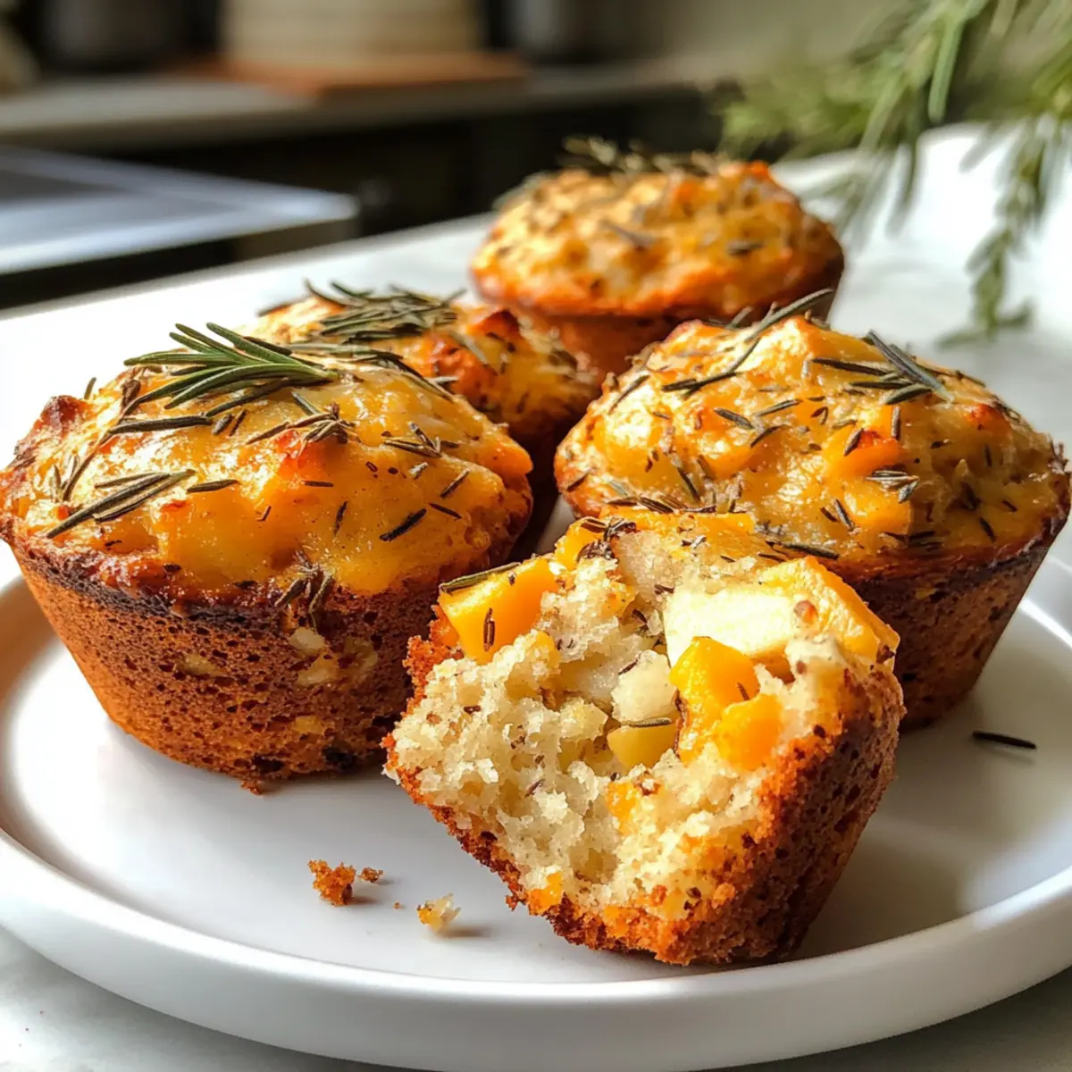 As I stood in my kitchen, the sweet aroma of fresh apples mingling with sharp cheddar filled the air, igniting memories of cozy family gatherings. That’s when I knew it was the perfect time to whip up a batch of these Apple Cheddar Muffins with Rosemary. This recipe has quickly become a favorite in our home, offering the ideal balance of savory and sweet flavors that makes them a delightful treat any time of day. Not only are they incredibly simple to prepare, but they also make for a quick breakfast or snack option that satisfies those fast-food cravings with wholesome goodness. Imagine biting into a warm muffin, the cheese melting away as you savor the hint of rosemary. Are you ready to elevate your baking game with this savory delight? Why Are These Muffins So Irresistible? Unique Flavor Blend: The combination of sweet apples and sharp cheddar gives these muffins a distinct taste that sets them apart from ordinary baked goods. Herbaceous Aroma: Fresh rosemary adds an earthy note, making every bite a fragrant delight that will warm your kitchen. Quick and Easy: Perfect for busy mornings, these muffins come together swiftly and require minimal prep time, making them a go-to for any baker. Versatile Options: Feel free to swap in other cheeses or add spices to customize your muffins. For nut lovers, incorporating walnuts or pecans can add a delightful crunch. Perfect for Any Occasion: Enjoy these muffins as a warm breakfast, a tasty snack, or pair them with a bowl of soup for a comforting meal. Make sure to check out Cream Cheese Muffins for another delightful twist! Apple Cheddar Muffin Ingredients Get ready to fall in love with these savory muffins! For the Batter All-Purpose Flour – Provides structure; substitute with whole wheat flour for a nuttier flavor. Baking Powder – Acts as a leavening agent for fluffiness; ensure it’s fresh for optimal rise. Sugar – Adds a hint of sweetness to balance the savory flavors; can be reduced or replaced with honey. Salt – Enhances all flavors in the muffin; use kosher or sea salt for a cleaner taste. Fresh Rosemary – Adds a unique herbaceous note; dried rosemary can be substituted, but use less due to stronger flavor. Sharp Cheddar Cheese – Brings creaminess and depth; substitute with Gruyère for a milder taste. Large Egg – Binds ingredients together and aids in rising; for a vegan option, use a flax egg. Milk – Provides moisture; can be substituted with almond milk for a dairy-free version. Melted Unsalted Butter – Adds richness; replace with olive oil for a healthier option. Apples – Offers sweetness and moisture; any variety works, but Ambrosia apples are highly recommended for their flavor. Optional Enhancements Nuts or Seeds – Add walnuts or sunflower seeds for extra crunch and nutrition. Spices – Consider adding a dash of cinnamon or nutmeg for extra warmth. Step‑by‑Step Instructions for Apple Cheddar Muffins Step 1: Preheat the Oven Start by preheating your oven to 375°F (190°C). While the oven is warming up, prepare a 12-cup muffin pan by greasing it lightly or lining it with muffin liners. This ensures that your Apple Cheddar Muffins will release easily after baking, giving them that perfect golden-brown finish. Step 2: Mix the Dry Ingredients In a large mixing bowl, whisk together 2 cups of all-purpose flour, 2 teaspoons of baking powder, 2 tablespoons of sugar, 1 teaspoon of salt, and 1 tablespoon of chopped fresh rosemary. Keep whisking until everything is well combined, and the mixture is light and airy. The aromatic rosemary mingling with the flour will fill your kitchen with a warm scent, setting the stage for delicious muffins. Step 3: Add Cheese to the Mixture Stir in 1 cup of shredded sharp cheddar cheese into your dry mixture, ensuring even distribution. This step is vital as it gives your Apple Cheddar Muffins a delightful creamy zing. Toss gently, and take a moment to admire the vibrant colors as the cheese blends harmoniously with the flour, making for a tempting base. Step 4: Combine Wet Ingredients In a separate bowl, beat together 1 large egg, 3/4 cup of milk, and 1/4 cup of melted unsalted butter until smooth. After that, fold in 1 cup of chopped apples—any variety you prefer. This moist mixture will become the heart of your muffins, bringing sweetness and moisture that perfectly complements the savory elements. Step 5: Combine the Mixtures Make a well in the center of your dry ingredients and pour the apple mixture into it. Gently fold the ingredients together until just moistened, being careful not to overmix. Overmixing can lead to dense muffins, so stop as soon as you see no dry flour, and allow the muffin batter to remain a bit lumpy. Step 6: Fill the Muffin Cups Using a spoon or ice cream scoop, distribute the batter evenly into the prepared muffin cups, filling each about two-thirds full. This ensures that your Apple Cheddar Muffins will rise perfectly without overflowing. As you drop in the batter, visualize the fluffy, cheesy delights you’ll soon be enjoying! Step 7: Bake to Perfection Place the muffin pan in the preheated oven and bake for 30 minutes. Check for doneness by inserting a toothpick into the center of the muffins—if it comes out clean or with a few crumbs, they’re ready to be pulled from the oven. You’ll be greeted by a warm, aromatic sensation that fills your kitchen with an inviting scent. Step 8: Cool and Serve Once baked, remove the muffins from the oven and let them cool in the pan for about 5 minutes. Then, transfer them to a wire rack to cool completely. This will help them maintain their perfect texture. Now, as they cool, prepare to enjoy these scrumptious Apple Cheddar Muffins at breakfast or as a delightful snack! Expert Tips for Apple Cheddar Muffins Don’t Overmix: Avoid dense muffins by mixing the batter only until just moistened—lumps are fine! Room Temperature Ingredients: Ensure your egg, milk, and butter are at room temperature for a smoo