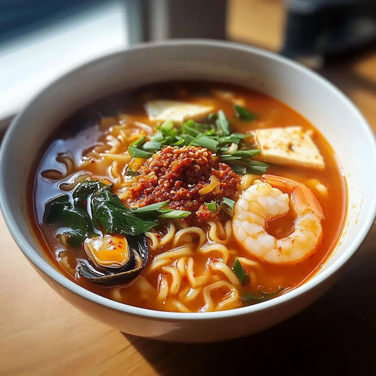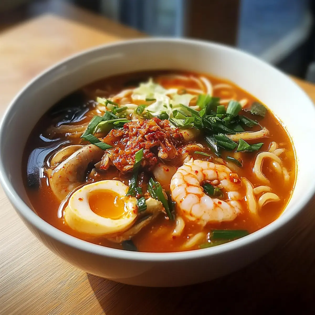As the tantalizing aroma of simmering seafood fills my kitchen, I can’t help but feel a wave of comfort wash over me. Today, I’m thrilled to share my take on Authentic Korean Jjamppong Soup, a spicy seafood noodle delight that’s perfect for those chilly nights when you crave a little warmth in your belly. This hearty dish not only satisfies your taste buds but also offers a nutritious balance with its fresh ingredients and vibrant flavors. Plus, the beauty of Jjamppong lies in its adaptability: you can easily make it gluten-free or whip up a delicious vegetarian variation without losing any of its signature spice and depth. Have you ever tasted a bowl that wraps you in cozy comfort? Let’s dive in and create some magic together! What Makes Jjamppong So Irresistible? Bold flavors: This soup is a delightful dance of spice and aroma, brought to life by gochugaru and gochujang. Versatile options: Customize your bowl to suit your preferences—go gluten-free or vegetarian without compromising on flavor, just like in my Street Corn Soup. Fresh ingredients: Each spoonful bursts with tender seafood and vibrant vegetables, ensuring a wholesome, nutritious meal. Crowd-pleaser: Ideal for cozy gatherings, this dish warms hearts and bellies, making it perfect for any occasion. Easy to prepare: Still a weeknight-friendly recipe, Jjamppong comes together quickly, perfect after a busy day. Enjoy a comforting bowl of Jjamppong that evokes the warmth of home, just like with my beloved Crockpot Chicken Soup. Authentic Korean Jjamppong Soup Ingredients • Get ready to savor a vibrant bowl filled with bold flavors! For the Broth Seafood stock – Enhances umami flavors; homemade is best, or use vegetable broth for a vegetarian option. Garlic – Provides aromatic depth; always use fresh for the best flavor. Ginger – Adds a warm spice; fresh ginger is notably more fragrant. For the Noodles and Seafood Korean wheat noodles – The classic choice, but rice noodles work for gluten-free variations. Shrimp – Fresh shrimp adds protein and a sweet seafood flavor; always opt for high quality. Squid – Offers a unique texture; make sure not to overcook for tenderness. Mussels – Contributes a briny depth of flavor; freshness is key for this ingredient. For the Spice and Seasoning Gochugaru (Korean red pepper flakes) – Brings heat and vibrant color to the soup; adjust based on your spice tolerance. Gochujang (Korean red chili paste) – Adds sweetness and complexity; tailor the amount to your liking. Soy sauce – Provides saltiness and depth; ensure it’s gluten-free if needed. Sesame oil – Adds a nutty finish; optional but highly recommended for authenticity. For the Vegetables Vegetables (e.g., cabbage, carrots, onion) – Rounds out the dish with nutrients; feel free to substitute based on seasonal availability. Ready to dive into warmth and flavor with this Authentic Korean Jjamppong Soup? Let’s make some cozy memories in the kitchen! Step‑by‑Step Instructions for Authentic Korean Jjamppong Soup Step 1: Prepare the Broth In a large pot, heat 4 cups of seafood stock over medium heat. Add 4 minced garlic cloves and 1 tablespoon of freshly grated ginger, then toss in 2 cups of chopped mixed vegetables like cabbage and carrots. Bring the mixture to a gentle simmer for about 10 minutes, stirring occasionally, until the vegetables are tender and aromatic. Step 2: Add Seafood Once your broth is ready, it’s time to boost the flavor! Carefully add 1 cup of peeled shrimp, 1 cup of sliced squid, and 1 cup of cleaned mussels to the simmering broth. Cook for 5-7 minutes or until the shrimp turn pink and the mussels open up, ensuring not to overcook for that perfect tender texture. Step 3: Cook the Noodles Meanwhile, in a separate pot, bring water to a boil and cook 8 ounces of Korean wheat noodles according to package instructions, usually around 7-10 minutes. Once cooked, drain and rinse the noodles under cold water to stop the cooking process. Set them aside, ready to mingle with that delicious broth. Step 4: Combine Noodles and Spices Gently add the cooked noodles to the seafood broth, stirring well to coat the noodles with all those wonderful flavors. Now, sprinkle in 2 tablespoons of gochugaru and add 2 tablespoons of gochujang according to your spice preference. Let the mixture simmer for an additional 5 minutes, allowing the noodles to absorb the rich broth. Step 5: Season to Taste Stir in 2 tablespoons of soy sauce and 1 tablespoon of sesame oil for that authentic flavor finish. Taste the soup and adjust the seasoning as preferred; perhaps more soy sauce or a hint more gochugaru if you crave extra spice. The soup should have a perfect balance of heat and umami goodness. Step 6: Serve Hot Ladle the steaming Authentic Korean Jjamppong Soup into bowls and garnish with chopped green onions or fresh cilantro for a vibrant touch. Enjoy it immediately, allowing the comforting warmth and enticing aromas to envelop you on a chilly evening. What to Serve with Authentic Korean Jjamppong Soup Imagine indulging in a medley of flavors that perfectly complements your hearty bowl of spicy noodle soup. Steamed Rice: A classic pairing that absorbs the aromatic broth, enhancing each delightful spoonful of Jjamppong. Korean Kimchi: Crunchy, tangy, and spicy, this famous side dish adds a refreshing contrast to the richness of the soup. Pickled Vegetables: The sharpness of pickled radish or cucumber provides a zesty palate cleanser after each flavorful bite. Savory Dumplings: Steamed or fried, these filled pockets add a delightful textural contrast and make your meal feel extra special. Crispy Asian Salad: Fresh greens with a sesame dressing provide a light, crunchy balance, elevating your dining experience. Cold Noodle Salad: A chilled counterpart with soy sauce and vegetables serves as a refreshing twist to round out the meal. Grab your favorite beverage, like a cold beer or lightly sweetened iced tea, and revel