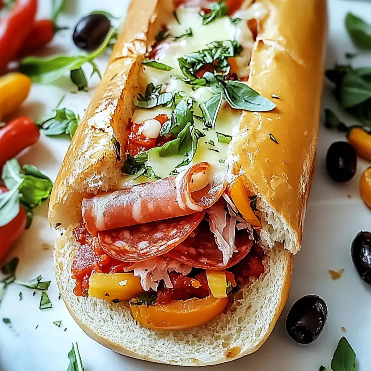 The aroma wafting from the oven as I pull out a tray of Baked Italian Grinder Sandwiches transports me straight to a bustling Italian deli. With layers of savory salami, smoky ham, and gooey mozzarella nestled in a perfectly toasted roll, these sandwiches are my go-to for a delightful dinner or a game-day feast. Fast food has its moment, but let’s face it—nothing beats the comfort of a homemade meal that’s both easy to whip up and entirely customizable. Plus, whether it’s a family gathering or a casual night in, this recipe is sure to please every palate at the table. Want to discover how to elevate your sandwich game? Let’s dive in! Why Choose Baked Italian Grinder Sandwiches? Ultimate Comfort: Warm, melty cheese and savory meats create a satisfying bite that wraps you in layers of deliciousness. Easy: With a simple baking process, these sandwiches can be whipped up in no time, perfect for busy evenings or unexpected guests. Customizable: Experiment with your favorite fillings! Substitute deli meats for Baked Jamaican Pineapple or add extra veggies to suit your taste. Crowd-Pleaser: Ideal for game days or family gatherings, their rich flavors cater to all appetites—everyone will be reaching for seconds! Satisfying Leftovers: The sandwiches can be made ahead and stored, making it easy to enjoy delicious homemade bites anytime. Baked Italian Grinder Sandwiches Ingredients • Here’s what you need to create delicious Baked Italian Grinder Sandwiches! For the Bread Italian Sub Rolls – A sturdy base providing a crispy, golden crust; alternatives include hoagie rolls, baguettes, or ciabatta. Unsalted Butter, melted – Adds richness and a golden finish to the bread. For the Seasoning Garlic Powder – Essential seasoning that enhances overall flavor. Onion Powder – Adds savory depth to your sandwich. Dried Oregano – A classic Italian herb balancing richness with earthiness. Dried Basil – Infuses a slightly sweet, peppery flavor that complements the meats. Red Pepper Flakes – Offers a kick of heat; feel free to adjust based on your preference. Salt – Enhances all flavors in your sandwich. Black Pepper – Adds a subtle sharpness to lift the dish. For the Filling Deli-Sliced Salami – Provides a rich and slightly spicy meat layer. Deli-Sliced Ham – Adds sweetness and smokiness to balance the flavors. Deli-Sliced Pepperoni – Bold and tangy, infusing classic Italian flavor. Deli-Sliced Mozzarella Cheese – Creamy, melty cheese that contributes a comforting texture. Deli-Sliced Provolone Cheese – Slightly sharp and smoky, enhancing richness. Grated Parmesan Cheese – Crispy topping that adds a nutty flavor to your sandwiches. Roasted Red Peppers, sliced – Sweet and smoky, brightening the overall flavor profile. Sliced Black Olives – A bitter-salty bite that balances richness beautifully. Banana Peppers, sliced – Tangy crunch that elevates the overall flavor experience. Fresh Basil Leaves – Adds a bright, herbal note that enhances the Italian flavors. With these ingredients in hand, you’re well on your way to creating the ultimate Baked Italian Grinder Sandwiches that will surely impress family and friends! Step‑by‑Step Instructions for Baked Italian Grinder Sandwiches Step 1: Preheat the Oven Begin by preheating your oven to 375°F (190°C). This temperature is essential for achieving that crispy, golden crust on your Baked Italian Grinder Sandwiches. Make sure to give the oven enough time to heat up while you prepare the ingredients, so everything bakes evenly and beautifully. Step 2: Prepare the Rolls Take your Italian sub rolls and slice them in half lengthwise, leaving a hinge at the bottom to hold everything together. Arrange the rolls cut side up on a large baking sheet lined with parchment paper, ensuring they have enough space for even baking and toasty edges. Step 3: Mix the Seasoned Butter In a small bowl, melt the unsalted butter and mix in garlic powder, onion powder, dried oregano, dried basil, red pepper flakes, salt, and black pepper. Stir the mixture until all the spices are well combined. This seasoned butter will infuse your Baked Italian Grinder Sandwiches with delightful flavors. Step 4: Brush the Rolls Using a pastry brush, generously coat the cut sides of the rolls with the seasoned butter mixture. Make sure each roll is evenly covered, as this will enhance the moisture and flavor while they bake, giving you that irresistible crunch. Step 5: Layer the Meats Start layering your deli-sliced meats on the bottom half of each sandwich. Begin with salami, followed by slices of ham and then pepperoni. This tri-layer of meats not only creates a wonderful texture but also packs your sandwiches with authentic Italian flavors. Step 6: Add the Cheeses Spread a generous amount of mozzarella cheese over the pepperoni layer, followed by provolone cheese slices. The combination of these cheeses will melt beautifully as your sandwiches bake, creating a comforting, gooey texture synonymous with classic Italian dishes. Step 7: Top with Toppings Sprinkle grated Parmesan cheese on top of the provolone layer, then add roasted red peppers, sliced black olives, banana peppers, and fresh basil leaves as desired. These toppings bring a burst of flavors and colors to your Baked Italian Grinder Sandwiches, making them even more delightful. Step 8: Bake the Sandwiches Place the prepared baking sheet in the preheated oven and bake for 10-12 minutes. Keep an eye on them—you’re looking for melted cheese and bread that is golden brown along the edges. This is when your sandwiches are ready to come out of the oven! Step 9: Cool and Slice Once baked, allow the Baked Italian Grinder Sandwiches to cool for a minute or two. This brief cooling period helps avoid burning your fingers. Then, slice the sandwiches into portions for serving, making them easy to grab and enjoy! Step 10: Serve and Enjoy Serve your delicious Baked Italian Grinder Sandwiches warm, perhap