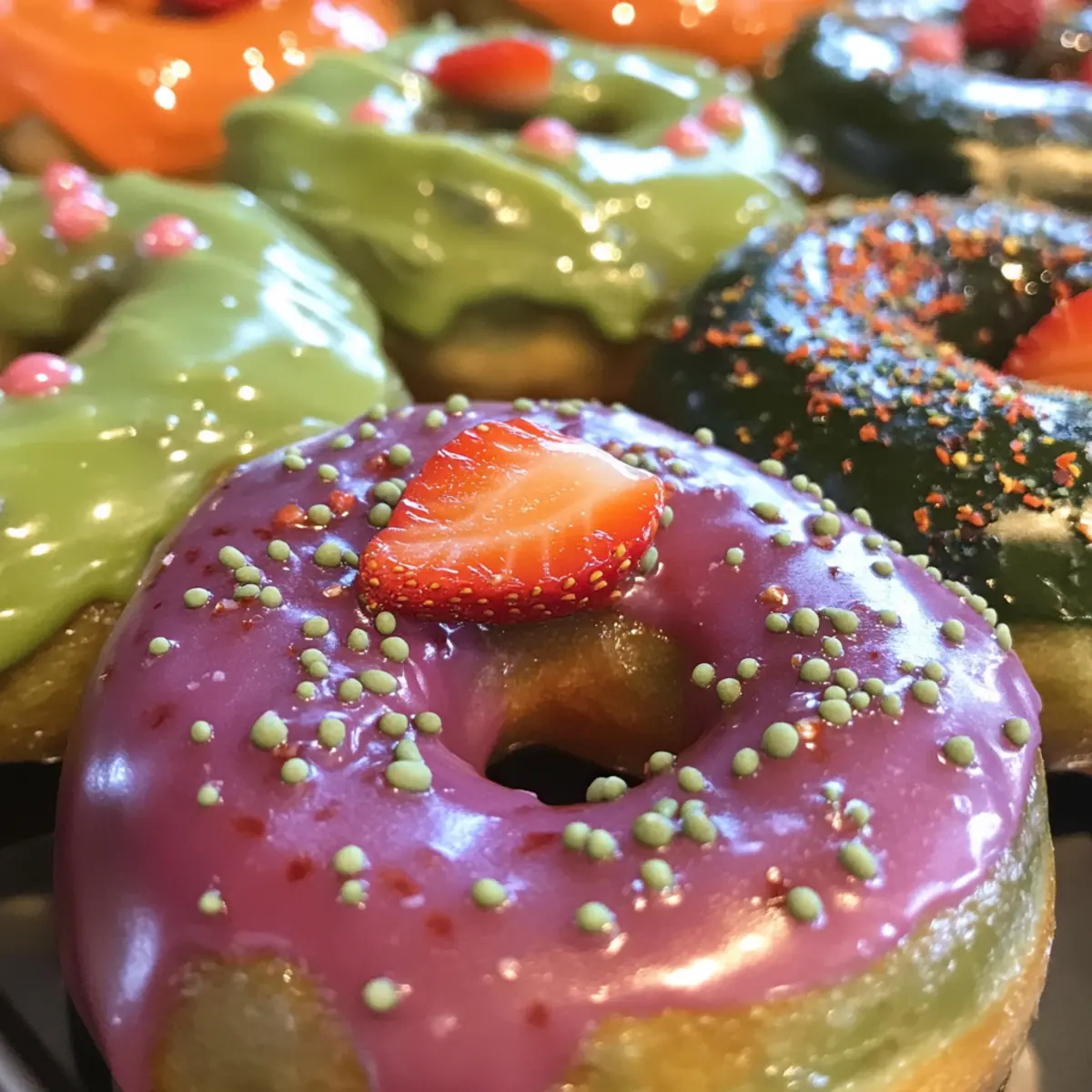 As I stood in my kitchen, the sweet aroma of freshly baked goods wafted through the air, transporting me to a vibrant café in Japan. Today, I’m excited to share my recipe for Baked Mochi Pon De Ring Donuts—a delightful treat that combines a unique, chewy texture with colorful glazes like matcha, strawberry, and ube. Made with tapioca flour, these gluten-free gems are not only fun to make but also a healthier alternative to traditional fried donuts. With minimal prep time and endless customization options, they’re perfect for impressing friends or enjoying a cozy weekend brunch. What flavors will you drizzle on your next batch? Why are Baked Mochi Donuts a Must-Try? Uniqueness: These Baked Mochi Pon De Ring Donuts bring an exciting twist to your usual dessert routine with their delightful chewy texture and fun ring shape. Customizable Flavors: With vibrant glazes like matcha, strawberry, and ube, you can easily customize these donuts for any occasion or just to satisfy your sweet tooth. Gluten-Free Goodness: Made with tapioca flour, these treats provide a gluten-free option that everyone can enjoy, making them perfect for gatherings! Easy to Make: With a straightforward recipe and minimal prep time, you can whip up a batch in no time, ideal for busy days. Crowd Pleaser: They are not just tasty; their playful shapes and colorful toppings are sure to impress family and friends, just like Baked Jamaican Pineapple adds a touch of flair to any meal! Guilt-Free Indulgence: Lighter than fried options, you can indulge without the heaviness, making these donuts perfect for brunch or a midday snack. Baked Mochi Pon De Ring Donuts Ingredients For the Donuts Tapioca Flour – This essential ingredient gives the donuts their delightful chewy texture, and it’s a must for gluten-free goodness. All-Purpose Flour – Adds structure to the donuts; for a gluten-free version, you can substitute with a blend of gluten-free flours. Instant Yeast – This convenient ingredient provides the necessary rise, ensuring your donuts are light and fluffy. Kosher Salt – Enhances flavor, balancing the sweetness of the donuts for a well-rounded treat. Unsalted Butter – Adds richness and moisture to your donuts; make sure it’s melted and slightly cooled before use. Egg – Contributes to the structure and moisture; it’s best to use an egg at room temperature for optimal mixing. Pure Vanilla Extract – Offers aromatic sweetness that enhances the overall flavor; almond extract is a fun alternative if you want a twist. Whole Milk – Helps achieve the right dough consistency; for a dairy-free version, feel free to substitute with your favorite plant-based milk. For the Glazes Confectioners’ Sugar – Used to sweeten and smooth out toppings; it prevents graininess, providing a silky finish for your glazes. Matcha Powder, Freeze-Dried Strawberries, Ube Extract – Fun and vibrant flavorings that elevate the visual appeal and taste of your donuts. Sprinkles – These colorful garnishes add a festive touch, making your Baked Mochi Pon De Ring Donuts even more delightful! Step‑by‑Step Instructions for Baked Mochi Pon De Ring Donuts Step 1: Prepare Dough In a large mixing bowl, combine 2 cups of tapioca flour, 1 cup of all-purpose flour, 2 teaspoons of instant yeast, and 1 teaspoon of kosher salt. Stir well to evenly distribute the dry ingredients. Then, add in 4 tablespoons of melted unsalted butter, 1 room temperature egg, 1 teaspoon of pure vanilla extract, and 1 cup of warm whole milk. Mix until a smooth and slightly sticky dough forms. Step 2: Knead Dough Transfer the dough onto a lightly floured surface and knead for about 5-7 minutes until it becomes elastic and smooth. Form it into a ball and place it in a lightly greased bowl. Cover the bowl with a kitchen towel and let it rest in a warm area for 30 minutes to an hour, allowing the dough to proof and rise slightly. Step 3: Shape Donuts Once the dough has rested, punch it down gently to release air. Divide the dough into small equal pieces and roll each piece into a ball. Carefully connect two balls together to form the signature “pon de ring” shape, ensuring they gently touch but do not fully merge. Place the shaped donuts on a parchment-lined baking sheet. Step 4: Bake Preheat your oven to 350°F (175°C). Bake the donuts in the preheated oven for about 15 minutes, or until they turn a light golden brown. Keep an eye on them to prevent overbaking, as you want a soft, pillow-like texture. Once done, remove the baking sheet from the oven and allow the donuts to cool for a few minutes. Step 5: Prepare Glazes While the donuts cool, prepare your colorful glazes. In separate bowls, mix 1 cup of confectioners’ sugar with 1-2 tablespoons of warm milk and your chosen flavoring (like matcha powder, freeze-dried strawberry powder, or ube extract) until smooth. Adjust the consistency by adding more sugar or milk as needed to achieve a silky glaze. Step 6: Glaze Donuts Once the Baked Mochi Pon De Ring Donuts are completely cooled, dip each donut into your prepared glaze, making sure to coat them evenly. You can also drizzle the glaze over the donuts for a fun design. Finish by sprinkling with colorful sprinkles, if desired, to add a festive touch. Step 7: Serve Your Baked Mochi Pon De Ring Donuts are now ready to impress! Serve them fresh for the best taste, or store them in an airtight container at room temperature for up to two days. Enjoy this delightful treat with family and friends during brunch or as a snack! What to Serve with Baked Mochi Pon De Ring Donuts Imagine a delightful spread that transforms your sweet donut experience into a memorable gathering. Fresh Fruit Salad: A mix of vibrant berries and citrus adds a refreshing contrast to the chewy sweetness of donuts. Matcha Latte: This creamy beverage pairs beautifully, enhancing the matcha glaze and providing a cozy café vibe. Coconut Whipped Cream: Light and fluffy, it complements the richness