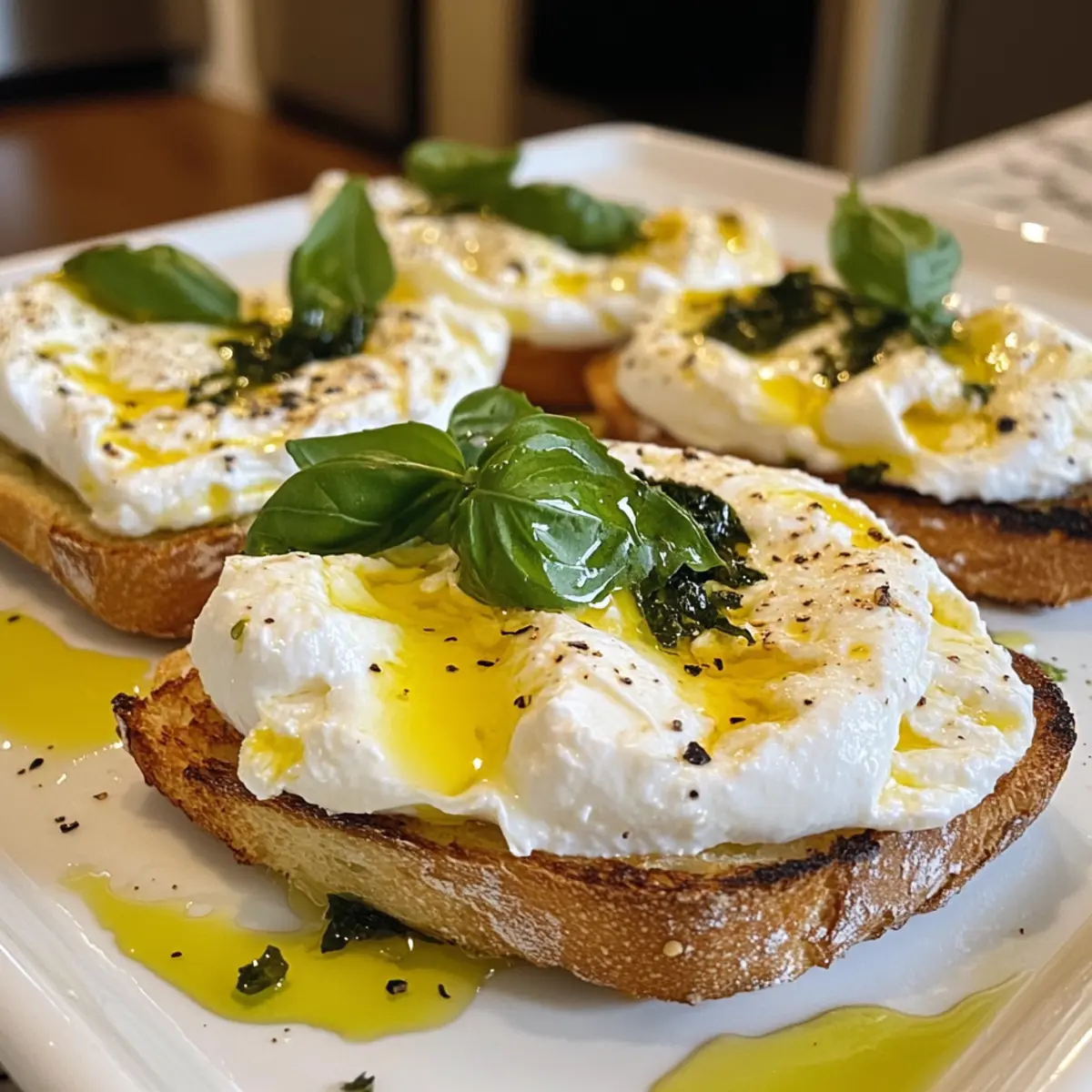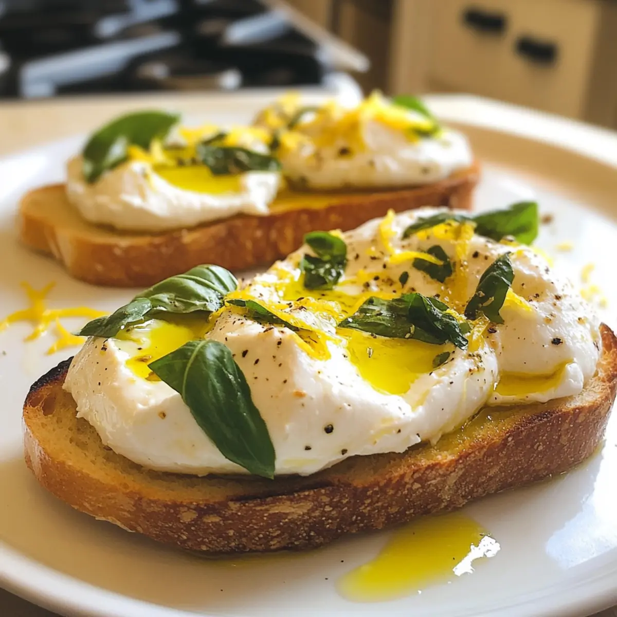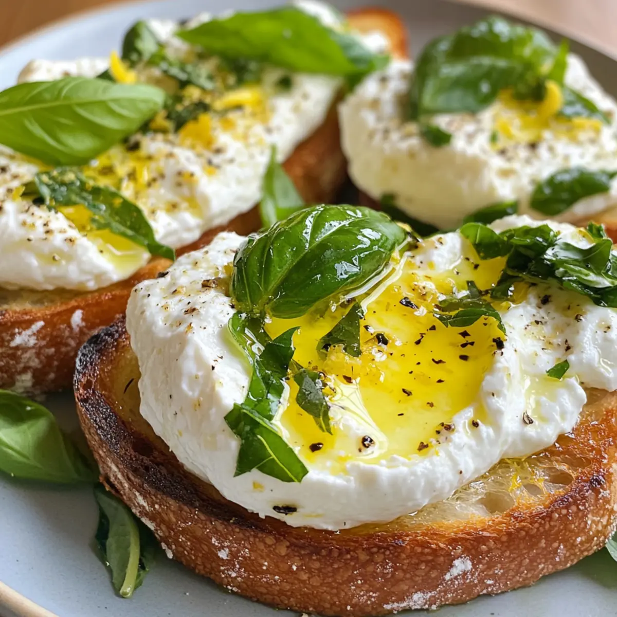 As I stood in my kitchen, the aromatic scent of fresh basil wafted through the air, instantly transporting me to sun-drenched Italian summers. My newest obsession? Basil + Lemon Burrata with Ciabatta Toasts—a simple, yet show-stopping appetizer that’s ready in just 10 minutes. With its creamy burrata paired with vibrant lemon zest and fresh basil, this dish brings an exciting twist to traditional Italian fare. It’s not only a crowd-pleaser but also a perfect companion for any gathering, whether you’re sipping wine with friends or hosting a casual dinner party. Plus, it’s an incredible way to enjoy a deliciously homemade treat without spending hours in the kitchen. How about we dive into this delightful recipe together and elevate our appetizer game? Why is this appetizer so captivating? Quick Preparation: Whip this up in just 10 minutes, making it an ideal choice for spontaneous gatherings and busy nights. Luscious Flavor: The creamy burrata combined with tangy lemon and aromatic basil creates a flavor explosion that’s both fresh and indulgent. Elegant Presentation: Gorgeous golden ciabatta toasts topped with a vibrant spread make this dish a visual delight—perfect for impressing your guests! Versatile Pairing: This appetizer pairs beautifully with wines like Pinot Grigio or refreshing cocktails, enhancing your entertaining experience. Homemade Touch: Enjoy a gourmet experience without the fuss of complicated recipes; just indulge in this delightful twist on classic Italian flavors. For more easy, crowd-pleasing ideas, check out my recipe for Fried Burrata Spicy and Loaded Baked Dinner. Basil + Lemon Burrata Ingredients • Bring the taste of Italy into your kitchen with these simple yet outstanding ingredients. For the Burrata Mixture Buffalo Burrata – Offers a creamy texture that creates a gooey, luxurious center. (Substitution: Fresh mozzarella can be used for a firmer alternative.) Fresh Basil – Provides aromatic green notes that brighten the dish. (Substitution: Other herbs like parsley may be used for a different flavor.) Lemon Zest – Imparts a bright acidity that elevates all flavors in this Basil + Lemon Burrata. (Tip: Use a microplane for an effortless zest.) Garlic – Adds depth and a hint of sharpness, enhancing the overall flavor. (Substitution: Garlic powder can be a mild substitute; reduce the amount.) Crushed Red Pepper Flakes – Introduces a gentle spice to balance the creaminess of the burrata. (Adjust to your taste preference for kick.) Kosher or Flaky Sea Salt – Essential for seasoning and amplifying your dish’s flavors. (No substitution necessary.) Olive Oil – Adds richness and moisture; perfect for drizzling and mixing. (Tip: Opt for high-quality extra virgin olive oil for the best taste.) For the Toasts Ciabatta or Baguette – The crunchy base for your burrata; offers a savory vehicle for toppings. (Tip: Baguette can be used, sliced thinly for optimal toasting.) Now that you have these essential ingredients ready, you’re just a few steps away from creating this stunning appetizer that is sure to impress! Step‑by‑Step Instructions for Basil + Lemon Burrata with Ciabatta Toasts Step 1: Preheat the Oven Begin by preheating your oven to 350°F (175°C). This temperature is perfect for achieving those crisp, golden ciabatta toasts that will serve as the delightful base for your Basil + Lemon Burrata. Ensure the oven is fully heated before proceeding to the next step for optimal toasting. Step 2: Prepare the Burrata While the oven heats, take your burrata out of the refrigerator and place it in a shallow serving bowl. Allow it to come to room temperature for about 10 minutes, enhancing its creamy texture and flavor. This will make the burrata even more indulgent when paired with fresh toppings later. Step 3: Make the Basil-Lemon Mixture In a small mixing bowl, combine chopped fresh basil, lemon zest, minced garlic, and a tablespoon of olive oil. Sprinkle in some crushed red pepper flakes and kosher salt to taste. Let this vibrant mixture sit for about 5 minutes, allowing the flavors to meld beautifully for the perfect topping for your burrata. Step 4: Prepare the Ciabatta Slice the ciabatta or baguette into thin pieces, about half an inch thick. Arrange them in a single layer on a sheet pan, taking care not to crowd them. Brush the tops generously with olive oil, ensuring each slice is well-coated for that delicious crispness once toasted. Step 5: Toast the Ciabatta Place the prepared ciabatta slices in the preheated oven. Toast them for 4 to 6 minutes, or until they are golden brown and crispy. Keep a close eye on them to avoid burning, as oven times can vary. They should come out beautifully toasted, ready to hold the creamy burrata mixture. Step 6: Plate the Toasts Once the ciabatta toasts are golden and fragrant, remove them from the oven and arrange them on a serving platter. Allow them a moment to cool slightly, just enough so they can be topped without compromising the beautiful crunch they offer. Step 7: Assemble the Dish Spoon the basil-lemon mixture generously over the burrata in the serving bowl. Drizzle any remaining olive oil over the top, enhancing the richness of this exquisite dish. This step ensures your Basil + Lemon Burrata is not just delicious but visually stunning, perfect for presentation at your next gathering. Step 8: Serve with Joy Finally, cut into the burrata, letting its creamy center spill out enticingly. Serve immediately with the ciabatta toasts on the side, allowing everyone to scoop up that heavenly mixture. The combination of creamy burrata, zesty lemon, and crispy toasts makes this appetizer irresistible. Make Ahead Options Preparing Basil + Lemon Burrata with Ciabatta Toasts is a breeze, especially for busy home cooks! You can mix the basil-lemon topping up to 24 hours in advance. Simply combine the chopped basil, lemon zest, minced garlic, olive oil, crushed red pepper, and salt in a bowl, cover, and