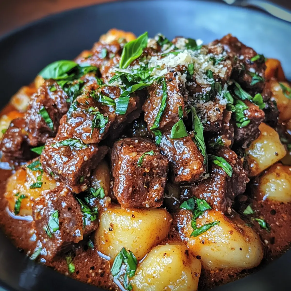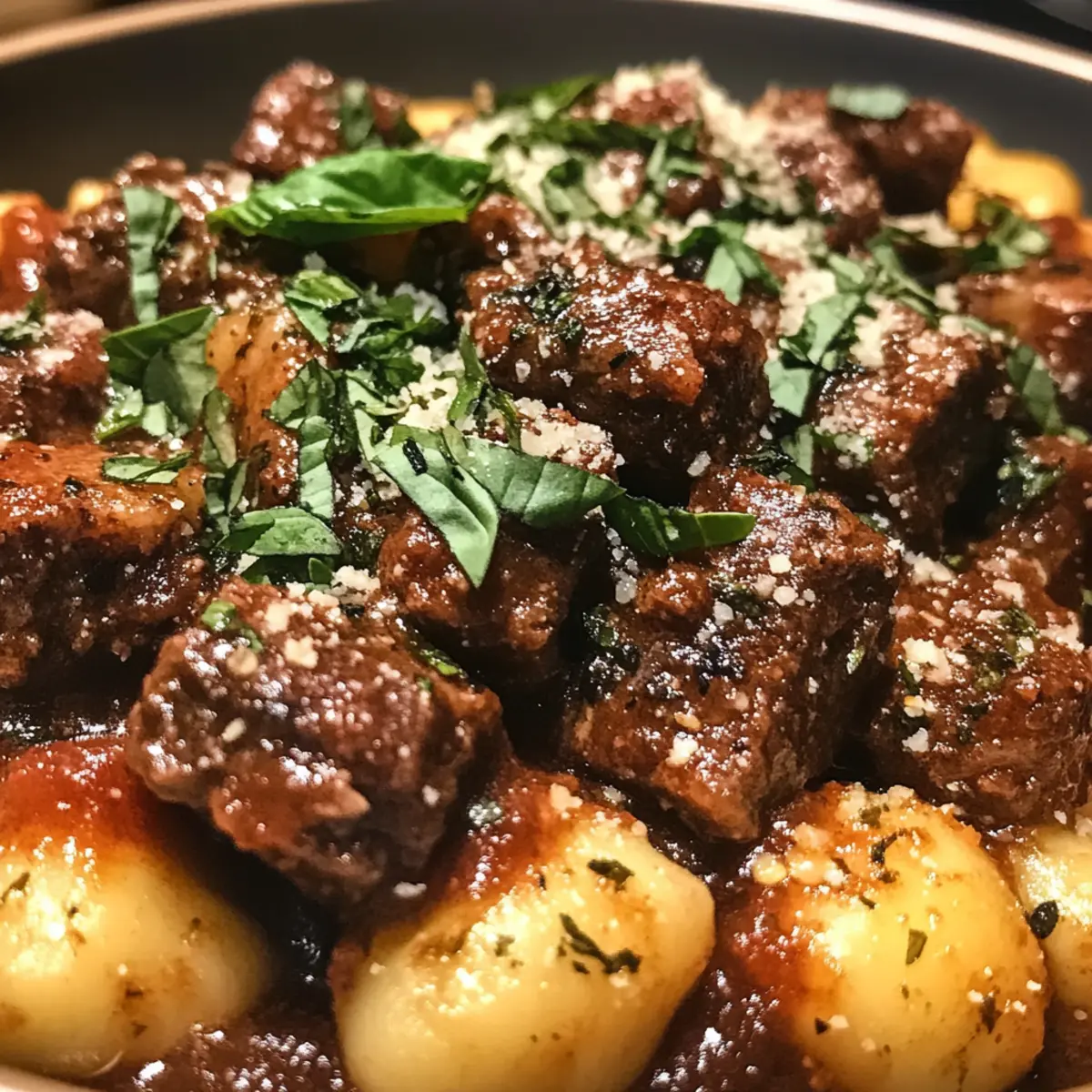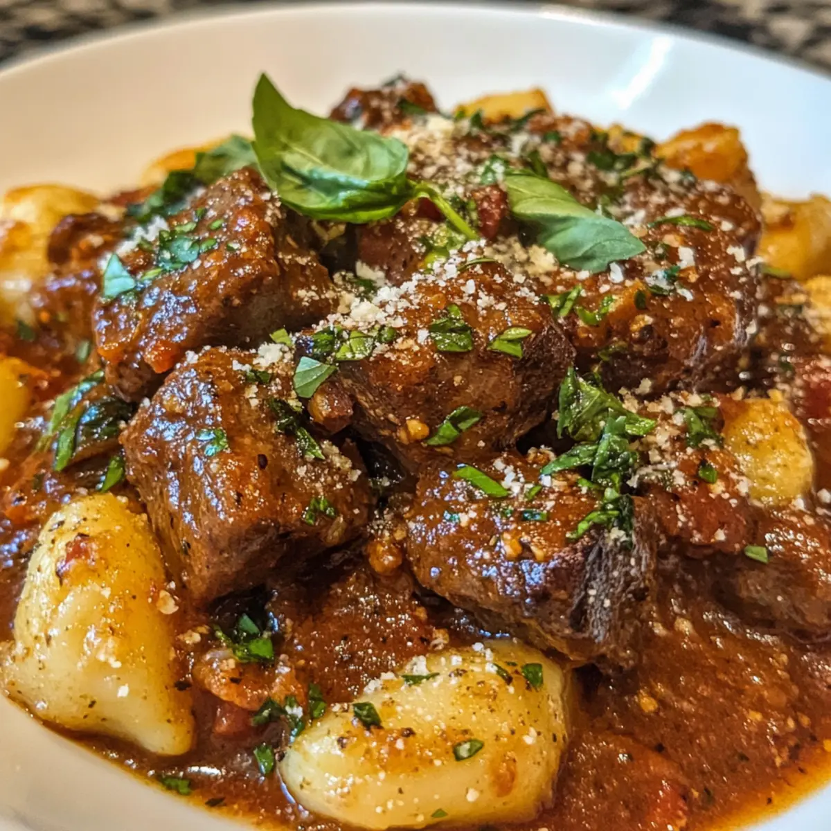 As I stirred the pot, the rich aroma of my Braised Beef Ragu wafted through the kitchen, enveloping me in a warm embrace. This dish isn’t just dinner, it’s a culinary hug—perfect for sharing with family or delighting your friends at a cozy gathering. Simmering for hours, tender beef melds with aromatic veggies and a splash of bold red wine, creating a sauce that’s nothing short of heartwarming comfort food. Plus, this melt-in-your-mouth magic is freezer-friendly, allowing you to savor these flavors any night of the week. So, are you ready to transform your kitchen into a traditional Italian trattoria? Let’s dive in and make this unforgettable ragu together! Why Is This Ragu So Unforgettable? Rich, Comforting Flavor: This Braised Beef Ragu boasts a deep, luscious sauce that’s perfect for cozy dinners. It’s comfort food at its finest! Time-Honored Technique: With simple braising skill, this recipe turns a tough cut of meat into meltingly tender perfection that warms the soul. Versatile Pairing Options: Whether you serve it over gnocchi, pasta, or even creamy polenta, this ragu adapts to your cravings, making it fit for any occasion. Crowd-Pleasing Delight: Perfect for gatherings, this dish will surely impress your guests, making every dinner feel special and inviting. Make-Ahead Magic: Best of all, it tastes even better the next day, allowing for effortless entertaining—just reheat and enjoy! 2. Ingredients Braised Beef Ragu Ingredients For the Ragu Neutral Oil – Provides a base for sautéing. Substitute with olive oil for added flavor. Diced Pancetta – Adds depth and richness to the sauce. Can be replaced with bacon. Beef Chuck Roast – The main protein that becomes tender through braising; look for a well-marbled cut for the best flavor. Yellow Onion – Provides sweetness and depth; can substitute with shallots. Medium Carrots – Adds natural sweetness; no direct substitution needed. Celery – Provides aroma and depth to the sauce. Garlic Cloves – Enhances flavor; fresh garlic is essential; avoid pre-minced varieties. Calabrian Chile Paste – Adds spice and depth; substitute with red pepper flakes to taste. Tomato Paste – Intensifies the tomato flavor in the sauce. Beef Broth or Stock – Provides moisture and flavor; homemade is best; low-sodium is recommended. Bold Red Wine – Adds complexity to the sauce; a dry red wine such as Cabernet Sauvignon works well. Canned Crushed Tomatoes – Core ingredient for the sauce base. Fresh Rosemary – Offers aromatic flavor; can substitute with dried rosemary. Fresh Oregano – Adds herbal notes; dried oregano can be used as an alternative. Fresh Thyme – Enhances flavor; can be omitted if unavailable. Fresh Bay Leaves – Adds depth; remember to remove before serving. Parmesan Rind – Enhances richness when simmered; can skip if not available. Kosher Salt & Freshly Ground Black Pepper – Essential for seasoning; adjust to taste. Heavy Cream – Adds creaminess to finish the dish. Potato Gnocchi or Pasta – Carbohydrate base; can be swapped with your favorite pasta. Reserved Pasta Water – Helps adjust sauce consistency. Mascarpone Cheese – Adds creaminess; can be substituted with cream cheese or omitted. Fresh Basil Leaves – For garnish and added flavor. Freshly Grated Parmesan – Enhances flavor at serving. This collection of ingredients combines to create a magnificent Braised Beef Ragu that’s sure to warm your heart and tickle your taste buds! Step‑by‑Step Instructions for Braised Beef Ragu Step 1: Preheat the Oven Begin by preheating your oven to 350°F (175°C). This ensures that your Braised Beef Ragu will cook evenly once it’s ready for the oven. While the oven heats, prepare your ingredients so you can smoothly transition through the cooking process without interruptions. Step 2: Prepare the Herb Bundle Take a few sprigs of fresh rosemary, oregano, and thyme, and tie them into a bundle using kitchen twine. This fragrant herb bundle will infuse your ragu with aromatic flavors as it simmers slowly. Set it aside and let the wonderful herbal aroma waft through your kitchen. Step 3: Render the Pancetta In a large Dutch oven, heat 1 tablespoon of neutral oil over medium heat. Once hot, add the diced pancetta and cook until crispy and golden, about 4-5 minutes. Remove the pancetta with a slotted spoon and set it aside on a plate, leaving the flavorful drippings behind for the next steps. Step 4: Sear the Beef Season the 3 lbs of beef chuck roast cubes generously with kosher salt and freshly ground black pepper. In the same pot, sear the beef in batches for about 4-5 minutes on each side or until nicely browned. This develops a beautiful crust that adds depth to your Braised Beef Ragu. Once all the beef is seared, remove it from the pot and set it aside with the pancetta. Step 5: Sauté the Vegetables Add the finely diced yellow onion, carrots, and celery to the pot, sautéing until they soften, around 5-6 minutes. Stir in the minced garlic, Calabrian chile paste, and tomato paste, cooking for another 2-3 minutes. The mixture should smell fragrant and inviting, forming the flavorful base for your ragu. Step 6: Build the Sauce Carefully deglaze the pot by adding 1 ½ cups of bold red wine, scraping up any browned bits. After the wine reduces slightly, add the canned crushed tomatoes and beef broth, stirring well to combine. Season with salt and pepper to taste. Return the seared beef and pancetta to the pot along with the herb bundle and bay leaves, then cover. Step 7: Braise the Ragu Transfer the Dutch oven to the preheated oven and braise for 2 ½ to 3 hours, or until the beef is tender and easily shredded, giving it a wonderful melt-in-your-mouth texture. Check occasionally, ensuring the sauce doesn’t dry out and adjust with a splash of broth if necessary. Step 8: Rest and Shred the Beef After the braising time is up, remove the Dutch oven from the oven and let it rest for about 20 minutes with