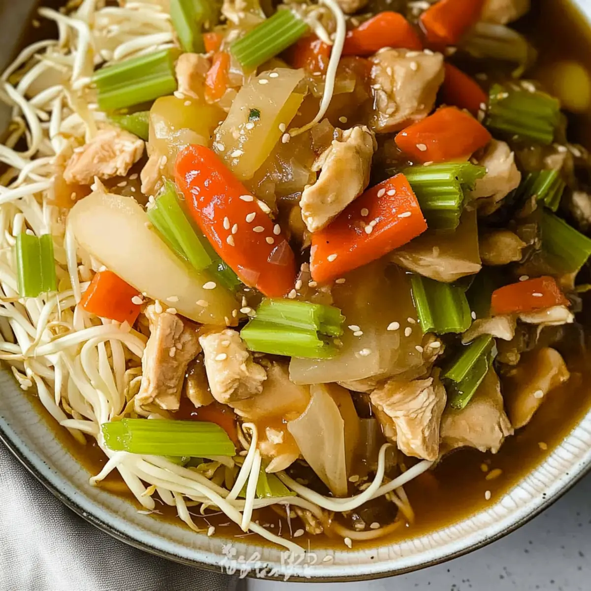 A sizzling sound filled my kitchen as I tossed tender strips of chicken into a hot pan, instantly filling the air with an irresistible aroma. This Easy Chicken Chop Suey is more than just a quick dinner option; it’s a delightful family favorite that brings a splash of vibrant colors and crunch to your table. Perfect for busy weeknights, this dish comes together in just 37 minutes, allowing you to serve up a home-cooked meal that’s both budget-friendly and adaptable to your taste. The magic lies in the savory sauce that coats the fresh vegetables and chicken, merging flavors reminiscent of your favorite takeout, but healthy and homemade. Ready to spice up your weeknight dinners? Let’s dive into this culinary adventure! Why is Chicken Chop Suey a must-try? Quick and Easy: In just 37 minutes, you can whip up this delicious meal, making it ideal for any busy night. Budget-Friendly: Made with affordable ingredients, it’s a perfect choice for family dinners that won’t break the bank. Flavor Packed: With a savory sauce and vibrant veggies, this dish bursts with flavors that will satisfy any palate. Versatile Ingredients: It’s designed to be adaptable, allowing you to swap in your favorite proteins or seasonal vegetables effortlessly. Healthier Choice: Skip the takeout and enjoy a homemade version that’s both nutritious and fulfilling, perfect for health-conscious eaters. If you’re craving more delightful chicken recipes, check out my Crockpot Chicken Tinga or Air Fryer Chicken to keep mealtime exciting! Chicken Chop Suey Ingredients • Perfect for a quick, budget-friendly meal! For the Sauce Soy Sauce – Provides umami and saltiness; for a healthier twist, use low-sodium soy sauce. Granulated Sugar – Balances flavors; can be replaced with honey or agave syrup for a natural alternative. Chicken Broth – Liquid base for the sauce; opt for vegetable broth for a vegetarian version. Cold Water – Helps achieve the desired sauce thickness; adjust if you prefer a thicker consistency. Sesame Oil – Adds a nutty flavor; omit if you want a milder taste or substitute with olive oil. For the Chicken Boneless Skinless Chicken Breasts – Main protein; feel free to swap for chicken thighs or shrimp for diversity. Cornstarch – Coats chicken for a crispy texture; adjust depending on the protein used. For the Vegetables Sliced Yellow Onion – Adds sweetness and depth; consider shallots for a milder taste. Sliced Celery – Provides crunch and freshness; snow peas or bell peppers can make tasty substitutes. Sliced Carrot – Brings color and sweetness; zucchini is a great option for a different texture. Minced Garlic – Enhances flavor potency; use garlic powder in a pinch but reduce the amount. Fresh Bean Sprouts – Adds a delightful crunch; if unavailable, you can try pea pods or broccoli slaw. Each ingredient plays a crucial role in finessing the taste of this Chicken Chop Suey, making it a delightful family favorite bursting with flavor! Step‑by‑Step Instructions for Chicken Chop Suey Step 1: Prepare the Chicken Begin by slicing boneless, skinless chicken breasts into ¼” strips, ensuring even cooking. Toss the chicken with cornstarch in a bowl to coat each piece thoroughly. This coating will help achieve a crispy texture. Set the coated chicken aside while you gather the remaining ingredients for your Chicken Chop Suey. Step 2: Cook the Chicken Heat 1 tablespoon of vegetable oil in a large skillet or wok over medium-high heat. Once the oil shimmers, add the coated chicken strips, cooking for about 5-7 minutes until golden brown and no longer pink in the center. Remove the chicken from the pan and place it on a plate, keeping it warm while you sauté the vegetables. Step 3: Sauté the Vegetables In the same skillet, add another tablespoon of vegetable oil if necessary. Toss in sliced yellow onion, carrot, celery, and minced garlic. Sauté the vegetables for about 4-5 minutes until they become tender and fragrant, stirring frequently. The onions should turn translucent, and the carrots should soften, adding depth to your Chicken Chop Suey. Step 4: Add Crunchy Ingredients Stir in the fresh bean sprouts and cook for an additional minute. This quick sauté helps retain their crispness while incorporating them into your chicken and vegetable mix. Make sure to keep the heat high to maintain the vitality of these ingredients, which are essential for the dish’s texture. Step 5: Create the Sauce In a separate bowl, combine the chicken broth, soy sauce, granulated sugar, and cold water, mixing well until the sugar dissolves. Add this savory sauce blend to the sautéed vegetables and cooked chicken in the skillet. Bring the mixture to a simmer over medium heat, allowing flavors to meld while the sauce thickens somewhat, which should take about 2-3 minutes. Step 6: Serve and Enjoy Once the sauce has thickened and the chicken chop suey is heated through, taste and adjust seasoning if necessary. Serve this vibrant Chicken Chop Suey hot over a bed of steamed jasmine rice or rice noodles for a comforting meal. Garnish with green onions for an extra touch of flavor and crunch. Chicken Chop Suey Variations & Substitutions Feel free to customize your Chicken Chop Suey with these exciting swaps and twists that will make your dish uniquely yours! Dairy-Free: Absolutely! All the ingredients in this recipe are dairy-free, so you’re already good to go! Gluten-Free: Use tamari instead of soy sauce to keep it gluten-free while maintaining the same delicious flavor. Protein Swap: Tofu: For a vegetarian option, replace chicken with firm tofu. Just skip the cornstarch coating, and sauté until golden. Veggie Boost: Add More Colors: Toss in colorful peppers, snap peas, or bok choy for added nutrition and extra crunch. Noodle Twist: Rice Noodles: Swap rice for firm rice noodles; just cook them separately and toss them in the pan at the end for a fun twist! Heat It Up: Spicy: Add crushed red pepper fla