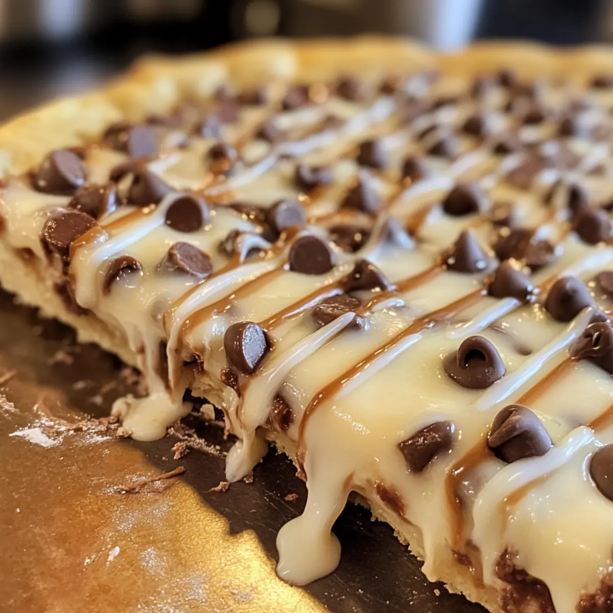 As I stood in the kitchen, the sweet aroma of warm chocolate chips wafted through the air, instantly transforming my mood. This isn’t just any dessert; it’s my easy Chocolate Chip Dessert Pizza, a comforting twist on traditional pizza that will make your taste buds sing. With a buttery crescent roll crust and a sprinkle of cinnamon sugar, this indulgent treat is perfect for satisfying sweet cravings or impressing guests at your next gathering. The best part? It’s incredibly easy to whip up, and you can customize it with different chocolate chips or even a puff pastry base. Whether it’s a family movie night or a celebratory occasion, this dessert pizza makes every moment feel special. Are you ready to take your dessert game to the next level? Let’s dive into this delectable recipe! Why Is This Dessert Pizza Irresistible? Unique Twist: This Chocolate Chip Dessert Pizza is not your ordinary dessert—it’s a delightful fusion that brings a playful twist to classic pizza! Easy Preparation: You’ll love how simple it is to prepare; it only takes minutes to roll out the dough and sprinkle on toppings! Flavor Explosion: The buttery crust paired with gooey chocolate chips and a hint of cinnamon creates a flavor harmony that’s simply unforgettable. Customizable Options: Whether you’re a fan of dark, milk, or white chocolate chips, or even peanut butter chips, feel free to get creative! You could also swap in your favorite toppings for a personalized touch. Party-Pleasing Appeal: Serve it warm, maybe with a scoop of vanilla ice cream, and watch everyone gather around for seconds—it’s a guaranteed crowd-pleaser! If you’re searching for a delicious treat, consider whipping up this dessert pizza alongside some Chocolate Chip Cookies or even a decadent Chocolate Eclair. Your friends and family will thank you! Chocolate Chip Dessert Pizza Ingredients For the Crust Crescent Roll Dough – This flaky base provides the perfect buttery texture for your dessert pizza; you can substitute with puff pastry if desired. Butter – Adds delightful richness to the crust; remember to melt it for even mixing with cinnamon and sugar. Cinnamon Sugar Mixture – Sprinkle this sweet blend to enhance the crust’s flavor; mix equal parts cinnamon and sugar for a delicious balance. For the Toppings Chocolate Chips – The star of this dessert pizza, bringing sweetness and gooey goodness; feel free to use dark, milk, or white chocolate chips based on your preference. Sweetened Condensed Milk – Drizzle this over the top for a creamy finish; you can even swap it for chocolate sauce for a different twist. Now that you have everything you need, let’s dive into creating your unforgettable Chocolate Chip Dessert Pizza! Step‑by‑Step Instructions for Chocolate Chip Dessert Pizza Step 1: Prepare Dough Preheat your oven to 375°F (190°C) and take out a baking sheet. Unroll the crescent roll dough onto the baking sheet, gently pressing it together to form a circular pizza shape. Ensure the edges are slightly raised to hold in the delicious toppings later. This flaky, buttery base will anchor your Chocolate Chip Dessert Pizza perfectly! Step 2: Combine Butter & Cinnamon Sugar In a small microwave-safe bowl, melt the butter until completely liquefied, about 20-30 seconds. Once melted, mix in equal parts of cinnamon and sugar to create a sweet, aromatic cinnamon sugar mixture. Spread this delightful blend evenly over the surface of the dough, allowing it to soak in and add warmth and flavor to your crust. Step 3: Add Chocolate Chips Generously sprinkle your choice of chocolate chips—whether dark, milk, or white—over the cinnamon-sugar-coated dough. Be sure to cover the surface evenly, leaving no gaps, so every bite of your Chocolate Chip Dessert Pizza is a gooey delight. Visualize those chocolate morsels melting beautifully as they bake to perfection! Step 4: Bake Carefully place your dessert pizza in the preheated oven and bake for 10-12 minutes. Keep an eye on it, waiting for the edges to turn golden brown and the chocolate chips to melt deliciously. The whole kitchen will fill with a sweet aroma, signaling that your Chocolate Chip Dessert Pizza is almost ready! Step 5: Finish Once baked, remove the dessert pizza from the oven and drizzle it with sweetened condensed milk for an extra touch of creaminess. Allow it to cool slightly before slicing it into wedges, presenting a warm, inviting dessert that’s ready for you and your guests to enjoy. Dive into this indulgent treat; you won’t be able to resist! Chocolate Chip Dessert Pizza Variations Feel free to add your personal touch and make this dessert pizza uniquely yours! Chocolate Chip Type: Experiment with dark, milk, or white chocolate chips to find your favorite flavor combination. Each one adds a different level of sweetness and richness. Nutty Surprise: Add chopped nuts, like pecans or walnuts, for a delightful crunch and extra flavor. The creamy chocolate pairs beautifully with the nutty texture, creating a satisfying bite. Dough Twist: Swap out crescent roll dough for puff pastry for a lighter, flakier crust. This variation will give your dessert pizza a delicate texture that contrasts perfectly with the gooey chocolate. Spices Change-Up: Replace cinnamon with nutmeg or even cardamom for a warm twist in flavor. Adding a pinch of sea salt can really enhance the sweetness in a surprising way. Flavor Boost: Use flavored extracts, such as almond or vanilla, in the butter mixture. Just a splash can elevate the overall taste experience, making every bite even more special. Fruity Addition: Toss in some fresh berries or banana slices as a topping before baking. The natural sweetness of the fruit complements the rich chocolate beautifully, adding a refreshing contrast. Saucy Drizzle: Instead of sweetened condensed milk, try using caramel or chocolate sauce for drizzling on top. Each option adds its own delicious twist and allows for creativity duri
