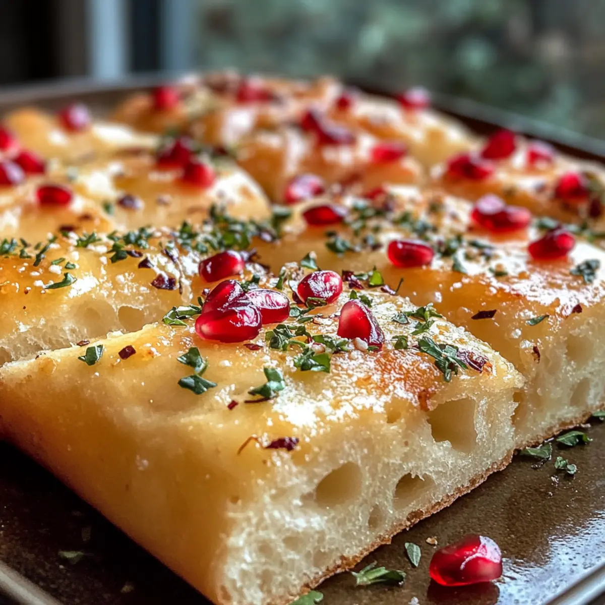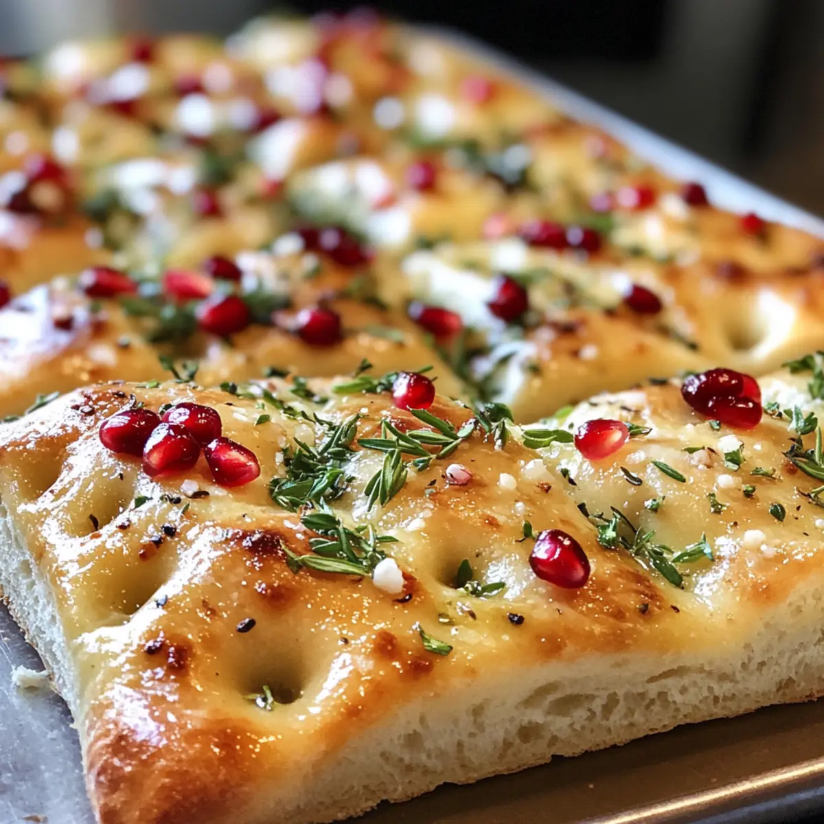The aroma of warm bread baking in the oven has a magical way of invoking holiday cheer, doesn’t it? Just like a cozy hug on a winter’s day, this festive Christmas focaccia promises to be the showstopper at your next gathering. This incredibly easy recipe not only fills your home with comforting scents but also allows for endless customization—whether you fancy the earthy notes of rosemary or the vibrant sweetness of pomegranate seeds. Perfect for any holiday meal, this focaccia is both quick to prepare and a sure crowd-pleaser, making it the ultimate addition to your festive spread. What delightful toppings will you choose to make your focaccia truly yours? What makes Christmas Focaccia so special? Endless customization: This recipe allows you to tailor your focaccia with personal topping choices, from fresh herbs to seasonal fruits, ensuring every bite is uniquely yours. Quick and easy: With straightforward instructions, you can whip up this festive bread in no time without sacrificing quality or flavor. A crowd-pleaser: Its vibrant appearance and delightful aroma make it an impressive centerpiece for any holiday gathering. Perfect texture: The soft, chewy interior combined with crunchy toppings creates a satisfying contrast that everyone will love. Ideal for sharing: This stunning loaf encourages togetherness and will be the topic of conversation at your festive table! Don’t forget to explore other delicious options like homemade dips that pair beautifully with this focaccia! Christmas Focaccia Ingredients • Note: Create your perfect holiday bread with these essential ingredients! For the Dough • Strong White Bread Flour – Provides structure; substitute with all-purpose flour for a slightly different texture. • Warm Water (100°F/38°C) – Activates yeast; ensure it’s the right temperature for optimal rise. • Active Dried Yeast – Creates leavening for a fluffy texture; can swap with instant yeast if needed. • Cinnamon – Adds warm flavor; nutmeg or allspice can be used alternatively. • Extra Virgin Olive Oil – Contributes moisture and flavor; vegetable or avocado oils are acceptable substitutes. • Salt – Enhances overall flavor; a pinch is essential to bring your Christmas focaccia to life. For the Toppings • Rosemary – Provides aromatic flavor; can replace with thyme or dried herbs for a different note. • Parsley – Adds a fresh taste; interchangeable with basil or cilantro for more flavor profiles. • Pomegranate Seeds – Offers a pop of sweetness and color; substitute with dried cranberries or halved grapes for a little twist. Explore these ingredients, and let your creativity shine through while making this festive Christmas focaccia! Step‑by‑Step Instructions for Christmas Focaccia Step 1: Mix Ingredients In a large bowl, combine 1 ½ cups of warm water (100°F/38°C), 2 teaspoons of active dried yeast, 1 teaspoon of cinnamon, 2 tablespoons of extra virgin olive oil, and 1 teaspoon of salt. Gradually add 4 cups of strong white bread flour while stirring with a wooden spoon until a rough dough begins to form. Cover the bowl with a clean kitchen towel and let it rest for 30 minutes to allow the yeast to activate. Step 2: Knead Dough After the dough has rested, turn it out onto a floured surface. Gently stretch and fold the dough over itself three times to create tension. Shape it into a ball, then place it back in the bowl. Cover the bowl again and let the dough rise in a warm spot for about 1.5 hours, or until it has doubled in size and appears puffy. Step 3: Prepare Baking Tray While the dough is rising, prepare your baking tray by lining it with parchment paper and drizzling it with olive oil to prevent sticking. Once the dough has risen, gently transfer it to the oiled tray, folding the sides in neatly to maintain its shape. Cover the dough with a towel, and allow it to rise again for an additional 2 hours until it fills the tray and expands. Step 4: Preheat Oven About 30 minutes before you’re ready to bake your Christmas focaccia, preheat your oven to 400°F (200°C). This ensures that your oven reaches the ideal temperature for baking the focaccia, allowing for a beautifully golden crust when it emerges. Step 5: Dimple and Top After the second rise, use your fingers to gently create dimples all over the surface of the dough. Now it’s time to get creative! Add your desired toppings, such as fresh rosemary, pomegranate seeds, or parsley. Finish by drizzling a bit more olive oil over the top for extra flavor and moisture. Step 6: Bake Before placing the tray in the oven, sprinkle the focaccia with flaky sea salt. Bake the Christmas focaccia for 25–30 minutes, or until it turns a lovely golden brown and sounds hollow when tapped. Once baked, remove it from the oven and let it cool in the tray for about 10 minutes before slicing into delightful pieces. Expert Tips for Perfect Christmas Focaccia Temperature Matters: Ensure your warm water is at 100°F (38°C). Too hot can kill the yeast, and too cool won’t activate it properly. Stretch and Fold: If the dough feels dense after the first rise, add an additional stretch-and-fold to help create the perfect texture in your Christmas focaccia. Customize Toppings: Feel free to mix and match toppings—sticking to your favorites or dietary needs will certainly enhance your festive experience. Knead Time: Knead the dough gently but thoroughly. This will help develop the gluten, leading to a delightful chewy interior. Check for Doneness: Tap the bottom of your focaccia; it should sound hollow when done. If in doubt, a few extra minutes in the oven can make all the difference! Serving Suggestions: Slice and serve warm with a side of olive oil for dipping, or add to a festive charcuterie board for an inviting centerpiece. How to Store and Freeze Christmas Focaccia Room Temperature: Store leftover Christmas focaccia in an airtight container at room temperature for up to 3 days to keep it fre