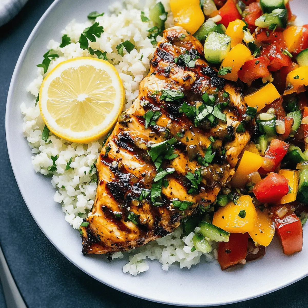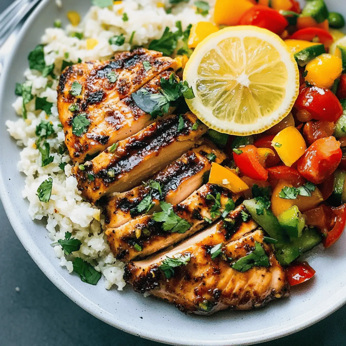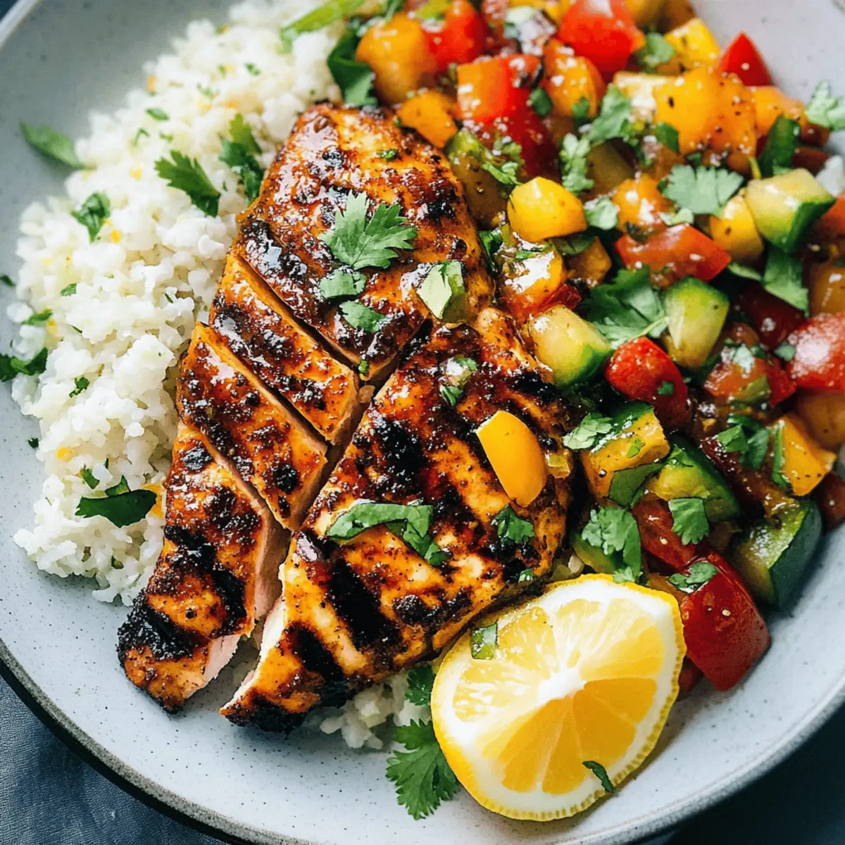 There’s something undeniably invigorating about a warm summer evening, especially when it’s filled with the enticing aroma of Cilantro Lime Chicken sizzling on the grill. This dish seamlessly combines fresh herbs and zesty citrus, creating a meal that’s not only nutritious but also quick to prepare—perfect for those bustling weeknights or casual gatherings with friends. As someone who cherishes the simplicity and joy of home-cooked dinners, I find that this recipe highlights the best of summer’s bounty while keeping things light and refreshing. Imagine juicy chicken paired with vibrant salads and crispy veggies, all ready in a flash for a fulfilling summer feast. Are you ready to discover how to elevate your summer dinners with these delicious ideas? Why Choose Cilantro Lime Chicken? Fresh, Bold Flavors: The vibrant combination of cilantro and lime elevates your dish, making each bite a refreshing experience. Quick Preparation: This recipe is perfect for busy weeknights, taking just minutes to marinate and grill. Nutrient-Packed: Enjoy lean protein while loading up on essential vitamins from fresh herbs and veggies. Versatility: Swap out chicken for shrimp or tofu to accommodate different tastes, making it great for all diets. Ideal for Gatherings: Serve it at summer cookouts or family dinners for a crowd-pleasing option that everyone will love! Cilantro Lime Chicken Ingredients For the Chicken Marinade • Chicken Breast – Lean protein source that keeps the dish healthy and satisfying. • Fresh Cilantro – Bright, herbaceous flavor that adds freshness; use parsley as a substitute if needed. • Lime Juice – Provides zesty acidity; lemon juice can be used in a pinch. • Olive Oil – Helps to keep the chicken moist and tender; avocado oil can be a great alternative. • Garlic – Adds a depth of flavor; feel free to increase the amount for a more robust taste. • Cumin – A warm spice that enhances the dish; coriander can also be added for extra flavor. • Salt – Essential for bringing out all the flavors; adjust to your taste preference. For Serving • Crispy Veggies (e.g., bell peppers, zucchini) – Provides crunch and essential nutrients; any seasonal veggies will work well. • Hearty Salad Greens – Offers a refreshing contrast to the grilled chicken; mixed greens or spinach are both excellent choices. • Avocado – Creamy texture that pairs beautifully with the zesty chicken; can also be substituted with guacamole for an added twist. • Pesto (Optional) – Adds another layer of flavor; try homemade or store-bought based on your convenience. This Cilantro Lime Chicken not only bursts with freshness but also encapsulates everything we love about summer dining! Step‑by‑Step Instructions for Cilantro Lime Chicken Step 1: Marinate the Chicken In a medium bowl, combine 1/4 cup of lime juice, 1/4 cup of olive oil, 1/4 cup of finely chopped cilantro, 2 minced garlic cloves, 1 teaspoon of cumin, and salt to taste. Whisk the mixture until well blended. Add 1½ pounds of chicken breasts to the marinade, coating them thoroughly. Cover and refrigerate for at least 30 minutes, allowing the flavors to infuse and the chicken to tenderize. Step 2: Prepare the Grill While the chicken marinates, preheat your grill to medium-high heat (about 375°F). Ensure the grates are clean and lightly oiled to prevent sticking. Heat it for about 10-15 minutes, allowing the grill to reach the ideal temperature for searing the chicken. Preparing the grill well will create those beautiful char marks and enhance flavor. Step 3: Grill the Chicken Once the grill is ready, remove the chicken from the marinade and let any excess drip off. Place the marinated chicken on the hot grill, grilling each side for 6-8 minutes until you see a lovely golden brown color and the chicken is cooked through. The internal temperature should reach 165°F for food safety. Step 4: Prepare the Veggies While the chicken is grilling, chop your selection of crispy vegetables, such as bell peppers and zucchini. In a separate skillet over medium heat, sauté the veggies in a drizzle of olive oil for about 5 minutes until they are slightly tender and vibrant. This will add a delightful crunch to your meal, perfectly complementing the Cilantro Lime Chicken. Step 5: Assemble the Salad In a large mixing bowl, combine fresh salad greens, your sautéed veggies, and sliced avocado. If desired, drizzle with a bit of extra lime juice and toss gently to combine. This refreshing salad will provide a beautiful base alongside your grilled chicken, elevating your summer dinner. Step 6: Serve and Enjoy Once the chicken is perfectly grilled, remove it from the grill and let it rest for a few minutes before slicing. Serve your Cilantro Lime Chicken on a platter with the vibrant salad and veggies alongside. Garnish with additional cilantro and lime wedges for a beautiful presentation, and savor the fresh flavors of your delightful summer meal! Cilantro Lime Chicken Variations & Substitutions Don’t hesitate to put your personal twist on this recipe and make it your own! Shrimp Swap: Replace chicken with shrimp for a quick and seafood twist. Just marinate and grill for about 2-3 minutes per side! Tofu Option: For a plant-based version, swap chicken with firm tofu. Just ensure it’s pressed and cut into thick slices for grilling. Citrus Upgrade: Substitute lime juice with orange or grapefruit juice for a sweeter, fruitier flavor profile that’s equally refreshing. Herbal Mix: Combine cilantro with other herbs like basil or mint for an exciting twist. These herbs can elevate the freshness and make it unique. Low-Carb Base: Instead of using regular carbs like quinoa or rice, serve with a bed of spiralized zucchini for a fresh, low-carb alternative. Cheese Addition: Add crumbled feta or goat cheese to your salad for a creamy, tangy texture that beautifully complements the chicken. Spice Up the Heat: Add diced jalapeños or a sprink