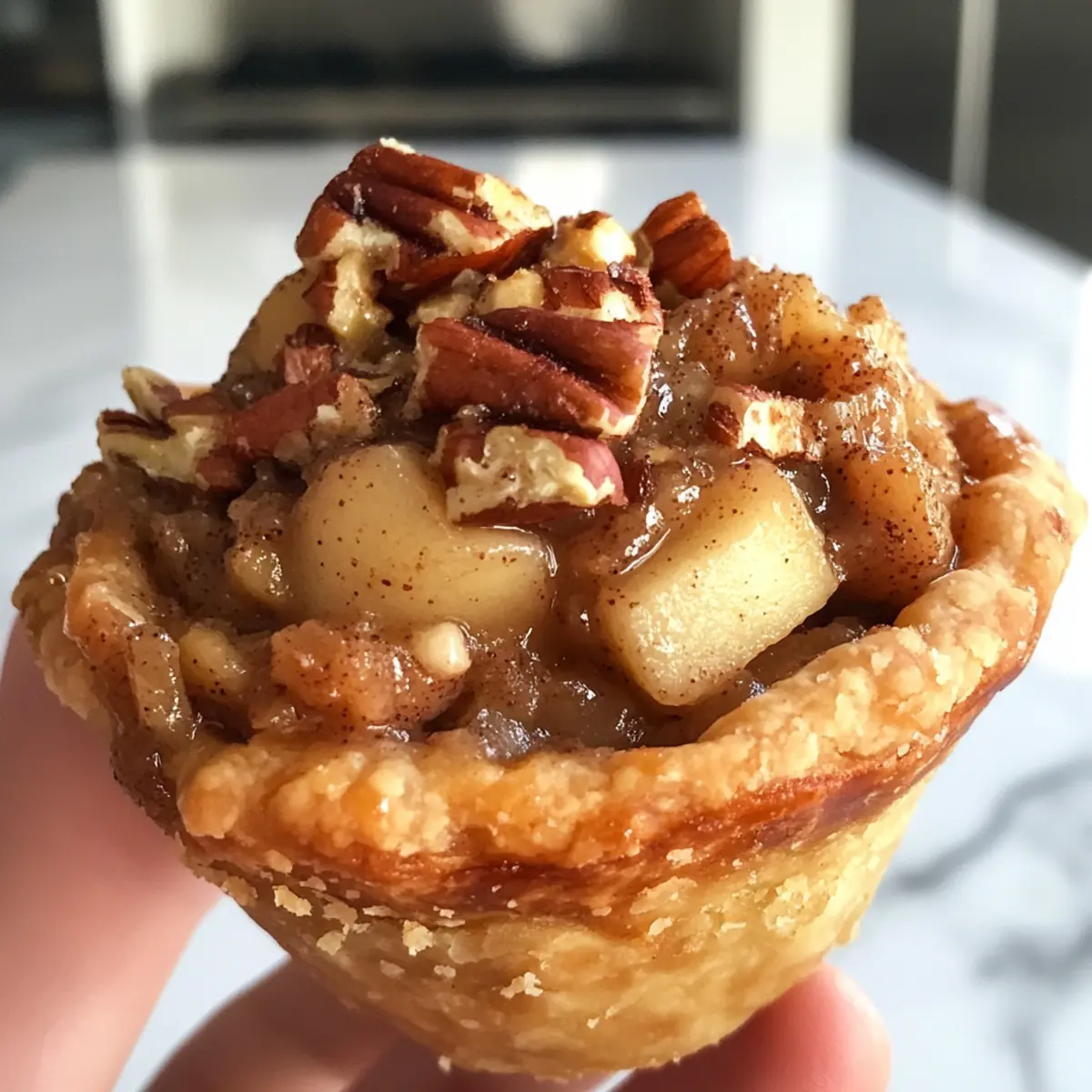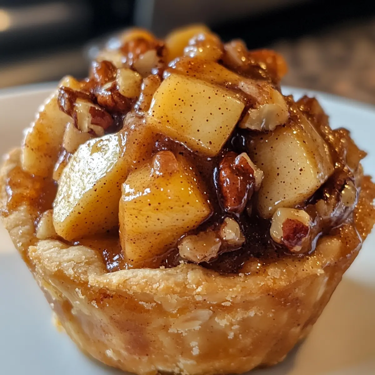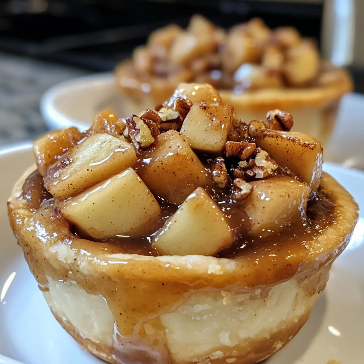 As the warm scent of cinnamon fills my kitchen, I can’t help but feel transported to autumn days spent baking with my family. These Cinnamon Roll Apple Pie Cups blend the delightful taste of fresh-baked cinnamon rolls with the classic comfort of apple pie, creating a dessert that’s simple yet satisfying. They’re the perfect family-friendly treat, easy to customize with your favorite apple varieties, nuts, or even a sprinkle of raisins! Quick to whip up and ideal for gatherings or cozy nights at home, these little cups of joy are sure to ignite your passion for homemade delights. Who would’ve thought you could enjoy the best of both worlds in just a few bites? Let’s dive into making these delightful cups that’ll surely steal the show at your next gathering! Why Are These Cups So Irresistible? Indulgent flavors collide as warm cinnamon rolls embrace luscious apple filling, making each bite a cozy experience! Customizable to your taste, you can mix in your favorite apples, nuts, or even raisins for a unique twist. Effortless to prepare, this recipe is perfect for busy weeknights or last-minute gatherings—everyone will be coming back for seconds. Family-friendly and visually delightful, these cups will brighten any dessert table, just like my Tropical Pineapple Mango punch! You’ll find them equally satisfying with a scoop of vanilla ice cream, making this dessert a real standout in the home-cooked category. Cinnamon Roll Apple Pie Cups Ingredients For the Cups • Cinnamon Roll Dough – Choose a high-quality refrigerated dough for the best flavor and texture. For the Filling • Diced Apples – Essential for the filling; Granny Smith offers tartness, while Honeycrisp is sweet and crisp. • Brown Sugar – Adds a rich caramel sweetness that beautifully enhances the apple flavor. • Cinnamon – This essential spice fills your kitchen with warmth; for extra flavor, opt for fresh ground cinnamon. • Nutmeg – Offers warm and spicy notes, making your filling taste more like a classic apple pie. • Lemon Juice – Brightens the filling and balances the sweetness, ensuring a well-rounded flavor. For Optional Mix-ins • Chopped Pecans – A wonderful crunchy addition that introduces nuttiness to each cup. • Raisins – Adds lovely chewiness and sweetness to the filling if desired. For Serving • Vanilla Ice Cream – A delightful complement to the warm apple filling, enhancing the dessert experience. • Icing – Use from the cinnamon roll package to drizzle over the cups, adding both sweetness and a finishing touch to these Cinnamon Roll Apple Pie Cups. Step‑by‑Step Instructions for Cinnamon Roll Apple Pie Cups Step 1: Preheat Your Oven Begin by preheating your oven to 350°F (175°C). This step is important as it ensures your Cinnamon Roll Apple Pie Cups bake evenly and achieve that perfect golden-brown finish. While the oven warms up, you can focus on preparing the dough and filling, maximizing your time effectively. Step 2: Prepare the Dough Open your refrigerated cinnamon roll dough and carefully separate it into individual rolls. Flatten each roll into disks about ¼ inch thick, making sure they’re large enough to fit into your muffin tin. This will create a lovely base for your cinnamon roll apple pie cups, giving you the perfect vessel for your warm apple filling. Step 3: Make the Apple Filling In a large mixing bowl, toss your diced apples with brown sugar, cinnamon, nutmeg, and lemon juice. If you’re using optional ingredients like pecans or raisins, add those now as well. Mix thoroughly until the apples are evenly coated, creating a fragrant and delicious filling that brings together all the flavors of these Cinnamon Roll Apple Pie Cups. Step 4: Assemble the Cups Lightly grease a muffin tin to prevent sticking. Press each dough disk into the bottom and sides of the cups, creating a little well for the apple filling. Make sure the dough is pressed firmly to hold its shape while baking. This will ensure a delightful, flaky exterior for each of your cinnamon roll apple pie cups. Step 5: Fill the Cups Spoon the apple mixture generously into each dough-lined cup, being careful not to overfill. Leave a little space at the top to allow the filling to bubble up during baking. This step will create that delightful contrast of textures, with the soft spiced apple and the flaky cinnamon roll dough coming together beautifully. Step 6: Bake to Perfection Slide the muffin tin into your preheated oven and bake the Cinnamon Roll Apple Pie Cups for 15-20 minutes. Keep an eye on them as they bake; you’re looking for a golden brown color and a bubbly filling as your visual cues for doneness. The smell of cinnamon and baked apples will fill your kitchen, signaling that they’re almost ready! Step 7: Cool and Drizzle with Icing Once baked, remove the muffin tin from the oven and let the cups cool for about 5-10 minutes. This cooling time allows the filling to set up a bit. After cooling, drizzle the icing from your cinnamon roll package over the warm cups, adding a sweet finishing touch that complements the delicious flavors of your Cinnamon Roll Apple Pie Cups. How to Store and Freeze Cinnamon Roll Apple Pie Cups Room Temperature: Cinnamon Roll Apple Pie Cups are best enjoyed fresh but can be left out for up to 2 hours at room temperature if served at gatherings. Fridge: Store any leftover cups in an airtight container in the refrigerator for up to 3 days. Reheat in the microwave or oven for a cozy treat. Freezer: For longer storage, freeze the cups wrapped individually in plastic wrap and placed in a freezer bag for up to 2 months. Thaw in the fridge overnight before reheating. Reheating: When you’re ready to enjoy, warm them in a 350°F (175°C) oven for about 10 minutes or until heated through for the best texture and flavor. Expert Tips for Cinnamon Roll Apple Pie Cups Choose Quality Dough: Opt for high-quality refrigerated cinnamon roll dough; it makes a noticea