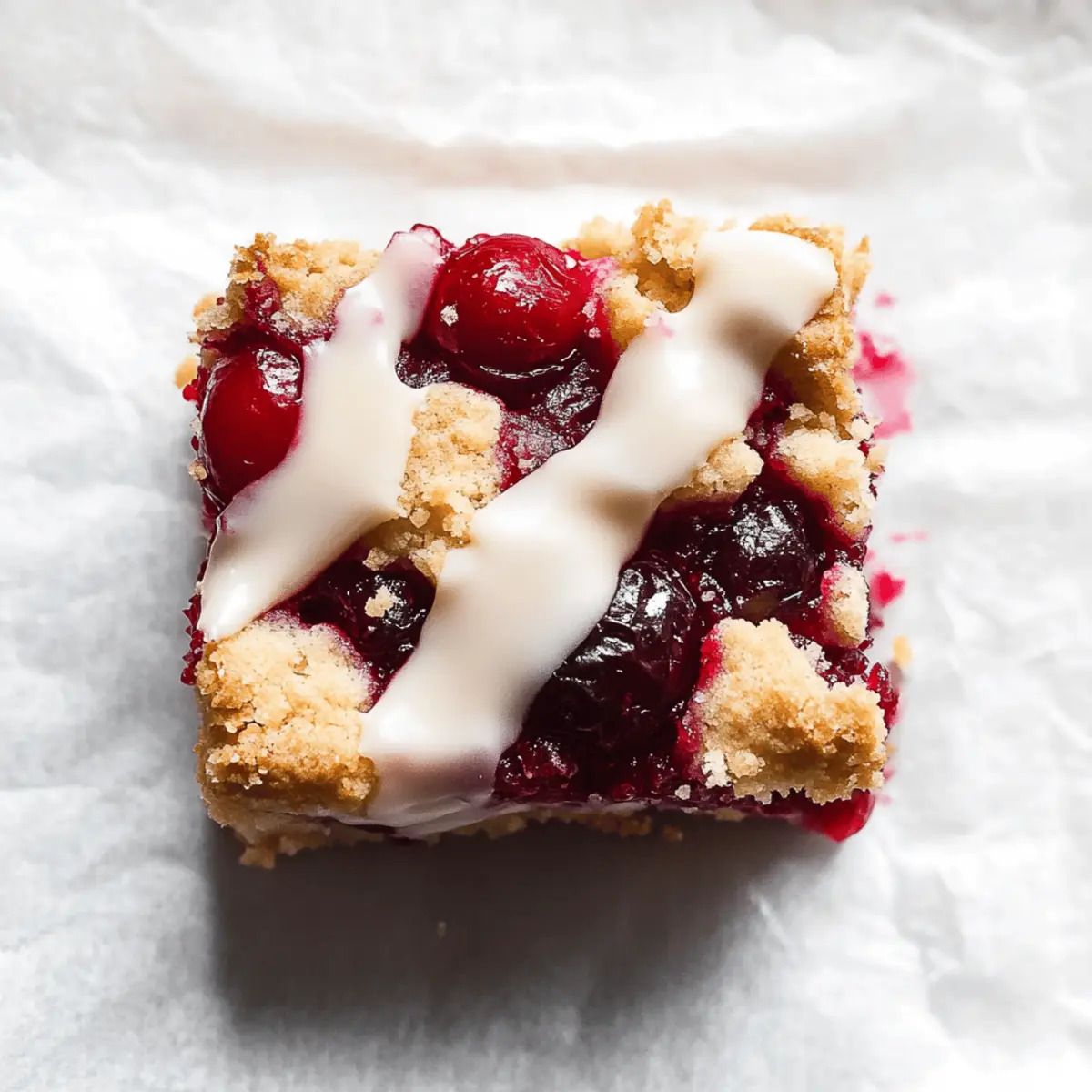 As I rummaged through my pantry, the vibrant red of cranberries caught my eye, sparking an idea for a delightful treat. Cue the Easy One-Pan Cranberry Crumble Bars—an effortless dessert that marries the nostalgic taste of pie with the convenience of bars. With a buttery shortbread crust that crumbles perfectly, a tart cranberry filling bursting with citrus sweetness, and a luscious vanilla glaze drizzled on top, these bars offer a festive flair to any gathering. What I love most is how quickly they come together, making them the perfect solution for unexpected visitors or cozy family nights. Plus, they’re a scrumptious way to embrace the holiday spirit without dirtying up the whole kitchen! Ready to dive in? Let’s create a masterpiece your loved ones won’t forget. Why are these bars a must-try? Quick and Simple: In just one pan, you can whip up these mouthwatering cranberry crumble bars. No fuss, just fun, making them ideal for bakers of any skill level! Festive Flavor: Bursting with a mix of tart cranberries and sweet vanilla, these bars capture the essence of the holiday season perfectly. Versatile Treat: Great for potlucks, family gatherings, or even cozy nights in, they’re sure to be a crowd-pleaser! Comforting Textures: With a buttery crust and crumbly topping, every bite is a delightful contrast to the juicy cranberry filling. Is your sweet tooth ready? Find more delicious options, like these Red White Bars, and make dessert the highlight of your meal! Cranberry Crumble Bars Ingredients For the Crust • Butter – Provides richness and moisture to the crust. • Sugar – Sweetens the crust and filling; adjust for varying tartness. • Egg – Binds ingredients for structure; use a flax egg for a vegan alternative. • Vanilla Extract – Adds aroma and flavor; opt for pure vanilla to enhance the taste. • All-Purpose Flour – Gives structure to the bars; swap for gluten-free blend if needed. For the Filling • Cornstarch – Thickens the cranberry filling; essential for stability. • Cranberries – The star of the dish, offering tartness and texture; fresh or frozen work best. • Orange Zest and Juice – Adds a bright citrus flavor; lemon zest is a substitute option. For the Glaze • Powdered Sugar – Used for the sweet vanilla glaze; can substitute with coconut sugar. • Milk or Heavy Cream – Adds creaminess to the glaze; use plant-based milk for a dairy-free version. Don’t forget, these Cranberry Crumble Bars are the perfect way to bring a festive touch to any gathering! Step‑by‑Step Instructions for Cranberry Crumble Bars Step 1: Preheat and Prepare Start by preheating your oven to 350°F (175°C). Take an 8×8-inch baking pan and line it with parchment paper, ensuring there’s enough overhang on the sides for easy removal later. This will create the perfect base for your delightful Cranberry Crumble Bars and keep them from sticking to the pan. Step 2: Cream the Ingredients In a large mixing bowl or stand mixer, cream together the softened butter and sugar for about 3 minutes, until the mixture is light and fluffy. The creamy texture is vital to achieving a tender crust for your Cranberry Crumble Bars. Once fluffy, add in the egg and vanilla extract, mixing well, and scrape the bowl down to ensure everything is evenly combined. Step 3: Mix in Dry Ingredients Sift the all-purpose flour and cornstarch into the butter mixture. Mix gently until just combined; be careful not to overmix, as this can lead to tough bars. The dough should be soft and slightly sticky, perfect for creating your buttery crust while still maintaining a crumbly topping for the bake. Step 4: Press the Dough into the Pan Reserve about 2 cups of the dough for the crumble topping. With the remaining dough, press it evenly into the bottom of your prepared baking pan, creating a solid crust. This crust should be smooth and even, providing a perfect base for the tangy cranberry filling that will follow shortly. Step 5: Bake the Crust Place the pan in your preheated oven and bake the crust for around 15 minutes, or until it turns lightly golden around the edges. Keep an eye on it to ensure it doesn’t overbake, as it will bake further once the topping and filling are added. This step is crucial for that delightful shortbread-like base of the Cranberry Crumble Bars. Step 6: Prepare the Cranberry Filling While the crust is baking, prepare the vibrant cranberry filling. In a medium bowl, combine the fresh or frozen cranberries, sugar, cornstarch, orange zest, orange juice, and a splash of vanilla. Mix until the cranberries are evenly coated; this thickening mixture will create a beautifully tart filling for your bars. Step 7: Assemble the Cranberry Mixture After removing the crust from the oven and allowing it to cool for a few minutes, pour the cranberry filling over the crust, spreading it evenly. This step ensures that every bite of your Cranberry Crumble Bars is packed with that zesty, juicy flavor that complements the richness of the crust. Step 8: Crumble the Reserved Dough Take the 2 cups of reserved dough and crumble it generously over the cranberry filling. Make sure to leave some gaps to allow the cranberries to peek through; this gives the bars a rustic look while ensuring a perfect texture combination when baked. This top layer will bake to a golden brown, offering that signature crumble you love. Step 9: Bake the Bars Return the assembled bars to the oven and bake for approximately 45 minutes. To avoid over-browning, cover the pan with foil for the last 10 to 15 minutes. Once the topping is a lovely golden brown and the cranberry filling is bubbling, it’s time to remove the bars from the oven and let them cool. Step 10: Cool and Glaze After taking the pan out of the oven, allow the Cranberry Crumble Bars to cool completely on a wire rack. This cooling step is crucial for achieving the perfect texture. Meanwhile, you can prepare the sweet vanilla glaze; simply whisk together
