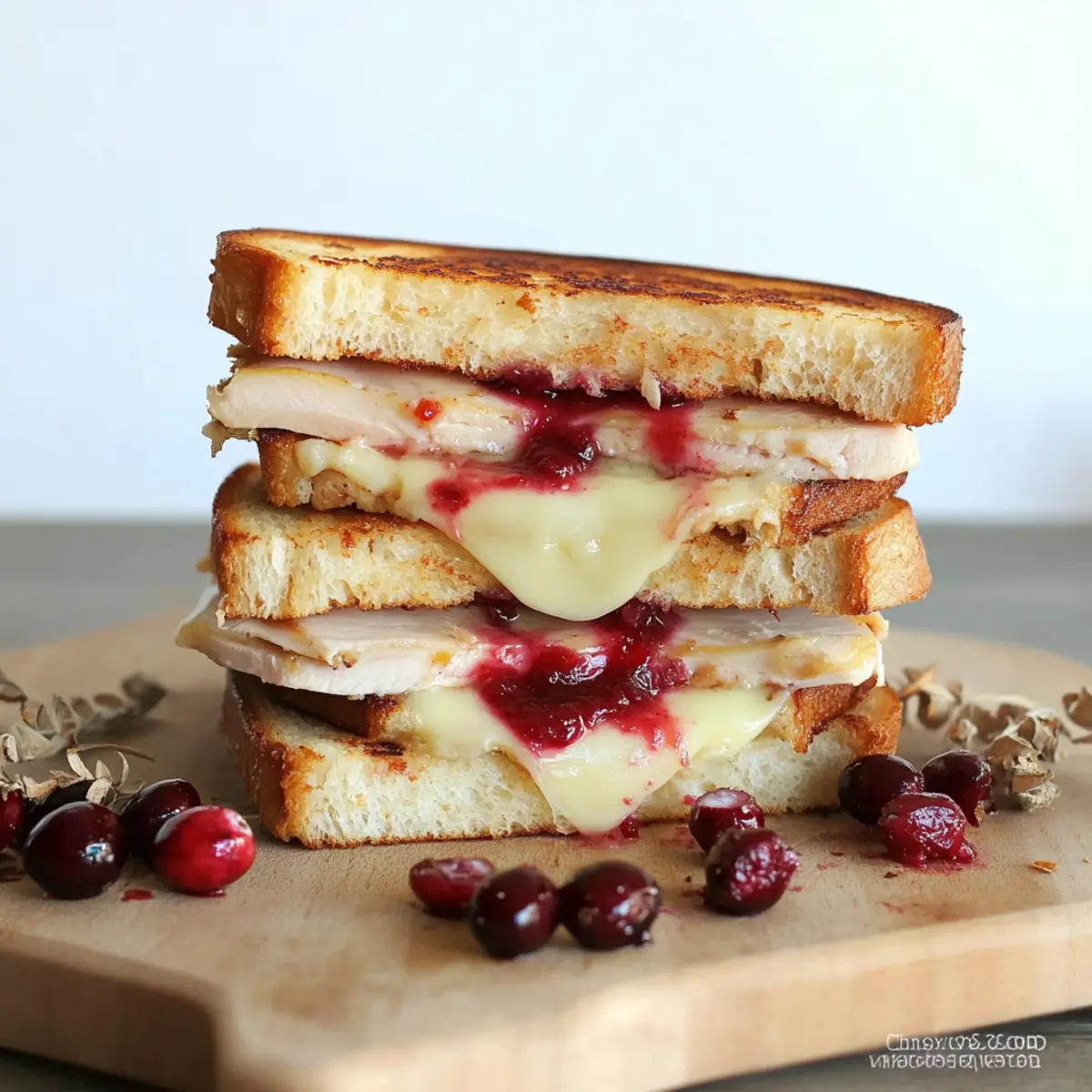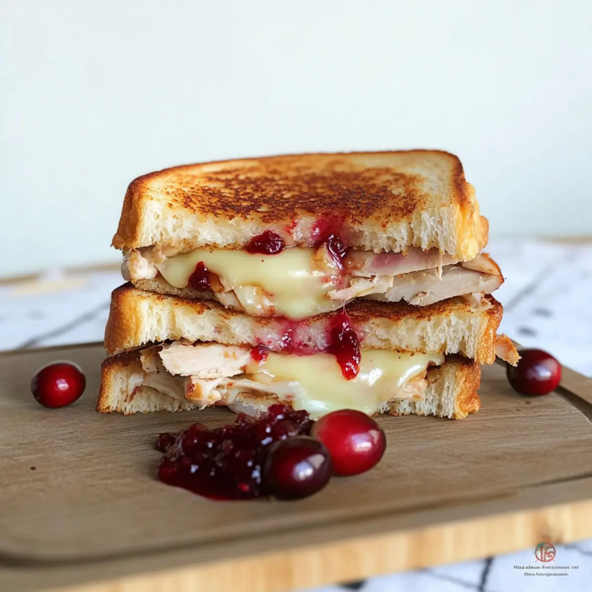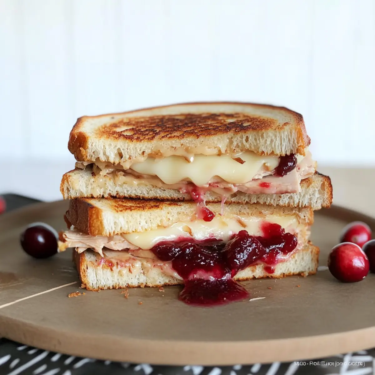 As I craved a cozy meal, I found myself staring at the remnants of Thanksgiving dinner, the turkey and cranberry sauce begging for a new life. Enter the Cranberry Turkey Grilled Cheese Sandwich, a delightful twist that transforms leftover favorites into a comforting, soul-warming delight. This easy recipe not only reimagines your holiday flavors but also allows you to whip up a scrumptious meal in just minutes. Picture the savory turkey smothered in creamy provolone, layered with tangy cranberry sauce, all nestled between perfectly toasted bread. It’s not just a sandwich; it’s a tasty hug on a plate that will win over the whole family. Ready to impress your taste buds with this delightful fusion of flavors? Let’s dive in! Why Try This Cranberry Turkey Grilled Cheese? Comforting Twist: This sandwich is a fantastic way to reinvent your holiday leftovers, turning what might be mundane into a cheesy masterpiece. Quick & Easy: In just minutes, you’ll have a satisfying meal that requires minimal prep, perfect for busy weeknights or spontaneous cravings. Flavor Explosion: The sweet and tangy cranberry sauce pairs perfectly with savory turkey and creamy provolone, creating a balanced bite that’s hard to resist. Versatility Galore: Feel free to swap out turkey for chicken or ham, or even add some fresh spinach for extra nutrients. Looking for side ideas? Consider a light salad or homemade potato chips to complete your meal! Crowd-Pleaser: Everyone from kids to adults will adore this sandwich. It’s the cozy comfort food that brings everyone to the table. Don’t miss out on this delicious take on a classic! Cranberry Turkey Grilled Cheese Ingredients For the Sandwich Bread – Your choice of freshly baked or toasted bread provides the perfect base; sourdough or multigrain adds extra flavor. Turkey – Use leftover Thanksgiving turkey for a cozy touch, or deli turkey for a quick and convenient option. Cranberry Sauce – Sweet and tangy, this ingredient enhances the overall flavor; homemade or canned works, but avoid overly runny varieties. Provolone Cheese – Melts beautifully for that gooey texture; try mozzarella or cheddar for a different taste, but provolone shines in this cranberry turkey grilled cheese. Butter or Mayonnaise – Essential for grilling the bread to a golden perfection; using mayonnaise can add richness to your sandwich. Optional Toppings Fresh Spinach – Add a handful for a burst of nutrition and a refreshing crunch. Sliced Apples – Consider this option for a sweet, crunchy twist that complements the flavor profile beautifully. Step‑by‑Step Instructions for Cranberry Turkey Grilled Cheese Step 1: Preheat the Skillet Begin by heating a non-stick skillet over medium heat for about 2 minutes. This ensures your Cranberry Turkey Grilled Cheese Sandwich will cook evenly and prevent sticking. You’ll know it’s ready for grilling when you feel a gentle warmth radiating from the surface, a hint of deliciousness in the air! Step 2: Prepare the Bread While the skillet warms, take your slices of bread and spread a generous layer of butter or mayonnaise on one side of each slice. This step is crucial as it creates a crispy, golden exterior for the sandwich. As you spread, be sure to cover every edge for optimal browning when grilled. Step 3: Build the Sandwich Once your skillet is hot, place one slice of bread buttered side down in the skillet. Layer on a slice of provolone cheese, followed by a good portion of turkey and a scoop of cranberry sauce. Top it off with another slice of provolone to create that gooey center. Finally, add the second slice of bread, buttered side facing up. Step 4: Grill to Perfection Cook the sandwich for about 3-4 minutes, pressing down gently with a spatula to help the cheese melt. Keep an eye on the bread—when it turns a rich golden brown and you catch a whiff of that toasty aroma, it’s time to flip! Step 5: Flip and Finish Cooking Carefully flip the sandwich over and grill for another 3-4 minutes. You want to hear that satisfying sizzle as the cheese continues to melt inside. As the second side becomes golden brown, your Cranberry Turkey Grilled Cheese will transform into a cheesy masterpiece. Step 6: Serve and Enjoy When both sides are perfectly crisped and the cheese is melted within, carefully remove the sandwich from the skillet. Allow it to cool for a moment, then cut it in half to reveal the delightful layers. Serve warm, pairing it with your favorite sides for a comforting meal that everyone will adore! Expert Tips for Cranberry Turkey Grilled Cheese Perfect Heat: Maintain medium heat while grilling to prevent burning your bread before the cheese melts. Adjust if necessary to keep it controlled. Cheese Choices: While provolone is recommended for its meltability, don’t hesitate to experiment with different cheeses like sharp cheddar for a flavor boost in your cranberry turkey grilled cheese. Layering Technique: Ensure a balanced distribution of turkey and cranberry sauce in your sandwich to avoid sogginess; too much cranberry can make it overly runny. Use Fresh Bread: Opt for a good quality, fresh bread for the best texture and flavor—sourdough or multigrain can elevate your sandwich experience! Don’t Rush: Allow the sandwich to grill longer for a richer, golden result. Patience ensures that the cheese inside melts to perfection and that every bite is scrumptious. Cleanup Tip: A non-stick skillet is highly recommended for easier cleanup and to achieve that beautifully golden crust you desire from your grilled cheese. Make Ahead Options These Cranberry Turkey Grilled Cheese Sandwiches are perfect for busy weeknights and meal prep enthusiasts! You can prepare the turkey and cranberry sauce up to 3 days in advance and store them in airtight containers in the refrigerator. For optimal flavor, assemble the sandwich ingredients (without grilling) and refrigerate them for up to 24 hours before cooking. To prevent the bread fro