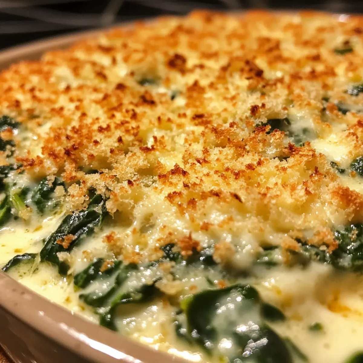 As I stirred the creamy mixture in my skillet, the rich aroma of Gruyere cheese enveloped the kitchen, transforming it into a cozy haven. My recipe for Creamed Spinach with Gruyere and Garlic Breadcrumbs combines the smoothness of spinach with a delightful crunch on top, making it the perfect comfort food for any occasion. This dish is not only a fantastic way to sneak in some greens but also a crowd-pleaser that elevates any meal, particularly during festive gatherings. Plus, it’s gluten-free, making it accessible for all diners! How could you resist such a delicious and indulgent side? Let’s dive into the recipe and explore the joy of homemade comfort food! Why is this creamed spinach special? Comforting Delight: This creamed spinach with Gruyere embodies the essence of comfort food, creating a warm and inviting atmosphere at any meal. Irresistible Flavor: The nutty Gruyere cheese blends seamlessly with creamy spinach, making each bite a savory explosion of taste. Crispy Crunch: Topped with golden garlic breadcrumbs, you’ll experience a satisfying textural contrast that elevates the dish. Quick and Easy: This recipe comes together in just 30 minutes, making it a perfect choice for busy weeknights or last-minute dinner guests. Versatile Pairing: Serve it alongside your favorite main dishes like prime rib or roasted chicken for a complete, satisfying dining experience. Don’t forget to check out our Mushroom Spinach Stuffed sweet potatoes for more ways to enjoy greens! Creamed Spinach with Gruyere Ingredients For the Spinach Mixture 20 oz Frozen Chopped Spinach – The primary vegetable base; fresh spinach can be used instead, just blanch and chop it. 3 tablespoons Unsalted Butter – Provides richness when sautéing; no substitutions necessary. 2 Shallots, minced – Adds aromatic flavor to the cream; use onions if shallots aren’t available. 4 Garlic Cloves, thinly sliced – Infuses depth and aroma; garlic powder works in a pinch. 2 cups Heavy Cream, room temperature – Creates that luscious creaminess; half-and-half is a lighter alternative. 2 teaspoons Dijon Mustard – Offers a delightful tang; yellow mustard can substitute if needed. 1/8 teaspoon Freshly Grated Nutmeg – Enhances the flavor complexity of the dish; can be omitted if you don’t have it. 1/2 teaspoon Freshly Ground Black Pepper – For seasoning and spice; adjust to taste. 3/4 cup Finely Grated Gruyere Cheese – Offers a creamy, nutty flavor that enriches the dish—they say it’s the star of the show! Use Swiss cheese if Gruyere isn’t available. For the Topping 3 tablespoons Unsalted Butter (for topping) – Helps brown the breadcrumbs to perfection; no specific substitute is required. 2 teaspoons Fresh Thyme Leaves – Adds lovely herbal notes; dried thyme can be used in a pinch. 1/2 teaspoon Garlic Powder – Enhances the breadcrumb topping’s flavor; omit if you’re avoiding garlic. 1/2 cup Panko Breadcrumbs – Provides that irresistible crunch; regular breadcrumbs work too if necessary. This recipe for Creamed Spinach with Gruyere is your ticket to creating a cozy night in, no matter the occasion! Step‑by‑Step Instructions for Creamed Spinach with Gruyere Step 1: Prep Spinach Begin by thawing the frozen chopped spinach, draining it thoroughly to remove excess water. Use a clean kitchen towel to wring out any remaining moisture, ensuring your creamed spinach isn’t too watery. If you prefer fresh spinach, blanch and chop it before adding to the mixture. Set the prepared spinach aside for later use. Step 2: Make Topping In a small skillet, melt 3 tablespoons of unsalted butter over medium heat. Once the butter is bubbling, stir in 2 teaspoons of fresh thyme leaves, and then add ½ cup of panko breadcrumbs and ½ teaspoon of garlic powder. Toss the mixture well until the breadcrumbs are coated and golden brown, about 3-4 minutes. Remove from heat and set aside in a bowl. Step 3: Sauté Shallots and Garlic In a large skillet, melt another 3 tablespoons of unsalted butter over medium-low heat. Add 2 minced shallots and 4 thinly sliced garlic cloves, cooking until softened but not browned, about 5 minutes. This will create a fragrant base for your creamed spinach with Gruyere, so keep the heat gentle and stir occasionally. Step 4: Prepare Cream Sauce Increase the heat to medium, then whisk in 2 cups of room-temperature heavy cream, followed by 2 teaspoons of Dijon mustard, 1/8 teaspoon of freshly grated nutmeg, and ½ teaspoon of ground black pepper. Allow the mixture to simmer for about 5-6 minutes, stirring constantly until it slightly thickens and bubbles gently. This luscious cream sauce will form the foundation of your dish. Step 5: Combine Spinach Stir the prepared spinach into the creamy sauce, mixing well to ensure it’s evenly coated. Adjust the seasoning with salt and pepper to your taste, then reduce the heat to low. Allow the combined creamed spinach to simmer together for another 5 minutes, letting the flavors meld beautifully. Step 6: Finish Dish Remove the skillet from heat and fold in ¾ cup of finely grated Gruyere cheese until it melts into the creamy mixture. This is what makes your creamed spinach with Gruyere truly indulgent! Finally, sprinkle the reserved garlic breadcrumb topping generously over the creamy spinach before serving it hot. Enjoy your comforting creation! What to Serve with Creamed Spinach with Gruyere? Elevate your mealtime with delightful accompaniments that perfectly complement the luscious flavors of this creamy dish. Roasted Chicken: Juicy, herb-seasoned chicken pairs beautifully with the rich creaminess, creating a delightful contrast in flavors. Prime Rib: The savory, robust flavors of prime rib enhance the creaminess of the spinach, providing a luxurious dining experience. Garlic Mashed Potatoes: Creamy and buttery mashed potatoes add a comforting, velvety texture, making for a comforting plate. Grilled Salmon: The subtle smokiness of grilled salmon b