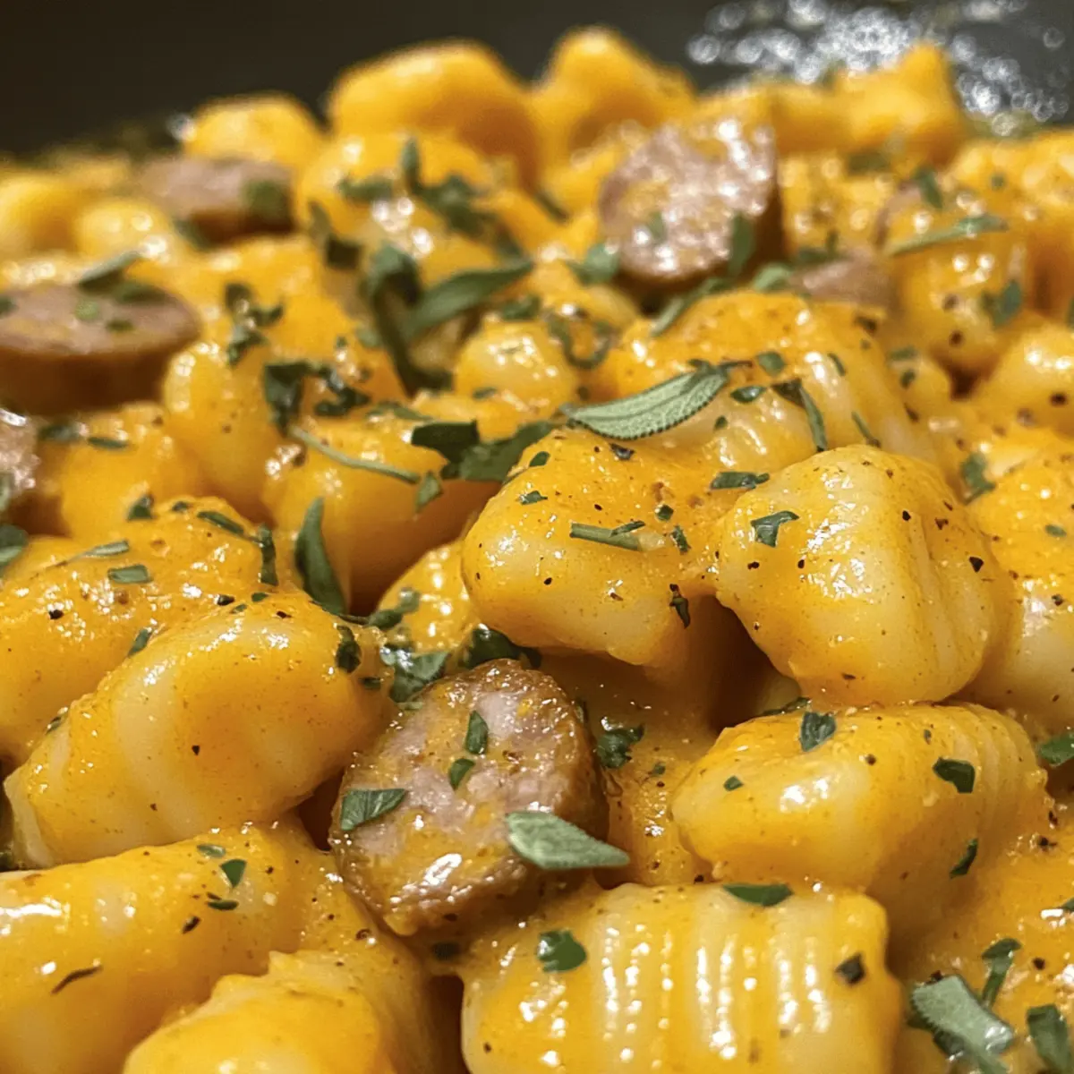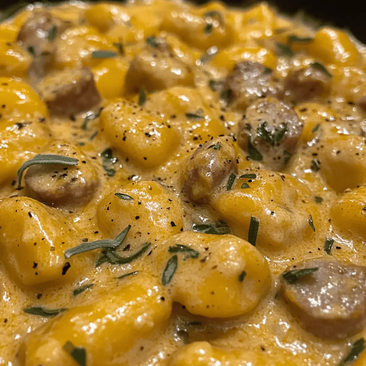 Just the other day, I found myself cradling a bowl of pure comfort: Creamy Butternut Squash Gnocchi and Sausage. The moment I took a bite, the flavors danced on my palate, evoking cozy fall afternoons. This dish beautifully marries pillowy gnocchi, savory sausage, and a luxe butternut squash sauce that feels like a warm hug after a long day. In less than 40 minutes, you can whip up this soul-soothing meal that not only satisfies but also impresses. Perfect for busy weeknights or when you want to treat guests without spending hours in the kitchen, it caters to both comfort and convenience. Plus, if you’re looking for a gluten-free option, I’ve got you covered! Do you crave a little gourmet magic in your everyday cooking? Why is this dish a must-try? Comforting and wholesome, this Creamy Butternut Squash Gnocchi and Sausage dish warms your heart and soul with every bite. Quick cooking is a blessing on busy nights, delivering gourmet flavors in under 40 minutes. Versatile enough to accommodate dietary preferences, you can easily swap out ingredients for gluten-free options or lighter sausages. Flavor-packed, the rich butternut squash sauce envelops tender gnocchi and savory sausage, creating a satisfying blend. Need more inspiration? Check out ways to enhance your dish with fresh herbs or explore gluten-free alternatives that still pack a punch! Creamy Butternut Squash Gnocchi Ingredients • Dive into the heart of this cozy dish with these essential ingredients! For the Sauce Heavy Cream – Adds a rich, velvety texture that elevates the sauce’s creaminess. Butternut Squash Puree – Infuses the sauce with natural sweetness; feel free to use homemade or store-bought for convenience. Chicken Broth – Enhances flavors and helps cook the gnocchi to perfection; opt for low-sodium for better control over seasoning. Garlic – Essential for creating a robust flavor base; fresh is always best for an aromatic kick. For the Gnocchi and Sausage Potato Gnocchi – Offers a delightful, fluffy texture that pairs beautifully with the sauce; cooks in minutes, making it a quick meal option. Italian Sausage – Provides a savory, spicy kick; choose mild or spicy based on your preference for flavor intensity. For the Herbs Fresh Sage – Imparts a warm, earthy flavor that complements the sweetness of the butternut squash; a little goes a long way! Fresh Thyme – Adds subtle peppery notes; if you’re in a pinch, dried thyme works as a great substitute! Seasoning Salt and Freshly Ground Black Pepper – Essential to balance the dish’s flavors; adjust according to taste and the inherent saltiness of the sausage. Bring together these flavorful ingredients, and you’ll unlock the secrets to a deliciously comforting evening. Enjoy crafting this delightful Creamy Butternut Squash Gnocchi dish that will make everyone feel at home! Step‑by‑Step Instructions for https://nodashofgluten.com/creamy-butternut-squash-gnocchi-and-sausage/ Step 1: Prepare the Sausage Remove the casings from the Italian sausage and slice it evenly into bite-sized pieces. This ensures each piece cooks evenly and infuses its savory flavor throughout the dish. Set aside while you gather the remaining ingredients for this Creamy Butternut Squash Gnocchi and Sausage recipe. Step 2: Cook the Sausage In a spacious skillet, heat a drizzle of olive oil over medium heat. Once the oil shimmers, add the sliced sausage and cook for about 6 minutes, stirring occasionally, until the sausage is browned and crispy on the edges. This step not only adds depth to the dish but also imparts that delicious flavor base. Step 3: Combine Key Ingredients Next, add the uncooked potato gnocchi directly into the skillet with the sausage. Pour in the heavy cream and chicken broth, stirring gently to combine. Raise the heat to bring the mixture to a light boil. You’ll know it’s ready when the sauce starts to bubble, enveloping the gnocchi beautifully. Step 4: Add Butternut Squash and Garlic Stir in the butternut squash puree and minced garlic for a touch of sweetness and a robust flavor. Reduce the heat to medium-low and let the mixture simmer for about 5-7 minutes, stirring occasionally. You’ll notice the sauce thickening to a velvety consistency, marrying all the flavors together in this delightful creamy sauce. Step 5: Finish with Herbs and Seasoning Incorporate half of the fresh sage and thyme into the skillet, stirring well. This is the perfect moment to taste and adjust the seasoning, adding salt and freshly ground black pepper as desired. Allow the sauce to simmer for another minute, ensuring the herbs release their fragrant oils into the dish. Step 6: Serve Remove the skillet from the heat and dish out your creamy butternut squash gnocchi and sausage while it’s still piping hot. Garnish with the remaining fresh herbs for a burst of color and flavor. Enjoy this comforting meal alongside a slice of crusty bread for a complete, cozy dinner experience. Creamy Butternut Squash Gnocchi Variations Feel free to get creative with this luscious dish and make it your own! Each twist will elevate your experience, whether you’re craving something light or a little more indulgent. Gluten-Free Gnocchi: Swap regular gnocchi for a gluten-free alternative, ensuring everyone can indulge in this comforting dish without worry. Sausage Alternatives: Use chicken or turkey sausage for a lighter version that packs a similar punch of flavor but with less fat. It’s a wonderful way to keep the dish satisfying without the heaviness. Vegetable Variations: Add seasonal vegetables like spinach or kale for a pop of color and nutrition. They’ll complement the creamy sauce beautifully, adding character and freshness. Spicy Twist: Stir in a pinch of red pepper flakes or diced jalapeños for a kick of heat. This adds an exciting layer of flavor without overwhelming the dish. Herb Substitutions: Experiment with fresh basil or oregano instead of sage and thyme. This can cre