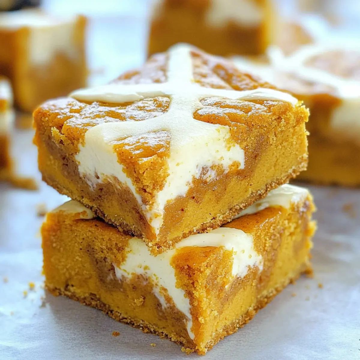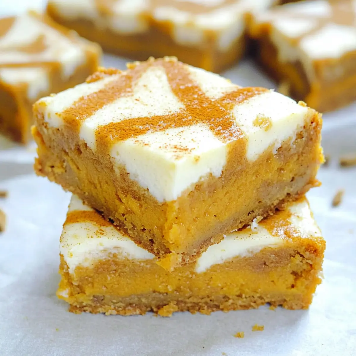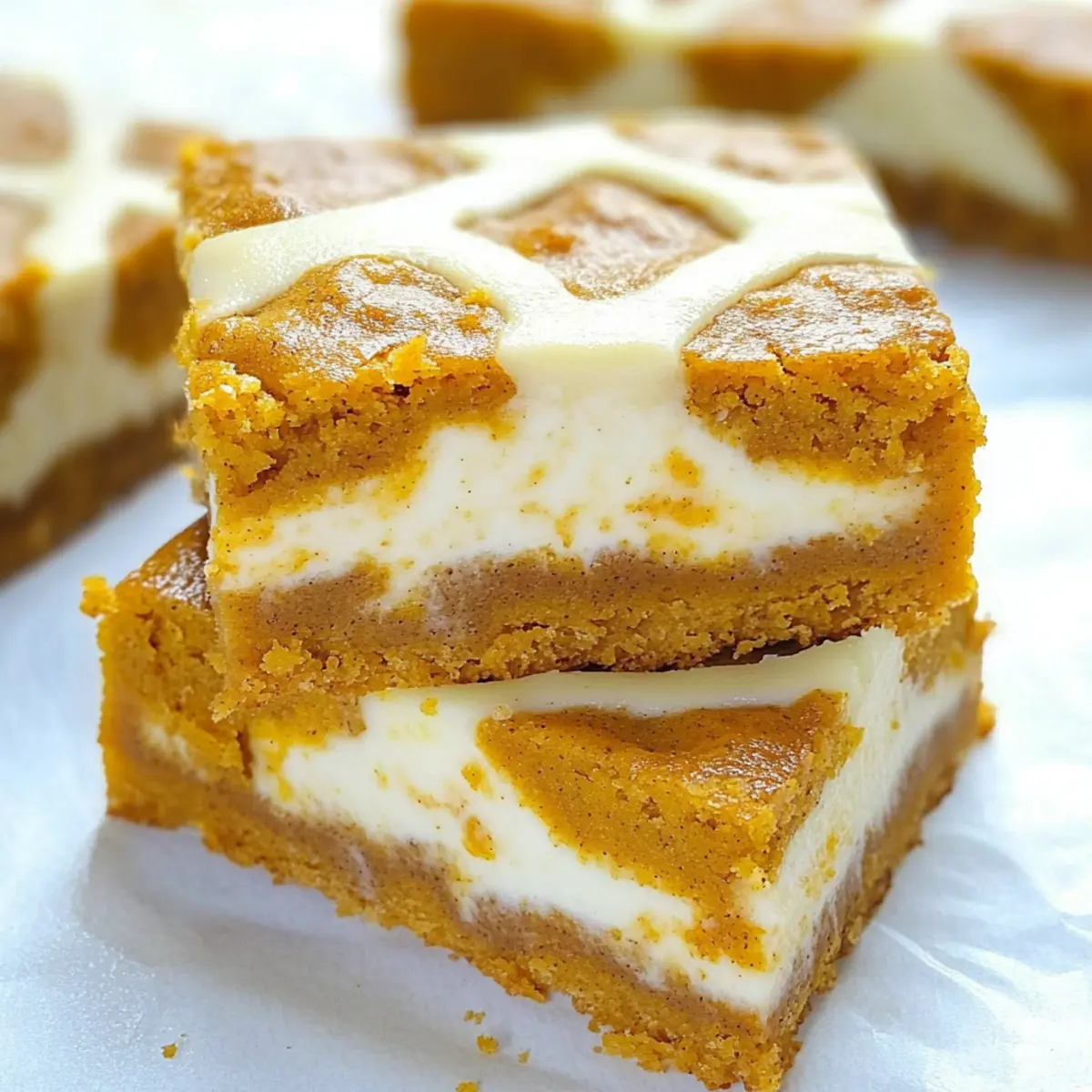 As the leaves turn golden and the air becomes crisp, I find myself dreaming of cozy gatherings filled with laughter and the rich aroma of baked goods. Enter my Creamy Pumpkin Cheesecake Bars—this is my go-to fall dessert that perfectly blends the joy of seasonal flavors with a texture that’s oh-so-moist. Not only are these bars incredibly easy to whip up, making them a hit with both novice and experienced bakers, but they also serve as the star attraction at any celebration. Whether it’s for a family brunch or a festive potluck, these creamy delights will leave your guests begging for the recipe. Are you ready to fill your kitchen with the scent of autumn and indulge in a sweet treat that captures the essence of the season? Let’s get started! Why are these pumpkin bars irresistible? Moist and decadent, these Creamy Pumpkin Cheesecake Bars deliver a taste of fall like no other. Effortless to make, even kitchen novices can whip these up quickly for any occasion. Seasonal delight with warm spices that evoke cozy autumn vibes; they’re perfect for everything from brunch to Thanksgiving! Versatile with variations, feel free to add chocolate chips or swap oils for a healthier twist. Crowd-pleaser guaranteed, watch guests savor each bite and ask for the recipe—just like with my Oreo Cheesecake Savor or Pumpkin Cream Cheese! Creamy Pumpkin Cheesecake Bars Ingredients For the Pumpkin Batter Eggs – A vital binding agent, adding essential moisture for that perfect texture. Sugar – Sweetness and caramelization; substitute with Splenda for a lower-calorie version. Vegetable Oil – Provides moisture and richness; melt coconut oil for a healthier alternative. Pumpkin Puree – The star of this fall dessert; opt for canned or freshly roasted pumpkin. Vanilla Extract – Amplifies flavors; using pure extract will enhance the richness. All-Purpose Flour – Gives structure; substitute with a gluten-free flour blend if needed. Baking Powder & Baking Soda – Essential leavening agents that help your bars rise perfectly. Spices (Ground Cinnamon, Nutmeg, Ginger) – Infuses fall flavors; adjust to your taste or use pumpkin pie spice for an easy option. For the Cream Cheese Layer Cream Cheese – Adds a rich, creamy texture; ensure it’s softened for easy mixing. Cornstarch – Stabilizes the mixture, ensuring your bars hold their shape beautifully. Sugar – Sweetness for the cream cheese; consider reducing for a lighter finish. Vanilla Extract – Enhances the overall flavor of the cream cheese layer. Remember, these Creamy Pumpkin Cheesecake Bars are a delightful way to embrace the fall season, making them a must-try for any gathering! Step‑by‑Step Instructions for Creamy Pumpkin Cheesecake Bars Step 1: Preheat the Oven Begin by preheating your oven to 350°F (175°C). Prepare a 10 x 15-inch jelly roll pan by lining it with parchment paper or greasing it lightly. This will ensure your Creamy Pumpkin Cheesecake Bars come out easily after baking, allowing for that perfect set and easy slicing later on. Step 2: Mix the Wet Ingredients In a large mixing bowl, beat together the eggs and sugar until the mixture is well combined and slightly frothy, about 2-3 minutes. Next, incorporate the vegetable oil, pumpkin puree, and vanilla extract. Mix until everything is smooth and creamy, ensuring that no lumps remain, for a moist base that defines your delightful pumpkin bars. Step 3: Combine the Dry Ingredients In a separate bowl, sift together the all-purpose flour, baking powder, baking soda, and warm spices like cinnamon, nutmeg, and ginger. Gradually add this dry mixture to the wet ingredients while gently folding with a spatula. Mix until just combined; overmixing can lead to dense bars, so stop as soon as the flour disappears for that perfect texture. Step 4: Spread the Batter Pour the creamy pumpkin batter into the prepared jelly roll pan, using a spatula to spread it evenly across the surface. Aim for a uniform layer that fills the pan without leaving any gaps. You’ll want a smooth and steady foundation for your creamy topping, setting the stage for your delicious Creamy Pumpkin Cheesecake Bars. Step 5: Prepare the Cream Cheese Mixture In another bowl, beat the softened cream cheese with sugar, vanilla extract, and cornstarch until the mixture is silky and smooth. This will create a rich topping for your bars. Achieving a creamy consistency is key here, as this layer adds an indulgent touch to the pumpkin base, making your dessert extra special. Step 6: Create the Topping Pattern Scoop the cream cheese mixture into a piping bag or a zip-top bag with the corner snipped off. Carefully pipe a crisscross pattern over the top of the pumpkin batter, creating beautiful swirls. This visually appealing design not only looks festive but ensures that every bite of your Creamy Pumpkin Cheesecake Bars gets that luscious cream cheese flavor. Step 7: Bake to Perfection Place the pan in the preheated oven and bake for 25-30 minutes. Keep an eye out for doneness; the bars are ready when a toothpick inserted in the center comes out clean. The edges should be slightly golden, and the center will be set but still moist, promising a delightful texture in every bite. Step 8: Cool and Slice Allow your Creamy Pumpkin Cheesecake Bars to cool completely in the pan on a wire rack. This cooling period is essential as it helps the bars firm up, making them easier to slice without crumbling. Once cooled, carefully lift them out of the pan using the parchment paper and cut them into squares or rectangles for serving. Step 9: Serve or Store These delicious bars can be enjoyed immediately or stored in an airtight container in the refrigerator for up to five days. The flavors develop beautifully overnight, making them even more irresistible when served alongside a warm drink. Perfect for cozy gatherings, your Creamy Pumpkin Cheesecake Bars will undoubtedly be a crowd favorite! What to Serve with Creamy Pumpkin Cheesecake