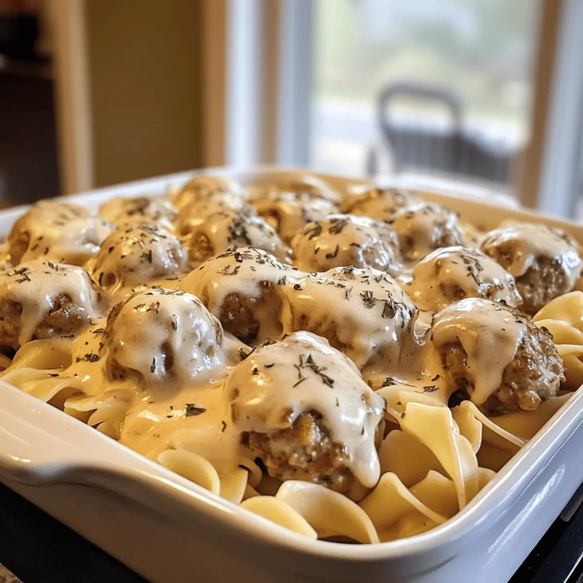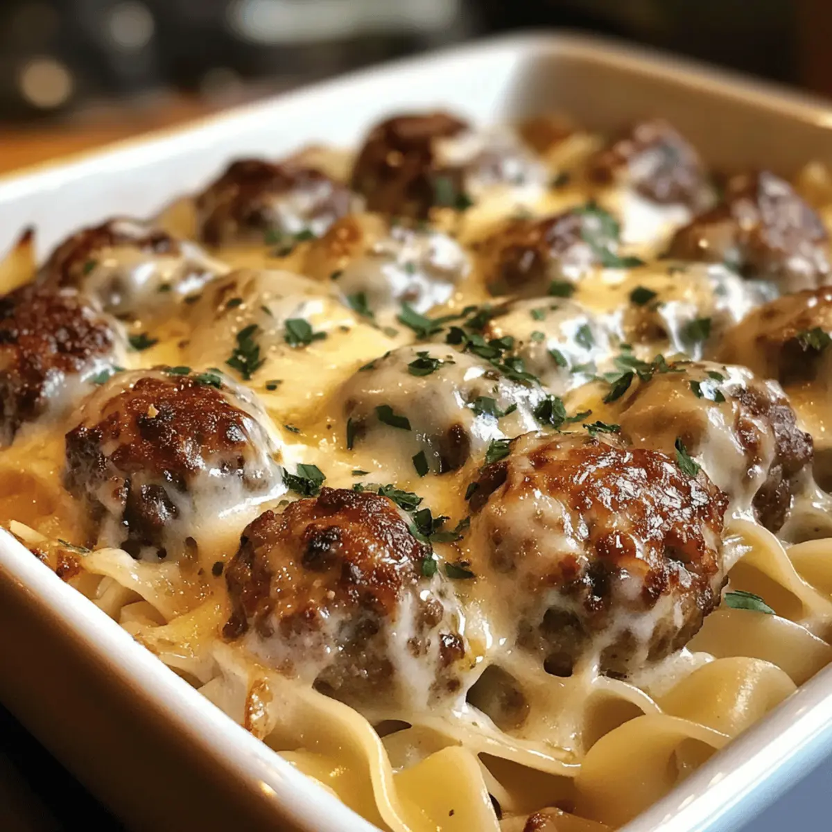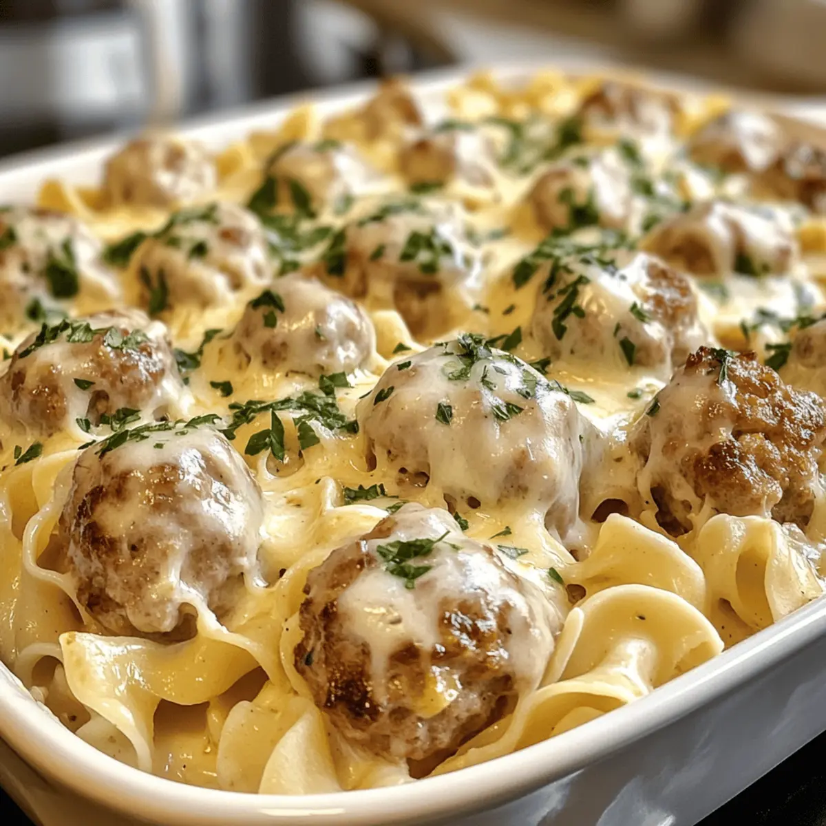 As the comforting aroma of baked meatballs wafts through the kitchen, I can’t help but feel a wave of nostalgia for family dinners past. This Creamy Swedish Meatball Noodle Bake is my go-to for cozy evenings when I crave something rich and satisfying yet hassle-free. Not only is it a delightful twist on traditional Swedish meatballs, but it’s also a complete meal in one dish, making it a lifesaver on busy weeknights. The warm egg noodles combined with tender meatballs and a luscious creamy sauce create a filling experience that pleases everyone at the table. Plus, with options for gluten-free breadcrumbs and lighter protein choices, it accommodates various dietary needs without compromising on flavor. Are you ready to bring a touch of Scandinavian comfort to your dinner routine? Let’s dive into this delicious recipe together! Why is this recipe a must-try? Comforting, creamy goodness: This Creamy Swedish Meatball Noodle Bake envelops you in warmth, making it the perfect dish for cozy nights. Complete meal: With savory meatballs, tender noodles, and a rich sauce, it’s all in one dish—no need for complicated sides. Easy to customize: Substitutions like gluten-free breadcrumbs and ground turkey allow you to cater to dietary needs effortlessly. Time-saving: Assemble it quickly and let the oven do the work—ideal for busy weeknights! Crowd-pleaser: This bake will win over friends and family alike, just like my Garlic Butter Beef dish! Creamy Swedish Meatball Noodle Bake Ingredients For the Meatballs • Ground Beef – Provides the main protein and rich flavor base for the meatballs. • Egg – Binds the meatball mixture together for structure; replace with a flax egg for a vegan option. • Breadcrumbs – Adds texture and helps the meatballs hold their shape; use gluten-free breadcrumbs for a gluten-free dish. • Onion – Contributes moisture and aromatic flavor; shallots can be used for a milder taste. • Ground Nutmeg – Adds a warm spice note, essential for the traditional Swedish flavor profile. • Garlic Powder – Enhances overall flavor; consider using fresh minced garlic for a brighter taste. • Olive Oil – Used for browning, adding flavor; any neutral oil like canola can substitute. For the Noodle Bake • Egg Noodles – The base providing body and texture; cook slightly under al dente as they’ll bake further. • Beef Broth – Forms the creamy sauce’s liquid base; for a vegetarian version, use vegetable broth. • Worcestershire Sauce – Adds depth of flavor and umami; ensure gluten-free options if needed. • Heavy Cream – Creates that luscious creamy texture; substitute with coconut cream for a dairy-free option. • Swiss Cheese – Provides a creamy, nutty topping that melts beautifully; Gruyère or mozzarella can work as alternatives. • Fresh Parsley – Used as a garnish for color and freshness; chives or green onions can be used as substitutes. The Creamy Swedish Meatball Noodle Bake is truly a dish that wraps you in comforting warmth! Step‑by‑Step Instructions for Creamy Swedish Meatball Noodle Bake Step 1: Preheat and Prepare Begin by preheating your oven to 375°F (190°C). While it heats, lightly grease a 9 x 13-inch baking dish to prevent sticking. This will set the stage for your delicious Creamy Swedish Meatball Noodle Bake, ensuring a beautiful, golden finish and easy serving later on. Step 2: Mix the Meatball Ingredients In a sizable mixing bowl, combine the ground beef, breadcrumbs, egg, finely grated onion, ground nutmeg, garlic powder, salt, and pepper. Gently mix until everything is just combined, being careful not to overwork the meat. This step is crucial for creating tender meatballs that will shine in your bake. Step 3: Shape the Meatballs Once your mixture is ready, use your hands to scoop and shape it into meatballs, approximately 1.5 tablespoons each. Place them on a clean plate, making sure they’re evenly sized for consistent cooking. These little flavor-packed gems are the heart of your Creamy Swedish Meatball Noodle Bake. Step 4: Sear the Meatballs Heat a large skillet over medium-high heat and add olive oil, allowing it to heat up until shimmering. Carefully add the meatballs in batches, searing them until they’re browned on all sides, about 5–7 minutes. This browning process develops rich flavor, so take your time before transferring the meatballs to a plate to rest. Step 5: Cook the Egg Noodles Bring a large pot of salted water to a boil, then add the egg noodles. Cook them until they are just 2 minutes shy of al dente, as they will continue to cook while baking. Drain the noodles and set them aside, pausing to admire their perfect texture, ready to absorb the creamy sauce. Step 6: Prepare the Creamy Sauce In the same skillet used for the meatballs, pour in the beef broth, heavy cream, and Worcestershire sauce. Use a wooden spoon to scrape up any flavorful browned bits from the bottom. Simmer the mixture for about 10 minutes, until slightly thickened. This will be the delicious sauce that brings your bake to life. Step 7: Assemble the Bake In your greased baking dish, layer the cooked noodles evenly across the bottom. Next, place the beautifully seared meatballs on top, creating a cozy nest for them. Pour the rich cream sauce evenly over the entire dish, followed by a generous sprinkle of Swiss cheese to create that gooey, melty topping. Step 8: Bake to Perfection Carefully transfer the baking dish to your preheated oven and bake for 20 minutes, or until the cheese is wonderfully melted and bubbly, signifying that the flavors have melded beautifully. The tempting aroma filling your kitchen will make it hard to wait while it bakes. Step 9: Rest and Garnish When your timer goes off, remove the bake from the oven and allow it to rest for 5 minutes. This step is essential for letting the flavors settle. Before serving, sprinkle fresh parsley over the top for a pop of color and a touch of freshness, enhancing the