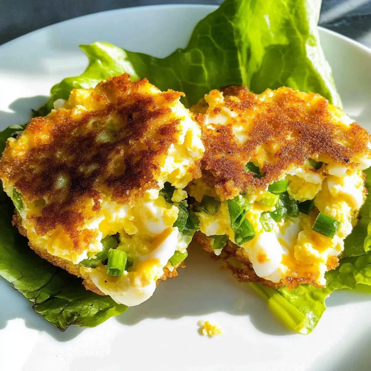 Have you ever faced the dilemma of wanting a comforting meal while keeping it healthy? Enter the Crispy Egg Salad Cakes, a delightful solution that marries the familiar taste of classic egg salad with a satisfying crunch. This low-carb twist turns boiled eggs into a savory treat that’s not only easy to prepare but also a fantastic way to impress your family or guests. The combination of creamy mozzarella and zesty Dijon mustard in these cakes creates an irresistible flavor, while maintaining a healthy profile perfect for keto diets. Imagine indulging in a crispy snack that actually fuels your body instead of weighing you down—sounds tempting, right? Ready to take your egg salad game to the next level? Why Choose Crispy Egg Salad Cakes? Versatile and Fun: These cakes can be enjoyed as a tasty appetizer or a hearty lunch, fitting seamlessly into any meal. Easy to Prepare: With just a few ingredients and simple steps, you’ll have a gourmet dish ready in no time, perfect for busy weeknights. Keto-Friendly: Each cake is low in carbs—only 2g net carbs—making them a smart choice for anyone following a keto diet. Crowd-Pleasing Flavor: The rich combination of mozzarella and parmesan, paired with the tangy Dijon mustard, creates a flavorful bite that delights everyone. Customizable: Feel free to get creative! Add diced peppers for a pop of color or swap mozzarella for feta for a Mediterranean spin. If you’re looking for more light and fresh options, check out my Mango Avocado Salad or Mojito Fruit Salad for some delicious inspiration! Crispy Egg Salad Ingredients • Discover the key ingredients for a scrumptious Crispy Egg Salad! For the Cakes Hard Boiled Eggs – The main protein source; opt for free-range for richer flavor. Low Moisture Mozzarella – Adds creaminess; can be replaced with shredded cheddar for a sharper taste. Parmesan (grated) – Enhances flavor; freshly grated gives the best texture. Mayonnaise – Binds everything together; Greek yogurt works as a lighter, healthier alternative. Dijon Mustard – Imparts tangy depth; substitute with yellow mustard if needed. Green Onions (minced) – Adds a fresh crunch; shallots or chives can be used for a different flavor. Salt and Pepper – Essential seasonings; adjust to suit your palate. Optional Add-Ins Bell Peppers (diced) – For a pop of color and extra crunch. Fresh Herbs – Incorporate dill or parsley for an aromatic lift. Elevate your lunch game with these flavorful ingredients! Step‑by‑Step Instructions for Crispy Egg Salad Cakes Step 1: Mix Ingredients In a large mixing bowl, combine 6 chopped hard-boiled eggs, 1 cup of low moisture mozzarella, 1/2 cup of grated parmesan, 1/4 cup of mayonnaise, and 2 tablespoons of Dijon mustard. Add 1/4 cup of minced green onions, and season with salt and pepper to taste. Stir the mixture thoroughly until well-blended, creating a creamy yet thick consistency that’s perfect for forming cakes. Step 2: Shape Cakes Using a 1/4 cup measuring cup, scoop out the egg salad mixture and gently flatten each scoop into discs about 1/2 inch thick. Carefully place these discs onto a large plate, ensuring they hold their shape. This step is crucial for achieving the perfect texture in your Crispy Egg Salad Cakes, ready for searing. Step 3: Sear Cakes Heat a non-stick skillet over high heat, adding a light coating of cooking spray to prevent sticking. Once the skillet is hot (you should see a shimmer), add the egg salad discs in batches, taking care not to overcrowd the pan. Cook each disc for about 1-2 minutes on each side, until they turn a beautiful golden brown and develop a crispy exterior. Step 4: Serve & Enjoy Once seared to perfection, carefully remove the crispy egg salad cakes from the skillet and let them cool slightly on a paper towel-lined plate. For serving, place the cakes atop butter lettuce leaves or serve them on toasted bread for an added crunch. These Crispy Egg Salad Cakes are versatile, making for an impressive dish that everyone will love! Crispy Egg Salad Variations & Substitutions Feel free to shake things up and let your creativity shine with these delightful twists on the traditional crispy egg salad! Keto-Friendly: For a completely keto-friendly option, replace any mayonnaise with avocado cream. The creamy consistency will keep the flavors rich without the carbs. Mediterranean Feta: Swap out mozzarella for feta cheese for a Mediterranean twist. This adds a burst of tanginess and pairs wonderfully with fresh herbs like dill. Veggie Boost: Stir in diced red bell peppers or crunchy celery to the mixture for added texture and a splash of color. This makes each bite even more delightful! Herb-Infused: Toss in some fresh herbs like parsley, chives, or dill for an aromatic uplift. The freshness truly enhances the savory elements of the salad. Spicy Kick: If you love heat, consider mixing in a teaspoon of sriracha or some diced jalapeños. This will energize the flavor profile while keeping the dish interesting. Cheesy Delight: Add an extra layer of flavor by mixing in some shredded cheddar or pepper jack cheese. The melted cheese brings a wonderful richness that many will enjoy. For more inspirations, don’t miss out on trying my Frito Corn Salad for a fun summer dish or experiment with the sweetness of my Mojito Fruit Salad! This way, you can elevate your meal times beyond the ordinary. What to Serve with Crispy Egg Salad Cakes? Elevate your dining experience by pairing these delightful cakes with dishes that complement their rich, savory profile. Butter Lettuce Wraps: Light and crunchy, these wraps provide a fresh contrast to the crispy textures, enhancing each bite. Perfect for a low-carb meal. Avocado Slices: Creamy avocado adds a rich, buttery flavor that balances the tangy notes from the mustard in the cakes, making every forkful irresistible. Cucumber Salad: The crisp bites of cucumber tossed in a light dressing offer a refreshing contrast, adding a delightful