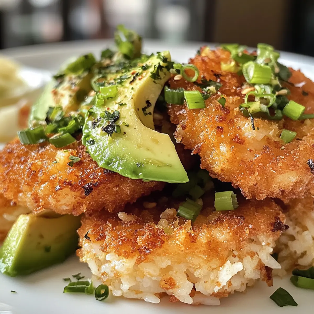 As I savored the last bite of my Crispy Rice with Spicy Shrimp Salad, I realized this dish perfectly marries texture and taste, turning a simple meal into a delightful experience. With the satisfying crunch of golden rice patties and a creamy, zesty shrimp salad on top, it’s not just a recipe; it’s an adventure for the palate. This fusion of Japanese-inspired flavors feels remarkably gourmet but comes together in no time—making it a feast that’s both accessible and visually stunning. Whether you’re entertaining friends or treating yourself, it’s a healthy upgrade from any fast-food run. Now, who’s ready to explore this exciting flavor fusion and elevate their dinner game? Why is This Recipe a Must-Try? Exciting Flavor Fusion: This recipe offers a delicious blend of Japanese-inspired flavors with the crispy rice and spicy shrimp, creating an unforgettable taste sensation. Quick and Easy: You’ll be amazed at how simple it is to whip up this gourmet dish, making it perfect for busy weeknights or casual gatherings. Texture Galore: Experience the fantastic contrast of crispy rice patties topped with creamy shrimp salad that can be garnished with creamy avocado slices. Perfect for Sharing: Whether it’s a cozy dinner or a lively party, this dish is sure to impress your guests and spark delightful conversations. Elevate your meal tonight and try this delightful fusion that stands out among traditional recipes! If you’re looking for more delicious seafood bites, check out my Fried Burrata Spicy or Air Fryer Shrimp recipes. Crispy Rice with Spicy Shrimp Salad Ingredients For the Rice Patties Short Grain Sushi Rice – The sticky texture ensures that the patties hold shape. Vegetable Oil – Ideal for frying with a high smoke point to achieve that golden finish. For the Shrimp Salad Large Shrimp (21-30 count) – These provide a tender and juicy texture once cooked. Green Onions – Adds a fresh, mild sharpness; chives can be used as a versatile alternative. Kewpie Mayonnaise – This creamy-spicy base elevates your shrimp salad; regular mayonnaise can work but lacks the sweet flavor. Sriracha – Infuses a spicy kick into the dish; feel free to adjust based on your spice tolerance. Jalapeño – Fresh heat is perfect for a spicy touch; consider mild peppers like Anaheim for a softer flavor. Panko Breadcrumbs – They bring a light crunch and help maintain the shrimp mixture’s structure. Soy Sauce – Infuses umami depth without overpowering other flavors. For Garnishing Hass Avocado – Adds creamy contrast and visual appeal to your dish. Eel Sauce (optional) – A sweet-salty glaze that enhances and ties together the flavorful elements. Let the process of crafting this Crispy Rice with Spicy Shrimp Salad be as exciting as the first bite! Step‑by‑Step Instructions for Crispy Rice with Spicy Shrimp Salad Step 1: Prep Ingredients Begin by thoroughly rinsing 1 cup of short grain sushi rice in cold water until the water runs clear. Cook the rice in a rice cooker with the appropriate amount of water, typically about 1:1. Use the steam function to ensure it becomes sticky. While the rice cooks, dice 1-2 jalapeños (adjusting for heat preferences), slice a ripe Hass avocado, and devein and rinse 10-12 large shrimp. Step 2: Form Patties Once your sushi rice is cooked, transfer it to a large bowl and let it cool slightly until manageable but still sticky. Use wet hands to shape the rice into small patties, about 2-3 inches in diameter. Aim for a uniform thickness to ensure even cooking later on in your Crispy Rice with Spicy Shrimp Salad. Step 3: Fry Patties Heat a non-stick pan over medium heat and add 2-3 tablespoons of vegetable oil. Once the oil is shimmering (about 350°F), carefully place the rice patties in the pan, ensuring they don’t touch. Fry each side for about 3-4 minutes or until golden brown and crispy. Remove them with a spatula and let them drain on paper towels while you proceed to the next step. Step 4: Cook Shrimp In the same pan, add a little more oil if needed, and sauté the deveined shrimp on medium-high heat. Cook for about 2-3 minutes or until they turn pink and are fully cooked through. Remove from heat and let cool slightly before chopping the shrimp into bite-sized pieces for your shrimp salad. Step 5: Make the Shrimp Salad In a bowl, combine the cooked shrimp with 2 tablespoons of Kewpie mayonnaise, 1-2 teaspoons of sriracha (adjusting to your spice level), a handful of finely chopped green onions, and a splash of soy sauce. Stir until well mixed, and taste to adjust the seasoning. This creamy shrimp mix will be the centerpiece of your Crispy Rice with Spicy Shrimp Salad. Step 6: Assemble Dish To assemble your dish, place each crispy rice patty on a serving plate. Generously top them with the shrimp salad, letting it cascade over the edges for visual appeal. Add slices of avocado and rings of jalapeño for garnish. Drizzle with eel sauce if desired, offering an extra layer of flavor to your beautifully crafted Crispy Rice with Spicy Shrimp Salad. Expert Tips for Crispy Rice with Spicy Shrimp Salad Perfect Rice Texture: Ensure your sushi rice is sticky but not mushy. Rinse thoroughly before cooking to achieve optimal texture for patties. Avoid Sticking: Use a non-stick pan to fry patties, preventing them from tearing apart when flipping. Lightly grease the pan if necessary. Reheat Wisely: Reheat leftover patties in a skillet instead of a microwave to maintain their delightful crunch, ensuring the texture remains perfect. Taste Before Serving: Don’t skip tasting your shrimp salad before final assembly! Adjust spice levels according to your preference for the ultimate flavor balance. Garnish Creatively: Elevate your dish with decorative avocado slices and jalapeño rings. A drizzle of eel sauce adds both flavor and visual appeal. Enjoy crafting your Crispy Rice with Spicy Shrimp Salad and impress friends and family with this gourmet delight! What to 