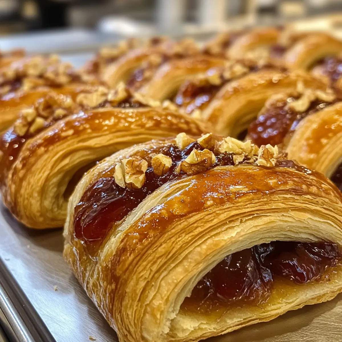 As I rummaged through my grandmother’s old recipe box, a faded card caught my eye—Salenjaci, or Croatian croissants with character. These delightful pastries, a beloved winter treat from the Slavonia region, beckoned me with promises of flaky layers stuffed with homemade jam and ground walnuts. The beauty of these Croatian croissants lies not just in their texture but in the nostalgia they evoke, making them perfect for cozy gatherings or festive occasions. Plus, they’re a wonderful project to elevate your baking skills while delighting friends and family alike. Want to bring a touch of Croatian tradition to your kitchen? Let’s dive into this labor of love that will make your kitchen feel like a warm embrace. Why Are Croatian Croissants So Special? Flaky Perfection: Salenjaci offer a uniquely flaky texture that rivals any bakery’s best offerings. Nostalgic Flavors: The rich combination of homemade jam and walnuts evokes cherished memories of festive gatherings. Culinary Adventure: This recipe is an excellent way to hone your baking skills, taking you through traditional techniques that yield irresistible results. Crowd-Pleasing Treat: Perfect for sharing, these pastries are bound to impress family and friends alike. Get ready to savor the sweet, comforting taste of Croatia in every bite! Croatian Croissants Ingredients For the Dough • Milk – Provides moisture and activates the yeast; use warm milk for better results. • Yeast – Acts as a leavening agent, creating that beloved flakiness; fresh yeast yields the best outcome. • Flour – Gives structure and body to the pastry; all-purpose or bread flour works wonders. • Sugar – Adds sweetness and helps with browning; granulated sugar is ideal. • Salt – Enhances flavor and controls yeast activity; fine sea salt ensures even distribution. • Pork Leaf Fat – The key to a moist, flaky pastry; leaf lard is best, but you can substitute with butter if needed. For the Filling • Ground Walnuts – Brings richness and an inviting texture to the filling; to enhance their flavor, consider lightly toasting them before grinding. • Jam – Adds sweetness and moisture; any jam can be used, but apricot or raspberry pairs beautifully for a delightful contrast. Now you’re all set to create these delightful Croatian croissants that promise a journey into tradition with every bite! Step‑by‑Step Instructions for Croatian Salenjaci Step 1: Activate Yeast In a small bowl, combine 100 ml of warm milk with fresh yeast and a teaspoon of sugar. Allow this mixture to sit for about 10-15 minutes until it becomes frothy and bubbly, signaling that the yeast is active. This step is essential for achieving the perfect rise and flakiness in your Croatian croissants. Step 2: Make Dough In a large mixing bowl, incorporate the remaining warm milk, flour, the frothy yeast mixture, and a pinch of fine sea salt. Stir until combined, then knead the dough briefly on a floured surface for about 5 minutes. Once smooth, place it in a warm spot and cover with a cloth to let it rise for approximately 45 minutes until it doubles in size. Step 3: Prepare Leaf Fat While the dough rises, focus on trimming the pork leaf fat. Remove any veins and refrigerate the fat to keep it firm. Once chilled, shred or grind the fat to ensure it incorporates evenly into the dough, enhancing the flakiness of your Croatian Salenjaci. Step 4: Roll Dough After the dough has risen, gently punch it down to release the air. Roll it out on a floured surface into a thin layer, approximately 1/4 inch thick. Evenly spread one-third of the shredded leaf fat over the surface of the dough to prepare for the lamination process, aiming for an even coverage to create flaky layers. Step 5: Fold Dough Carefully fold the dough over itself in thirds—first the left side, then the right, and finally the top to seal it. Dust the surface with a little flour, then wrap the folded dough in plastic wrap and refrigerate it for 30 minutes. This chilling step is crucial for maintaining the structure and consistency required for your Croatian croissants. Step 6: Repeat Fat Incorporation Retrieving the chilled dough, roll it out again into a similar thin layer. Spread another third of the leaf fat evenly, ensuring coverage. Once done, fold the dough again in thirds, similar to a business letter. After this, wrap it tightly in plastic wrap and refrigerate for another 30 minutes, allowing the fat to stay firm. Step 7: Final Layering Repeat the rolling out and folding process one more time with the last third of the leaf fat. This final incorporation will ensure your Croatian Salenjaci are decadently flaky when baked. Keep the dough wrapped and chilled for 30 minutes after the last fold, giving the layers time to relax. Step 8: Shape Pastries Roll out the dough to a thickness of about 1 cm on a floured surface. Cut the rolled dough into 8×8 cm squares. For the filling, place a spoonful of your choice of jam and a sprinkle of ground walnuts in the center of each square. Fold the corners over to form a pocket and secure it well, shaping it as desired. Step 9: Rest Before Baking Once all pastries are shaped, place them on a parchment-lined baking tray, leaving space between each one. Cover the tray with a cloth and allow the pastries to rest for 15-20 minutes. This crucial resting period helps your Croatian croissants rise sufficiently in the oven, ultimately achieving that perfect flaky texture. Step 10: Bake Preheat your oven to 200°C (390°F) and prepare to bake your Croatian Salenjaci. Once heated, carefully place the tray of pastries in the oven and bake for approximately 20 minutes or until they turn golden and puffed. Keeping an eye on them ensures you capture that optimal golden hue! Step 11: Finishing Touch As soon as the pastries are out of the oven, dust them generously with powdered sugar while they are still warm. The sweetness and warmth will enhance the delightful appearance and taste of