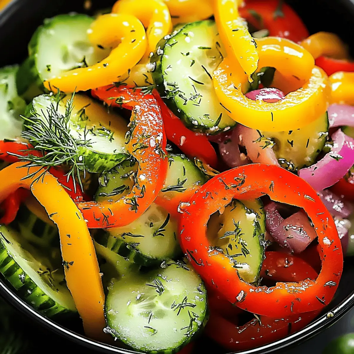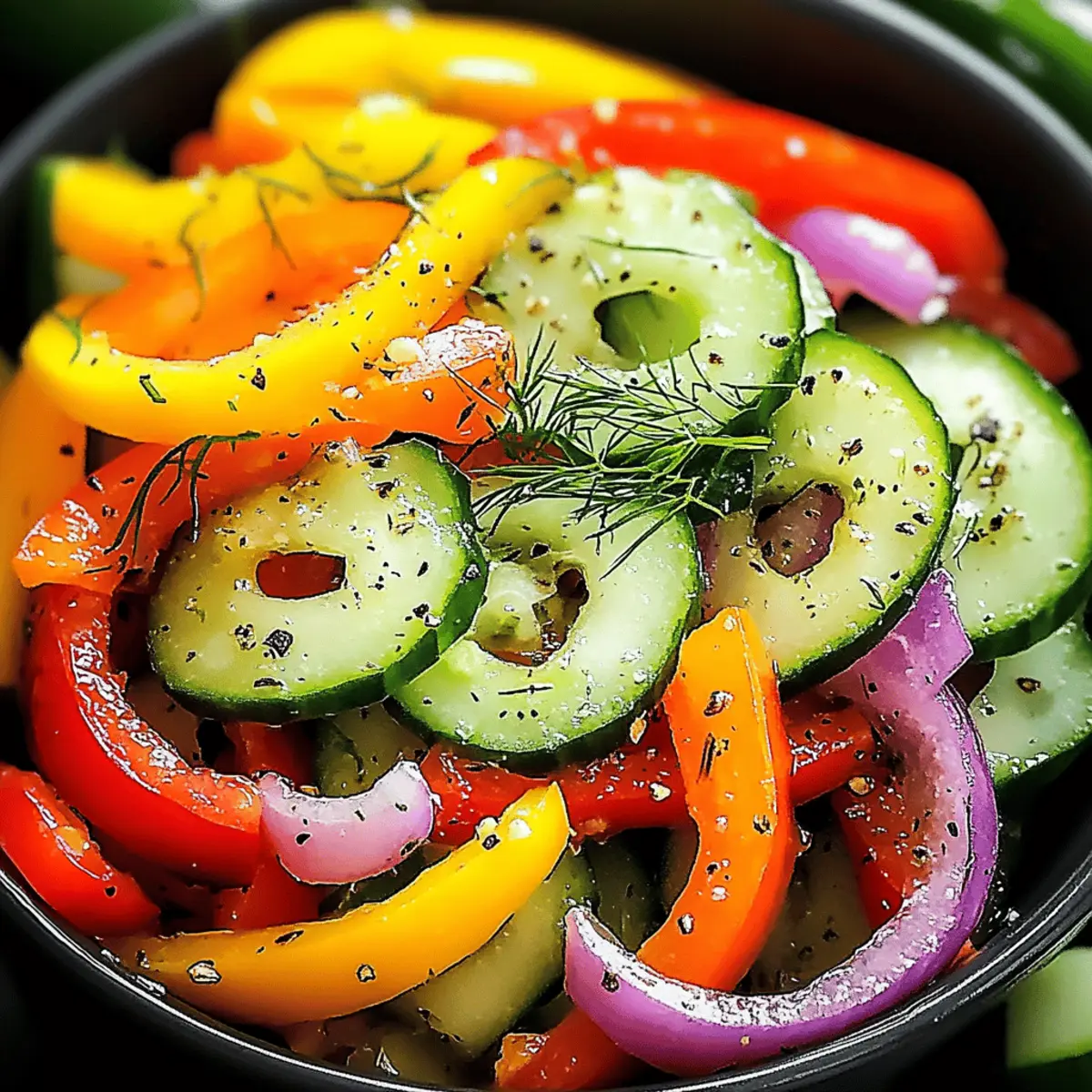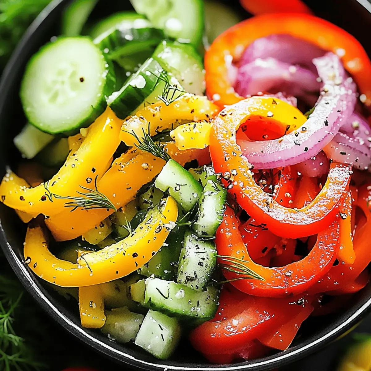 With a crunch that turns heads and a flavor that dances on the palate, this Cucumber Sweet Pepper Salad is a revelation for anyone seeking a quick and healthy side dish. In just 15 minutes, you can transform simple ingredients into a vibrant medley that adds zing to any meal. Perfectly refreshing for those warm days—or anytime you crave something light—this salad not only makes your taste buds sing but also packs a nutritional punch packed with hydration and vitamins. Whether you’re looking to impress at a summer barbecue or just need a delightful dish for a cozy dinner at home, this salad fits the bill. Are you ready to brighten your table with a splash of color and crunch? Let’s dive in! Why is this salad a must-try? Vibrant Colors: Featuring crisp cucumbers and colorful sweet peppers, this salad is a feast for the eyes as much as it is for the taste buds. Quick Preparation: In just 15 minutes, you can whip together this fresh and healthy dish, making it perfect for anyone with a busy lifestyle. Nutrient-Rich: Packed with ** vitamins** and hydration, this salad is the ideal light meal or side to any entrée, ensuring you feel great after every bite. Versatile Flavor: Enjoy it as a standalone dish, or serve it alongside grilled meats for a lovely contrast. For something heartier, consider adding protein like chickpeas or grilled chicken! Chill to Perfection: Letting it sit in the fridge for a bit while you prepare your meal allows for flavor mingling, enhancing your dining experience in delightful ways. Whether you’re looking for a refreshing bite for lunch or a crowd-pleasing accompaniment at your next barbecue, this Cucumber Sweet Pepper Salad won’t disappoint! Cucumber Sweet Pepper Salad Ingredients For the Salad • Cucumbers – Select firm and fresh ones for a refreshing crunch. • Sweet Peppers (Red, Yellow, Orange) – Mixing colors adds vibrancy and sweetness. • Red Onion – Adjust based on your taste preference; it adds sharpness. For the Dressing • Olive Oil – This adds richness and depth to the dressing. • Apple Cider Vinegar – Enhances tanginess; white vinegar works as a good substitute. • Lemon Juice – Fresh juice contributes brightness; opt for real lemons for the best flavor. • Honey – A touch of sweetness; for a vegan alternative, use maple syrup. For the Garnish • Fresh Dill – Elevates the dish with herbaceous notes; substitute with parsley or cilantro if desired. Enhance your dining experience with this Cucumber Sweet Pepper Salad—fresh, colorful, and perfect for any occasion! Step‑by‑Step Instructions for Cucumber Sweet Pepper Salad Step 1: Prepare the Vegetables Start by washing the cucumbers and sweet peppers under cool running water, making sure to remove any dirt. Using a sharp knife, slice the cucumbers into thin rounds and cut the sweet peppers into strips. Aim for uniform pieces to ensure even texture and presentation in your Cucumber Sweet Pepper Salad. Transfer the sliced vegetables to a large mixing bowl. Step 2: Make the Dressing In a small bowl, whisk together 3 tablespoons of olive oil, 2 tablespoons of apple cider vinegar, the juice of half a lemon, and 1 tablespoon of honey. Mix until the dressing is smooth and well combined, achieving an emulsified consistency. This flavorful dressing will elevate your Cucumber Sweet Pepper Salad, providing a delightful balance of tanginess and sweetness. Step 3: Combine Ingredients Add the sliced cucumbers, sweet peppers, and thinly diced red onion to the bowl with the dressing. Gently toss the ingredients together using a salad tongs or a spoon to ensure all the vegetables are well-coated with the dressing. This step is crucial for infusing the salad with flavor, so take your time to meld the colorful ingredients nicely. Step 4: Add Fresh Herbs Sprinkle in about 2 tablespoons of freshly chopped dill for a burst of herbaceous flavor, enhancing the overall taste of your Cucumber Sweet Pepper Salad. Using the tongs or spoon, toss the mixture again gently, ensuring the dill is evenly distributed throughout the salad. Step 5: Chill the Salad Cover the bowl with plastic wrap or a lid and place it in the refrigerator for at least 15 minutes. Chilling allows the flavors to meld and intensifies the freshness of the salad. Take this time to prepare the rest of your meal or simply relax as the vibrant and refreshing notes develop in your Cucumber Sweet Pepper Salad. Step 6: Serve and Enjoy After chilling, remove the salad from the refrigerator and give it a gentle toss one last time. Serve the salad in individual bowls or on a large platter for a beautiful presentation. This colorful Cucumber Sweet Pepper Salad can accompany grilled meats or stand alone as a light lunch, offering a refreshing and healthy option for any meal! Expert Tips for Cucumber Sweet Pepper Salad • Choose Fresh Produce: Selecting firm cucumbers and vibrant peppers ensures the salad has the best texture and taste. Avoid soft or wrinkled vegetables for optimal crunch. • Whisk Thoroughly: For a perfectly emulsified dressing, whisk the olive oil, vinegar, lemon juice, and honey until smooth. A well-mixed dressing makes your Cucumber Sweet Pepper Salad even more enjoyable. • Let It Chill: Allow the salad to chill for at least 15 minutes before serving. This rest period enhances the flavor melding and refreshing taste that makes this salad stand out. • Customizable Ingredients: Don’t hesitate to add nuts, seeds, or proteins like grilled chicken or chickpeas. These additions make your Cucumber Sweet Pepper Salad more filling and delightful. • Adjust the Onion: If you prefer a milder taste, reduce the amount of red onion or omit it entirely. This tweak allows you to customize the salad to your palate! What to Serve with Cucumber Sweet Pepper Salad? Elevate your mealtime by pairing this vibrant salad with delightful sides and drinks that complement its fresh flavors. Grilled Chicken: Juicy and smoky, grilled ch