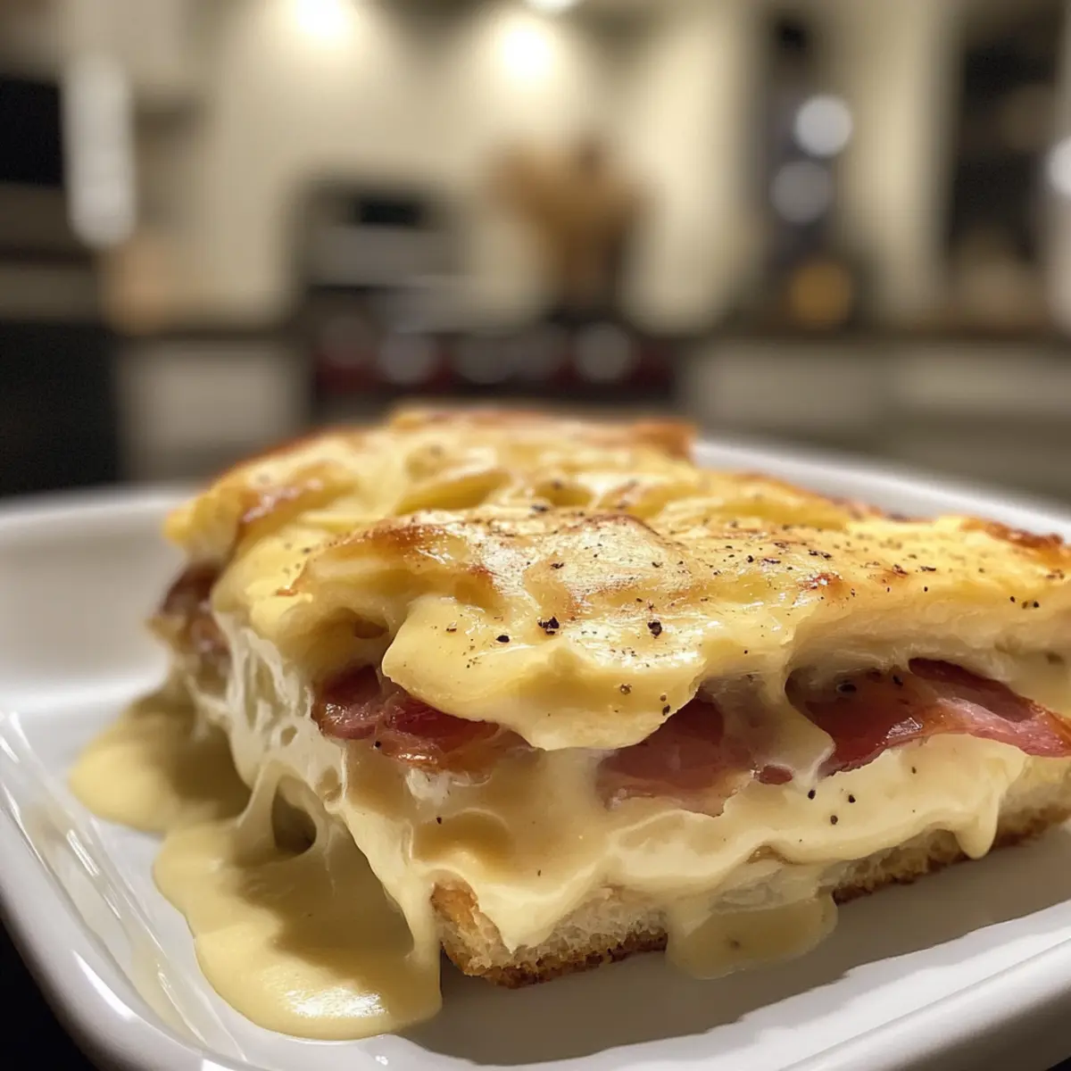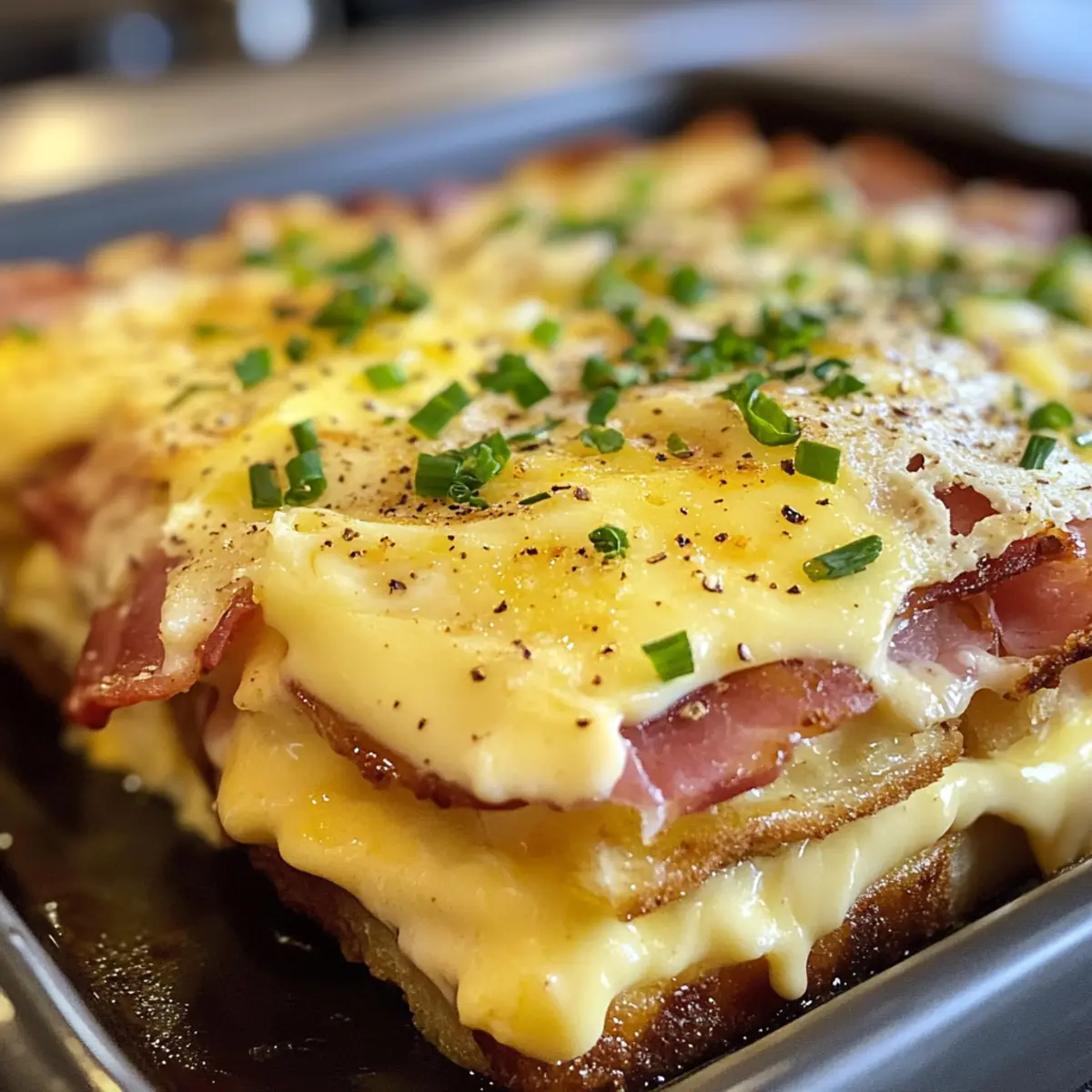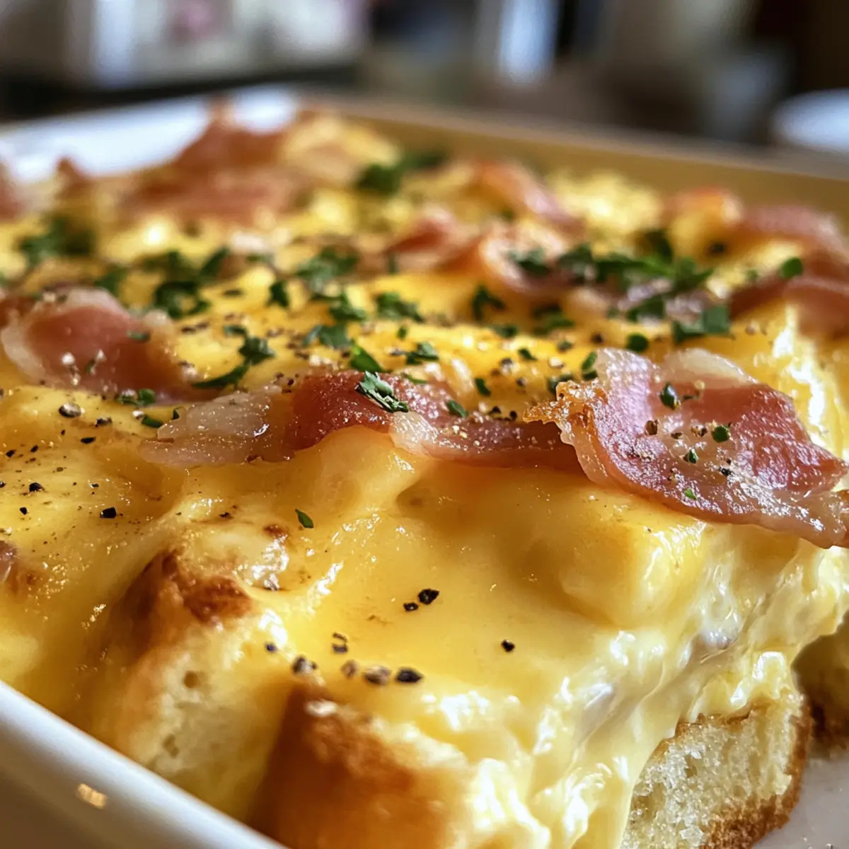 Early Sunday mornings have a special charm about them; the aroma of freshly brewed coffee mingling with the promise of a hearty brunch fills the air. Joanna Gaines’ Eggs Benedict Casserole captures that very essence, transforming a classic dish into a cozy, make-ahead masterpiece. This creamy, savory delight layers fluffy English muffins and delectable Canadian bacon, making it the ultimate stress-free companion for your weekend gatherings. With just a bit of prep the night before, you can savor gourmet flavors without the morning rush. Trust me, this casserole is perfect for impressing guests or indulging in some well-deserved comfort food. Curious how to create this brunch showstopper? Let’s dive in! Why is this casserole a must-try? Convenience: This make-ahead dish ensures your brunch prep is a breeze, allowing you to enjoy more time with family and friends. Creamy Richness: Each bite melts in your mouth, thanks to the velvety Hollandaise sauce and tender layers of ingredients. Flavorful Layers: Combining savory Canadian bacon with soft English muffins creates a delightful balance of flavors that will impress everyone at your table. Crowd-Pleaser: Perfect for gatherings, this casserole can easily serve a group, making it an ideal choice for brunch parties. Versatile: Feel free to customize with your favorite ingredients like sautéed spinach or different cheeses to make it uniquely yours! Find additional tips for brunch success in our brunch blog archive. Gaines Eggs Benedict Casserole Ingredients For the Casserole • Milk – Provides moisture and creaminess; can substitute with non-dairy milk for a lighter version. • Eggs – Essential for structure and richness; use organic or free-range eggs for better flavor. • Green Onions – Adds a fresh, savory note; substitute with chives if desired. • Onion Powder – Enhances flavor depth; fresh onions can be used as an alternative. • Salt – Enhances overall flavors; consider using sea salt for a finer taste. • Canadian Bacon – Provides protein and savory flavor; can substitute with ham or turkey bacon. • English Muffins – Acts as the base and absorbs the sauce; whole grain can be a healthier option. • Paprika – Adds a subtle smoky flavor; smoked paprika can enhance flavors further. • Hollandaise Sauce Mix – A convenient way to achieve creamy sauce; homemade hollandaise can be made for freshness. • Butter – Provides richness and helps with sauce consistency; substitute with margarine for a lighter option or vegan butter. For a delightful and comforting dish that’s easy to prepare, this Gaines Eggs Benedict Casserole is sure to be a hit at your brunch table! Step‑by‑Step Instructions for Gaines Eggs Benedict Casserole Step 1: Preheat the Oven Start by preheating your oven to 350°F (175°C). This ensures that your Gaines Eggs Benedict Casserole bakes evenly and comes out perfectly golden. While the oven is heating, gather your baking dish and greasing spray, making it ready for the layered ingredients. Step 2: Whisk the Egg Mixture In a large mixing bowl, whisk together the milk, eggs, green onions, onion powder, and salt until well blended. Aim for a smooth consistency, which typically takes about 2-3 minutes. The mixture should appear creamy and slightly frothy. Set this aside momentarily as you prepare the next layer. Step 3: Prepare the Casserole Base In a separate bowl, combine the diced Canadian bacon with the pieces of English muffins, tossing gently to mix. Now, grease your baking dish thoroughly to prevent sticking. Create an even layer of the muffin and bacon mixture in the dish, ensuring that the ingredients are well distributed for an even bake. Step 4: Combine and Pour Now it’s time to bring everything together! Pour the egg and milk mixture evenly over the layered muffins and Canadian bacon. Watch as the liquid seeps into the layers, creating a beautiful, rich concoction. Make sure every piece is saturated for that delightful, creamy texture when baked. Step 5: Season and Cover Sprinkle paprika generously over the top of your casserole to add a subtle hint of smokiness. Once seasoned, cover the dish with aluminum foil to trap steam and moisture while baking, ensuring a tender casserole. This step is crucial for making sure your Gaines Eggs Benedict Casserole comes out luscious and soft. Step 6: Bake the Casserole Place the covered casserole in the preheated oven and bake for 30 minutes. After this time, carefully remove the foil, allowing steam to escape. Continue baking for an additional 15 minutes until the top is golden brown and the center is slightly jiggly but set. This visual cue ensures your casserole is cooked through yet retains that tender bite. Step 7: Prepare Hollandaise Sauce While the casserole bakes, prepare the Hollandaise sauce according to the package instructions. If you’re making it from scratch, now’s the time to get it going. Aim to have it ready just before serving to ensure it’s fresh and warm, ready to drizzle over your Gaines Eggs Benedict Casserole for that ultimate finishing touch. Expert Tips for Gaines Eggs Benedict Casserole Prep Overnight: Ensure the casserole sits in the fridge overnight for optimal absorption of flavors and creaminess before baking. Watch Your Bake Time: Avoid overcooking to keep the casserole moist; it should be set but still jiggly in the center when you take it out. Hollandaise Timing: Prepare your Hollandaise sauce right before serving to maintain its velvety texture; it’s best when freshly made. Ingredient Quality: Use high-quality organic eggs and non-dairy options for milk; this enhances the overall flavor and richness of your casserole. Flavor Variations: Don’t hesitate to swap Canadian bacon for ham, turkey bacon, or sautéed spinach; personalization elevates your Gaines Eggs Benedict Casserole! Make Ahead Options These Gaines Eggs Benedict Casserole make-ahead options will save you precious time on busy mornings!