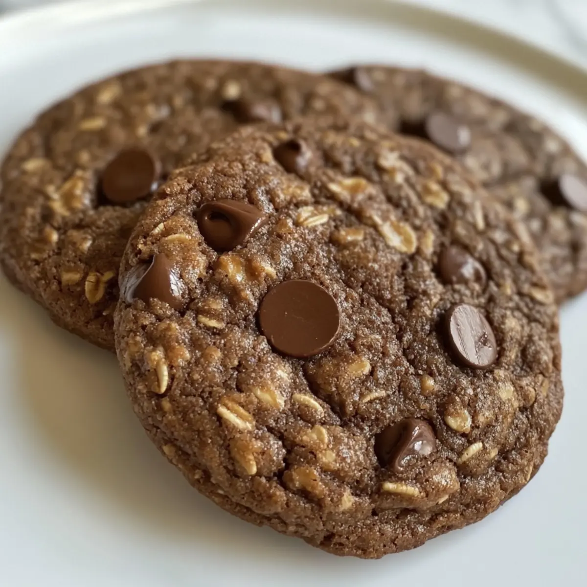 As I rummaged through my pantry one rainy afternoon, the unexpected sight of cocoa powder and oats sparked a delicious idea: Chocolate Oat Cookies! These delightful cookies quickly became my go-to guilty pleasure, combining the chewy texture of oats with the rich flavor of chocolate. Not only can this gluten-free recipe be whipped up in under 30 minutes, but it also offers a healthy treat that satisfies sweet cravings without sacrificing nutrition. Perfect for a quick snack or a cozy dessert, these cookies are a fun way to indulge while keeping your health in check. Curious about how to make these irresistible bites yourself? Let’s dive in! Why Are These Cookies So Irresistible? Quick and Easy: Made in under 30 minutes, these cookies fit perfectly into your busy schedule without compromising on flavor. Nutritious Treat: Packed with oats and nut butter, they are nutrient-dense and offer a satisfying blend of fiber and healthy fats. Customizable Flavors: Switch things up by using different nut butters, or try adding shredded coconut or dried fruit for a delightful twist. Guilt-Free Indulgence: Enjoy a sweet treat without the guilt, as these gluten-free cookies satisfy your cravings while keeping your health in check. If you’re looking for more easy snacks, check out these Fryer Sweet Potato fries for that crispy goodness! Chocolate Oat Cookie Ingredients For the Cookies • Oats – Base structure and chewy texture; ensure to use gluten-free oats for a gluten-free treat. • Cocoa Powder – Provides a rich chocolate flavor; unsweetened cocoa is best for balanced sweetness. • Maple Syrup – Acts as a natural sweetener, adding moisture; you can substitute it with agave syrup if desired. • Nut Butter – (e.g., almond or peanut) binds the ingredients while imparting creaminess; sunflower seed butter is a great nut-free option. • Chocolate Chips – Add extra chocolatey goodness; opt for dark chocolate chips for richness or dairy-free for a vegan twist. • Salt – Enhances the overall flavor by balancing the sweetness. Optional Add-Ins • Shredded Coconut – For added texture and sweetness; use unsweetened to keep it healthy. • Dried Fruit – Incorporate for a burst of natural sweetness and chewy texture; raisins or cranberries work wonderfully. Enjoy making these chocolate oat cookies, and don’t forget to experiment with the optional add-ins for even more deliciousness! Step‑by‑Step Instructions for Gluten-Free Chocolate Oat Cookies Step 1: Preheat Your Oven Start by preheating your oven to 350°F (175°C). This is a crucial step to ensure your cookies bake evenly and achieve that perfect chewy texture. Meanwhile, line a baking sheet with parchment paper to prevent sticking and make cleanup easier once your delicious cookies are ready. Step 2: Mix Dry Ingredients In a large mixing bowl, combine the oats, cocoa powder, and salt. Use a whisk to blend these dry ingredients well, ensuring there are no clumps. You should have a uniform mixture that looks rich and inviting, setting a solid base for your gluten-free chocolate oat cookies. Step 3: Combine Wet Ingredients In a separate bowl, whisk together the maple syrup and your chosen nut butter until the mixture is smooth and creamy. This should take about 1-2 minutes of mixing. The mixture should be thick yet pourable, which will help bind the ingredients together once combined with the dry mixture. Step 4: Combine Mixtures Pour the wet mixture into the bowl with the dry ingredients. Using a spatula, gently fold the mixture together until just combined, ensuring all dry ingredients are incorporated without over-mixing. You should see a dough forming that is cohesive yet slightly sticky, ready to hold those scrumptious chocolate chips. Step 5: Add Chocolate Chips Stir in the chocolate chips using your spatula until they are evenly distributed throughout the cookie dough. The chips should be well integrated, providing little bursts of chocolate in each bite of your gluten-free chocolate oat cookies, creating an irresistible treat that’s both wholesome and indulgent. Step 6: Scoop and Shape Dough Using a cookie scoop or tablespoon, drop spoonfuls of dough onto the prepared baking sheet. Space them about 2 inches apart to allow for slight spreading during baking. Each scoop should be roughly heaping, forming delightful mounds that will bake into chewy cookies, adding to the anticipation of enjoying them. Step 7: Bake the Cookies Place the baking sheet in the preheated oven and bake for 10-12 minutes. You’ll know they’re ready when the edges are set but the centers still look slightly soft. This means your cookies will maintain that chewy texture while the chocolate melts just a little, enhancing the flavor. Step 8: Cool Before Enjoying Once baked, remove the sheet from the oven and let the cookies cool on the baking sheet for about 5 minutes. This cooling period allows them to firm up slightly, making them easier to transfer to a wire rack. Once cool, enjoy your delicious gluten-free chocolate oat cookies! Chocolate Oat Cookies Variations & Substitutions Feel free to experiment with these ideas to make your cookie experience even more delightful and personalized! Gluten-Free: Use certified gluten-free oats and nut butter to ensure the entire recipe remains gluten-free without loss of texture or flavor. Nut-Free: Substitute nut butter with sunflower seed butter to make these cookies nut-free while retaining that delicious creaminess. No Added Sugar: Replace maple syrup with mashed ripe bananas for natural sweetness and added moisture; it might change the flavor but brings a nice twist! Dairy-Free: Choose dairy-free chocolate chips to keep this recipe vegan-friendly, allowing everyone to indulge in these treats together. Flavor Boost: Mix in a teaspoon of vanilla extract or almond extract for a fragrant twist that complements the chocolate beautifully. Coconut Delight: Fold in shredded unsweetened coconut for an added tex