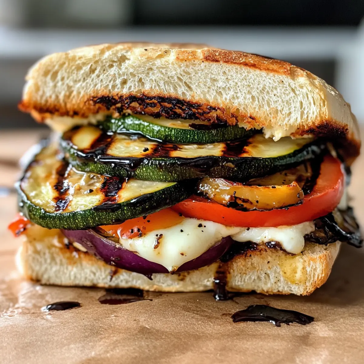 1. Layer the grilled veggies onto the ciabatta rolls, add mozzarella, and if desired, brush with balsamic glaze.