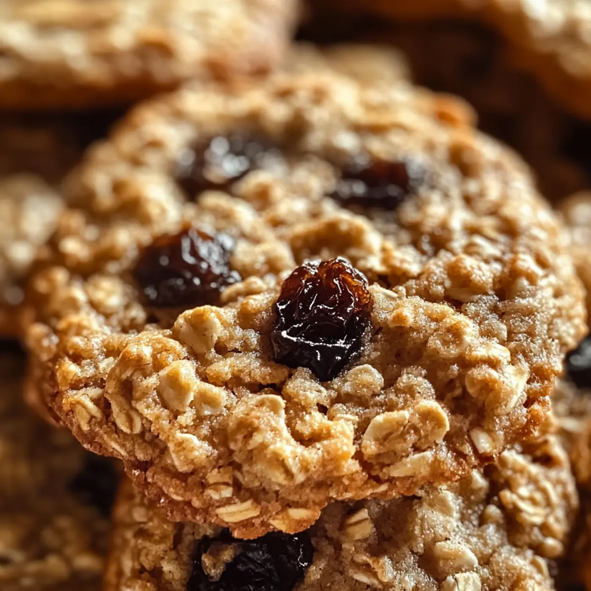 As I surveyed my kitchen filled with the warm scent of baking, I realized how much I cherish the ritual of making cookies from scratch. Today, I’m excited to share a lighter twist on a classic favorite with my Healthy Oatmeal Raisin Cookies. These delightful treats bring together the satisfying chew of oats and the natural sweetness of raisins—all crafted to be gluten-free and lower in sugar. In just 20 minutes, you can whip up a batch that feels indulgent yet aligns with your health goals. Perfect for an after-school snack or a cozy evening treat, these cookies are not only quick to make but also a wholesome alternative to traditional sweets. What’s your favorite cookie moment? Let’s dive into this delicious recipe! Why Are These Cookies So Irresistible? Healthy Ingredients: These cookies use wholesome oats and lower sugar, ensuring you can indulge without the guilt. Quick to Prepare: Just 20 minutes from start to finish—perfect for busy days! Chewy Goodness: Enjoy the chewy texture of oats paired with plump raisins, making every bite satisfying. Versatile Options: Easily swap in chocolate chips or nuts for a fun twist—no limits on flavors! Crowd Favorite: Perfect for all ages, they make an excellent treat for family gatherings or casual snacking! If you’re a fan of healthy treats, don’t forget to check out my Banana Bread Healthy and Chocolate Chip Cookies recipes! Healthy Oatmeal Raisin Cookies Ingredients For the Cookie Dough • Unsalted Butter – Provides richness and moisture; you can substitute with 6 tablespoons butter + 2 tablespoons cashew milk for a lighter version. • Brown Sugar – Adds sweetness and moisture, ensure it’s packed for the best results. • Egg – Acts as a binding agent; use room temperature egg to achieve a smoother consistency. • Vanilla Extract – Enhances flavor; aim for 1½ teaspoons for a warm and inviting taste. • Old-Fashioned Rolled Oats – The star ingredient that provides chewiness and healthy fiber; opt for gluten-free oats if desired. • White Whole Wheat Flour – A key dry ingredient giving structure to the cookies; a 1-to-1 Gluten-Free Flour can be used as a substitute. • Ground Cinnamon – Adds warm spice notes; using about 1 teaspoon is typically sufficient. • Nutmeg (optional) – Offers an extra depth of flavor with a hint of warmth. • Baking Soda – Helps the cookies rise slightly during baking. • Fine Sea Salt – Balances the sweetness, enhancing overall flavor. • Raisins – Provides natural sweetness and chewiness; you can swap them with chocolate chips for an alternative flavor. Tips for Enjoyment • Bake these Healthy Oatmeal Raisin Cookies and serve warm for the best experience! Enjoy these healthier treats guilt-free! Step‑by‑Step Instructions for Healthy Oatmeal Raisin Cookies Step 1: Preheat and Prepare Start by preheating your oven to 350°F (175°C). While the oven heats, line a large baking sheet with parchment paper to prevent sticking and ensure easy cleanup later. This simple preparation sets the stage for your Healthy Oatmeal Raisin Cookies, making it easier to transfer the dough once ready. Step 2: Mix Dry Ingredients In a medium bowl, combine the old-fashioned rolled oats, white whole wheat flour, ground cinnamon, nutmeg (if using), baking soda, and fine sea salt. Stir these dry ingredients together until well blended, ensuring that there are no lumps. This step is crucial for evenly distributing the flavors throughout your Healthy Oatmeal Raisin Cookies. Step 3: Cream Butter and Sugar In a large mixing bowl, using an electric mixer, cream the unsalted butter and packed brown sugar together for about 2 minutes until the mixture is light and fluffy. Scrape down the sides as needed for even mixing. Then, add the room temperature egg and vanilla extract, blending everything smoothly to create a rich, cohesive mixture that will make your cookies delightfully tender. Step 4: Combine Ingredients Gradually add the dry ingredient mixture into the wet mixture, mixing on low speed until just combined. This dough will be thick and slightly sticky, signifying that the foundation for your Healthy Oatmeal Raisin Cookies is ready. Gently fold in the raisins, ensuring they are evenly distributed throughout the dough for sweet bites with every cookie. Step 5: Form the Cookies Using a medium cookie scoop, scoop out portions of dough and place them onto the prepared baking sheet, spacing them about 3 inches apart. This spacing allows for the dough to spread while baking without merging. You should have a lovely arrangement of dough mounds, just waiting to transform into scrumptious cookies. Step 6: Bake to Perfection Once your dough is arranged on the baking sheet, bake in the preheated oven for 9 to 12 minutes. You’ll know they’re done when the edges are lightly golden but the centers remain soft and slightly underbaked. This is the perfect texture for your Healthy Oatmeal Raisin Cookies, as they will continue to set while cooling. Step 7: Cool the Cookies After baking, allow the cookies to cool on the baking sheet for 1 to 2 minutes. This resting period lets them firm up slightly, making it easier to transfer them. Then, gently move the cookies to a wire rack to cool completely. Enjoy the warm, inviting aroma as they cool, making your kitchen feel like a cozy haven. What to Serve with Healthy Oatmeal Raisin Cookies Indulging in these delightful cookies opens the door to a world of delicious pairings that will elevate your snacking experience. Glass of Milk: A classic, creamy companion that perfectly complements the chewiness of the cookies, enhancing their wholesome flavors. Yogurt Parfait: Layer warm cookies with yogurt and fresh fruit for a breakfast or dessert that’s both satisfying and nutritious. The tanginess of yogurt balances the sweetness of the cookies beautifully. Herbal Tea: A soothing cup of chamomile or mint tea provides a fragrant contrast, warming your heart and making 