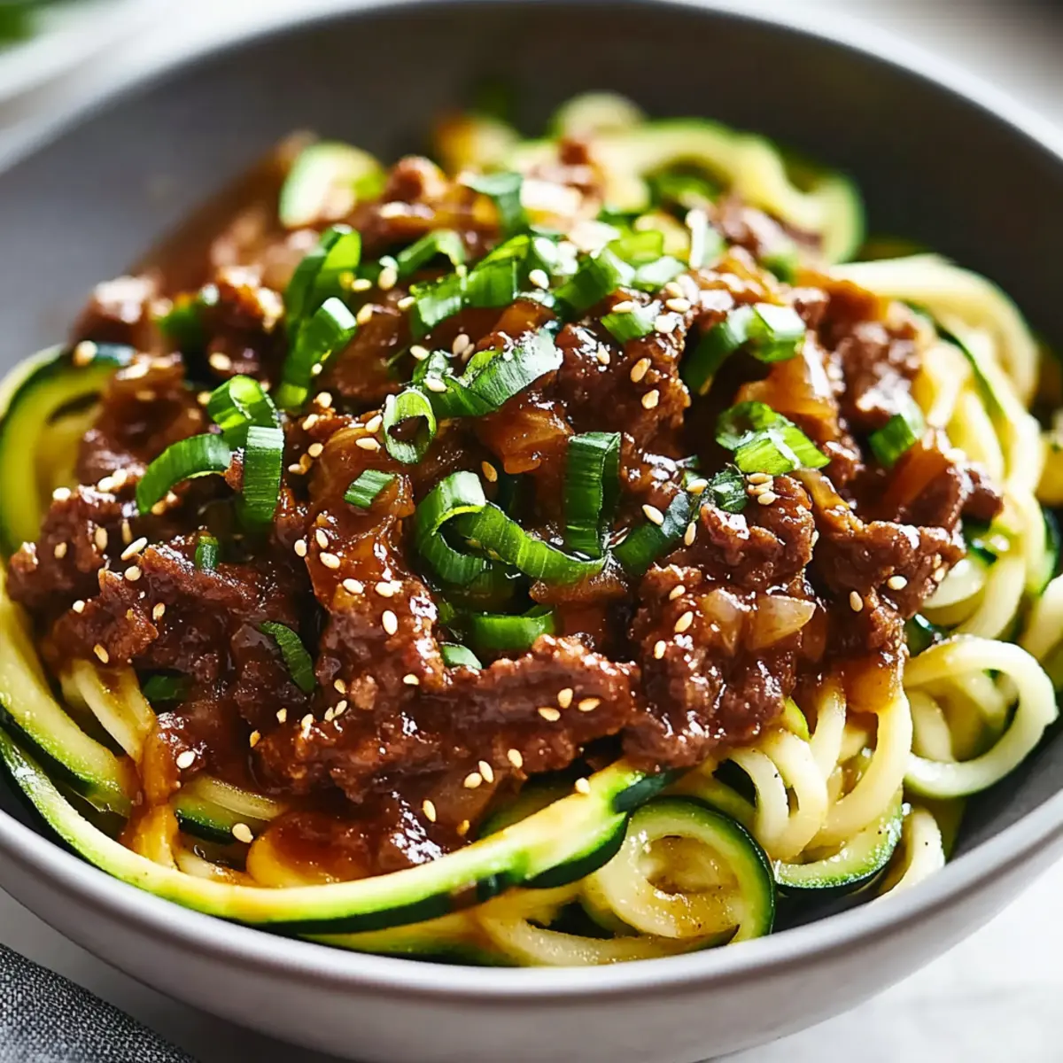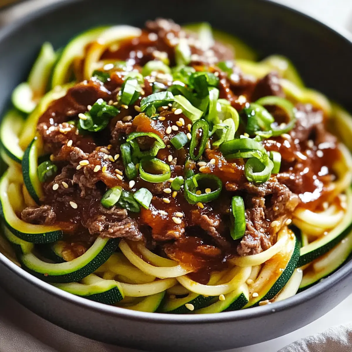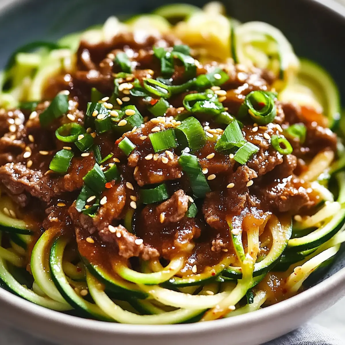As I stood in my kitchen the other day, the fragrant notes of garlic and ginger danced through the air, instantly transporting me to a bustling Seoul street market. That’s when the magic of Savory Korean Beef Zucchini Noodles happened—a healthy twist on comfort food that combines tender, marinated beef with fresh zucchini noodles. You won’t just delight in the unique flavor profile; you’ll also find this dish comes together in under 30 minutes, making it a perfect quick weeknight meal or an impressive plate for entertaining. With gluten-free options available, it’s a satisfying choice for everyone at the table. Curious about how to replicate this delightful experience in your own kitchen? Let’s dive into the recipe! Why Try Korean Beef Zucchini Noodles? Simplicity at Its Finest: This recipe is a breeze to make, perfect for both novice cooks and seasoned chefs looking for a quick meal. Healthy Ingredients: Using fresh zucchini instead of traditional pasta lowers the carbs while adding vital nutrients to your dinner table. Savory Umami Flavor: The combination of soy sauce, ginger, and garlic creates a rich, tantalizing sauce that elevates the savory beef into a symphony of taste. Quick Cooking Time: You can whip up this dish in under 30 minutes, making it an excellent choice for bustling weeknights or last-minute entertaining. Versatile and Fun: Feel free to switch up the noodles with bell peppers or carrots, and don’t hesitate to play with spice levels to find your perfect heat! For more meal ideas, check out our delicious Garlic Butter Beef or Air Fryer Zucchini recipes. Korean Beef Zucchini Noodles Ingredients For the Beef Marinade Ground Beef – Use lean ground beef for a healthier option without sacrificing flavor. Soy Sauce – Provides a rich umami flavor; gluten-free soy sauce or tamari is great for dietary needs. Brown Sugar – Balances the saltiness; coconut sugar can be used for a healthier alternative. Garlic – Freshly minced garlic adds aromatic depth and enhances the overall flavor. Ginger – Fresh ginger is recommended to boost the dish’s warm, spicy notes. For the Zucchini Noodles Zucchini – The star of the dish; its noodles are a low-carb substitute for traditional pasta. You can also use bell peppers or carrots for variety. For Cooking and Garnishing Sesame Oil – Adds a nutty flavor; opt for toasted sesame oil for a more intense taste. Red Pepper Flakes – Adjust to your spice preference; they bring a delightful heat to the dish. Green Onions – Chopped as a fresh garnish to add crunch and color; sesame seeds or crushed peanuts can be good alternative toppings. This delightful combination creates a wholesome foundation for your Korean Beef Zucchini Noodles, making it a comforting yet healthy meal option for any night of the week! Step‑by‑Step Instructions for Korean Beef Zucchini Noodles Step 1: Prepare Zucchini Noodles Begin by washing the zucchinis under cool water, then spiralize them into noodle shapes or use a vegetable peeler to create thin strips. Aim for a good amount of noodles to ensure a satisfying meal. Set your prepared zucchini noodles aside on a clean plate, ready to incorporate into your Korean Beef Zucchini Noodles as the dish progresses. Step 2: Sauté Beef In a large skillet, heat a drizzle of oil over medium-high heat. Once hot, add the ground beef, breaking it apart with a spatula. Cook for about 5-7 minutes, stirring occasionally, until it turns browned and crumbly. This step is crucial as it forms the flavor base for your Korean Beef Zucchini Noodles, so make sure the beef is fully cooked and nicely caramelized. Step 3: Add Aromatics Next, stir in the freshly minced garlic and grated ginger into the skillet with the browned beef. Continue to cook for about 30 seconds, until fragrant and aromatic. The aroma will fill your kitchen, creating an enticing atmosphere as you bring the flavors together in this Korean Beef Zucchini Noodles dish. Step 4: Incorporate Sauces Pour in the soy sauce, sesame oil, brown sugar, and red pepper flakes, mixing thoroughly to combine with the beef and aromatics. Allow the mixture to simmer on low heat for about 5 minutes. You’ll notice the sauce thickening slightly, enhancing the savory profile of your Korean Beef Zucchini Noodles while creating a deliciously rich coating for the beef. Step 5: Add Zucchini Noodles Gently fold in the prepared zucchini noodles, ensuring they are well coated in the sauce. Cook for 2-3 minutes, just until the noodles are tender yet still al dente. Stir occasionally, allowing the heat to soften the noodles while maintaining their crunch, which is vital for balancing the texture in your Korean Beef Zucchini Noodles. Step 6: Serve Once everything is perfectly cooked, remove the skillet from the heat. Plate the Korean Beef Zucchini Noodles hot, garnishing generously with chopped green onions for a fresh, colorful finish. Serve immediately for the best flavor and texture, allowing everyone to dive into this savory, healthy meal right away. Korean Beef Zucchini Noodles Variations Feel free to put your own spin on this dish, creating a delightful experience with every bite! Vegetable Swap: Substitute zucchini with bell peppers or carrots for added colors and flavors. The crunchy texture of bell peppers can create a refreshing contrast that enhances the dish. Spicy Kick: Add in sliced fresh chili or a generous dollop of Sriracha to amp up the heat. The fiery touch will awaken your taste buds and add an exciting dimension to your meal. Dairy-Free: Use coconut aminos or tamari instead of soy sauce for a savory yet healthy twist. This swap caters to those with gluten sensitivities, ensuring everyone can enjoy the feast. Nutty Crunch: Top with sesame seeds or crushed peanuts for an extra layer of flavor and texture. The nutty essence complements the savory elements of the dish beautifully. Herb Infusion: Incorporate fresh herbs like cilantro or basil for a refreshing burs