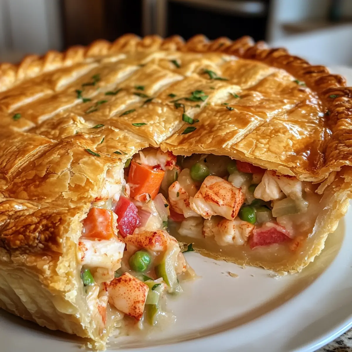 A warm, comforting aroma wafts through my kitchen as I prep for a culinary adventure that reminds me of cozy coastal dinners: the Ultimate Lobster Pot Pie. This dish is a celebration of tender lobster meat immersed in a creamy, savory filling wrapped in a flaky crust—perfect for those of us who crave homemade comfort food. What makes this recipe truly special is its ease of preparation, allowing both seasoned chefs and kitchen novices to whip up a stunning main dish that promises to impress friends and family alike. Plus, it’s an incredible way to elevate a seafood lover’s dinner experience! Curious about how to create this comforting masterpiece? Dive in for a taste of the seaside! Why is Lobster Pot Pie a Must-Try? Satisfying and Decadent: This Lobster Pot Pie is the ultimate comfort food, combining rich lobster meat with a creamy filling that hugs your senses. Easy to Make: With straightforward steps, this recipe is perfect for both novice cooks and seasoned chefs looking for a delicious weeknight meal. Impressive Presentation: The golden, flaky crust is not just pleasing to the palate but also a feast for the eyes, guaranteed to wow your guests. Versatile: Feel free to customize by swapping in crab or shrimp, or adding seasonal vegetables like corn for a burst of color and flavor. Perfect for Gatherings: Whether it’s a cozy family dinner or a gathering with friends, this Lobster Pot Pie is a showstopper that’s sure to be the highlight of your table. And if you’re in the mood for more seafood delights, don’t miss out on trying my Hearty Crockpot Chicken for a comforting meal or indulge in some Crockpot Chicken Tinga tacos for a twist on classic flavors! Lobster Pot Pie Ingredients For the Filling • Lobster Meat – Cooked and chopped; it’s the star ingredient that brings the ocean’s bounty to your plate. • Heavy Cream – Adds rich creaminess; substitute with half-and-half for a lighter version. • Chicken or Seafood Stock – Provides depth of flavor; homemade stock is preferred for freshness. • Olive Oil – For sautéing; butter can also be used for a richer taste. • Onion – Diced to add a sweet flavor base. • Garlic – Minced; enhances the dish with its aromatic qualities. • Carrots – Diced; they contribute natural sweetness and texture. • Celery – Diced; adds a lovely crunch to the filling. • Frozen Peas – Provides sweetness and color; fresh peas are a great seasonal substitute. • Fresh Thyme – Chopped for an aromatic herbal note; dried thyme can replace it if necessary. • Lemon Juice – Brightens up the dish; fresh juice is best for optimal flavor. • Salt – Enhances overall flavor; adjust to taste. • Black Pepper – Adds a gentle spice; freshly ground is recommended for maximum taste. For the Crust • Pie Crusts – Use pre-made for convenience or homemade for that special touch. • Egg (beaten) – For egg wash; gives a beautiful golden finish to your crust. Step‑by‑Step Instructions for Lobster Pot Pie Step 1: Preheat the Oven Begin your culinary journey by preheating the oven to 400°F (200°C). This step is crucial as it ensures a perfectly baked crust for your Lobster Pot Pie. While the oven warms up, gather your ingredients and prepare your kitchen workspace to make the cooking process smooth and enjoyable. Step 2: Sauté the Aromatics In a large skillet, heat a drizzle of olive oil over medium heat. Add the diced onion and minced garlic, sautéing until they become translucent, which usually takes about 3-4 minutes. You’ll know you’re ready when the kitchen is filled with a fragrant aroma that signals the foundation of flavors for your Lobster Pot Pie is coming together beautifully. Step 3: Add the Vegetables Stir in the diced carrots and celery into the skillet, cooking for an additional 5 minutes until they’re slightly softened. This step adds delightful sweetness and texture to your filling. Continue to stir occasionally to ensure even cooking and avoid any browning on the garlic, which could introduce bitterness. Step 4: Make the Creamy Base Pour in the heavy cream and chicken or seafood stock, then bring the mixture to a gentle simmer. As it heats, watch the bubbling begin after about 2-3 minutes. This rich, creamy base is what makes your Lobster Pot Pie indulgent, so don’t rush! Stir occasionally to combine and prevent sticking. Step 5: Incorporate the Lobster and Peas Gently fold in the chopped lobster meat and frozen peas, continuing to simmer for another 5 minutes until everything is heated through. The vibrant colors of the lobster and peas will brighten the creamy filling, providing a comforting visual as you prepare to season it. Step 6: Season the Filling Remove the skillet from heat and season your filling with chopped fresh thyme, lemon juice, salt, and black pepper to taste. Mix everything well to ensure each bite of your Lobster Pot Pie is bursting with flavor. This step enhances the dish, combining the sweetness of the lobster with the herbaceous notes for a flavorful experience. Step 7: Assemble the Pie Fit one pie crust into a 9-inch pie dish, making sure it covers the entire bottom. Carefully pour your lobster mixture into the crust, spreading it evenly. This is the time to marvel at the hearty filling, reflecting the essence of your Lobster Pot Pie, ready to be enveloped by the second layer. Step 8: Cover and Seal Place the second crust over the filling, crimping the edges to seal. Cut slits into the top crust for steam release, ensuring your pot pie doesn’t overflow during baking. This top crust will turn golden brown as it bakes, creating an irresistible appearance for your Lobster Pot Pie. Step 9: Brush with Egg Wash Before popping your pie into the oven, brush the top crust with the beaten egg. This egg wash gives your Lobster Pot Pie a delightful, glossy finish, making it as beautiful as it is delicious. Make sure to cover the entire surface for an even color. Step 10: Bak