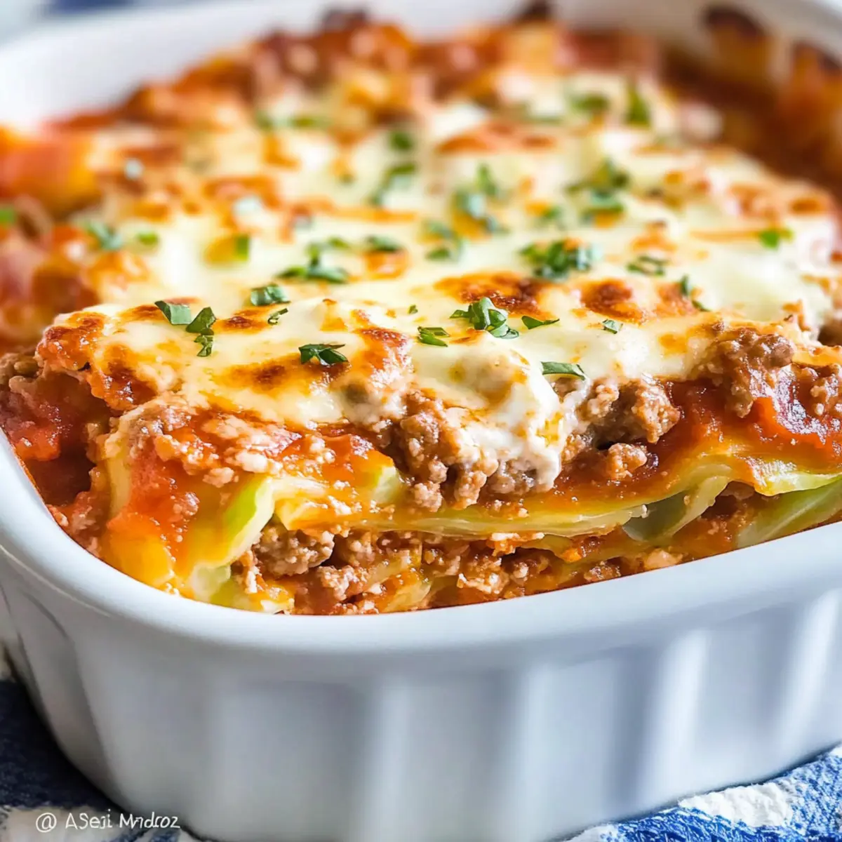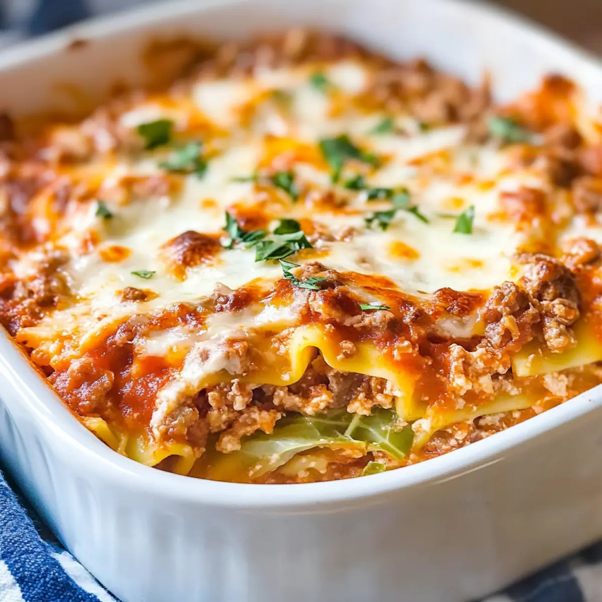 As I stood over a simmering pot of savory beef, memories flooded back—gatherings with loved ones, laughter ringing through the air, and, of course, the aroma of a comforting lasagna wafting from the oven. This Low Carb Cabbage Lasagna is my dedicated nod to that tradition, effortlessly swapping out traditional pasta for tender cabbage leaves. Not only is this delightful dish a gluten-free and keto-friendly option, but it also comes together quickly, making it perfect for busy weeknights or casual family meals. With layers of rich ricotta and gooey mozzarella, your cravings will be satisfied without the carb overload. Curious about how a little Texas Pete hot sauce can elevate this meal even further? Let’s dive in! Why Choose Cabbage Lasagna? Unique Twist: This cabbage lasagna is a clever alternative to traditional recipes, embracing a low-carb lifestyle without compromising on flavor. Quick Preparation: With simple steps, you can whip up this comforting dish in no time, perfect for those busy weeknights. Crowd-Pleasing Flavor: Rich layers of beef, creamy ricotta, and melty mozzarella delight even the pickiest eaters, making it a guaranteed hit at any table. Versatile Options: Feel free to customize by adding sausage or incorporating other vegetables like spinach for added nutrition—there’s no limit to your creativity! Guilt-Free Indulgence: You can enjoy a generous serving without the carb overload, maintaining your keto or gluten-free dietary goals. If you love unique twists on classic recipes, you might also enjoy my Chocolate Marshmallow Swirl cookies or the refreshing Berry Jello Lasagna. Happy cooking! Low Carb Cabbage Lasagna Ingredients For the Meat Base • Ground Beef – Provides protein and the main flavor base; use 85/15 for a balanced fat content. For the Cabbage Layers • Cabbage – Serves as the noodle replacement; can be boiled for softness or used raw for added crunch. For the Saucy Goodness • Sugar-Free Tomato Sauce – Adds moisture and tomato flavor without added sugars; substitute with your favorite low-carb sauce. For the Creamy Filling • Whole Milk Ricotta Cheese – Adds creaminess and richness; substitute with cottage cheese for a lighter option. For the Melty Topping • Shredded Mozzarella – Offers a melty texture and cheesy goodness; opt for low-fat mozzarella for a lighter version. Step‑by‑Step Instructions for Low Carb Cabbage Lasagna Step 1: Preheat the Oven Begin by preheating your oven to 375ºF (190ºC). This ensures that the heat is evenly distributed for the perfect bake. While it warms up, gather your ingredients and prepare your baking dish by greasing it lightly with olive oil. Having everything in place will make the assembly of your Low Carb Cabbage Lasagna smooth and enjoyable. Step 2: Brown the Ground Beef In a large skillet, over medium heat, add your ground beef and cook it for about 5–7 minutes. Use a wooden spoon to break it up as it cooks, seasoning with salt and pepper to taste. You’ll know it’s ready when it’s browned and no longer pink. Drain any excess grease, leaving the flavorful bits behind to enrich your lasagna layers. Step 3: Prepare the Cabbage While the beef is browning, bring a large pot of salted water to a boil. Once boiling, carefully add the cabbage leaves and let them cook for 5–10 minutes until they are tender. If you prefer a bit more crunch, you can skip this step and use raw cabbage leaves instead. Either way, set the cabbage aside to cool and drain. Step 4: Layer the Ingredients In your prepared baking dish, start assembling your Low Carb Cabbage Lasagna. Begin with a single layer of cabbage leaves, followed by half of the browned beef. Spread a generous layer of ricotta cheese over this, and then top with shredded mozzarella. Repeat this layering process until you have three layers, finishing with a layer of mozzarella on top. Step 5: Bake the Lasagna Place the assembled lasagna in the preheated oven. If you used boiled cabbage, bake for about 20–25 minutes; if using raw cabbage, extend the baking time to 35–40 minutes. You’ll know it’s done when the cheese is melted, bubbly, and slightly golden. The aroma of your Low Carb Cabbage Lasagna will fill the kitchen with mouthwatering delight! Step 6: Cool and Serve Once baked to perfection, remove your lasagna from the oven and let it cool for about 10 minutes. This resting time allows the layers to set, making it easier to cut and serve. Slice into portions and enjoy the comforting flavors of your homemade Low Carb Cabbage Lasagna, perfect for sharing with family or savoring all on your own! What to Serve with Low Carb Cabbage Lasagna? Escape into a world of flavors as you create the perfect meal to accompany this delightful dish. Garlic Breadsticks: A crispy yet soft treat that complements the lasagna without overwhelming its deliciousness. Mixed Green Salad: Fresh, tangy greens with a light vinaigrette provide a refreshing crispness that contrasts beautifully with the rich layers of lasagna. Zucchini Noodles: These add a playful, healthy twist and enhance the Italian vibe without the carbs of traditional pasta. Roasted Vegetables: Sweet, caramelized veggies add depth and earthiness while keeping the meal colorful and nutritious. Mashed Cauliflower: Creamy and comforting, it pairs wonderfully, giving you that indulgent feel without the extra carbs. Italian Wine: A glass of Chianti elevates the experience, enhancing the savory notes of the dish while inviting conversation around the table. Cheesecake Bites: A delicate, satisfying sweet treat rounds out the meal, leaving your guests with a delightful finish to their dining experience. Expert Tips for Low Carb Cabbage Lasagna Cabbage Choice: Opt for fresh, robust cabbage leaves to avoid wilting; savoy cabbage is a great alternative for a tender texture. Layering Technique: To prevent sogginess, ensure the beef is drained well and avoid over-saturating with sauce; a balance is key for y