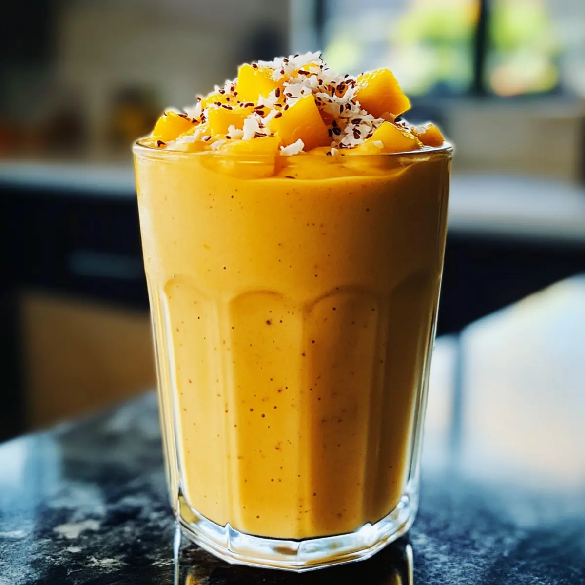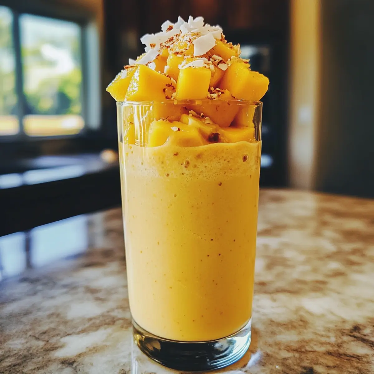 As I stood in my kitchen, the aroma of fresh mangoes mingling with the creamy scent of coconut made me feel like I was basking on a sun-soaked beach. That’s the magic of the Mango Coconut Sunrise Smoothie—a tropical delight that’s both energizing and soothing. With five delicious variations, there’s something for every craving, whether you’re fueling up after a workout, sneaking in some greens, or indulging in a breakfast that feels like dessert. Best of all, this nutrient-rich smoothie is incredibly easy to whip up, making it the perfect choice for busy mornings. So, are you ready to blend your way to a taste of paradise? Why is the Mango Coconut Sunrise Smoothie a Must-Try? Tropical Escape: Each sip of this smoothie transports you to a sun-drenched beach, making mornings feel like a mini-vacation. Creamy Delight: The luscious combination of mango and coconut creates a velvety texture that delights your taste buds every time. Nutritious Boost: Packed with vitamins and healthy fats, it’s a nutritious option for breakfast or a quick snack that doesn’t compromise on flavor. Versatile Variations: Whether you want the classic taste or a protein-packed version, there’s a blend for every craving to keep things exciting. Try the Mango Avocado Salad for a fresh pairing! Quick Preparation: In just a few minutes, you can blend a delicious smoothie, making it perfect for busy mornings or meal prepping. You can even prep smoothie packs in advance for hassle-free mornings! Crowd-Pleaser: From children to adults, everyone loves this delightful treat, making it a great option for family breakfasts or gatherings. Enjoy a refreshing twist with our Chickpea Coconut Curry and start your day off right! Mango Coconut Sunrise Smoothie Ingredients For the Base • Mango – Sweetness and flavor; can substitute with frozen pineapple for a similar tropical taste. • Coconut Milk – Creaminess and richness; substitute half with almond milk to lighten the smoothie or use full coconut milk for a richer texture. • Lime Juice – Brightness and acidity; fresh lime juice is ideal, but bottled lime juice may suffice in a pinch. Optional Nutritional Boosts • Spinach – Extra nutrients without overpowering the taste; baby kale can be used if preferred. • Turmeric – Provides anti-inflammatory benefits and a beautiful golden color; fresh or powdered turmeric both work, but fresh delivers a more potent flavor. • Banana – Adds creaminess and natural sweetness; can be omitted or replaced with a date for a touch of sweetness. Protein & Fiber Enhancers • Almond Butter – Adds protein and nuttiness; cashew butter is a suitable alternative. • Rolled Oats – Improves fiber content and staying power; gluten-free oats can be used to maintain a gluten-free recipe. Transform your mornings with this delightful Mango Coconut Sunrise Smoothie that not only tastes like a tropical getaway but is also packed with nutrients! Step‑by‑Step Instructions for Mango Coconut Sunrise Smoothie Step 1: Blend the Base Start by joining 1 cup of ripe mango chunks, 1 cup of coconut milk, and the juice of half a lime in a high-speed blender. Blend on high for about 30 seconds or until the mixture is completely smooth and creamy. You should see a vibrant, sunny color that resembles a vacation on a plate! Step 2: Incorporate Additions Next, depending on the variation you desire, add in any additional ingredients such as a handful of fresh spinach for a nutrient boost or 1 teaspoon of turmeric for an anti-inflammatory kick. Blend for another 15-20 seconds until fully integrated, ensuring the smoothie maintains its lovely tropical flavor. Step 3: Check Consistency Check the texture of your Mango Coconut Sunrise Smoothie. If it appears too thick for your liking, add a splash of coconut milk or water, then blend again for about 10 seconds. The perfect blend should be velvety and luscious, inviting you to take that first refreshing sip. Step 4: Serve Immediately Once you’re satisfied with the consistency, pour the smoothie into chilled glasses for a refreshing start to your day. You can optionally top each glass with crunchy granola or fresh fruit, turning this nutrient-rich smoothie into a delightful parfait. Enjoy your tropical morning boost! Expert Tips for the Best Mango Coconut Sunrise Smoothie Texture Matters: Ensure your ingredients are ripe and frozen if possible for that perfect creamy consistency; this gives the Mango Coconut Sunrise Smoothie a luscious feel. Fresh is Best: Use fresh lime juice for a zesty kick, enhancing the smoothie’s vibrant flavor; bottled lime juice lacks the same brightness. Boost Nutrients: Toss in a handful of spinach or kale without altering taste; this sneaky addition enriches your smoothie with greens while keeping it delicious. Measure Carefully: Carefully measure your ingredients to avoid an overly thick smoothie; adjust gradually, blending until you reach your desired consistency. Experiment with Variations: Don’t be afraid to mix and match ingredients; whether you want the classic blend or a protein-packed version, explore different flavors with ease! Make Ahead Options These Mango Coconut Sunrise Smoothies are perfect for busy mornings and can be prepped in advance! You can prepare smoothie packs by freezing the mango, spinach (if using), and any other fruits in individual portions up to 3 days ahead. Simply blend them with coconut milk and lime juice when you’re ready to enjoy, allowing you to savor a tropical breakfast in mere minutes. To maintain freshness, keep the packs sealed or labeled in the freezer. Remember, the key is to blend right before serving to ensure a creamy texture! Just grab, blend, and delight in a healthy, flavorful start to your day with these Mango Coconut Sunrise Smoothies! How to Store and Freeze Mango Coconut Sunrise Smoothie Room Temperature: Smoothies are best enjoyed fresh. If left at room temperature, consume within 2 hours to avoid spoilage