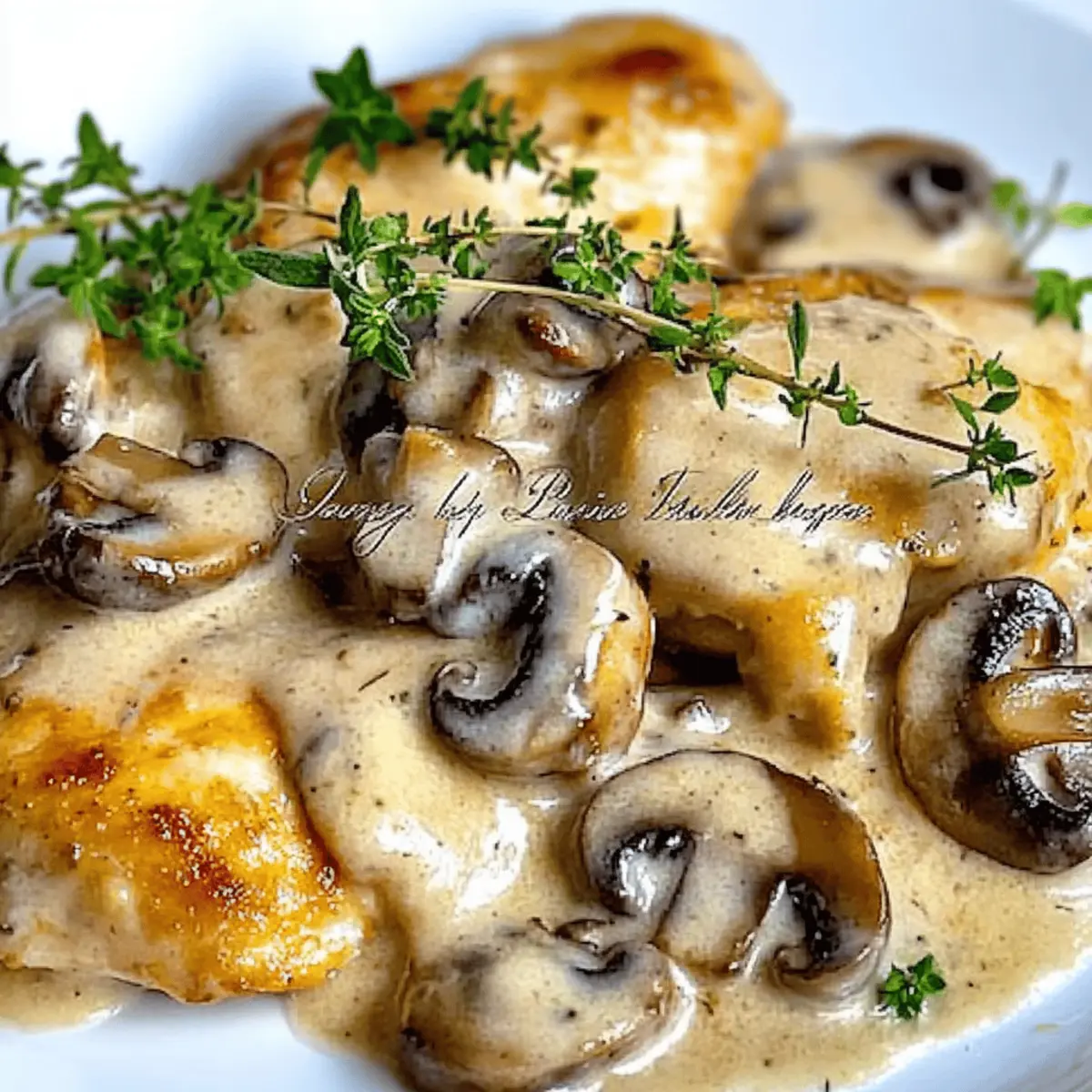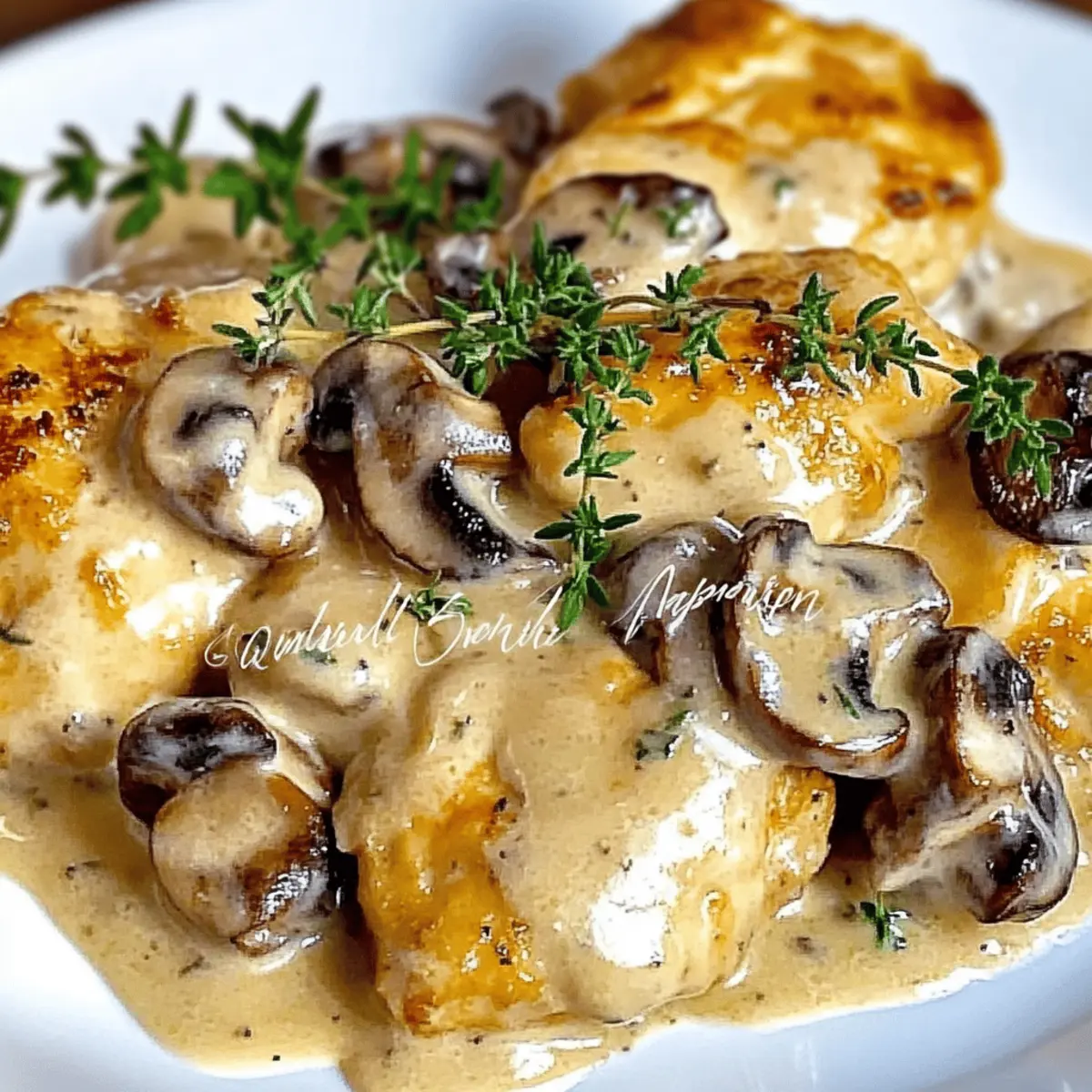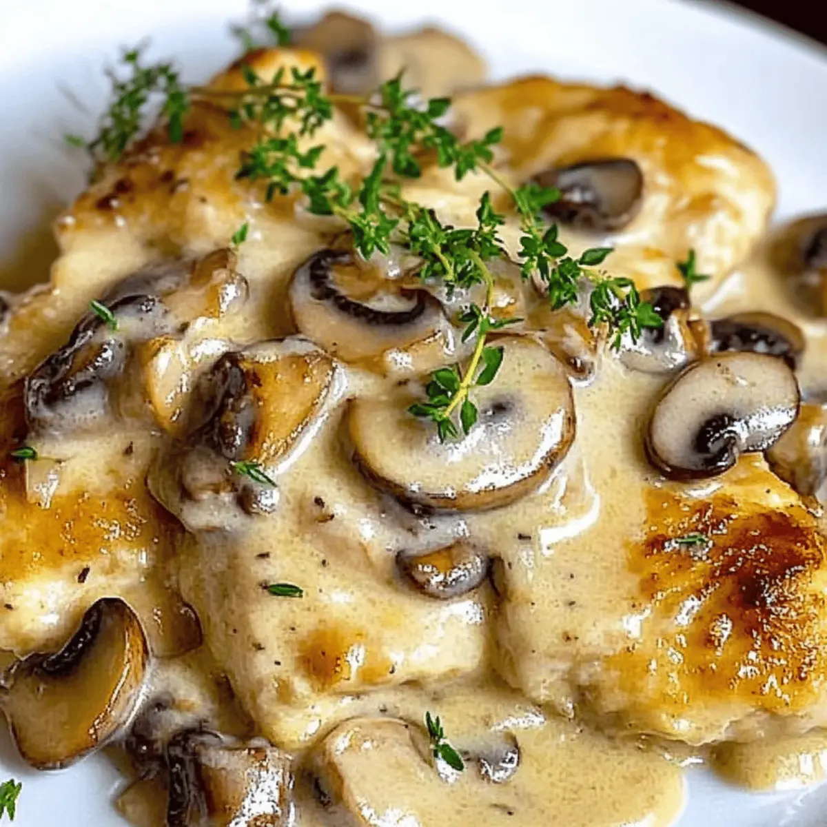 As I stood in my kitchen, the comforting aroma of garlic and sautéed mushrooms enveloped me like a warm hug, reminding me of cozy dinners with loved ones. This is the magic of Mushroom Asiago Chicken—a gourmet meal that transforms simple ingredients into something truly special, all in just 30 minutes. Perfect for those busy weeknights, this quick dinner recipe combines succulent chicken with a rich cream sauce that’s both earthy and indulgent. With gluten-free options at the ready, it caters to everyone at your table without losing the essence of American cuisine. Imagine sharing a dish so delightful that it warms hearts and lifts spirits—are you ready to dive into this culinary adventure? Why is Mushroom Asiago Chicken a Must-Try? Quick Preparation: This dish is ready in just 30 minutes, making it perfect for those busy weeknights when you crave homemade goodness without the hassle. Decadent Flavor: The rich cream sauce combined with earthy mushrooms and sharp asiago cheese creates a mouthwatering flavor that is truly irresistible. Customizable Options: Whether you go gluten-free or want to swap in different proteins like pork chops, this recipe allows for personal touches to suit your family’s taste. Crowd-Pleasing Appeal: Serve it over pasta, rice, or paired with a fresh salad, and watch it become a family favorite that impresses everyone at the table. Incredible Comfort Food: If you love the richness of dishes like my Cheesy Chicken Broccoli or the bold flavors of Crockpot Chicken Tinga, you’re in for a treat. Such a delightful meal is not just a recipe, it’s a heartfelt experience waiting to happen! Mushroom Asiago Chicken Ingredients • The perfect combination for a delicious meal! For the Chicken Boneless Skinless Chicken Breast – A tender protein that serves as the base for this meal; consider using thighs for a richer flavor. Seasoned Flour – This adds a crispy coating to the chicken; swap with gluten-free flour for a gluten-free Mushroom Asiago Chicken. For the Sauce Butter – Provides richness and aids in browning the chicken perfectly. Olive Oil – A great cooking fat for sautéing; vegetable oil can work as a substitute if preferred. Heavy Cream – Creates a luscious, creamy sauce; can be replaced with half-and-half for a lighter version, but be mindful of curdling. Shredded Asiago Cheese – This is the star of the dish, offering a sharp flavor; feel free to substitute with Romano or Parmesan for variety. For Flavoring Mushrooms (2 cups, halved) – Adds an earthy depth; swap for cremini mushrooms for a more intense flavor. Garlic (1 clove, minced) – Elevates the overall taste of the dish; using fresh garlic is always recommended for the best results. Fresh Thyme (3 sprigs) – Infuses the dish with aromatic notes; if unavailable, 1/2 teaspoon of dried thyme works in a pinch. Dry White Wine (1.5 cups) – Contributes acidity and richness; replace with chicken stock if avoiding alcohol. Salt (½ tsp, or to taste) – Enhances the dish’s flavors beautifully. Black Pepper (¼ tsp, or to taste) – Adds warmth and depth to the overall profile. Get ready to create a mouthwatering experience with these ingredients that come together in just 30 minutes! Step‑by‑Step Instructions for Mushroom Asiago Chicken Step 1: Prepare the Chicken Pound the boneless skinless chicken breasts to a uniform thickness of 1/4 inch, ensuring they cook evenly. After that, cut the chicken into serving pieces. This preparation is crucial for achieving tender and juicy bites in your Mushroom Asiago Chicken. Step 2: Heat the Skillet In a large skillet, melt 2 tablespoons of butter with 1 tablespoon of olive oil over medium heat. Allow the butter to foam before it begins to brown, signaling it’s ready. This combination of fats ensures a rich flavor and provides the perfect base for sautéing the chicken. Step 3: Dredge and Sauté the Chicken Coat each piece of chicken in seasoned flour, shaking off any excess. Carefully add the chicken to the hot skillet, cooking for about 5 minutes on each side, until golden brown and cooked through. The chicken should be lightly crispy on the outside, then remove it from the pan and set aside. Step 4: Sauté the Mushrooms and Garlic In the same skillet, add the remaining tablespoon of olive oil, then toss in the halved mushrooms and minced garlic. Sauté for about 4–5 minutes until the mushrooms are nicely browned and fragrant. This step adds a depth of flavor to your Mushroom Asiago Chicken that you’ll love. Step 5: Deglaze the Pan Pour in 1.5 cups of dry white wine to deglaze the skillet, using a spatula to scrape up any flavorful browned bits. Allow the mixture to simmer for about 2 minutes, letting the wine reduce slightly. This will enrich the sauce and enhance the overall taste of the dish. Step 6: Add Thyme and Chicken Back Add the bruised sprigs of fresh thyme into the pan and return the browned chicken pieces to the skillet. Bring the mixture to a boil, then reduce the heat, cover, and let it simmer for 15-20 minutes. This allows the flavors to meld and the chicken to absorb the aromatic essence. Step 7: Create the Cream Sauce Once the chicken is cooked through, carefully remove it from the skillet. Stir in ½ cup of heavy cream and ⅓ cup of shredded Asiago cheese, mixing until melted and blended. You can reduce the sauce further for a thicker consistency if desired, making your Mushroom Asiago Chicken even more luxurious. Step 8: Combine and Serve Return the cooked chicken to the creamy sauce, heating everything together for an additional 2 minutes. Garnish with fresh thyme before plating. This final touch not only adds a pop of color but also enhances the dish’s flavor, delivering a comforting meal that’s sure to impress. How to Store and Freeze Mushroom Asiago Chicken Fridge: Store any leftover Mushroom Asiago Chicken in an airtight container for up to 3 days. Make sure to cool it completely before sealing to avoid moi
