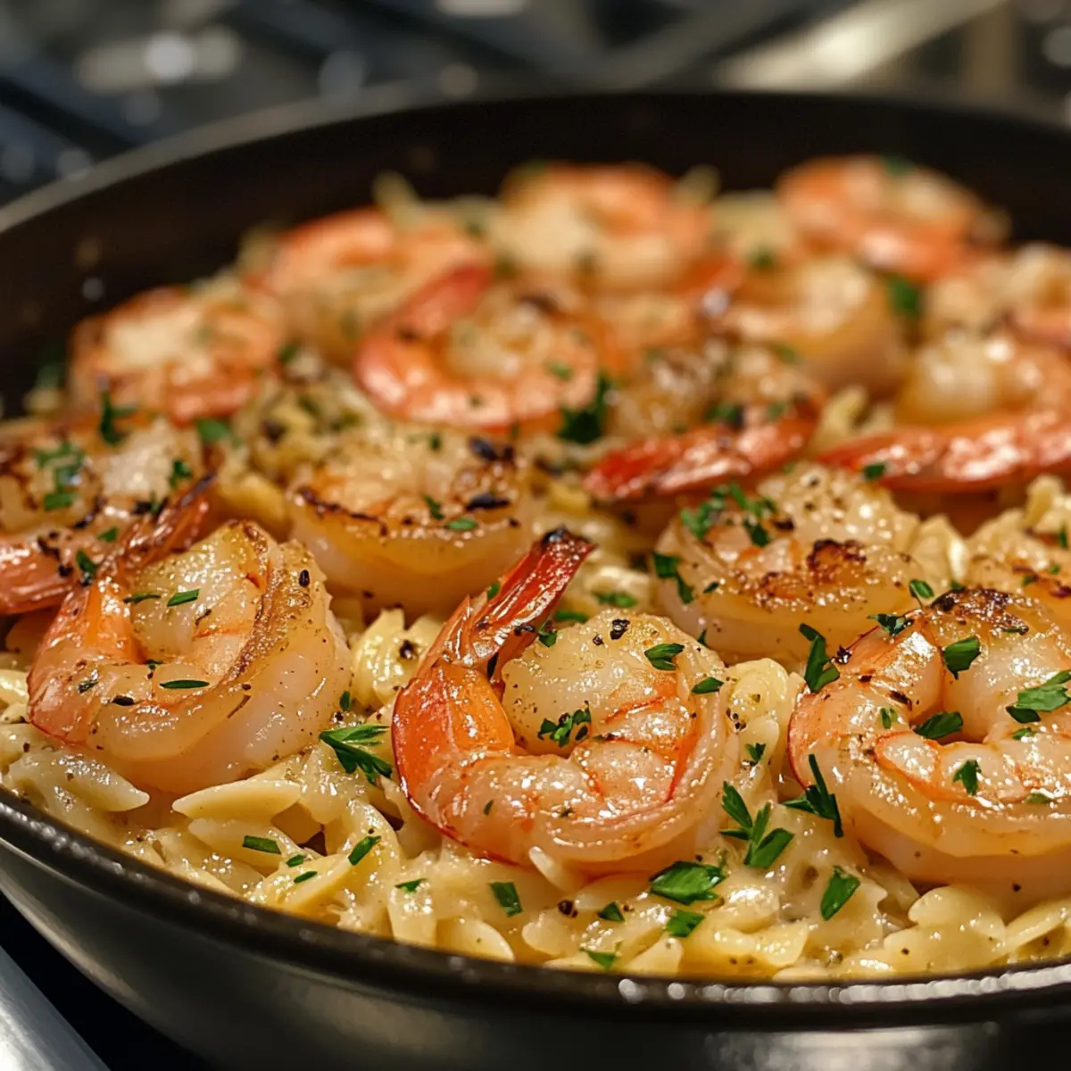 As I stood in my kitchen, the aroma of garlic sizzling in butter danced through the air, instantly transporting me to a sunlit Mediterranean terrace. This simple yet scrumptious One-Pot Garlic Butter Shrimp and Creamy Orzo comes together in just 40 minutes, making it my go-to for both hectic weeknights and cozy dinner parties. With its velvety orzo and succulent shrimp, this dish is a delightful balance of comfort and elegance, sure to impress family and friends. Plus, the best part? This quick-cooking beauty leaves only one pot to clean, freeing up your time for what really matters—savoring each rich, buttery bite. Ready to elevate your dinner game? Let’s dive into this delicious recipe that promises to be a new household favorite! Why is One Pot Garlic Butter Shrimp Amazing? Effortless Cooking: This recipe is a game-changer for busy evenings, as everything cooks in one pot, minimizing cleanup and maximizing flavor. Flavor Explosion: The combination of garlic, buttery richness, and succulent shrimp creates an irresistible dish that’s bursting with taste. Versatile Options: Easily adaptable by swapping shrimp for chicken or seasonal veggies, making it a perfect fit for any palate or dietary preference. Impressive Presentation: Serve this dish hot, and watch your family and friends’ eyes light up as they savor each creamy bite, making you look like a culinary pro! Crowd Pleaser: Its delightful balance of comfort and elegance makes it the perfect choice for both casual dinners and special gatherings. One Pot Garlic Butter Shrimp Ingredients • Below is everything you need for your flavor-packed dish! For the Base Unsalted Butter – Adds richness and is essential for sautéing; substitute with olive oil for a lighter option. Medium Shrimp – The star ingredient providing protein and flavor; use peeled and deveined shrimp to minimize prep time. Garlic – Adds aromatic flavor; minced fresh garlic is best for intensity. Kosher Salt and Black Pepper – Essential for seasoning; adjust to your taste. Lemon Zest – Provides citrusy brightness, enhancing the overall flavor. Fresh Lemon Juice – Balances richness and adds a refreshing note. Shallots – Adds sweetness and depth; can be substituted with onion if necessary. For the Sauce All-Purpose Flour – Thickens the sauce beautifully for a creamy texture. Dry White Wine – Enhances the flavor, but can be replaced with additional chicken stock for a non-alcoholic option. Chicken Stock – Cooks the orzo and adds depth; low-sodium versions are preferable for better salt control. Orzo Pasta – Cooks quickly and adds a creamy consistency similar to risotto. For the Finish Freshly Grated Parmesan – Contributes a salty, nutty flavor and creaminess. Heavy Cream – Adds a luscious texture; substitute with half-and-half for a lighter version. Fresh Parsley and Dill – Adds vibrancy; use herbs of your choice to garnish or enhance flavor. Feel ready to create this One Pot Garlic Butter Shrimp dish that promises delectable flavors and a delightful dining experience! Step‑by‑Step Instructions for One Pot Garlic Butter Shrimp Step 1: Sauté the Shrimp In a Dutch oven, melt 2 tablespoons of unsalted butter over medium heat. Once the butter is bubbling, add the medium shrimp and minced garlic, seasoning them generously with kosher salt and black pepper. Cook for about 2-3 minutes until the shrimp turn pink and opaque. Remove the cooked shrimp from the pot and keep them warm on a plate while you prepare the rest of the dish. Step 2: Cook Shallots and Garlic In the same Dutch oven, melt another 2 tablespoons of butter over medium heat. Add the minced garlic and diced shallots, sautéing them for about 3 minutes until they become tender and fragrant. You’ll notice the shallots turning translucent, which signals that the base flavor for your One Pot Garlic Butter Shrimp is well established. Step 3: Create the Roux Whisk in 2 tablespoons of all-purpose flour to the sautéed mixture and cook for about 1 minute. Stir continuously until the flour is lightly browned, creating a roux that will help thicken the sauce. This will give your dish a luxurious texture, so make sure it doesn’t burn as you develop that rich flavor. Step 4: Build the Sauce Pour in 1 cup of dry white wine and 2 cups of chicken stock, scraping up any browned bits from the bottom of the pot. Stir in the orzo pasta, seasoning with a little more salt and pepper. Raise the heat to bring it to a boil, then reduce to a simmer for about 6 minutes until the orzo is cooked al dente and infused with garlic-butter goodness. Step 5: Adjust Consistency Check the consistency of your sauce; if it seems too thick, gradually add more chicken stock or water until you reach your desired creaminess. Give it a good stir to ensure the orzo is evenly coated and soaking up all those delightful flavors from the One Pot Garlic Butter Shrimp dish. Step 6: Finish with Flavor Once the orzo is cooked, stir in ½ cup of freshly grated Parmesan, ¼ cup of heavy cream, the fresh lemon juice, lemon zest, parsley, and dill. Return the sautéed shrimp to the pot, mixing everything gently to combine. Cook for an additional minute to warm the shrimp through and allow the flavors to meld beautifully. Step 7: Serve Immediately With everything well mixed and piping hot, serve your One Pot Garlic Butter Shrimp and Creamy Orzo immediately. Ladle into bowls and garnish with more fresh herbs if desired. This dish pairs wonderfully with crusty bread for dipping, making it perfect for a cozy family dinner or an elegant gathering with friends. Make Ahead Options These One Pot Garlic Butter Shrimp and Creamy Orzo are perfect for meal prep enthusiasts! You can prepare the garlic and shallots, as well as measure out your pasta and dry ingredients, up to 24 hours in advance. Simply store them in airtight containers in the refrigerator to maintain freshness. Additionally, you can clean and devein the shrimp ahead of time a