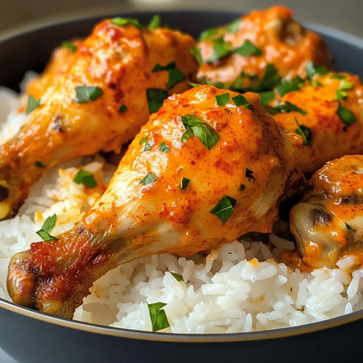 Stepping into the kitchen today felt like unearthing a hidden gem from the past—a recipe that instantly fills my home with warmth and nostalgia. These Creamy Paprika Chicken Drumsticks, paired with fluffy steamed rice, bring together the rich, smoky notes of paprika and the lusciousness of a creamy sauce. This dish isn’t just a meal; it’s a comforting hug for those bustling weeknight dinners or a special family gathering. Plus, it’s incredibly easy to whip up, making it a perfect option for anyone looking to break free from fast food. Trust me, once you taste these succulent drumsticks topped with that velvety sauce, you’ll be tempted to add it to your weekly rotation! Are you ready to indulge in a bowl of happiness? Let’s get cooking! Why Choose Paprika Chicken Drumsticks? Comforting, Cozy Flavors: This dish offers a delightful blend of smoky paprika and creamy goodness that can transform any dinner into a heartwarming feast. Fast and Easy: Perfect for busy weeknights, you can have it on the table in under an hour! Crowd-Pleasing Appeal: Family and friends will rave about these juicy drumsticks, ensuring it’s a hit at gatherings. Versatile Options: Swap ingredients like rice for jasmine or basmati, or substitute chicken parts with thighs for a twist! Leftover Friendly: Need meal prep ideas? This dish stores beautifully for quick lunches or dinners; just reheat and enjoy! Experience the magic of homemade meals with these Creamy Paprika Chicken Drumsticks and consider pairing it with a side of steamed veggies for a complete, balanced meal. Paprika Chicken Drumsticks Ingredients For the Chicken • Chicken Drumsticks – Provides the main protein; you can substitute with boneless thighs or breasts, adjusting the cooking time as necessary. • Salt – Essential seasoning to enhance flavors, so don’t skip it! • Pepper – Adds a touch of warmth; freshly ground black pepper is best for more flavor. • Smoked Paprika – Adds depth and a smoky flavor; if unavailable, you can use regular paprika or a pinch of chipotle powder for extra smokiness. For the Creamy Sauce • Garlic – Fresh is preferred for a robust flavor, but garlic powder can work in a pinch when you’re short on time. • Dijon Mustard – Contributes tanginess and depth; yellow mustard is a suitable substitute but will alter the flavor slightly. • Heavy Cream – Creates a rich and creamy texture; half-and-half can be used for a lighter version while still enjoying the creamy paprika flavor. • Flour – Used for thickening the sauce; cornstarch or gluten-free flour can work well for a gluten-free option. • Crushed Red Pepper Flakes – Optional for a mild heat; feel free to omit for a milder dish or increase for more spice. For Serving • Steamed Rice – The perfect base to enjoy the creamy sauce; try jasmine or basmati for an aromatic twist! • Fresh Parsley – A sprinkle for color and freshness, enhancing the dish’s overall appeal. With these key ingredients in hand, you’re all set to create a delightful dish of Creamy Paprika Chicken Drumsticks that will leave everyone craving more! Step‑by‑Step Instructions for Creamy Paprika Chicken Drumsticks Step 1: Preheat the Oven Begin by preheating your oven to 400°F (200°C). This temperature is perfect for roasting the chicken drumsticks to achieve that crispy skin. While the oven warms up, prepare the chicken by laying out your ingredients, ensuring a smooth cooking process. Step 2: Prepare the Chicken Next, take the chicken drumsticks and season them generously with salt, pepper, and smoked paprika. Rub the spices evenly over the drumsticks for maximum flavor. Let the seasoned chicken sit for about 10 minutes to absorb the spices while you prepare your roasting pan. Step 3: Roast the Chicken Place the seasoned chicken drumsticks in a roasting pan, ensuring they are spaced apart for even cooking. Roast in the preheated oven for 30–35 minutes, or until the drumsticks have reached an internal temperature of 165°F (74°C). They should be golden brown and juices will run clear, indicating they’re cooked to perfection. Step 4: Make the Creamy Sauce While the chicken roasts, grab a skillet and heat a drizzle of oil over medium heat. Add minced garlic and sauté for about 1–2 minutes until fragrant. Next, sprinkle in the flour to create a roux, whisking continuously for another 2 minutes until it turns lightly golden before whisking in the heavy cream, Dijon mustard, and smoked paprika. Step 5: Simmer the Sauce Allow the creamy sauce to simmer gently for about 5–7 minutes, stirring occasionally. This will help thicken it up to a luscious consistency that clings beautifully to the chicken. If the sauce gets too thick, feel free to add a splash of water or more cream until you reach your desired consistency. Step 6: Combine Chicken and Sauce Once the chicken drumsticks are done, remove them from the oven and carefully coat each piece with the rich paprika cream sauce. You can spoon the sauce over the drumsticks or toss them gently in the skillet to ensure every bite is drenched in that smoky goodness. Step 7: Serve with Rice To complete your meal, serve the creamy paprika chicken drumsticks over a bed of fluffy steamed rice. The rice will soak up the flavorful sauce, making for a satisfying dish. Garnish with fresh parsley for a pop of color, and enjoy the comfort of this delightful weeknight dinner! How to Store and Freeze Creamy Paprika Chicken Drumsticks Fridge: Store leftover creamy paprika chicken drumsticks in an airtight container for up to 3 days. Make sure to keep the rice separate to maintain its fluffy texture. Freezer: If you want to save them for later, freeze the drumsticks and sauce in an airtight container for up to 2 months. Thaw in the refrigerator overnight before reheating. Reheating: Warm the chicken and sauce gently on the stovetop or in the microwave until hot. Add a splash of cream to the sauce for a fresh, creamy co