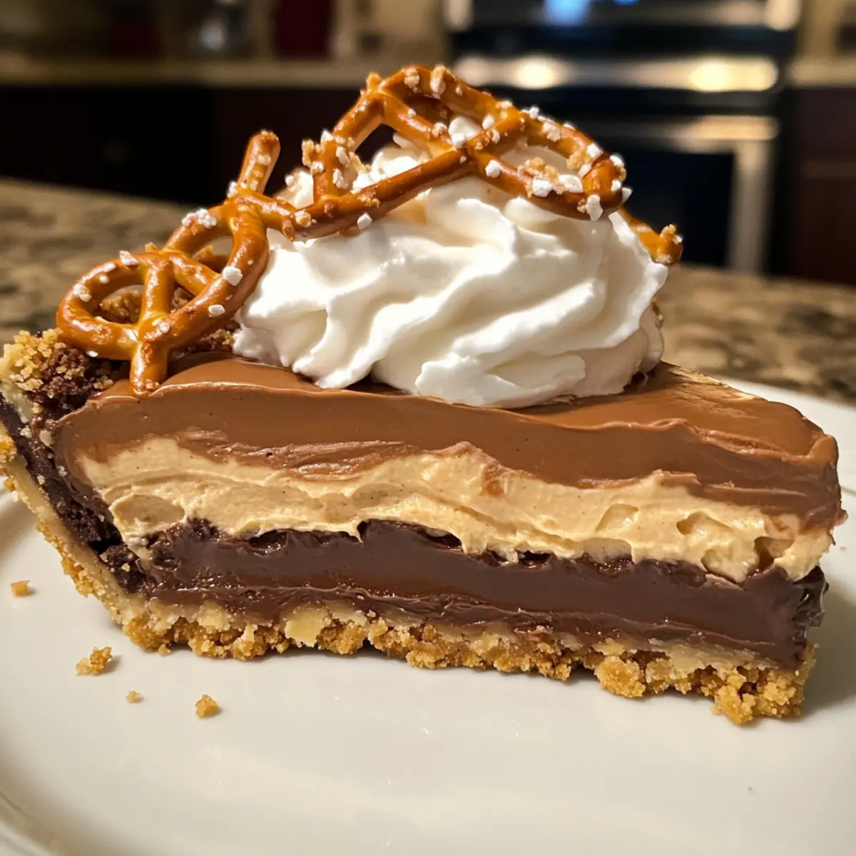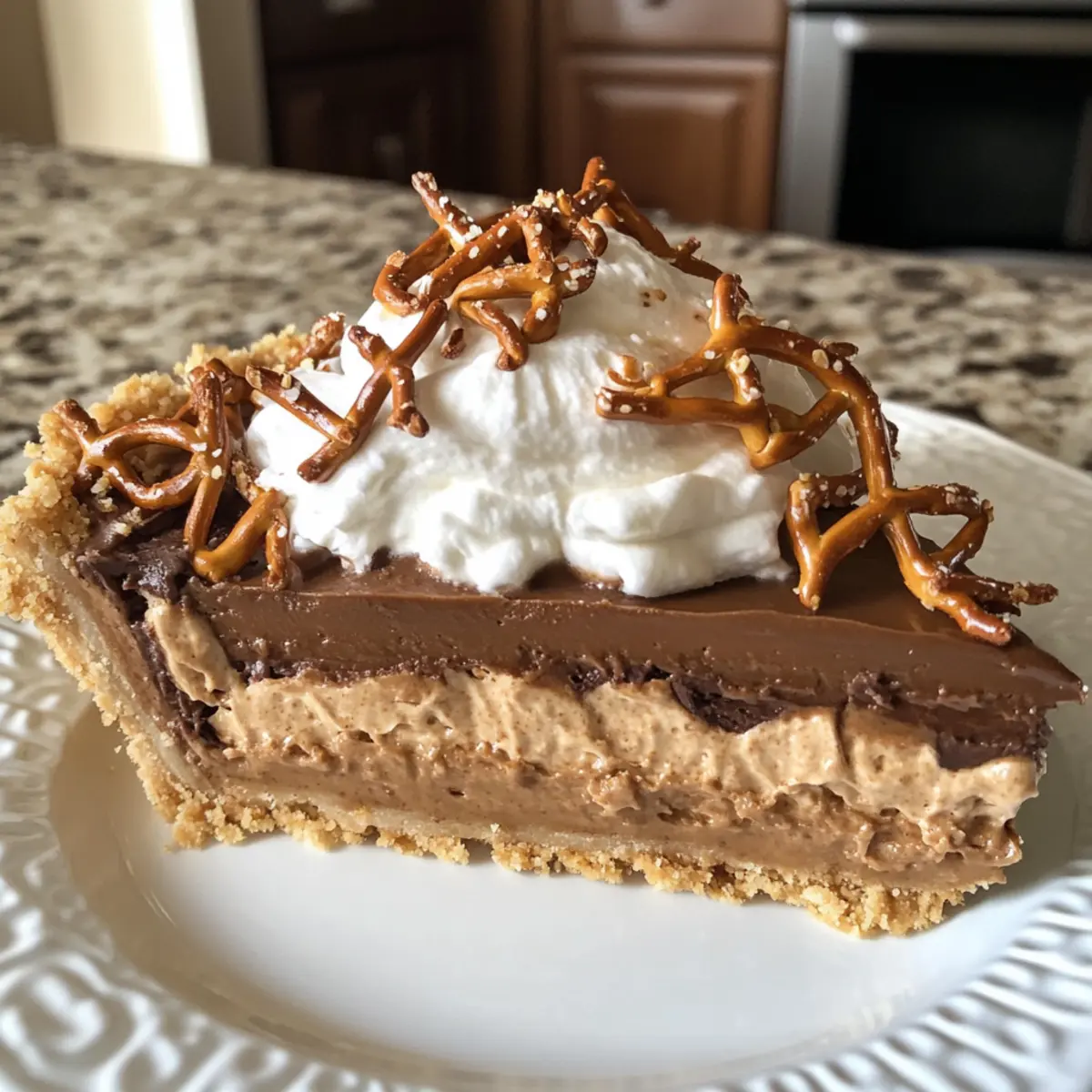 As I rummaged through my pantry searching for a quick dessert fix, I stumbled upon the perfect combination: peanut butter, pretzels, and chocolate. That’s how my No-Bake Peanut Butter Pretzel Pie came to life! This sensational dessert marries the salty crunch of pretzels with a silky, no-bake peanut butter filling and a rich chocolate pudding layer. It’s not just easy to whip up, making it a weeknight hero, but it also strikes the perfect balance between creamy, crunchy, sweet, and salty flavors that will leave your guests asking for seconds. Whether you’re hosting a gathering or just treating yourself after a long day, this pie is sure to delight. Ready to dive into this scrumptious creation? Let’s get started! Why is this dessert a game-changer? Decadent Layers: This Peanut Butter Pretzel Pie boasts rich layers of creamy peanut butter filling atop a salty pretzel crust, delivering an unforgettable flavor experience. No-Bake Simplicity: Say goodbye to lengthy baking sessions! This recipe is quick and straightforward, perfect for busy weeknights or unexpected guests. Salty-Sweet Bliss: The combination of crunchy pretzels and smooth chocolate pudding creates a delightful contrast that satisfies all cravings. Crowd-Pleasing Delight: Impress friends and family with this stunning dessert, which is sure to be the highlight of any gathering. Versatile Combo: Feel free to switch things up! Swap in different pudding flavors or even add fruits like strawberries for a fresh touch. Whether you’re looking for a sweet centerpiece for festive occasions or a simple indulgence, this pie has you covered. Pair it with sides like our Peanut Crunch Salad for a balanced treat! Peanut Butter Pretzel Pie Ingredients For the Pretzel Crust • Crushed Pretzels – Forms the salty base of the crust; ensure they are finely crushed for a cohesive texture. • Unsalted Butter – Binds the pretzel crust; use unsalted for better control over saltiness. For the Peanut Butter Filling • Powdered Sugar – Sweetens the peanut butter filling, creating a creamy texture; substitute granulated sugar if needed, but expect a grainier consistency. • Cream Cheese – Provides a rich, creamy texture in the filling; must be softened for mixing. • Creamy Peanut Butter – Main flavor component of the filling; natural or processed can be used as per preference. • Vanilla Extract – Adds depth to the flavors of the filling. • Whipped Topping – Lightens the filling; can be substituted with homemade whipped cream. For the Chocolate Layer • Instant Chocolate Pudding – Creates a rich chocolate layer that sets without cooking; do not use cook-and-serve pudding. • Milk – Required to prepare the pudding; use whole milk for creaminess or substitute with almond milk for a dairy-free version. For the Toppings • Whipped Topping (for topping) – Additional layer of creaminess on top. • Crushed Pretzels (for topping) – Adds a crunchy texture contrast. • Chocolate Sauce – For drizzling, enhancing the pie’s appearance and flavor. Now that we have everything ready, it’s time to create this delightful Peanut Butter Pretzel Pie that everyone will love! Step‑by‑Step Instructions for Peanut Butter Pretzel Pie Step 1: Preheat and Prepare the Baking Dish Preheat your oven to 400°F (200°C). While the oven warms up, line a 13×9 baking dish with parchment paper for easy removal later. This will help you achieve a pristine slice of the no-bake Peanut Butter Pretzel Pie once it’s ready to serve. Step 2: Make the Pretzel Crust In a medium saucepan, melt half a cup of unsalted butter over low heat. Once melted, take it off the heat and stir in finely crushed pretzels until well mixed. Press this mixture firmly into the bottom of your prepared baking dish to form a cohesive crust. Bake for 5 minutes until lightly golden, then allow it to cool to room temperature. Step 3: Prepare the Peanut Butter Filling In a large mixing bowl, combine softened cream cheese, powdered sugar, creamy peanut butter, and a splash of vanilla extract. Using a hand mixer, beat the mixture until it’s smooth and creamy, avoiding lumps. Gently fold in 1 cup of whipped topping to lighten the filling, creating a fluffy texture that balances perfectly with the pretzel crust. Step 4: Assemble the Layers Spread the prepared peanut butter mixture evenly over the cooled pretzel crust, ensuring it’s smooth and reaches the edges for even layering. Next, in a separate bowl, whisk together instant chocolate pudding and milk until well combined and slightly thickened. Pour this chocolate mixture over the peanut butter layer, smoothing it out gently for a beautiful finish. Step 5: Chill to Set Cover the baking dish with plastic wrap and refrigerate for at least 30 minutes to allow the layers of your Peanut Butter Pretzel Pie to set. This chilling time is essential to achieve that perfect consistency and flavor blend. If you can wait, letting it chill for several hours, or even overnight, enhances the flavor further. Step 6: Add the Toppings Once chilled, remove the pie from the refrigerator and spread the remaining whipped topping over the chocolate layer. This creates a light and airy finish that complements the pie beautifully. For added crunch, generously sprinkle crushed pretzels on top, and finish with a drizzle of chocolate sauce for a delightful look and extra sweetness. Step 7: Serve and Enjoy Slice the Peanut Butter Pretzel Pie into squares, using a clean knife for neat edges, and serve chilled. This no-bake dessert is perfect for sharing at gatherings or indulging during a cozy night in. Each bite offers a delicious blend of creamy and crunchy textures that everyone will adore! Expert Tips for Peanut Butter Pretzel Pie Crust Consistency: Ensure your crushed pretzels are finely ground to create a sturdy crust. Large pieces may lead to a crumbly texture. Whipping Cream: When folding in the whipped topping, do it gently. This preserves th