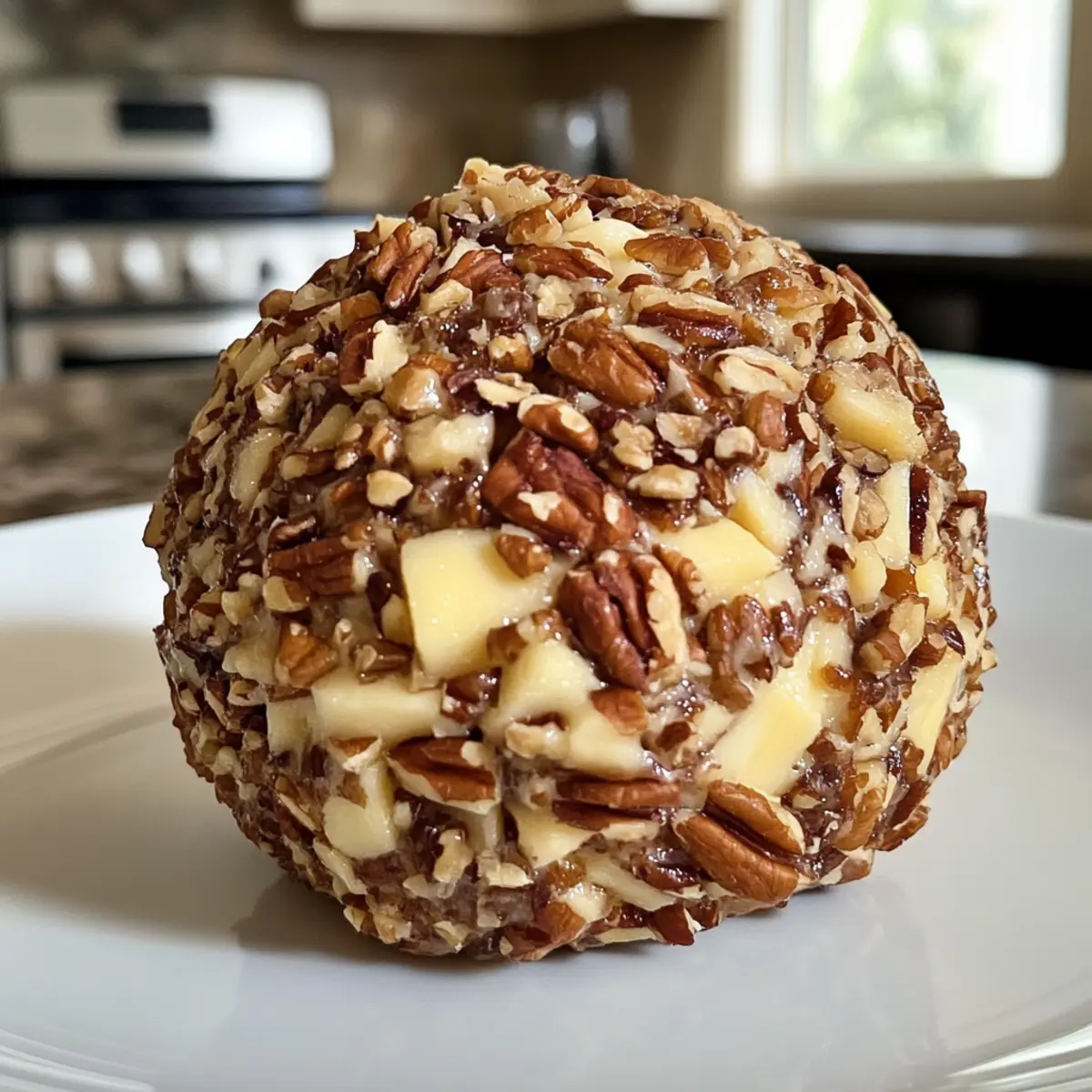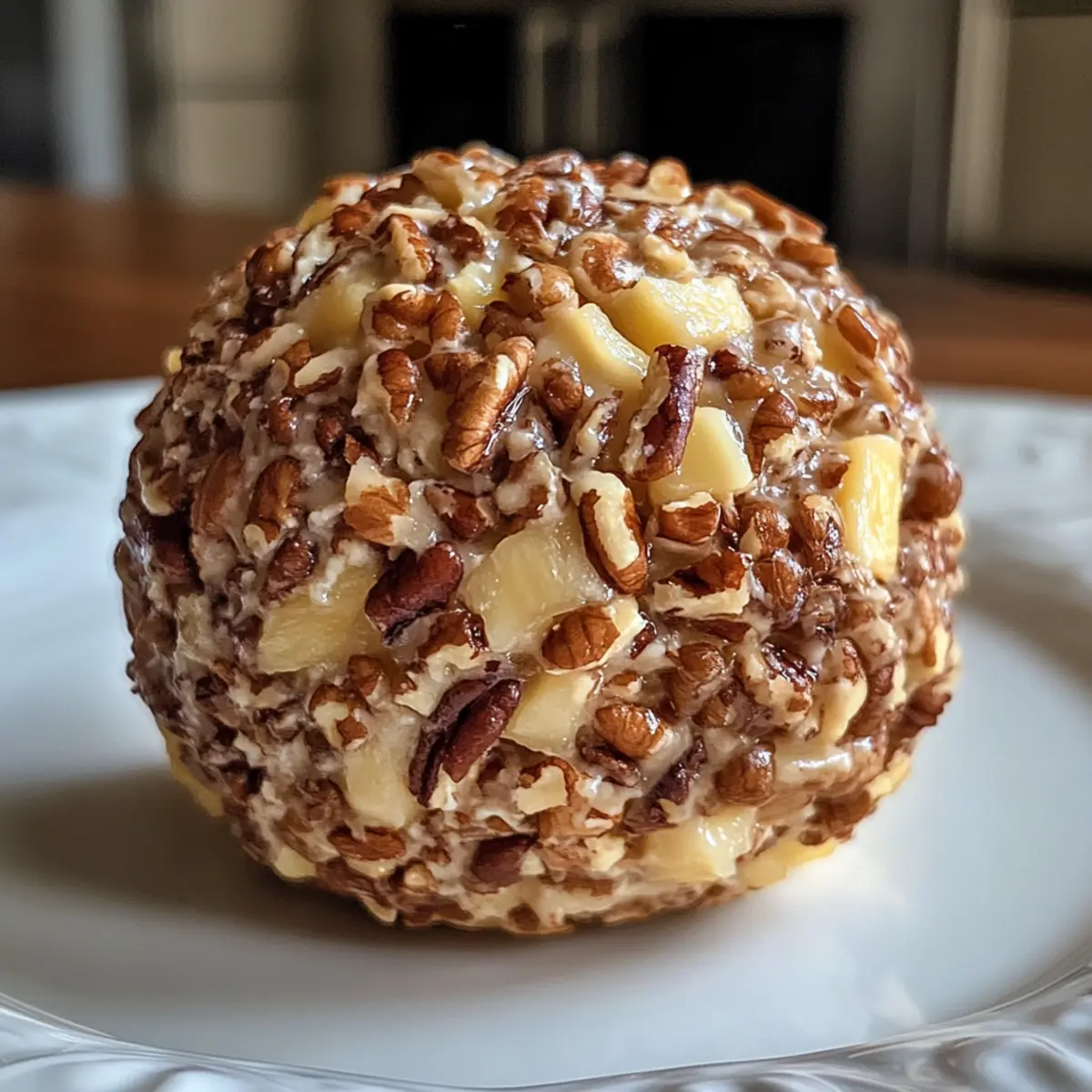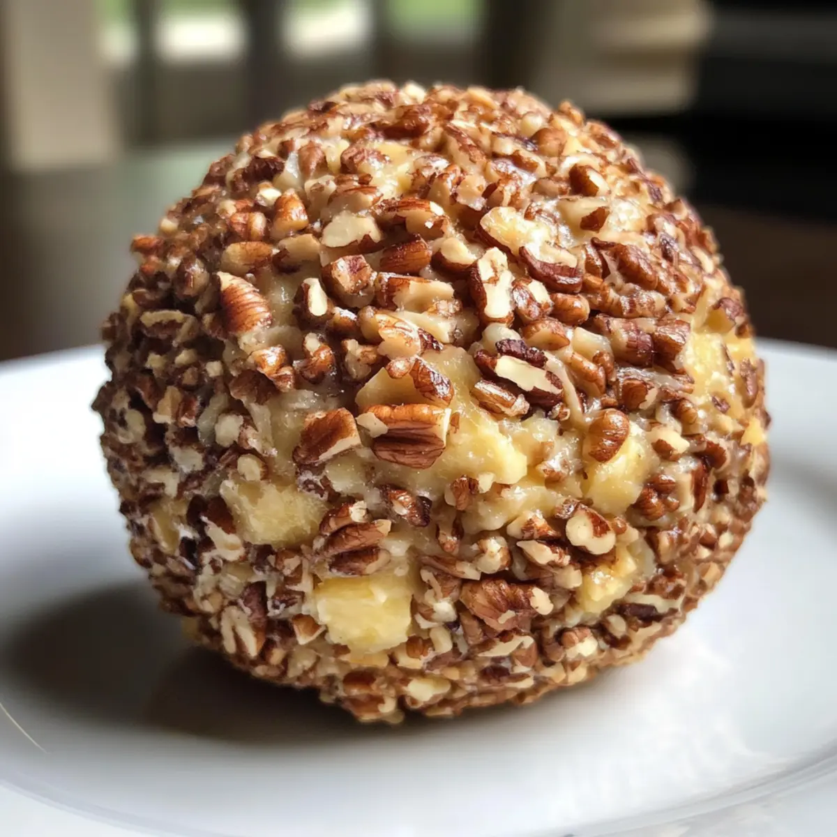 “Picture your next gathering filled with laughter, friends, and the unmistakable aroma of delicious appetizers wafting through the air. Amidst the spread, one dish will keep everyone reaching for more: the nostalgic Pineapple Cheese Ball. This easy no-bake recipe marries sweet and savory flavors, delivering a creamy delight that practically dances with crunchy pecans and zesty green onions. Perfect for holidays, potlucks, or just a cozy night in, it’s a crowd-pleaser that you can whip up in no time. Plus, it’s make-ahead, allowing you to savor the moment rather than stress over the kitchen. Curious about how to create this delightful culinary centerpiece? Let’s dive into the fun!” Why is Pineapple Cheese Ball a Must-Try? Crowd-Pleaser: Your guests will rave about the delightful blend of sweet, savory flavors that make this cheese ball an instant favorite at any gathering. No-Bake Convenience: Forget lengthy prep times; this recipe is quick and easy, allowing you to focus on enjoying your time with loved ones. Perfect for Any Occasion: Whether it’s a holiday feast, a backyard barbecue, or a cozy movie night, this appetizer fits right in and complements a variety of dishes. Creative Variations: Feel free to mix things up! Try adding crispy bacon for an extra touch or spice it up with jalapeños – the possibilities are delicious and endless. Make-Ahead Friendly: Prepare it the day before, and let the flavors meld together for the ultimate creamy delight. You’ll thank yourself when it’s time to serve! With its vibrant taste and inviting presentation, the Pineapple Cheese Ball is just as memorable as Mini Pineapple Cheesecakes and pairs beautifully with a Tropical Pineapple Mango drink for a perfect party spread. Pineapple Cheese Ball Ingredients For the Cheese Ball Base • Cream Cheese – Provides a creamy base and rich flavor; full-fat is ideal for the best results. • Crushed Pineapple – Adds sweetness and moisture; make sure to drain it thoroughly to avoid a soggy texture. • Green Onions – Introduces a mild savory note; chop finely for even distribution among the mixture. • Pineapple Juice – Optional for enhanced flavor; it adds a refreshing tropical touch to the cheese ball. • Garlic Powder – Brings depth of flavor; just a pinch adds a savory complexity. • Salt – Enhances overall taste; use a little sparingly to complement the other flavors without overpowering them. For the Coating • Chopped Pecans – Provides the perfect crunchy coating and nutty taste; walnuts can be used as a substitute if desired. Step‑by‑Step Instructions for Pineapple Cheese Ball Step 1: Prep Ingredients Begin your Pineapple Cheese Ball by ensuring your cream cheese is softened at room temperature for about 30 minutes. While it softens, open a can of crushed pineapple, drain it thoroughly in a colander, and pat it dry with paper towels to eliminate excess moisture, which prevents a soggy cheese ball later. Step 2: Mix Base In a large mixing bowl, combine the softened cream cheese, the drained pineapple, finely chopped green onions, a splash of pineapple juice (if desired), garlic powder, and a pinch of salt. Using a sturdy spatula or an electric mixer on low speed, blend these ingredients until they’re well mixed and creamy, with no large lumps remaining for a smooth cheese ball. Step 3: Chill Mixture Once your mixture is combined, cover the bowl with plastic wrap or a lid. Place it in the refrigerator for 30 minutes to 1 hour. This chilling time allows the flavors to meld beautifully and the mixture to firm up, making it easier to shape into a ball later on. Step 4: Shape Cheese Ball Remove the chilled mixture from the refrigerator. Using clean hands, scoop out the cheese mixture and form it into a rustic ball shape. Don’t worry about making it perfect—each Pineapple Cheese Ball has its own charm! Aim for a diameter of about 6 inches to create a substantial centerpiece for your appetizer table. Step 5: Coat Cheese Ball To coat your cheese ball, place the chopped pecans on a large plate. Roll the shaped cheese ball in the nuts, pressing gently to ensure they stick. Turn it around until it’s evenly coated. This adds a delightful crunch and nutty flavor to the outer layer of your Pineapple Cheese Ball, enhancing its appeal. Step 6: Final Chill Once coated, return the cheese ball to the refrigerator. Let it chill for at least an hour before serving. This final chilling not only helps the cheese ball hold its shape but also allows the flavors to develop further, transforming your creation into a delightful savory-sweet treat that’s sure to impress your guests. What to Serve with Nostalgic Pineapple Cheese Ball Picture your gathering filled with laughter and the tantalizing aroma of delicious appetizers wafting through the air. Buttery Crackers: These add a lovely contrast of textures, perfectly complementing the creamy cheese ball with every bite. The richness of the crackers enhances the sweetness of the pineapple. Fresh Vegetable Slices: Crisp cucumbers, bell peppers, or celery provide a refreshing crunch, balancing the richness of the cheese ball. It’s a great way to sneak in some health alongside the indulgence. Pretzel Crisps: Salty and crunchy, these are a fantastic vehicle for the cheese ball. The texture pairs beautifully, making every scoop equally satisfying. Fruit Platter: Fresh pineapple, strawberries, and grapes bring out the tropical notes in the cheese ball, enhancing its sweetness. This delightful mix offers a colorful and vibrant addition to your serving tray. Sparkling Wine: A glass of bubbly complements the creamy and sweet flavors, lifting the palate and adding a celebratory feel to any occasion. Mini Sweet Treats: Small bites of cheesecake or fruit tarts can round out your appetizer spread, offering a sweet finish to the salty and savory notes in the cheese ball. Baked Ham Bites: These heartier options add a salty contrast to the sweet pine