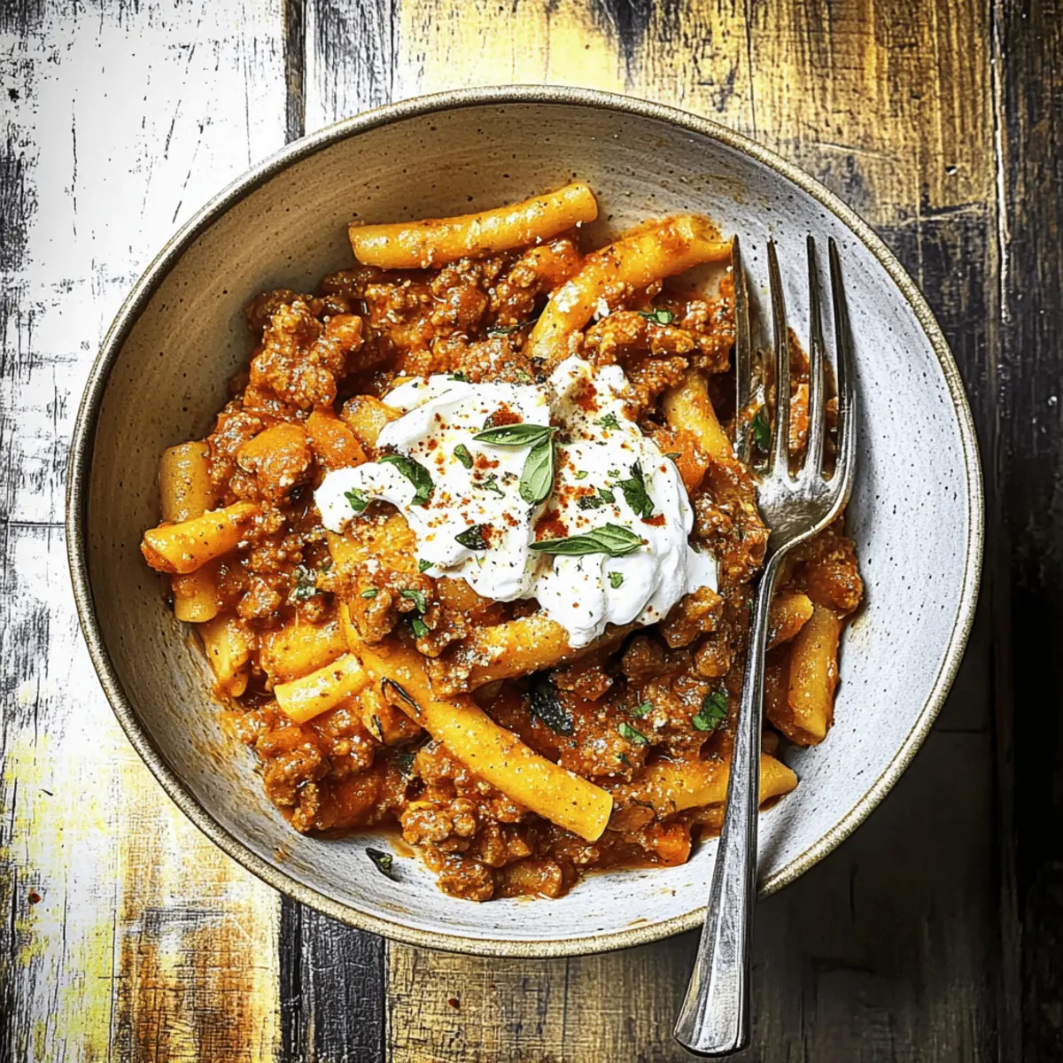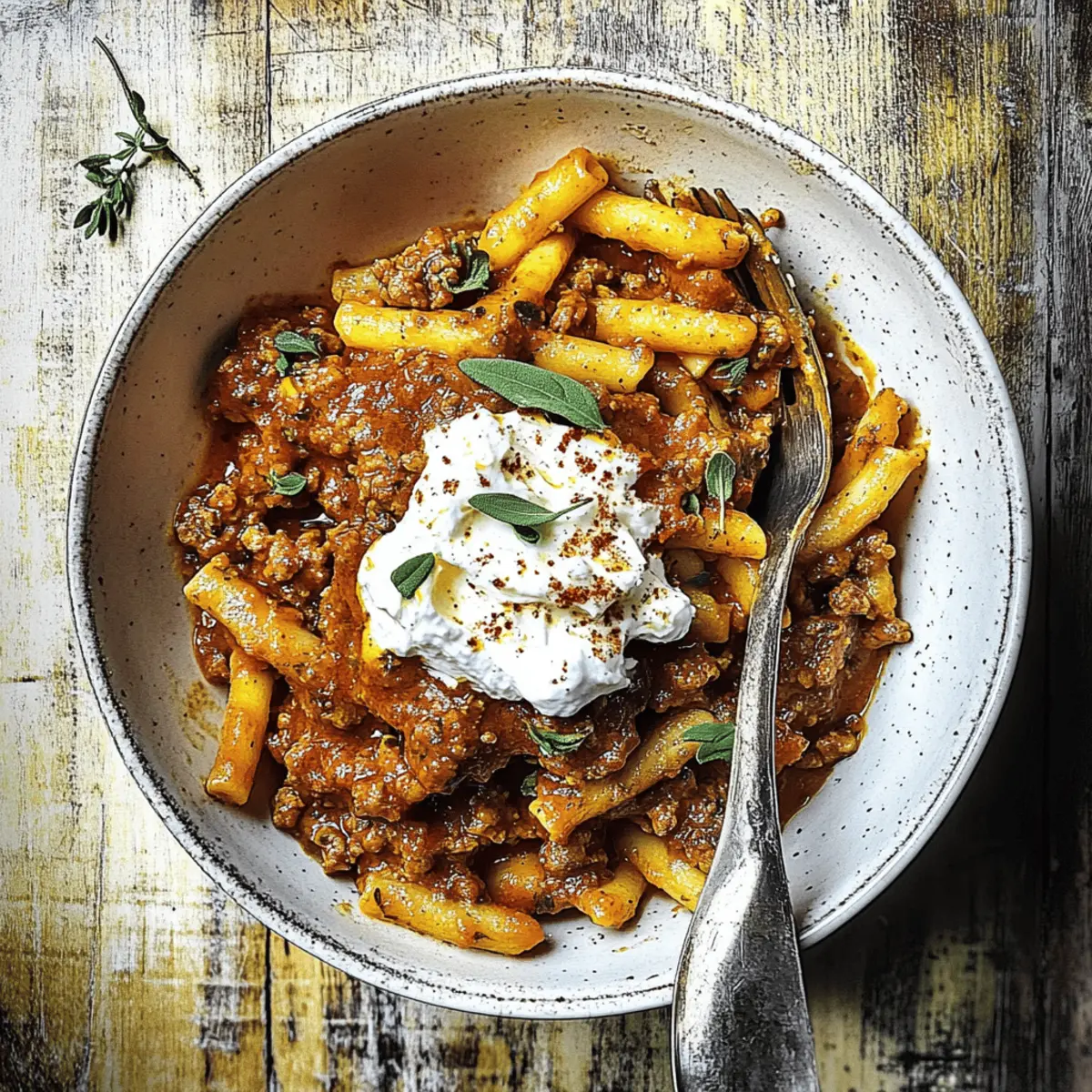 As I stood by the stove, the comforting aromas of simmering herbs and spices began to fill my kitchen, making it feel like a cozy sanctuary. This Pumpkin Beef Bolognese is my go-to dish for those busy weeknights when I crave something hearty and satisfying without spending hours in the kitchen. Packed with tender pumpkin that melds beautifully into a rich, flavorful meat sauce, it’s a comforting twist on a classic that everyone will adore. Plus, the beauty of this recipe lies in its versatility; you can easily swap the beef for pork or chicken, depending on your preference. Not only is it quick to prepare in just one pan, but it also becomes a delightful crowd-pleaser that’s perfect for sharing. Are you ready to bring this heartwarming dish to your dinner table? Why is Pumpkin Bolognese a Must-Try? Comforting Flavors: This Pumpkin Beef Bolognese combines the warmth of classic pasta dishes with the unique sweetness of pumpkin, creating a delightful experience for your taste buds. One-Pan Wonder: Save time on clean-up and enjoy hassle-free cooking; everything cooks in a single pot, making it ideal for busy weeknights. Adaptable Ingredients: Whether you prefer ground beef, pork, or want to go light with chicken, this recipe is easily customizable to fit your dietary needs. Crowd-Pleasing Dish: Perfect for family dinners or gatherings, the rich, hearty sauce paired with pasta will undoubtedly impress everyone at the table. Flavorful Yet Simple: With straightforward ingredients and easy-to-follow steps, you’ll have a delicious meal on the table in no time! For more comforting recipes, check out my Ginger Beef Onion Stir Fry or Creamy Garlic Butter Beef Pasta. Pumpkin Bolognese Ingredients For the Sauce • Olive Oil – Essential for sautéing and adding flavor; swap with any neutral oil if needed. • Shallots – Sweetness and depth are essential; substitute with onion if unavailable. • Garlic – Brings aromatic essence; can replace with garlic powder in a pinch. • Celery – Adds a crunchy texture; finely chop for best results. • Diced Pumpkin (Hokkaido or Red Kuri) – The star ingredient providing sweetness and texture; use pumpkin puree for a quicker option. • Fennel – Adds a lovely hint of licorice flavor; feel free to omit if you don’t have it. • Ground Beef – The hearty protein foundation; pork or chicken can be used in its place. • Dried Thyme, Sage, Marjoram – These herbs deepen the flavor profile of your Pumpkin Bolognese. • Smoked Paprika – Adds a nice smokiness; regular paprika is a suitable substitute if needed. • Chili Flakes – For a touch of heat; adjust to your spice preference. • Salt and Black Pepper – Essential for balancing flavors; add gradually to avoid overpowering the dish. • Beef Broth – Keeps the meat moist and adds richness; chicken or vegetable broth can lighten it up. • Bay Leaf – Infuses the sauce with flavor during simmering; don’t forget to remove before serving. • Puréed Tomatoes – Forms the sauce base; canned tomatoes are convenient and flavorful. • Tomato Paste – Thickens and intensifies flavor; consider adding a pinch of sugar for extra sweetness if desired. • Whipped Ricotta (optional) – Topping that adds a creamy dimension; ensure it’s mixed well for smoothness before serving. For the Pasta • Pasta – The base of your warm, cozy dish; choose any variety you love, like spaghetti or fettuccine. Each ingredient in this list contributes to making a delicious, comforting Pumpkin Bolognese that will warm your heart and delight your palate! Step‑by‑Step Instructions for Pumpkin Beef Bolognese Step 1: Heat the Oil Begin by heating 2 tablespoons of olive oil in a large saucepan or Dutch oven over medium-low heat. Once the oil glistens, it’s ready for the next step. This initial heat will set the stage for a flavorful base in your Pumpkin Beef Bolognese. Step 2: Sauté the Aromatics Add 1 chopped shallot, 2 minced garlic cloves, and 1 finely chopped celery stalk to the pan. Sauté them gently for about 5 minutes, stirring frequently until they soften and release their fragrant aromas, creating a delightful warmth in your kitchen. Step 3: Incorporate the Pumpkin Now, stir in 3 cups of diced pumpkin. Allow it to cook for an additional 5 minutes, stirring often until the pumpkin begins to soften slightly. You’ll notice the vibrant color brightening up the mixture, infusing the Pumpkin Beef Bolognese with a hint of sweetness. Step 4: Add the Fennel Next, add 1 tablespoon of diced fennel to the pan and cook for 3 more minutes. This step introduces a subtle licorice flavor that beautifully complements the pumpkin, making your sauce even more delicious. Stir well to combine all ingredients. Step 5: Brown the Beef Increase the heat to high and add 1 pound of ground beef, breaking it up as it cooks. Brown the beef for about 10 minutes, stirring occasionally. The meat should be cooked through and nicely browned, adding a hearty depth to your Pumpkin Beef Bolognese. Step 6: Season and Simmer Stir in 1 teaspoon each of dried thyme, sage, marjoram, and a pinch of chili flakes, along with salt and black pepper to taste. Pour in 1 cup of beef broth and add 1 bay leaf. Let it simmer for 10 minutes, allowing the flavors to meld beautifully into the sauce. Step 7: Add Tomatoes Incorporate 1 can of puréed tomatoes and 2 tablespoons of tomato paste into the mixture. Cover the pan and let the sauce simmer for another 10-15 minutes, or until the pumpkin is fork-tender. This is when the rich aromas of your Pumpkin Beef Bolognese will start filling your home. Step 8: Cook the Pasta While the sauce simmers, bring a large pot of salted water to a boil. Add your choice of pasta and cook it al dente according to package instructions, usually around 8-10 minutes. Drain the pasta and set aside, ready to be paired with your savory sauce. Step 9: Serve and Garnish Spoon the Pumpkin Beef Bolognese sauce generously over t