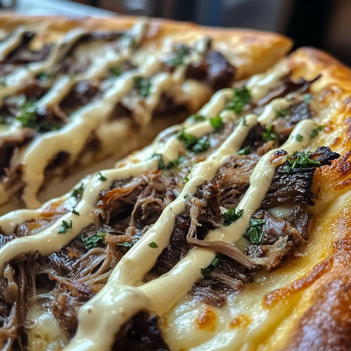 As I pulled my freshly baked short rib pizza from the oven, the irresistible aroma filled the kitchen, making it impossible to resist a slice right away. This unique Short Rib Pizza with Smoked Gouda Cream Sauce is not just a meal—it’s an experience that transforms ordinary pizza night into a gourmet adventure. With rich, slow-cooked short ribs and a velvety smoked gouda cream sauce, this dish delivers comfort and indulgence all in one bite. It’s quick to prepare and perfect for impressing guests or simply treating yourself. Plus, you can easily adapt this recipe to suit your dietary preferences with gluten-free dough or alternative proteins. Are you ready to elevate your pizza game and tantalize your taste buds? Why is this pizza a must-try? Gourmet Experience: Indulging in this Short Rib Pizza with Smoked Gouda Cream Sauce promises a restaurant-quality meal right in your kitchen. The rich flavors of slow-cooked short ribs combined with a smoky, creamy sauce elevate your pizza nights. Customizable Options: You can switch out the short ribs for pulled pork, shredded chicken, or plant-based meat to cater to any palate. Quick and Convenient: This dish comes together with minimal effort but delivers maximum satisfaction. Perfect for both weekday dinners and special occasions! Diet-Friendly: Easily make it gluten-free with a simple dough swap, ensuring that everyone can enjoy a slice. Experience the magic of combined culinary traditions that take your taste buds on a flavorful journey! Rib Pizza with Smoked Gouda Cream Sauce Ingredients For the Pizza Base • Short Ribs – Rich and tender, these provide the star protein; substitute with pulled pork or a plant-based alternative if desired. • Pizza Dough – Essential for the base; choose gluten-free pizza dough to cater to dietary needs. For the Cream Sauce • Smoked Gouda Cheese – Adds a creamy texture and smoky flavor; can be swapped for other melty cheeses if needed. • Heavy Cream – Creates a luxurious, velvety sauce; consider using half-and-half for a lighter version. • Butter – Used for sautéing onions and garlic; can easily be replaced with olive oil for a dairy-free option. • Onions – Adds sweetness and depth; feel free to use either red or yellow onions as they work interchangeably. • Garlic – Enhances flavor; fresh garlic is preferred, but in a pinch, garlic powder can suffice. • Salt and Pepper – Essential seasonings for balancing all the vibrant flavors. Heavenly combinations like this Short Rib Pizza with Smoked Gouda Cream Sauce are bound to become a family favorite! Step‑by‑Step Instructions for Rib Pizza with Smoked Gouda Cream Sauce Step 1: Prep the Short Ribs Begin by seasoning the short ribs generously with salt and pepper. In a large skillet over medium-high heat, sear the short ribs for about 4-5 minutes on each side until browned. Transfer the seared ribs to a slow cooker, adding enough broth to cover them. Cook on low for 6-8 hours until the meat is tender and easily shreds with a fork. Step 2: Make the Sauce While the short ribs are cooking, prepare the smoked gouda cream sauce. In a medium saucepan, melt 2 tablespoons of butter over medium heat. Sauté finely chopped onions and minced garlic for about 5 minutes, until they are translucent and aromatic. Pour in 1 cup of heavy cream, then add 1 cup of shredded smoked gouda, stirring continuously until the cheese blends smoothly into a creamy sauce. Season to taste with salt and pepper. Step 3: Prepare the Dough Once the short ribs are tender, it’s time to roll out the pizza dough. Preheat your oven to 475°F (245°C) and, if using, place a pizza stone inside to heat up. On a lightly floured surface, roll the gluten-free pizza dough to your desired thickness, aiming for a rustic oval shape. Transfer the dough to a pizza stone or a lined baking sheet. Step 4: Assemble Pizza Now, assemble your Rib Pizza with Smoked Gouda Cream Sauce. Spread a generous portion of the creamy gouda sauce over the rolled-out dough, ensuring even coverage. Fluff the shredded short ribs over the sauce, and feel free to add any additional toppings like fresh herbs or sliced jalapeños to enhance the flavor and presentation. Step 5: Bake Slide your assembled pizza into the preheated oven and bake for 12-15 minutes. Watch closely as the crust bakes to a beautiful golden brown and the cheese begins to bubble. Once ready, remove it from the oven and let it cool slightly for about 5 minutes; this will make slicing easier and keep the toppings intact. Step 6: Serve and Enjoy Slice your gourmet Rib Pizza with Smoked Gouda Cream Sauce into wedges. Serve it while it’s warm, allowing each bite of tender short ribs and creamy sauce to shine. Pair it with a light salad or garlic bread for a truly delightful meal that is sure to impress your family and friends. Expert Tips for Rib Pizza with Smoked Gouda Cream Sauce Rest Short Ribs: Allow short ribs to rest before shredding. This helps retain moisture and ensures tender, juicy meat for your pizza. Preheat the Stone: For the crispiest crust, preheat your pizza stone thoroughly. A hot surface will give you that perfect golden brown finish! Fresh Herbs Enhance Flavor: Sprinkle fresh herbs like parsley or basil on top just before serving for an extra burst of flavor and a beautiful presentation. Reheat Wisely: To maintain a crispy crust, reheat leftover pizza in the oven at 350°F. This gentle warmth helps restore that delightful texture. Watch the Cheese: If using alternative cheeses, monitor closely while melting. Some can separate or become oily, so stir frequently for a smooth sauce. Enjoy your delicious Rib Pizza with Smoked Gouda Cream Sauce! Make Ahead Options These Short Rib Pizza with Smoked Gouda Cream Sauce are perfect for meal prep enthusiasts! You can prepare the short ribs up to 3 days in advance by cooking and shredding the meat, then storing it in an airtight container in the refrigerator. The smoked gouda c