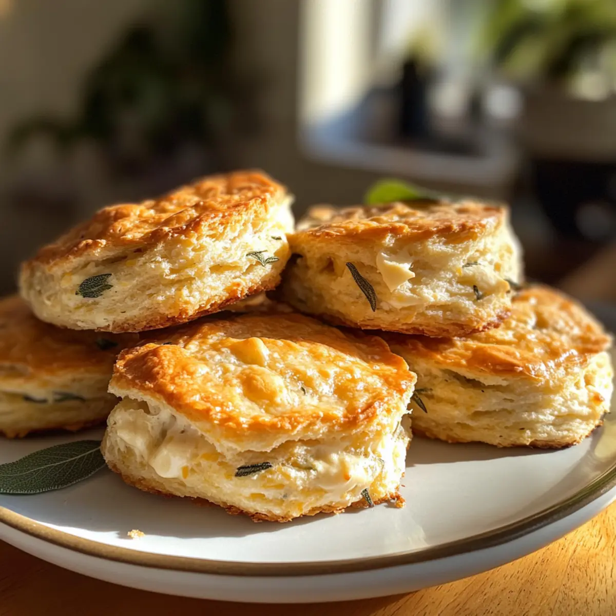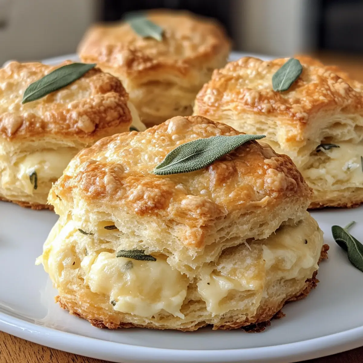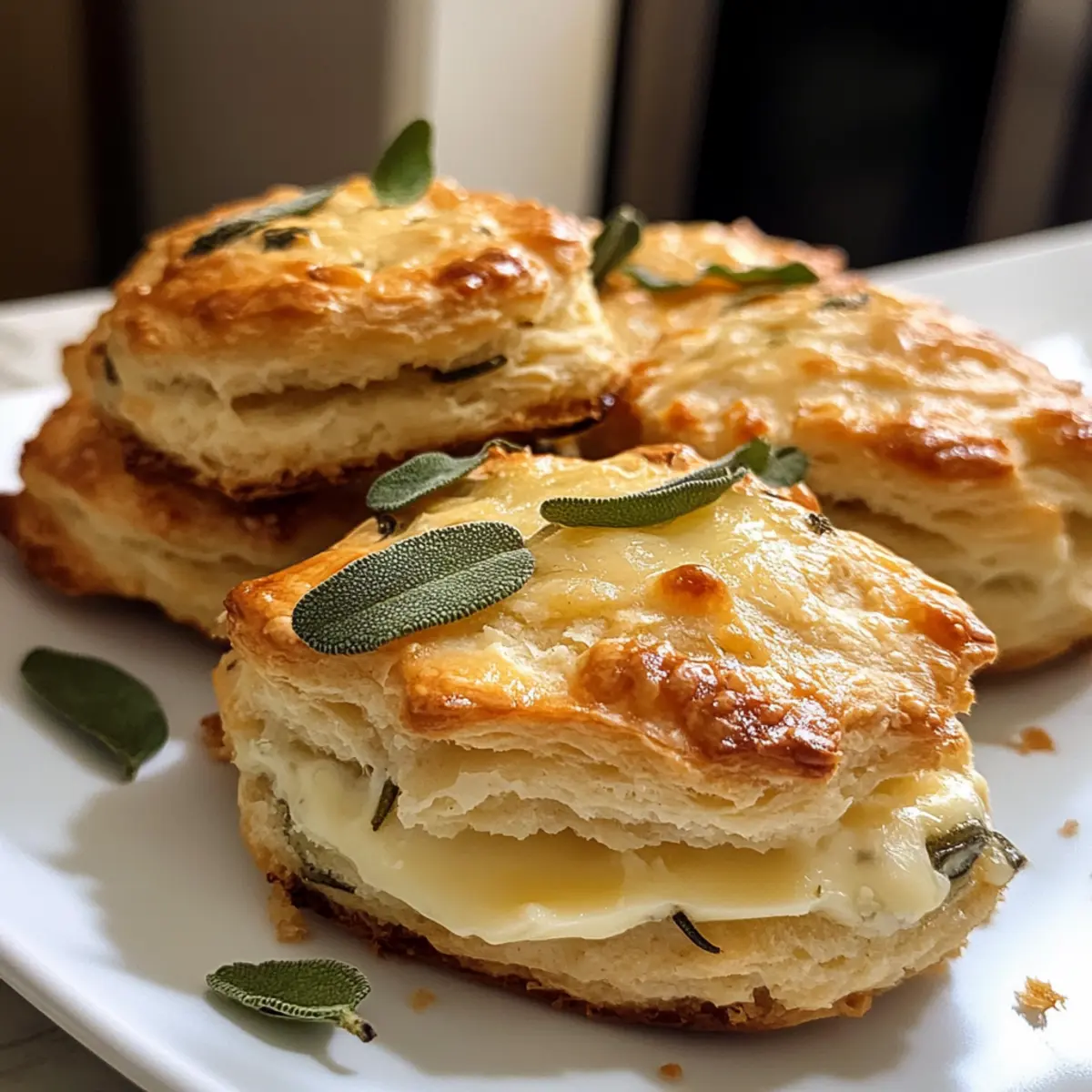 As I reached for the last bit of fresh sage in my garden, the warm sun made me think of cozy gatherings and delicious homemade food. That’s when it hit me—there’s nothing quite like savoring flaky Sage & Gruyere Biscuits on a laid-back Sunday or serving them at a festive dinner. These biscuits are extra special; they’re not only easy to prepare but also a fantastic way to elevate any meal. Whether teamed up with a hearty sausage gravy or enjoyed on their own, they’ll effortlessly elevate your brunch game or holiday spread. So, why settle for store-bought when a flavorful homemade option awaits? Ready to learn how to make them irresistible? Let’s dive in! Why Choose Sage & Gruyere Biscuits? Extra Flaky Texture: These biscuits boast a delightful flakiness that rivals any bakery. Savory Flavor: The combination of sage and gruyere provides a rich, herb-infused taste that is unforgettable. Versatile Use: Perfect for brunch, dinner, or snacking, they seamlessly fit any occasion. Freezable Convenience: Make a batch and freeze them for quick access anytime. Family-Friendly Delight: Everyone loves biscuits, making them a crowd-pleaser at gatherings. So, why not pair them with a delicious Summer Sausage Skillet for an unforgettable meal? Sage & Gruyere Biscuits Ingredients For the Biscuit Dough • All-Purpose Flour – Provides structure; you can use a gluten-free blend for a gluten-free version. • Granulated Sugar – Adds a hint of sweetness; feel free to reduce it to 1 tablespoon for less sweetness. • Baking Powder – Helps biscuits rise; make sure it is fresh for best results. • Baking Soda – Provides extra leavening; crucial for achieving a fluffy texture. • Kosher Salt – Enhances flavor; sea salt can be a great substitute. • Freshly Ground Black Pepper – Adds subtle warmth; increase the amount for a bit more kick. • Unsalted Butter (cold) – Creates heavenly flakiness; always keep it cold, or substitute with vegetable shortening for a dairy-free option. • Gruyere Cheese (grated) – Offers a rich, nutty flavor; if you’re out, aged cheddar works nicely as a replacement. • Sage Leaves (minced) – Provides those earthy herb notes; thyme or rosemary are acceptable substitutes. • Buttermilk (cold) – Adds moisture and a lovely tang; you can mix milk with lemon juice if you need a substitute. • Heavy Cream (cold, plus more for brushing) – Adds richness; you can use additional buttermilk if needed. • Flaky Sea Salt – Used for finishing; while optional, it’s highly recommended for that perfect texture. Enjoy making these delightful Sage & Gruyere Biscuits—your loved ones will thank you! Step‑by‑Step Instructions for Sage & Gruyere Biscuits Step 1: Prep the Butter Begin by dicing the cold butter into 1/4″ cubes and place it in the freezer for about 15 minutes. Keeping the butter cold ensures that your Sage & Gruyere Biscuits remain extra flaky, as the butter will create steam during baking. Step 2: Mix the Dry Ingredients In a stand mixer bowl, whisk together the all-purpose flour, granulated sugar, baking powder, baking soda, kosher salt, freshly ground black pepper, minced sage, and grated gruyere cheese. Combine these dry ingredients for about 30 seconds, until they’re evenly mixed, setting the stage for flavorful biscuits. Step 3: Combine the Butter Remove the chilled butter from the freezer and add it to the dry mixture. Using the paddle attachment, mix on low speed until the mixture resembles coarse crumbs, about 1-2 minutes. You should see pea-sized pieces of butter, which will help achieve the desired flaky texture in your Sage & Gruyere Biscuits. Step 4: Add the Wet Ingredients Next, slowly stream in the cold buttermilk and heavy cream while mixing on low speed. Continue mixing just until the dough comes together, being careful not to overwork it. The dough should still be slightly sticky, showcasing a beautiful mix of creamy and cheesy flavors. Step 5: Laminate the Dough Transfer the dough onto a lightly floured surface. Roll it out into an 8×11″ rectangle, then fold it into thirds like a letter. Gently press it out again into a rectangle and repeat this lamination process two more times. This technique helps create the layers in your Sage & Gruyere Biscuits. Step 6: Cut and Chill After laminating, cut the dough into square biscuits using a sharp knife or round cutter. Place the cut biscuits on a parchment-lined baking sheet, making sure they are spaced apart. Refrigerate the biscuits for 45 minutes; this chilling step helps them rise beautifully during baking. Step 7: Preheat the Oven While the biscuits are chilling, preheat your oven to 450°F (232°C). This high temperature will help achieve that perfect golden-brown crust that defines delicious Sage & Gruyere Biscuits. Step 8: Bake the Biscuits Once preheated, brush the tops of the chilled biscuits with heavy cream and sprinkle with flaky sea salt for added flavor. Bake them in the oven for 18-20 minutes, until they are puffed and golden brown. You’ll know they’re done when the tops are beautifully browned, inviting everyone to the table. What to Serve with Sage & Gruyere Biscuits? Transform your meal into a comforting feast with perfect pairings that highlight the delightful flavors of your biscuits. Savory Sausage Gravy: Rich and creamy, this beloved dish enhances the biscuits, creating a classic breakfast combination that warms the soul. Roasted Vegetable Medley: A vibrant mix of seasonal veggies adds freshness and texture, balancing the rich, cheesy flavors beautifully. Creamy Tomato Soup: Pairing these biscuits with a warm bowl of tomato soup creates a cozy experience, perfect for chilly evenings. Honey Butter: A sweet, buttery spread atop the biscuits creates a delightful contrast to the savory flavors, making every bite heavenly. Herbed Leafy Salad: Light yet satisfying, the crisp greens and tangy dressing bring brightness to the table, complementing the richne