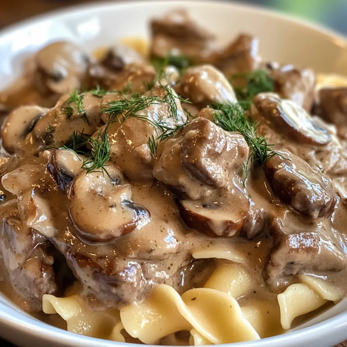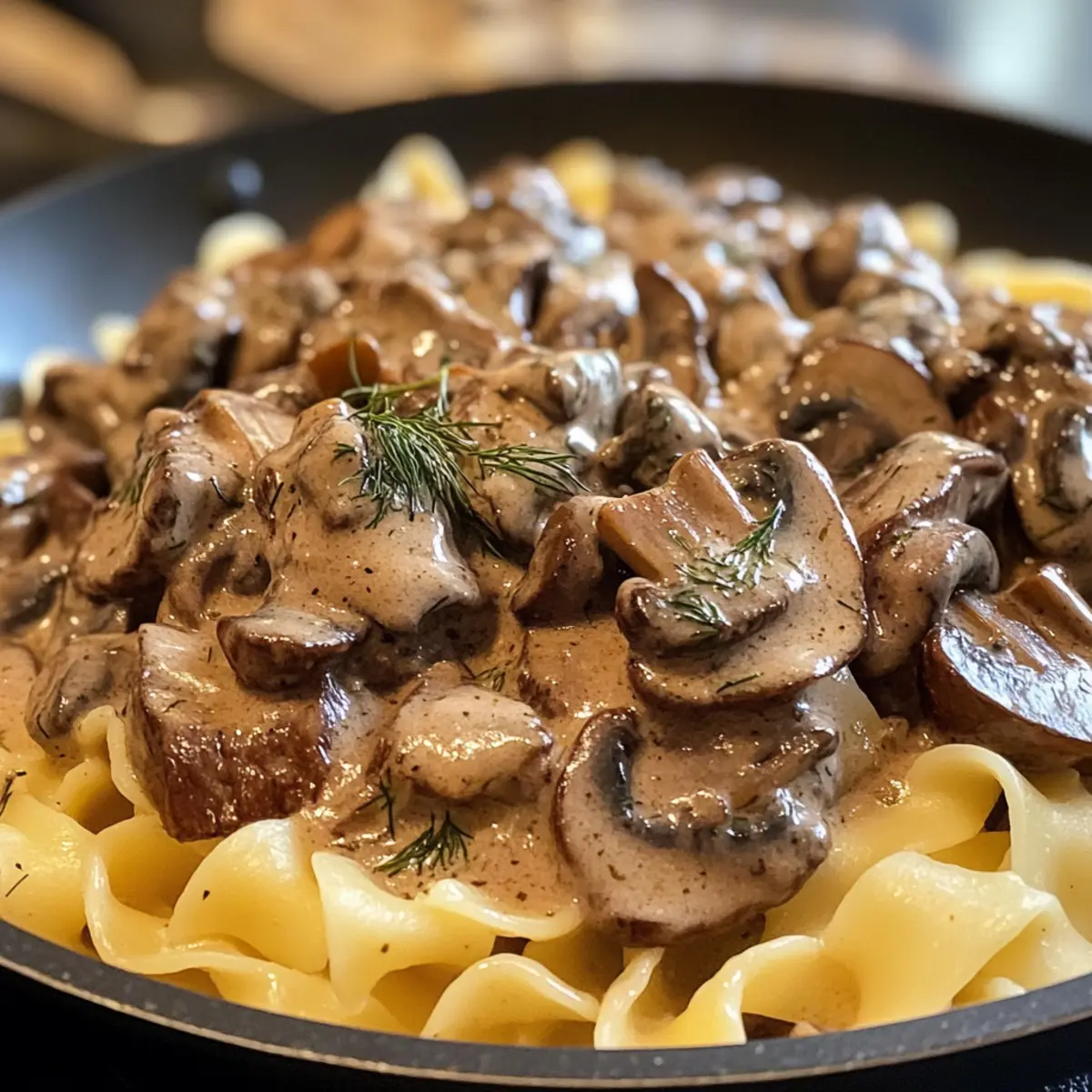 As I sautéed the onions and garlic the other evening, I was whisked away to the heart of comfort food thanks to my Skillet Beef and Mushroom Stroganoff with Dill Buttered Noodles. This cozy dish showcases tender beef strips and earthy mushrooms, all wrapped in a rich, tangy sauce that dances alongside buttery dill egg noodles. What I love most about this recipe is that it transforms a classic into a weeknight hero—whipping up a satisfying meal in under 45 minutes, perfect for when life gets hectic. Plus, with the flexibility to swap proteins and craft gluten-free options, it caters to everyone around the dinner table! So, are you ready to take your home cooking to the next level? Let’s dive in! Why is this Stroganoff a Must-Try? Quick and Easy: This Skillet Beef and Mushroom Stroganoff comes together in under 45 minutes, making it the perfect weeknight meal when time is tight. Family Favorite: Its rich, creamy sauce and tender beef are guaranteed to please both kids and adults alike, turning any dinner into a delightful occasion. Versatile Ingredients: With options to interchange proteins, like chicken or even tofu, it invites you to get creative while accommodating various dietary needs. Comforting Texture: Each bite features a heavenly combination of silky noodles and savory beef, creating that oh-so-desired comforting experience that draws you back for seconds. Satisfying and Nutritious: High in protein and customizable for gluten-free diets, it balances indulgence with health, making it an ideal choice for the entire family. Plus, if you’re looking for more quick recipes, check out my Beef Pasta Skillet or Ginger Beef Onion for more delicious options! Skillet Beef and Mushroom Stroganoff Ingredients For the Stroganoff • Beef Strips – Choose tender cuts like sirloin for quick cooking and flavor. • Mushrooms – Opt for cremini or white button for a meaty taste; both work well. • Sour Cream – Adds tanginess; Greek yogurt can be a healthier substitute. • Beef Broth – Rich in flavor; use vegetable broth for a vegetarian alternative. • Onion – Provides aromatic sweetness; sauté until soft for great depth of flavor. • Garlic – Enhances the dish; make sure to avoid burning for a pleasant taste. For the Noodles • Egg Noodles – The classic choice; serve with whole wheat or gluten-free for versatility. • Butter – Gives a rich finish; replace with olive oil for a lighter option. • Dill – Adds a fresh touch; can be swapped with parsley or thyme depending on your taste. In this Skillet Beef and Mushroom Stroganoff, every ingredient works together to create a delightful weeknight meal that you’ll crave again and again! Step‑by‑Step Instructions for Skillet Beef and Mushroom Stroganoff Step 1: Cook the Noodles Begin by bringing a large pot of salted water to a boil over high heat. Add the egg noodles and cook according to package instructions until al dente, usually about 6-8 minutes. Once cooked, drain the noodles and toss them with a drizzle of olive oil to prevent sticking, then set aside while you prepare the Stroganoff. Step 2: Sear the Beef In a large skillet, melt 2 tablespoons of butter over medium-high heat. When the butter is foamy, add the beef strips in a single layer, seasoning them with salt and pepper. Sear for about 3-4 minutes, or until the beef is browned but not overcooked. Remove the beef from the skillet and place it on a plate, allowing it to rest while you sauté the vegetables. Step 3: Sauté the Vegetables In the same skillet, add another tablespoon of butter, then toss in the diced onions and minced garlic. Sauté for 2-3 minutes, or until the onions are soft and translucent. Next, add the mushrooms to the skillet and cook for an additional 4-5 minutes, stirring occasionally, until they are browned and tender, releasing their delicious juices. Step 4: Prepare the Sauce Pour in 1 cup of beef broth while scraping the bottom of the skillet to deglaze any flavorful bits stuck on the surface. Stir in 1 cup of sour cream, mixing well to create a creamy sauce. Allow the sauce to simmer gently for 2-3 minutes; be careful not to let it boil, or the sour cream may curdle. Step 5: Combine Return the seared beef to the skillet, tossing it into the creamy sauce for 1-2 minutes to warm through. Then, gently fold in the cooked egg noodles until all ingredients are well incorporated and coated in that luscious sauce. Sprinkle in some fresh dill and adjust the seasoning with more salt and pepper to taste. Step 6: Serve Plate your Skillet Beef and Mushroom Stroganoff generously, garnishing with additional dill or a sprinkle of freshly cracked black pepper. Enjoy the comforting richness of the dish as a satisfying end to your busy day—perfect for a delightful family dinner! Skillet Beef and Mushroom Stroganoff Variations Feel free to personalize this comforting dish with delightful twists that suit your tastes and dietary needs! Chicken Swap: Substitute beef with chicken strips for a lighter option that’s just as delicious. Vegetarian Delight: Replace the beef with sautéed mushrooms or tofu for a protein-packed vegetarian variation. Pasta Alternatives: Use whole wheat or gluten-free noodles to cater to dietary restrictions while keeping the dish satisfying. Herbal Infusion: Experiment with fresh thyme or rosemary instead of dill for a fragrant flavor twist. Extra Creaminess: Add a dollop of cream cheese alongside the sour cream for a rich, velvety sauce. Spicy Kick: Incorporate crushed red pepper flakes or a dash of hot sauce to give your Stroganoff an exciting heat. Creamy Mushroom Mix: Blend in assorted mushrooms like shiitake or portobello for richer umami flavors. Coconut Variation: Swap sour cream for coconut milk for a dairy-free option that adds a hint of tropical flavor. These variations can help you discover your family’s new favorite meal! Additionally, if you enjoy these adaptations, you might also like my comforting Ginger Be