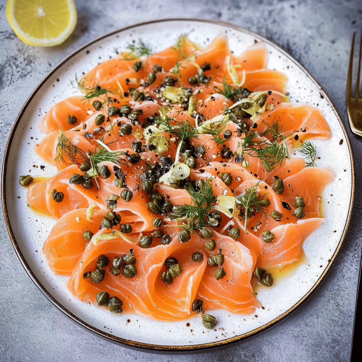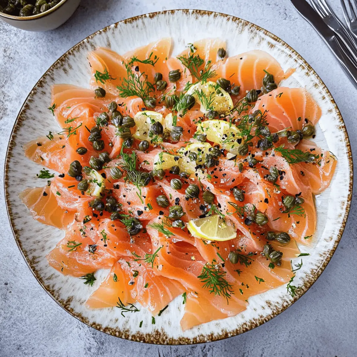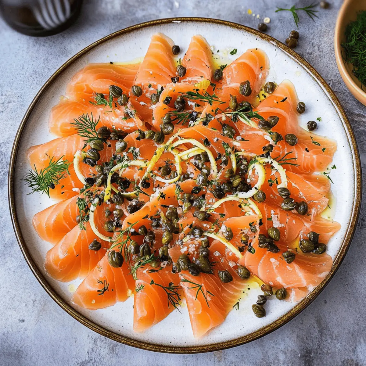 As I sat in my garden surrounded by the first blooms of spring, a vivid thought crossed my mind: what’s the perfect appetizer for those bright, sun-kissed gatherings? That’s when I remembered my beloved Smoked Salmon Carpaccio with Fried Capers and Herbs. This stunning dish combines delicate layers of silky smoked salmon drizzled with a zesty lemon-shallot dressing and topped with crispy capers that add just the right amount of crunch. Not only is it a breeze to whip up, but it also brings an air of elegance to any table, making it the ideal choice for Easter brunch or any special occasion. Plus, it’s a healthy option that aligns beautifully with Whole30 and Paleo diets. Want to impress your guests while keeping it light and fresh? Let’s dive into this fabulous recipe together! Why is This Carpaccio a Must-Try? Simplicity at its finest: With just a few easy steps, you’ll create a restaurant-quality dish that impresses without the fuss. Bright, zesty flavors from the lemon-shallot dressing elevate the natural richness of the salmon. Textural delights come from crispy fried capers that add a delightful crunch to each bite. Healthy indulgence fits seamlessly into your Whole30 or Paleo lifestyle, making it perfect for guilt-free gatherings. Versatile serving options mean you can pair it with crostini, crackers, or bagels for a truly customizable experience. Enjoy it chilled as a refreshing starter that’s sure to wow your guests, much like our Honey Sriracha Salmon or Fried Burrata Spicy for more fabulous springtime flavors! Smoked Salmon Carpaccio Ingredients • Elevate your appetizer with these flavorful essentials! For the Dressing Small Shallot – Adds a mild onion flavor to the dressing; substitute with green onions if needed. Garlic – Provides aromatic depth; minced fresh cloves are recommended. Extra Virgin Olive Oil – Acts as the base for richness in the dressing; use quality oil for the best flavor. Grainy Dijon Mustard – Offers a peppery and tangy note; can substitute with yellow mustard but may lose some depth. Fresh Lemon Juice – Brightens and balances the dish; fresh is preferable to bottled juice. For the Fried Capers Drained Capers – Provide a briny flavor and texture when fried; use green olives as a substitute for a different taste. Cassava Flour – Coats capers for frying to achieve crispiness; regular flour works for non-gluten-free options. For the Carpaccio Smoked Atlantic Salmon – The star ingredient, rich and savory; ensure it’s high quality from the deli section. Fresh Dill – Adds freshness and herbal taste; can be replaced with chives or parsley for a different flavor. Freshly Ground Black Pepper – For garnish, adding a hint of spice. Serving Options Crostini, Crackers, or Bagels – Suggested for serving, providing a crunchy base and complementing the smoked salmon carpaccio beautifully. Step‑by‑Step Instructions for Smoked Salmon Carpaccio with Fried Capers and Herbs Step 1: Make the Dressing In a mixing bowl, whisk together one small diced shallot, two minced garlic cloves, ¼ cup of extra virgin olive oil, a tablespoon of grainy Dijon mustard, and the juice of one fresh lemon until the ingredients are well combined and creamy in texture. This zesty dressing not only enhances the smoked salmon but brings a lively brightness to your Smoked Salmon Carpaccio. Step 2: Prepare the Capers Next, take a ⅓ cup of drained capers and gently toss them in a small bowl with ¼ cup of cassava flour until fully coated. This coating will create a delightful crunch when fried. Ensure every caper is evenly covered—the flour will stick better if it clings to the moisture on the capers, making them extra crispy once cooked. Step 3: Fry the Capers Heat approximately ½ cup of extra virgin olive oil in a skillet over medium heat until it shimmers, indicating it’s hot enough for frying. Carefully add the floured capers to the skillet and fry for about 3 minutes, turning them halfway through. Keep an eye on them until they turn golden brown and are crispy. Once done, transfer the fried capers to a paper towel-lined plate to drain any excess oil. Step 4: Assemble the Dish Now it’s time to elevate your Smoked Salmon Carpaccio! Take about 8 ounces of high-quality smoked Atlantic salmon and cut it into 2-inch pieces. Arrange these beautiful salmon pieces artistically on a serving platter, ensuring they overlap slightly for an elegant presentation. Drizzle the lemon-shallot dressing generously over the salmon, allowing the flavors to meld beautifully. Step 5: Garnish and Serve Finish off this stunning dish by sprinkling the crispy fried capers over the salmon, followed by a handful of freshly chopped dill and a few cracks of freshly ground black pepper for an aromatic finish. Serve immediately alongside crostini, crackers, or bagels to provide the perfect crunchy base, inviting your guests to dive into this exquisite Smoked Salmon Carpaccio with Fried Capers and Herbs! Make Ahead Options Getting ready for a gathering? This Smoked Salmon Carpaccio with Fried Capers and Herbs is perfect for meal prep! You can make the dressing up to 24 hours in advance. Simply whisk together the shallots, garlic, olive oil, mustard, and lemon juice, then store it in the refrigerator to maintain its fresh flavor. Additionally, you can prepare the capers by coating them in cassava flour a day ahead as well; just keep them in an airtight container until frying. On the day of serving, fry the capers just before assembling the carpaccio to keep them crispy. Arrange the salmon and drizzle the dressing right before serving for a dish that’s just as delicious and effortlessly elegant! Storage Tips for Smoked Salmon Carpaccio Fridge: Store any leftover Smoked Salmon Carpaccio in an airtight container for up to 1 day. To maintain the freshness of the salmon, avoid covering it tightly with cling wrap. Dressing: The dressing can be prepared in advance and kept in the fridge for 
