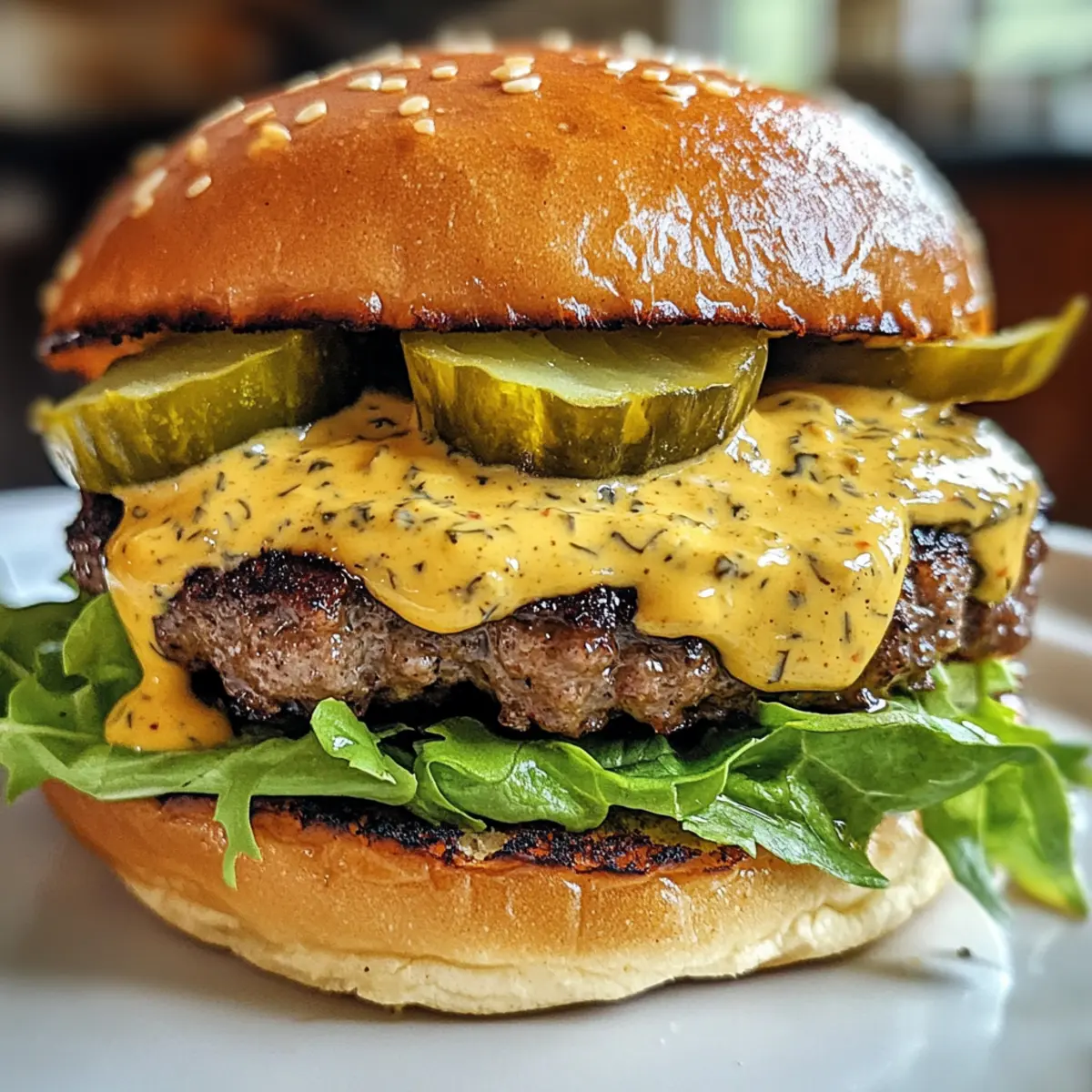 As I stood over my stovetop, the aroma of sizzling onions and garlic wrapped around me like a warm hug. Today, I’m excited to share my recipe for Spicy Dill Pickle Burger Sauce—a zesty condiment that will elevate your burger game to new heights. Imagine creamy mayo meeting the tanginess of dill pickles, all while delivering a kick that perfectly complements every bite. This sauce is not only quick to whip up in under ten minutes, but it’s also a versatile gem that can transform more than just burgers. From dipping fries to spreading on sandwiches, it’s sure to become your go-to homemade favorite. Are you ready to bring a burst of flavor to your meals? Let’s dive in! Why Is This Sauce a Must-Try? Creamy Delight: The luxurious texture of this sauce, thanks to high-quality mayonnaise or Greek yogurt, creates a velvety experience that enhances any dish. Tangy Flavor Explosion: Packed with dill pickle relish, it introduces refreshing zest and crunchy texture—perfect for burger lovers looking to elevate their meals. Quick & Easy: You can whip up this delightful sauce in just under ten minutes, making it an ideal choice for busy weeknight dinners or spontaneous barbecue gatherings. Versatile Uses: Not just for burgers! This sauce can double as a dip for fries or fresh veggies, and even a zesty addition to salads like potato salad or coleslaw. Customizable Spice Level: Adjust the hot sauce to create your perfect level of heat, ensuring everyone at the table can enjoy this crowd-pleaser. Dive into flavor today with my Cheesy Chicken Broccoli for a wholesome meal anyone will love! Spicy Dill Pickle Burger Sauce Ingredients For the Sauce Base Mayonnaise – The creamy foundation that brings everything together; substitute with Greek yogurt for a healthier option. Dill Pickle Relish – Offers a tangy burst and crunch that’s essential in this zesty sauce. Dijon Mustard – Adds a delightful sharpness and depth, enhancing the overall flavor profile. For the Heat & Flavor Hot Sauce – Adjustable for your desired spice level, making it as mild or fiery as you like for your Spicy Dill Pickle Burger Sauce. Garlic Powder – Provides savory depth without the need for fresh garlic, enriching the flavor complexity. Onion Powder – Contributes mild sweetness and an onion flavor without adding texture. Black Pepper – A finishing touch that rounds out flavors and brings warmth to the sauce. Feel free to mix, match, and enjoy this condiment as you explore your culinary creativity! Step‑by‑Step Instructions for Spicy Dill Pickle Burger Sauce Step 1: Combine Ingredients In a mixing bowl, add 1 cup of mayonnaise, ½ cup of dill pickle relish, and 2 tablespoons of Dijon mustard. Use a rubber spatula or whisk to gently mix these creamy and zesty ingredients together until they form a smooth base. The creamy mayo should seamlessly blend with the relish, creating a delightful texture in your Spicy Dill Pickle Burger Sauce. Step 2: Add Flavor Enhancers Next, sprinkle in 1 teaspoon of garlic powder, 1 teaspoon of onion powder, and ½ teaspoon of black pepper. These seasonings enhance the depth of flavor in your sauce, so be sure to stir thoroughly until all ingredients are completely combined. You’ll notice a fragrant aroma wafting as the spices mingle with the creamy mixture, inviting your taste buds to get excited. Step 3: Adjust Spice Level To amp up the heat, add hot sauce according to your preference—start with 1 tablespoon and increase if desired. Stir the mixture again, ensuring the hot sauce is evenly distributed. Give it a quick taste test to confirm if the spicy kick matches your liking. Don’t shy away from adjusting as this Spicy Dill Pickle Burger Sauce is all about personal preference! Step 4: Chill the Sauce Once all the ingredients are well combined and the flavor is balanced, cover the bowl tightly with plastic wrap or transfer the sauce to an airtight container. Refrigerate it for at least 30 minutes; this chilling process is crucial as it allows the flavors to meld together beautifully, resulting in a tangy and creamy condiment that enhances any burger. Step 5: Serve and Enjoy After the chill, your Spicy Dill Pickle Burger Sauce is ready to elevate your burgers! Serve it generously on your favorite grilled meats, as a dip for fries, or spread it on sandwiches for a zesty twist. Feel free to get creative and explore various uses; this sauce is your new go-to for turning any meal into a flavor-packed experience! Variations & Substitutions for Spicy Dill Pickle Burger Sauce Unlock your creativity and tailor this sauce to suit your tastebuds and dietary needs! Greek Yogurt: Swap mayonnaise for Greek yogurt to lighten the sauce while keeping it creamy. Mild Option: Reduce or omit the hot sauce for a milder flavor that still turns heads, perfect for kids or less spice-tolerant folks. Herb Infusion: Stir in fresh dill or chives to infuse the sauce with vibrant herbal notes, enhancing freshness. Sweet Twist: Add a teaspoon of honey or sugar for a sweet balance that mellows the tang, perfect on a turkey burger! Spicy Crunch: Mix in finely chopped jalapeños for an extra kick and a crunchy texture that’s sure to please. Pickle Juice Boost: A splash of pickle juice brightens the flavors even further, giving that tangy punch back into the scene. Vegan Delight: Use vegan mayonnaise to create a dairy-free version of this sauce without sacrificing flavor. Flavor Remix: Experiment with mustard varieties like spicy brown or honey mustard to give the sauce a different flavor profile. Don’t forget, this versatile sauce can also shine as a dip for crispy fries or be slathered generously in sandwiches. If you’re pairing it with something hearty, consider making a batch of Crockpot Chicken Soup to complete your meal with rich, cozy comfort. Storage Tips for Spicy Dill Pickle Burger Sauce Fridge: Store your Spicy Dill Pickle Burger Sauce in an airtight container for up to one week. This ensu