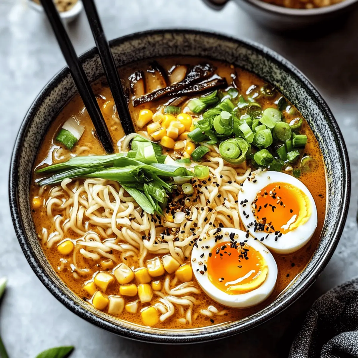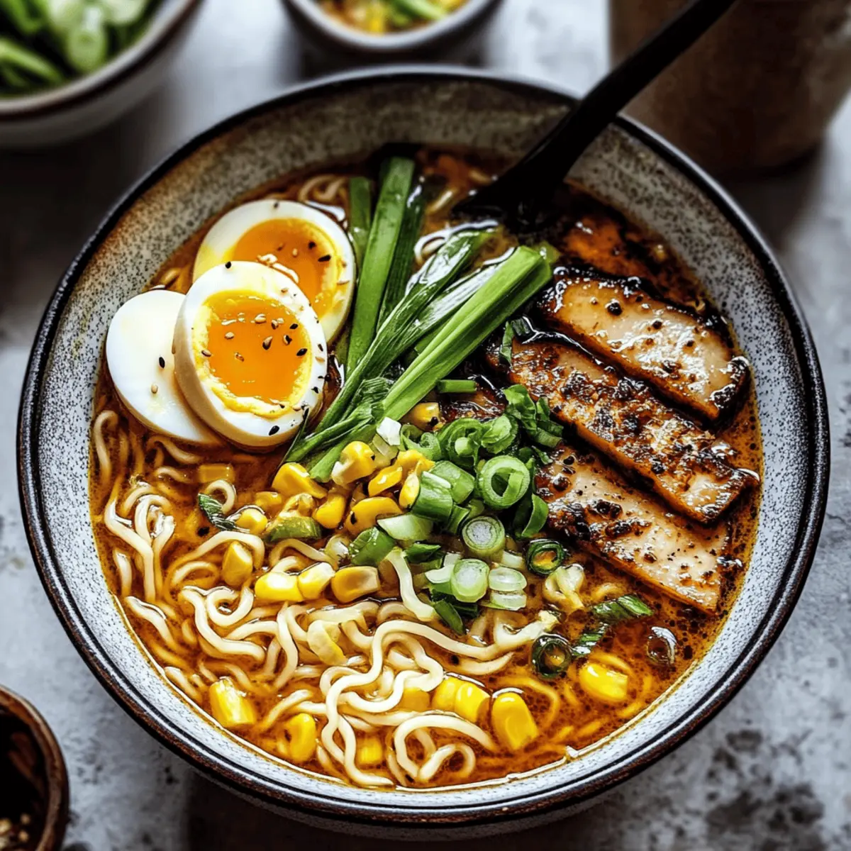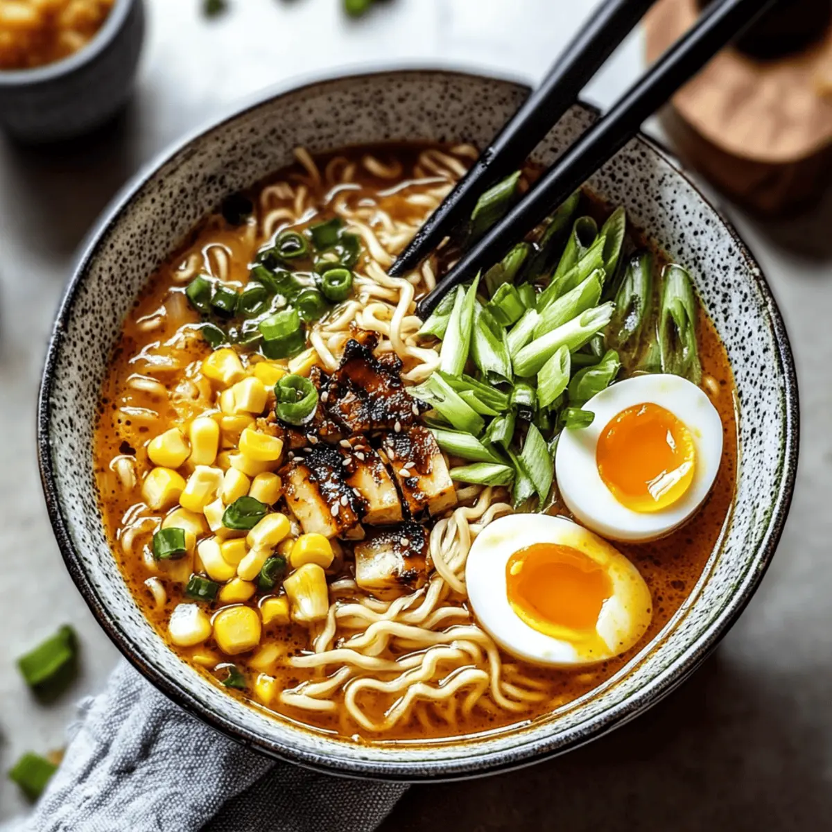 As the aroma of miso and garlic wafts through my kitchen, I can’t help but feel a wave of comfort wash over me. This Spicy Miso Ramen is more than just a meal; it’s a warm hug in a bowl, perfect for those chilly evenings when you crave something hearty yet quick. With its customizable nature, this recipe caters to everyone—whether you’re a devoted meat-lover or seeking a delightful vegetarian or vegan option. In under 45 minutes, you can embrace the umami flavors of this dish that not only satisfies but also transforms an ordinary night into a culinary adventure. What unique twist will you add to your ramen bowl tonight? Why is Spicy Miso Ramen a Must-Try? Comforting warmth: This Spicy Miso Ramen envelops you in a cozy embrace, perfect for chilly nights. Quick meal: With just 45 minutes from start to finish, you can enjoy a delicious bowl without spending hours in the kitchen. Customizable options: Whether you prefer a meat-based dish or want to try a vegetarian twist with tofu or tempeh, this recipe has you covered. Umami explosion: Miso, garlic, and ginger unite for an irresistible flavor profile that will keep you coming back for more. Plus, if you’re a fan of crispy sides, consider pairing it with Fried Burrata Spicy or Miso Butter Salmon for a truly satisfying meal! Spicy Miso Ramen Ingredients For the Broth Ground Chicken or Pork – A protein source; substitute with crumbled tempeh or tofu for a vegetarian or vegan option. Neutral Cooking Oil – Essential for sautéing; vegetable or canola oil works best. Shiitake Mushrooms – Adds depth and earthy flavor; use fresh or dried (rehydrate dried beforehand). Minced Shallots – Provides aromatic sweetness; yellow onions are a suitable substitute, though the flavor will differ. Garlic – Enhances flavor; feel free to adjust based on taste preference (4 cloves, minced). Freshly Grated Ginger – Adds warmth; substitute with ½ teaspoon ground ginger if fresh is unavailable (1 tbsp). White Miso Paste – Delivers umami and sweetness; best for ramen broth (3 tbsp). Lower-Sodium Soy Sauce – Provides saltiness and depth; opt for tamari for gluten-free (2 tbsp). Rice Vinegar – Infuses acidity into the broth; apple cider vinegar can be an alternative (2 tbsp). Hot Chili Oil – Brings spice; adjust based on heat preference (1 tbsp). Low Sodium Chicken or Vegetable Broth – Serves as the broth base (6-8 cups). For the Noodles and Garnish Dry Ramen Noodles – Main carbohydrate; discard included seasoning packs (2 packs). Sweet Corn – Adds sweetness and texture; interchangeable between fresh, frozen, or canned (1 cup). Soft-Boiled Eggs – Offers richness; omit for vegan option (3, halved). Thinly Sliced Green Onions – For garnish and freshness. Toasted Sesame Seeds – Optional garnish adds nutty flavor. Step‑by‑Step Instructions for Spicy Miso Ramen Step 1: Cook Protein In a large pot, heat 2 tablespoons of neutral cooking oil over medium heat. Add the ground chicken or pork and cook, stirring occasionally, until browned and cooked through, about 4-5 minutes. Once fully cooked, remove the meat from the pot and set it aside in a bowl, leaving any drippings behind for flavor. Step 2: Sauté Aromatics In the same pot, add shiitake mushrooms and sauté for about 5 minutes until they turn golden and tender. Next, introduce minced shallots, garlic, and freshly grated ginger, stirring constantly until fragrant, approximately 2-3 minutes. This aromatic mixture will infuse your Spicy Miso Ramen with a heavenly base. Step 3: Prepare Broth Reduce the heat to low and stir in 3 tablespoons of white miso paste, followed by 2 tablespoons of lower-sodium soy sauce, 2 tablespoons of rice vinegar, and 1 tablespoon of hot chili oil for that spicy kick. Pour in 6-8 cups of low-sodium chicken or vegetable broth, bringing the mixture to a boil, then reduce the heat to simmer for about 20 minutes to allow the flavors to meld beautifully. Step 4: Boil Noodles After the broth has simmered, return the pot to a gentle boil and add 2 packs of dry ramen noodles. Cook the noodles according to package instructions, usually around 3 minutes, until they reach an al dente texture. Stir in 1 cup of sweet corn, allowing it to warm through alongside the cooked protein, which you’ll reintroduce to the pot at this point. Step 5: Serve Ladle the steaming Spicy Miso Ramen into bowls, making sure to capture all those delicious ingredients. Top each bowl with halved soft-boiled eggs, thinly sliced green onions, and a sprinkle of toasted sesame seeds. For an extra kick, drizzle more hot chili oil on top if desired, and enjoy this comforting dish with all its vibrant flavors. Spicy Miso Ramen Variations & Substitutions Feel free to unleash your creativity and transform this Spicy Miso Ramen into your very own masterpiece! Vegetarian Delight: Swap ground meat for crumbled tempeh or tofu, creating a hearty vegetarian version that’s equally satisfying. Vegan Twist: Keep it plant-based by omitting the soft-boiled eggs. You won’t miss the richness with such flavorful broth! Mushroom Medley: Experiment with different mushrooms like oyster or portobello for a unique earthy flavor in your ramen. Extra Veggies: Boost nutrition by adding baby spinach, bok choy, or bell pepper while sautéing aromatics for a pop of color and flavors. Tangy Variation: Substitute rice vinegar with lime juice for a refreshing citrus zing that brightens up every spoonful of ramen. Noodle Options: Use any favorite brand of ramen or even soba noodles to change up the texture and taste of your dish. Nutty Garnish: Sprinkle some crushed peanuts or cashews on top for a crunchy finishing touch that complements the broth beautifully. Heat Levels: For an extra kick, incorporate sliced fresh chili peppers or a dash of sriracha if you’re craving more heat! For an exciting side dish, consider pairing your ramen with some crispy tempura vegetables or delicious edamame. You can also serve it along