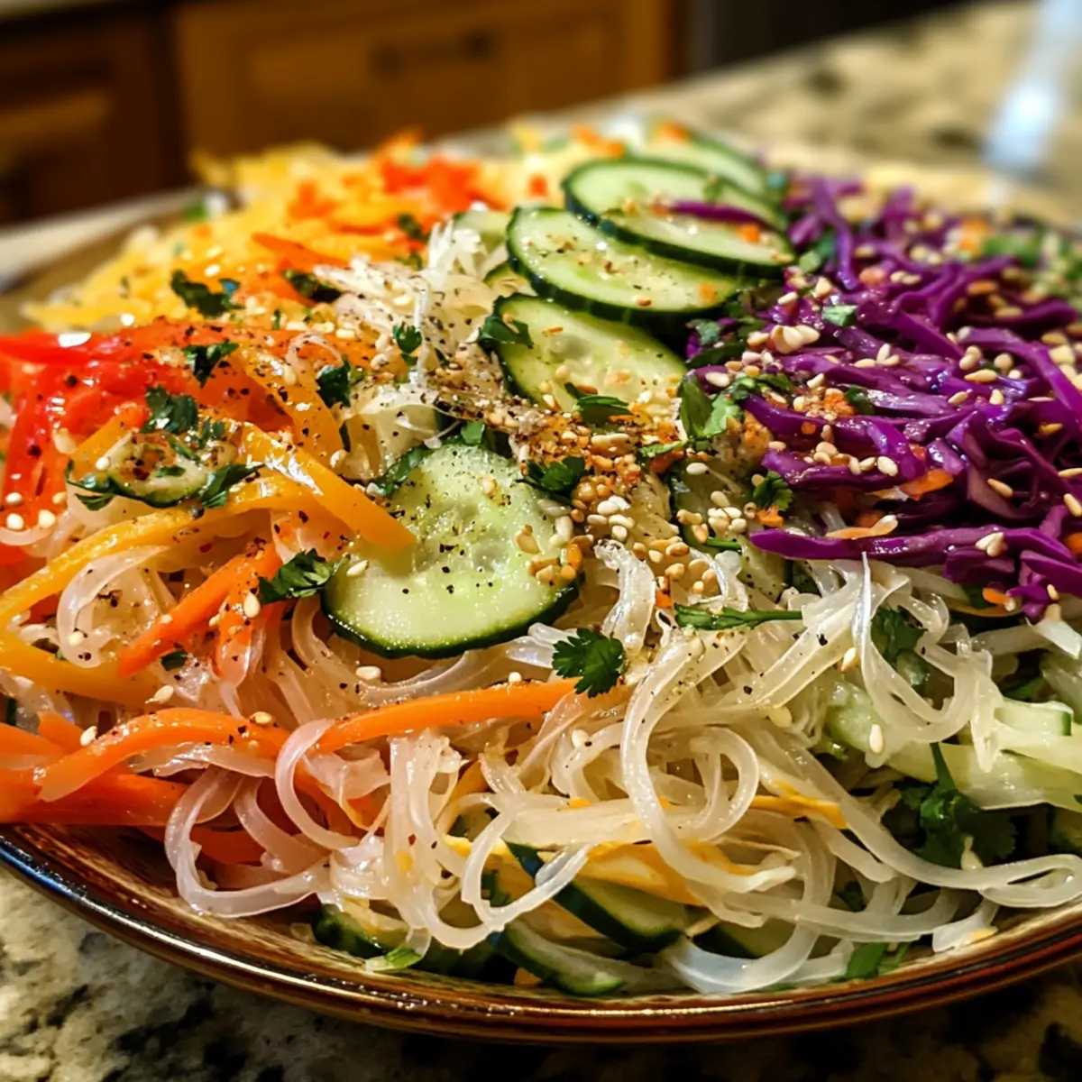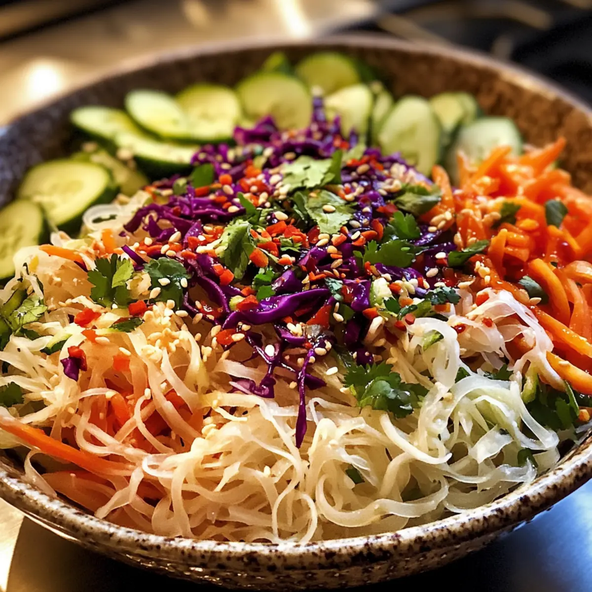 As I stood in my kitchen one sunny afternoon, a colorful array of fresh vegetables inspired me to create something vibrant and delicious. What emerged is my Loaded Spring Roll Salad with Spicy Ginger Dressing—an irresistible blend of crunchy vegetables and tender rice noodles that brings a burst of flavor to the table. The best part? This healthy salad is not only visually stunning, but it’s also a make-ahead gem, perfect for those breezy summer lunches or as a refreshing side for barbecues. With its bold spicy ginger dressing, you’ll find yourself reaching for seconds without the guilt. Ready to dive into a bowl of wholesome goodness? Let’s get cooking! Why is this spring roll salad a must-try? Colorful, Crunchy Goodness: This Loaded Spring Roll Salad bursts with vibrant colors, making it as appealing to the eyes as it is delicious for the palate. Health-Packed Ingredients: Made with fresh veggies and gluten-free rice noodles, it’s a nutritious option for anyone seeking a guilt-free meal. Zesty Ginger Kick: The spicy ginger dressing offers a zesty flavor that elevates every bite, leaving a lasting impression. Make-Ahead Magic: Perfect for meal prep, you can enjoy this salad on busy days or as an easy go-to for summer gatherings. Versatile Mix: Feel free to customize with proteins like grilled shrimp or tofu, or add fruits like mango for a delightful twist. Discover more refreshing options like my Mango Avocado Salad or try serving it alongside my delicious Grilled Shrimp Bowl for an unforgettable meal combo! Spring Roll Salad Bowl Ingredients For the Spicy Ginger Dressing Minced Ginger – adds a robust flavor and is known for its health benefits. Garlic – enhances the dressing’s aromatic qualities; fresh is best! Soy Sauce – provides salty depth; can substitute with tamari for a gluten-free option. Agave – balances the spice with a touch of sweetness; use honey for a different taste. Rice Wine Vinegar – offers a mild acidity that brightens the dressing; white wine vinegar works in a pinch. Sesame Oil – brings a nutty richness; can substitute with olive oil if needed. Vegetable Oil – helps blend the dressing and keeps it light; any neutral oil will do. For the Salad Base Rice Noodles – the heart of the salad, delivering a chewy texture; feel free to use vermicelli or soba noodles. Shredded Cabbage (green or purple) – adds delightful crunch and beautiful color; switch it with kale or romaine for variety. Cucumber (julienned) – brings a refreshing crispness; zucchini can be a fun substitute. Carrots (julienned) – infuse natural sweetness and a pop of color; bell peppers work as an alternative for added crunch. Sweet Pepper (julienned) – offers sweetness and contrast; red or yellow peppers are great choices. Cilantro – adds aromatic brightness, but feel free to omit it or swap with parsley if you’re not a fan. Mint – imparts refreshing notes; basil can be a lovely alternative for a different herbaceous taste. Roasted Peanuts (chopped) – for a nutty flavor and delightful crunch; substitute sunflower seeds for a nut-free option. This Spring Roll Salad Bowl is a celebration of freshness, flavor, and easy preparation, making it an irresistible addition to your culinary repertoire! Step‑by‑Step Instructions for Spring Roll Salad Bowl Step 1: Prepare the Dressing In a blender, combine 2 tablespoons of minced ginger, 1 clove of garlic, 3 tablespoons of soy sauce, 2 tablespoons of agave, 2 tablespoons of rice wine vinegar, 1 tablespoon of sesame oil, and 2 tablespoons of vegetable oil. Blend until the mixture is smooth and silky. Transfer the spicy ginger dressing into a bowl or jar and refrigerate for at least 15 minutes to allow the flavors to develop. Step 2: Cook Rice Noodles Bring a pot of water to a boil and cook 8 ounces of rice noodles according to the package instructions, typically around 3–5 minutes. Once they are tender, drain and rinse them thoroughly under cold water to stop the cooking process and remove excess starch. Let the rice noodles drain well, then set them aside in a large mixing bowl for the Spring Roll Salad Bowl. Step 3: Prepare the Vegetables While the rice noodles cool, julienne one cucumber, two carrots, and one sweet pepper. You can use a sharp knife or a mandoline for clean, even cuts. Shred about 2 cups of cabbage, either green or purple, for added crunch and color. Gather the chopped ingredients in a large bowl, making the base for your vibrant spring roll salad. Step 4: Assemble the Salad Add the cooled rice noodles to the bowl of shredded veggies along with ¼ cup of fresh cilantro and ¼ cup of fresh mint leaves, torn into smaller pieces. Toss everything gently using tongs or your hands until evenly combined, ensuring every colorful ingredient is well distributed throughout the Spring Roll Salad Bowl. Step 5: Dress the Salad Drizzle the chilled spicy ginger dressing over the tossed salad, about half of what you prepared, and toss again to coat the veggies and noodles evenly. Make sure each noodle and vegetable piece glistens with that aromatic dressing. You can always add more dressing later if you prefer a bolder flavor. Step 6: Serve and Garnish Transfer your loaded spring roll salad to a serving platter or individual bowls. Top with chopped roasted peanuts for added crunch and sprinkle extra herbs if desired. Serve immediately for the best texture and flavor, allowing everyone to enjoy a fresh, crunchy Spring Roll Salad Bowl bursting with vibrant colors and exciting tastes. What to Serve with Loaded Spring Roll Salad with Spicy Ginger Dressing? Pair your vibrant salad with delightful accompaniments to create a well-rounded meal experience. Grilled Shrimp Skewers: Juicy shrimp skewers marinated with lime and garlic add a delectable protein boost. Their smoky notes beautifully contrast with the salad’s freshness. Crispy Egg Rolls: These crunchy bites bring extra texture and heartiness to your meal. Fill them wi