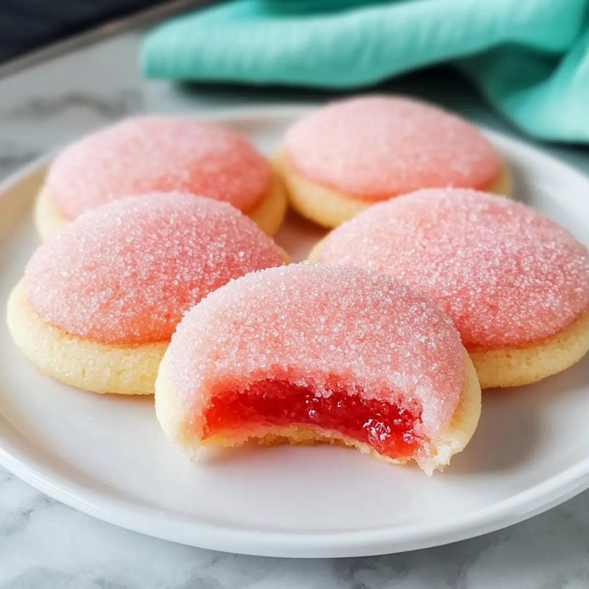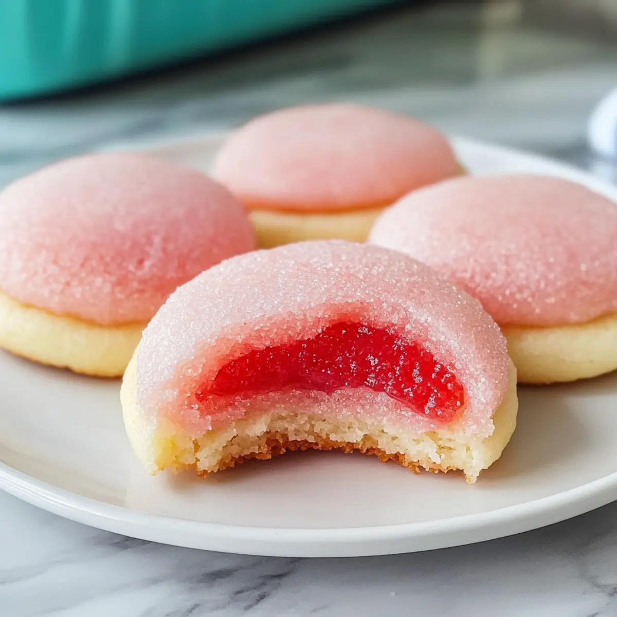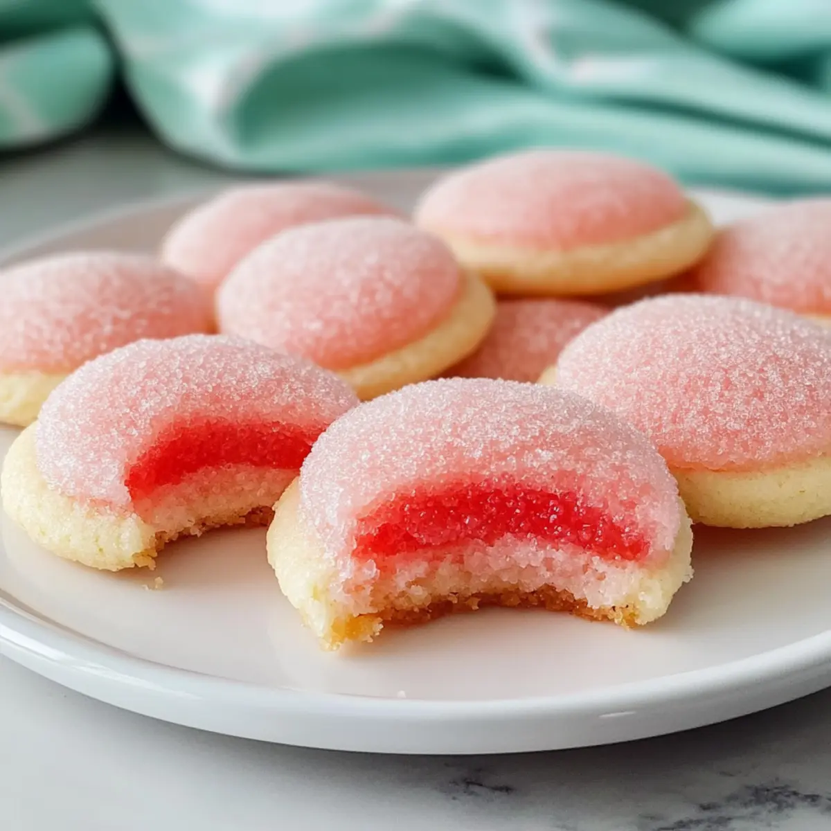 Just last week, I found myself in a delightful cooking frenzy, determined to fill my kitchen with something colorful and cheerful. That’s when I stumbled upon the idea of Strawberry Jello Sugar Cookies—an unexpected twist on a classic treat. These vibrant cookies are not only a feast for the eyes but also incredibly easy to whip up, making them ideal for busy weekends or last-minute gatherings. Imagine soft, chewy cookies that bring a playful strawberry flavor alongside a hint of nostalgia. Plus, with options to customize each batch—whether you prefer gluten-free alternatives or want to swap in your favorite Jello flavor—everyone can join in the fun! Are you ready to create some vibrant memories with these delightful goodies? Why Are These Cookies So Special? Customization at Its Finest: These Strawberry Jello Sugar Cookies can easily be tailored to your taste—swap the Jello flavor for cherry or lime for a unique twist. Kid-Friendly Delight: With their vibrant color and fun shape, these cookies are sure to excite kids of all ages! Quick and Easy: Whip these up in under 30 minutes, making them perfect for surprise guests or a busy weeknight treat. Gluten-Free Options: Enjoying these tasty bites is possible for everyone with simple substitutions, such as using a gluten-free flour blend. Perfect Presentation: Roll them in colorful sugar for a gorgeous finish that catches the eye at any gathering, just like how my Marshmallow Swirl Cookies do. Versatile Frosting Choices: Elevate them further with a variety of frostings, such as strawberry cream cheese, for that extra touch of deliciousness! Strawberry Jello Sugar Cookies Ingredients For the Cookie Dough • Butter – Provides richness and moisture; use unsalted for better salt control. • Granulated Sugar – Adds sweetness with a delightful crisp edge; consider coconut sugar for a healthier alternative. • Strawberry Jello Mix – Infuses vibrant color and flavor into the cookies; feel free to replace with lime, cherry, or any favorite Jello flavor for variety. • Eggs – Acts as a binder and moisture source; ensure they are at room temperature for better mixing. • All-Purpose Flour – Gives the cookies their structure; for gluten-free options, use a 1:1 gluten-free flour blend. • Baking Powder – A leavening agent that helps the cookies rise; it’s crucial for that soft, chewy texture. • Salt – Balances sweetness and enhances the flavors overall; don’t skip this! • Sugar for Rolling – Adds a crunchy exterior; use colorful or sparkling sugar for a fun presentation. Optional Frosting Ingredients • Softened Butter – Creates a creamy base for your frosting; ensure it’s at room temperature for easy mixing. • Cream Cheese – Adds tangy richness to the frosting; pairs beautifully with strawberry flavors. • Powdered Sugar – Sweetens and thickens the frosting; adjust to your desired sweetness. • Milk – Helps achieve the perfect frosting consistency; use as needed for a smoother texture. • Reserved Jello Powder – Enhances the flavor and color in the frosting; a little goes a long way! Feel the joy as you gather these ingredients to make your very own Strawberry Jello Sugar Cookies, destined to be a hit in your kitchen. Step‑by‑Step Instructions for Strawberry Jello Sugar Cookies Step 1: Preheat the Oven Begin by preheating your oven to 350°F (175°C). While the oven heats up, line a baking sheet with parchment paper to prevent the cookies from sticking and make clean-up a breeze. The lined sheet will help your cookies bake evenly, resulting in those delightful Strawberry Jello Sugar Cookies you’re excited to make. Step 2: Cream the Butter and Sugar In a large mixing bowl, add softened unsalted butter and granulated sugar. Using an electric mixer, cream these together until the mixture is light and fluffy, approximately 2 to 3 minutes. This step is crucial as it incorporates air into the dough, helping to achieve the perfect texture in your Strawberry Jello Sugar Cookies. Step 3: Incorporate Jello Powder Next, gently stir in the strawberry Jello powder into the creamed butter and sugar mixture until well combined. You’ll notice the mixture transforms into a vibrant pink color, which will add a delightful visual appeal to your cookies. This step infuses not just color, but a burst of strawberry flavor that makes these cookies a real treat. Step 4: Add Eggs Now it’s time to include the eggs in the blend. Add one egg at a time, mixing thoroughly after each addition until fully incorporated. Make sure the eggs are at room temperature for better blending. This binding step is essential in holding your Strawberry Jello Sugar Cookies together, ensuring a soft and chewy outcome. Step 5: Combine Dry Ingredients In a separate bowl, whisk together the all-purpose flour, baking powder, and salt. Gradually add this dry mixture to your wet ingredients. Stir until just combined, making sure not to overmix. You’re looking for a soft dough, which is key to those charming Strawberry Jello Sugar Cookies’ chewy texture. Step 6: Form the Cookies Using a cookie scoop, portion out the dough into balls about the size of a tablespoon. Roll each ball in granulated sugar until well coated, then place them on your prepared baking sheet. Flatten each ball slightly with your hand; this helps achieve a uniform cookie shape while baking, showcasing that beautiful color. Step 7: Bake to Perfection Now, it’s baking time! Place the baking sheet in the preheated oven and bake the cookies for 9 to 11 minutes. Keep an eye on them and look for slightly golden edges and shiny centers. This visual cue indicates that your Strawberry Jello Sugar Cookies are perfectly baked and ready to come out. Step 8: Cool Before Serving After baking, let the cookies cool on the baking sheet for 3 to 5 minutes. This will allow them to firm up a bit before they’re transferred. Afterward, gently move them to a wire rack to cool completely