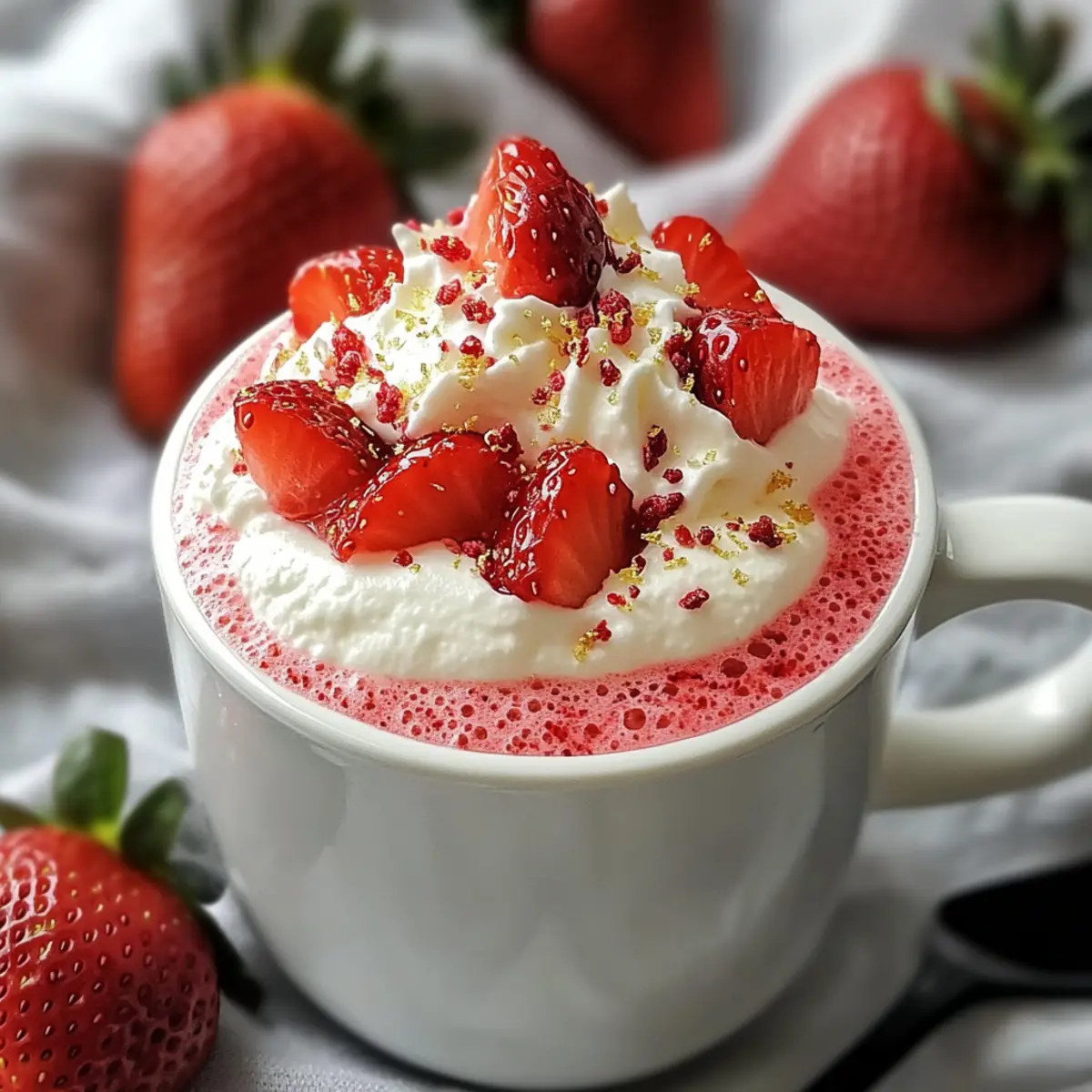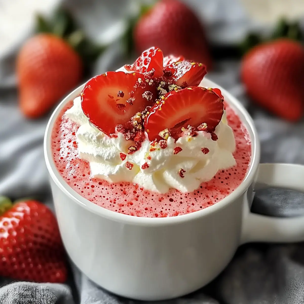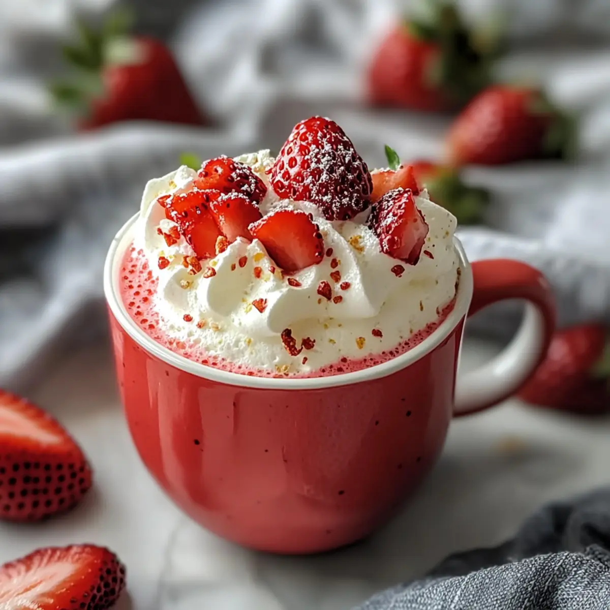 As I stood in my kitchen, the sweet aroma of strawberries filled the air, instantly transporting me back to lazy summer afternoons spent at family picnics. That’s when the idea for this Strawberry Mug Cake struck me—a quick dessert that captures all that nostalgic goodness in just four minutes! Perfectly tailored for those of us with busy lives, this single-serving delight is not only customizable to fit any craving but also provides a fail-proof way to indulge without the guilt. Whether you prefer it gluten-free, vegan, or with a sprinkle of chocolate chips, this mug cake offers something for everyone. So, are you ready to treat yourself to a warm, fluffy slice of joy? Let’s dive into this quick and scrumptious recipe! Why is this Mug Cake a Must-Try? Quick Preparation: In just four minutes, you can whip up a delightful dessert, making it an ideal choice for busy days. Personalized Flavors: With endless customization options, you can create a version that suits your taste—whether it’s vegan, gluten-free, or loaded with chocolate. Fresh Ingredients: Using real strawberries ensures a juicy, flavorful experience, reminiscent of carefree summers. Single Serving: Perfectly portioned for one, this dessert allows you to indulge without overdoing it—just like in our Chocolate Eclair Cake recipe! Effortlessly Festive: This simple sweet treat is not just a personal delight; it can bring a smile to guests as a quick party dessert. Dive into the world of this Strawberry Mug Cake; your taste buds will thank you! Strawberry Mug Cake Ingredients • The following ingredients will ensure your Strawberry Mug Cake is not just tasty but also a quick delight! For the Cake 6 tablespoons cake mix – Provides structure and fluffy texture; any flavor works, but vanilla or gluten-free are excellent choices. 2.5 tablespoons water – Hydrates the mix, creating moisture in the cake; adjust based on mix instructions if needed. 0.67 tablespoon vegetable oil – Adds richness and keeps the cake tender; applesauce can substitute for a lighter option. A few diced strawberries – Incorporates fresh flavor and juiciness; fresh strawberries enhance the taste, but thawed frozen ones will do too. For the Topping Whipped cream – Offers a creamy topping that balances sweetness; coconut cream works if you need a dairy-free version. Step‑by‑Step Instructions for Strawberry Mug Cake Step 1: Combine Ingredients In a microwave-safe mug, add 6 tablespoons of your chosen cake mix, 2.5 tablespoons of water, and 0.67 tablespoon of vegetable oil. Use a fork to whisk the mixture until it’s completely smooth, and there are no lumps remaining. This batter should have a thick but pourable consistency, inviting you to look forward to your delicious Strawberry Mug Cake. Step 2: Add Fresh Strawberries Gently fold in a few diced strawberries to the batter, ensuring an even distribution throughout. This step is key for incorporating that wonderful fruity flavor which makes your mug cake special. The strawberries will not only add sweetness but also contribute to the cake’s moist texture, yielding a delightful bite every time. Step 3: Microwave the Mug Cake Place the filled mug in the microwave and cook on high for 1 minute and 30 seconds. Keep an eye on the cake as it cooks; it should rise and become puffy, indicating it’s done. If it appears slightly shiny in the center, that’s a sign it’s perfectly moist. Be mindful of microwave variations and adjust the time accordingly to prevent overcooking. Step 4: Cool Before Serving Allow the Strawberry Mug Cake to cool in the mug for about 1 minute after microwaving. This waiting period is crucial to avoid burns and to let the cake retain its fluffy, airy texture. As you wait, you can prepare your favorite topping, adding excitement to the experience. Step 5: Top with Whipped Cream Once cooled, generously top your Strawberry Mug Cake with whipped cream. The creamy layer adds a luxurious touch that complements the cake beautifully. If you like, finish it off with an optional fresh strawberry on top for a pop of color and delightful garnish, transforming your quick dessert into a visually appealing treat. How to Store and Freeze Strawberry Mug Cake Fridge: Keep any leftover Strawberry Mug Cake covered in the refrigerator for up to 2 days. This will help maintain its moisture and freshness. Freezer: For longer storage, freeze the mug cake tightly wrapped in plastic wrap and placed in an airtight container for up to 1 month. Reheating: When you’re ready to enjoy your frozen mug cake, thaw it in the fridge overnight, then reheat in the microwave for about 30 seconds, checking for warmth. Enjoy Fresh: While best enjoyed fresh, storing properly ensures you can savor any leftover delights without sacrificing flavor. Strawberry Mug Cake Variations Feel free to get creative and customize your Strawberry Mug Cake to make it even more delightful! Gluten-Free: Use a gluten-free cake mix to cater to dietary needs while keeping the deliciousness intact. Vegan Option: Swap vegetable oil for applesauce and choose a plant-based cake mix to whip up a vegan treat. Chocolate Lover: Add cocoa powder or chocolate chips for a rich, decadent twist that chocolate fans will adore. Nutty Twist: Fold in crushed nuts for that satisfying crunch, adding an interesting textural contrast to your cake. Cinnamon Spice: Sprinkle in a dash of cinnamon to infuse warmth and cozy flavors reminiscent of fall. Berry Mix-Up: Feel adventurous and replace strawberries with raspberries or blueberries for a refreshing alternative. Caramel Drizzle: Elevate your mug cake by adding a drizzle of caramel on top for an indulgent treat that feels fancy. Tropical Spin: Mix in shredded coconut for a delightful tropical flair that will transport you straight to the beach! Don’t forget, each variation can lead you to a whole new dessert experience, just like how pairing this mug cake with a scoop of vanilla ice cream can elev
