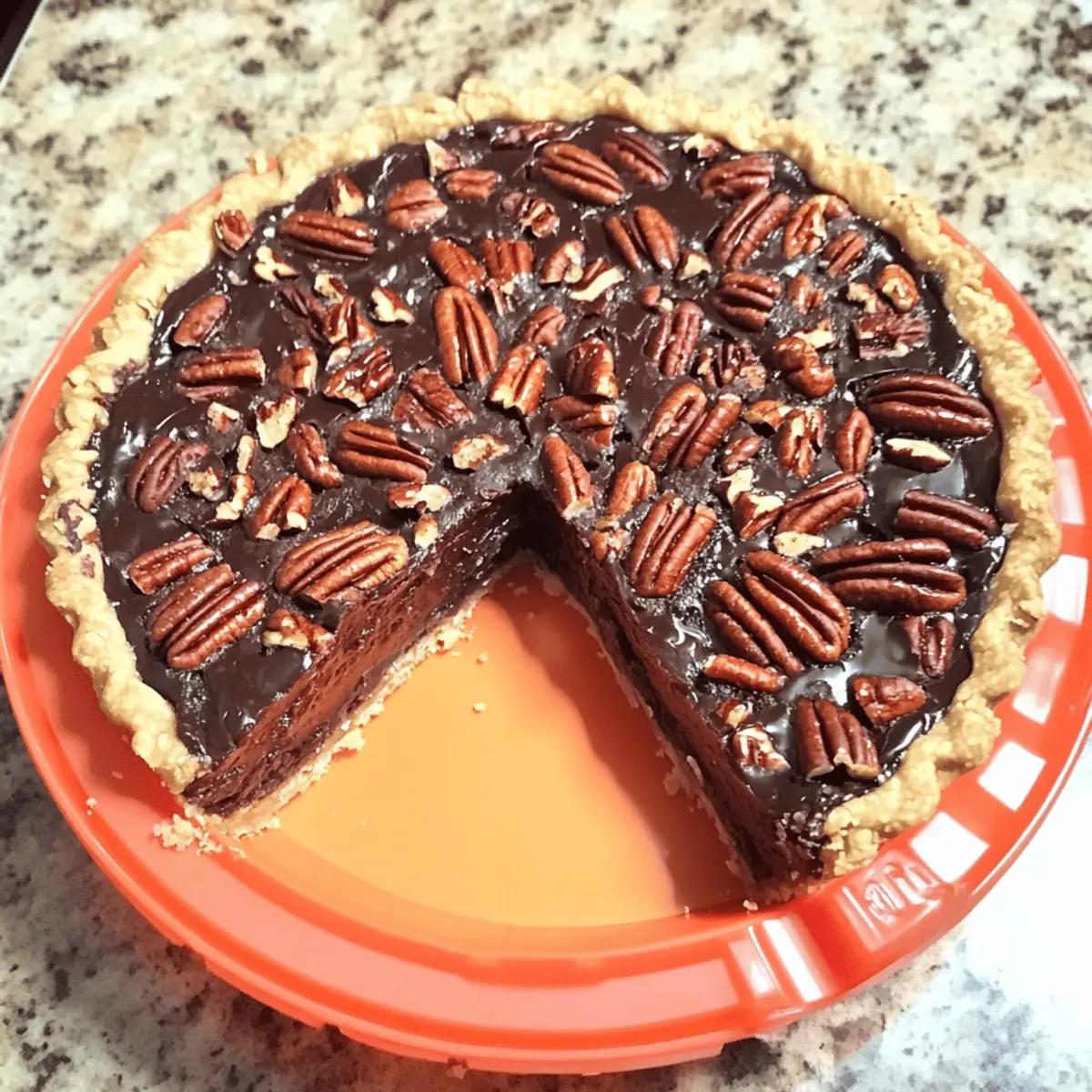 As I stood in my kitchen, the rich aroma of melting chocolate danced through the air, reminding me of family gatherings in Texas. The star of the show? A Texas Chocolate Pecan Pie, where the lusciousness of chocolate meets the satisfying crunch of pecans. Not only is this dessert a true crowd-pleaser, but it’s also a breeze to whip up, freeing you from hours of baking fuss. Whether you’re hosting a holiday dinner or craving a cozy night in, this pie promises to deliver comfort and joy in every slice. Plus, with options for gluten-free and vegan adaptations, everyone can share in the deliciousness. Are you ready to savor a slice of nostalgia and warmth in your own home? Why Is This Texas Chocolate Pecan Pie Special? Irresistible Flavor: The stunning combination of rich chocolate and crunchy pecans creates a dessert experience that is simply unforgettable. Quick and Easy: With just a few steps, you can create this delightful pie, allowing more time to enjoy with friends and family, like you would with Chocolate Chip Cookies. Versatile Options: Whether you’re going gluten-free or looking for a vegan twist, this recipe is adaptable to fit any dietary preference without sacrificing taste. Crowd-Pleaser: It’s the ultimate dessert for gatherings, sure to impress everyone at the table and keep them coming back for seconds. Make Ahead: Perfect for busy days, this pie can be prepped in advance, making your event stress-free and delicious, similar to the convenience of No-Bake Chocolate Eclair desserts! This Texas Chocolate Pecan Pie promises not just a treat, but a joyful experience, inviting nostalgia and warmth into your home! Texas Chocolate Pecan Pie Ingredients For the Pie Crust • All-Purpose Flour – Provides structure for the crust; substitute with gluten-free flour for a gluten-free variant. • Salt – Enhances flavor in both crust and filling; no substitution necessary. • Unsalted Butter – Creates a flaky crust; swap with margarine for a dairy-free option. • Beaten Egg – Binds ingredients in the crust; a flax egg works well as a vegan substitute. • Vinegar – Adds tenderness to the crust; lemon juice can be a substitute if needed. • Cold Water – Ensures the dough’s proper consistency. For the Filling • Brown Sugar – Adds sweetness and moisture to the filling; light brown sugar can be used interchangeably. • Chocolate Chips – Offers rich chocolate flavor; opt for dark chocolate for a more intense taste. • Large Eggs – Sets the filling; aquafaba can replace them for a vegan preparation. • Dark Corn Syrup – Sweetens the filling; maple syrup can be a lighter alternative. • Vanilla Extract – Enhances flavor quality; always choose pure for the best results. • Salt – Essential for deepening the flavor in the filling. • Chopped Pecans – Provides crunch and flavor; walnuts can be used for a different texture. • Whole Pecans – Optional for decoration and added visual appeal. With this Texas Chocolate Pecan Pie ingredients list, we’re one step closer to sharing a slice of warmth and comfort! Step‑by‑Step Instructions for Texas Chocolate Pecan Pie Step 1: Prepare the Pie Crust In a food processor, combine 1 ½ cups of all-purpose flour and ½ teaspoon of salt, pulsing until well mixed. Add ½ cup of cold, unsalted butter and blend until the mixture resembles coarse crumbs. In a small bowl, whisk together 1 beaten egg, 1 tablespoon of vinegar, and 2 to 4 tablespoons of cold water. Gradually mix the wet ingredients into the flour mixture until a dough forms. Knead gently, wrap in wax paper, and refrigerate for 20 minutes or freeze overnight for best results. Step 2: Roll Dough Flour a clean work surface and roll out the chilled pie dough to about ¼ inch thickness. Carefully transfer the dough to a 9-inch pie pan, pressing it gently into the edges. Trim any excess dough hanging over the edges and crimp them for a decorative finish. Place the pie crust in the fridge to keep cold while you prep the filling; this will help it remain flaky during baking. Step 3: Prep Filling Preheat your oven to 350°F (175°C). In a saucepan over low heat, combine 1 cup of brown sugar, ½ cup of unsalted butter, and 1 cup of chocolate chips, stirring until melted and smooth. Remove from heat and let it cool slightly. In a separate bowl, whisk together 3 large eggs, 1 cup of dark corn syrup, 1 teaspoon of vanilla extract, and a pinch of salt, then incorporate the cooled chocolate mixture and fold in 1 ½ cups of chopped pecans. Step 4: Assemble and Bake Pour the rich chocolate pecan filling into the prepared pie crust, ensuring an even distribution. For an extra touch, decorate the top with whole pecans. To prevent the edges from browning too quickly, cover them with strips of aluminum foil. Bake in your preheated oven for 45 minutes; then, remove the foil and bake for an additional 10-15 minutes until the filling is set, which you can check by gently shaking the pie. Step 5: Cool and Serve Once baked, remove the Texas Chocolate Pecan Pie from the oven and let it cool on a wire rack for at least 10 minutes. This cooling time helps the filling firm up for easier slicing. Serve warm, accompanied by a generous scoop of vanilla ice cream or a dollop of whipped cream, and enjoy the delightful comfort this pie brings to your gathering! Make Ahead Options These Texas Chocolate Pecan Pies are perfect for busy home cooks seeking a time-saving dessert solution! You can prepare the pie crust up to 24 hours in advance by following the initial steps and refrigerating it wrapped tightly in plastic wrap. The filling can be made ahead as well; simply prepare it and refrigerate for up to 3 days. To maintain the pie’s delicious quality, ensure the crust is cooled before adding the filling, and always cover it to avoid absorbing fridge odors. When ready to bake, pour the filling into the prepped crust and bake as directed. This way, you’ll enjoy a crowd-pleasing dessert 