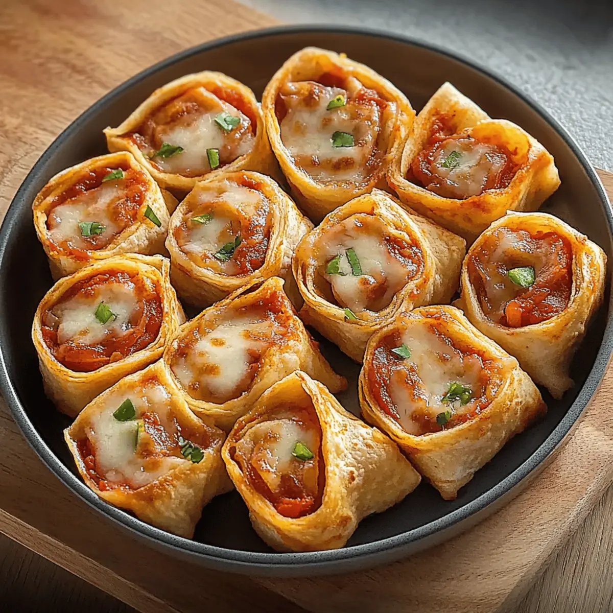 “Did you hear about the latest pizza trend?” It was a casual conversation, but it ignited a flame of curiosity in me. Enter Tortilla Pizza Rolls—a delightful spin on traditional pizza that’s not only scrumptious but also incredibly versatile. Whether you’re a busy parent needing quick meal ideas or a passionate chef looking to impress friends at gatherings, these quick and customizable appetizers bring the joy of pizza into a fun, bite-sized format. You can choose your toppings, make them gluten-free, or turn them into a kid-friendly delight that even the pickiest eaters will love. Plus, they’re a breeze to clean up after! Ready to roll up your sleeves and create something delightful? Let’s dive into this delicious journey of flavors together! Why Are Tortilla Pizza Rolls So Irresistible? Crispy Perfection: The golden, crunchy exterior provides a delightful contrast to the gooey, melted cheese inside. Endless Customization: Whether you prefer classic pepperoni or unique toppings such as pesto and sun-dried tomatoes, the possibilities are endless! Quick and Easy: Prepared in just minutes, these rolls make for a speedy meal solution—perfect for busy days or spontaneous gatherings. Kid-Approved Fun: Kids love the bite-sized portions and you can sneak in veggies, making it an exciting way for picky eaters to enjoy more nutritious ingredients. Make-Ahead Friendly: You can easily assemble these rolls in advance and bake them fresh when hunger strikes! Why not serve them alongside a delicious dip, similar to what you’d find with a Lemon Ricotta Pizza for an extra flavor boost? These Tortilla Pizza Rolls are not just a meal; they’re a canvas brimming with flavor and fun! Tortilla Pizza Rolls Ingredients For the Rolls Flour Tortillas – These form the crispy base for your rolls; feel free to use gluten-free tortillas for a suitable alternative. Pizza Sauce – This adds moisture and flavor; you can substitute marinara sauce for a different taste. Shredded Mozzarella Cheese – The gooey staple that brings everything together; swap it with dairy-free cheese for a vegan option. For the Fillings Pepperoni Slices or Diced Cooked Ham – This is your primary protein; try any deli meats or opt for a vegetarian mix if desired. Chopped Bell Peppers – These offer freshness and crunch; any colorful varieties will work beautifully, or sautéed veggies for a unique flavor. Dried Oregano – A seasoning that enhances the flavor; fresh basil can freshen it up with a delightful twist. For Brushing Olive Oil – A light brushing promotes that golden crispiness; cooking spray can also work if you’re looking for a lighter option. Optional Toppings Grated Parmesan – Adds a rich finish; layer it on for an extra touch of decadence. Red Pepper Flakes – For those who like a little kick; use them to spice up your rolls. Fresh Basil – Perfect for garnishing and adding a pop of color and flavor just before serving. With these ingredients, you’re well on your way to crafting delicious Tortilla Pizza Rolls that everyone will love! Step‑by‑Step Instructions for Tortilla Pizza Rolls Step 1: Preheat the Oven Begin by preheating your oven to 375°F (190°C). This temperature will ensure that your Tortilla Pizza Rolls bake evenly, achieving that satisfying golden brown exterior. While the oven heats up, line a baking sheet with parchment paper to prevent sticking, making cleanup a breeze. Step 2: Prepare the Tortillas Once the oven is ready, take your flour tortillas and lay them flat on a clean surface. Spread a thin, even layer of pizza sauce over each tortilla, leaving a small margin around the edges. This layer not only adds flavor but also keeps your rolls moist, so they don’t dry out during baking. Step 3: Add the Cheese and Toppings Next, sprinkle shredded mozzarella cheese evenly over the sauce, making sure to cover all areas for that delicious, gooey melt. Then, layer your choice of desired toppings, such as pepperoni slices, diced ham, and chopped bell peppers. Don’t be afraid to get creative with your ingredients to personalize your Tortilla Pizza Rolls! Step 4: Roll It Up Now it’s time to roll! Starting at one edge, tightly roll each tortilla into a log shape, ensuring fillings stay neatly inside. Aim for a snug roll to help the pizza rolls hold their shape during baking. After rolling, slice each log into 1-inch thick pieces to create bite-sized rolls that are perfect for snacking. Step 5: Arrange on the Baking Sheet Place the slices cut-side up onto your prepared baking sheet, giving them some space to expand as they bake. This positioning allows the heat to circulate around each roll, ensuring that they cook evenly. Step 6: Brush with Olive Oil For a crispy finish, lightly brush the tops of the Tortilla Pizza Rolls with olive oil. This step gives them a beautiful golden hue while enhancing the overall flavor. If you prefer, you can also use cooking spray to achieve a similar effect. Step 7: Bake to Perfection Transfer the baking sheet to the preheated oven and bake the Tortilla Pizza Rolls for 10-12 minutes. Keep an eye on them; you’re looking for a golden brown color and bubbling cheese as visual cues of doneness. The aroma will fill your kitchen, making it hard to wait! Step 8: Serve and Enjoy! Once baked, remove the Tortilla Pizza Rolls from the oven and let them cool slightly on the baking sheet. They are best served warm, garnished with optional toppings like grated parmesan or fresh basil. Enjoy these rolls with your favorite dipping sauce for an additional flavor boost! How to Store and Freeze Tortilla Pizza Rolls Fridge: Store your leftover Tortilla Pizza Rolls in an airtight container in the fridge for up to 3 days. Allow them to cool completely before sealing to avoid condensation. Freezer: To freeze, place the cooled rolls in a single layer on a baking sheet until firm, then transfer to a freezer bag. They’ll keep well for up to 2 months. Reheating: Reheat 