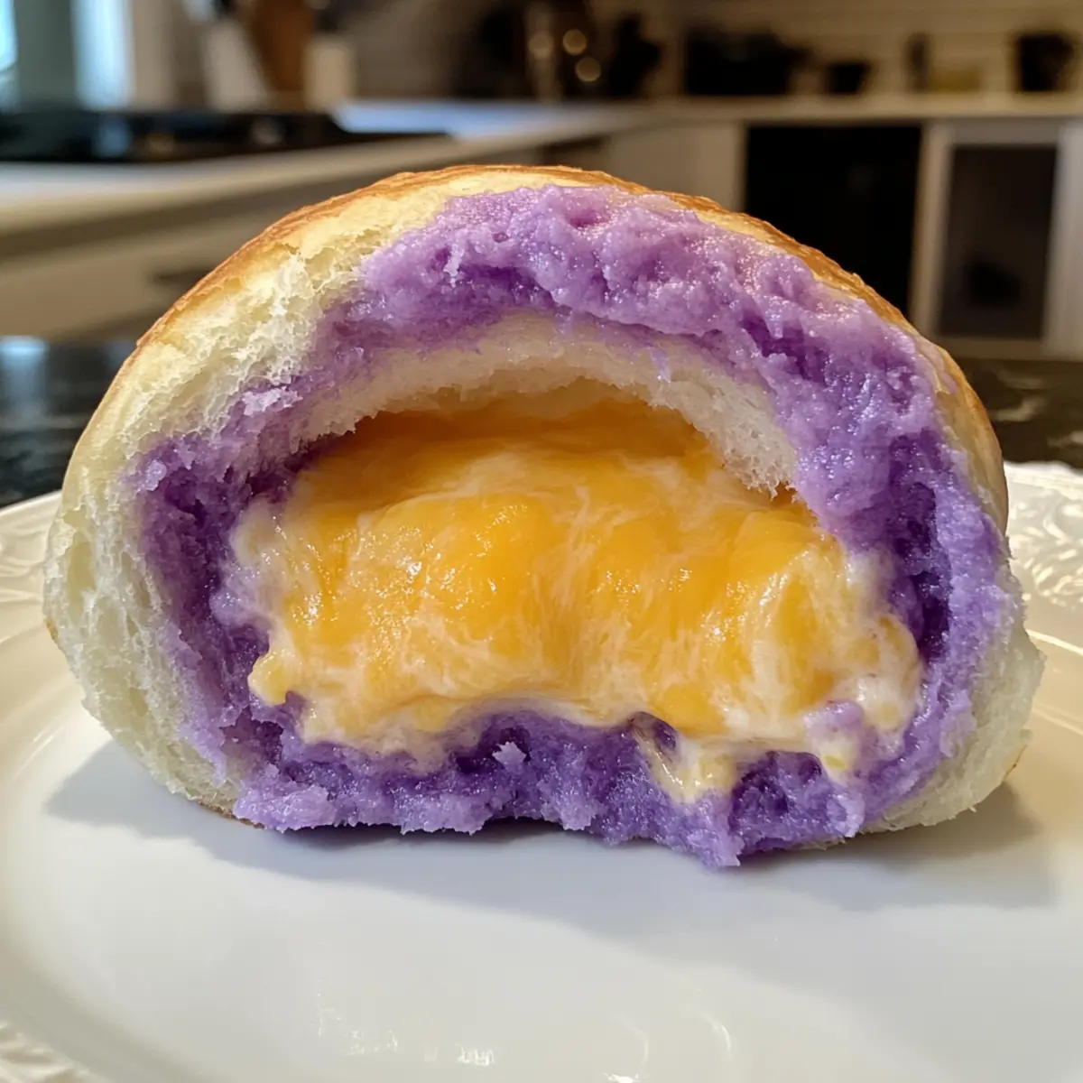Cheesy Surprise: A creamy, melted cheese center adds a delightful contrast to the sweet, fragrant ube, making every roll a treat!