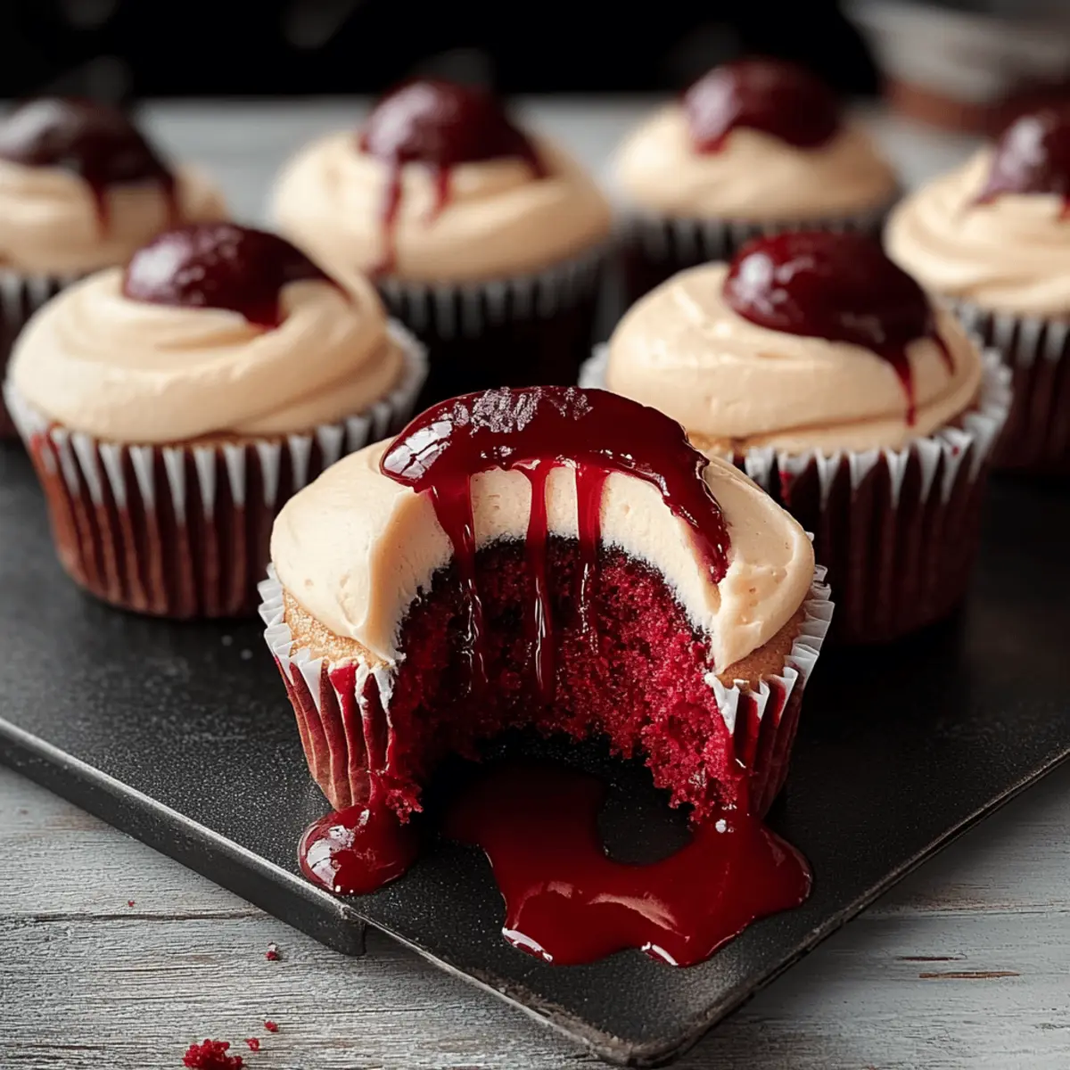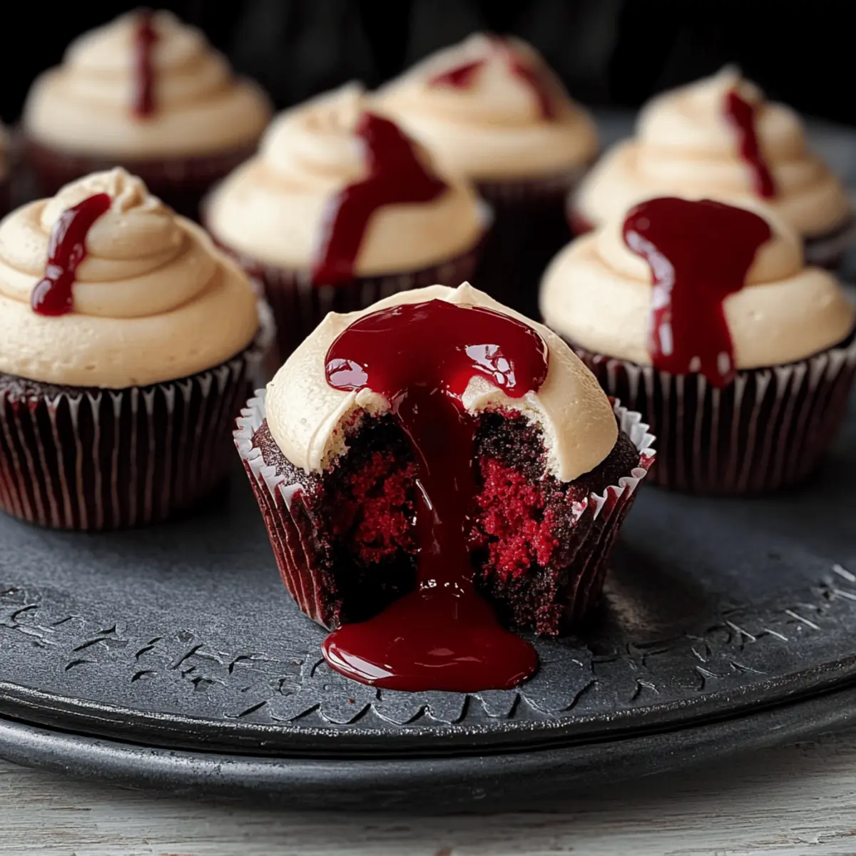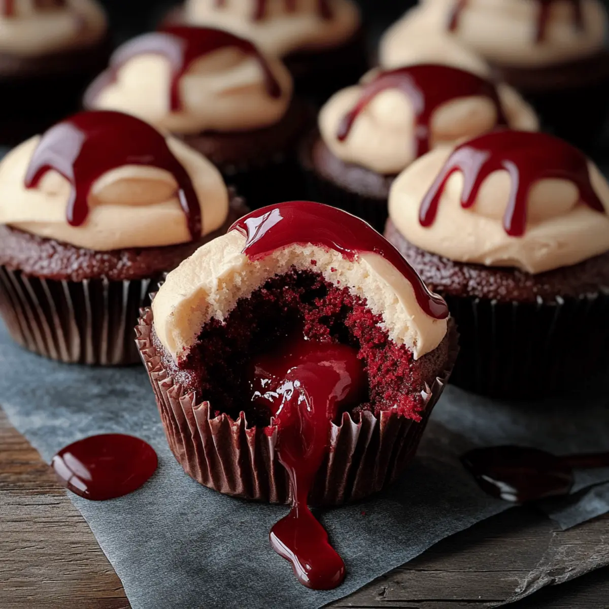 As I placed the last decorated cupcake on the platter, a smile crept across my face—these Vampire Bite Halloween Cupcakes were ready to steal the show! With a rich velvet base and a gooey red filling that spills out like a secret when bitten, they’re not just treats; they’re an experience designed for those looking to ditch fast food for something truly festive. The pale buttercream frosting mimics a ghostly skin tone, making these cupcakes a hauntingly delightful addition to your Halloween celebrations. Not only are they a crowd-pleaser, but they also make for an impressive homemade project that could have everyone whispering about your baking skills. Are you ready to embrace the spooky season and whip up these devilishly delicious cupcakes? Let’s dive into the recipe! Why Are These Cupcakes So Special? Ghoulishly Creative: These Vampire Bite Halloween Cupcakes are not just treats; they’re a show-stopping centerpiece for your Halloween bash! Decadent Filling: The creamy red filling that oozes when bitten adds a fun twist that will amaze your guests. Festive Presentation: With their ghostly buttercream and decorative candy fangs, they are sure to catch everyone’s eye and spark conversations. Easy to Make: Don’t worry if you’re not a pro in the kitchen—this straightforward recipe makes it easy to impress your friends and family. Versatile Options: Want to switch it up? Consider using different fillings like cream cheese or jams for a personalized spin! Perfect for Sharing: These cupcakes are ideal for parties, allowing you to spread the spooky joy and make your Halloween celebrations even sweeter. Make your Halloween festive with these cupcakes that are sure to be a hit, or try them alongside our Mcgriddle Bites Breakfast for a fun morning treat! Vampire Bite Halloween Cupcakes Ingredients For the Cupcake Base • All-purpose flour – Provides structure; swap with gluten-free flour for a GF option. • Granulated sugar – Adds sweetness and moisture; use brown sugar for a richer flavor. • Unsalted butter (softened) – Contributes richness; substitute with margarine if needed. • Large eggs – Binds ingredients together and adds moisture; try flax eggs for a vegan version. • Buttermilk – Delivers tang and tenderness; mix milk with vinegar/lemon juice as a substitute. • Cocoa powder – Enhances the chocolate flavor; opt for Dutch-processed cocoa for a unique taste. • Red food coloring (gel-based) – Gives the vibrant hue; beet juice works as a natural substitute. • Vanilla extract – Adds flavor depth; replace with almond extract for a different twist. • Baking soda & white vinegar – React together for leavening; don’t substitute unless using baking powder. • Salt – Essential for balancing sweetness; enhances overall flavor. For the Cream Filling • Red velvet cake crumbs – Adds texture and visual intrigue; not easily substituted. • Sweetened condensed milk – Provides creaminess for the filling; consider coconut cream for a dairy-free version. For the Frosting • Powdered sugar – Used for a smooth frosting texture; brown sugar can add caramel notes. • Heavy cream/milk – Adjusts the frosting’s consistency; swap with plant-based milk for a dairy-free option. • Ivory or peach food coloring – Achieves the desired skin tone for frosting; adjust as necessary. For Decoration • Candy fangs/red gelatin – Creates a spooky bite effect; optional for that creepy touch. • Red syrup/edible red gel – Mimics ‘blood’ for extra flair; raspberry or strawberry puree can be natural alternatives. • Straws – Decorative elements; consider edible straws like rolled fruit snacks for safety. Feel free to gather these ingredients and prepare to amaze your guests with these delightful Vampire Bite Halloween Cupcakes! Step‑by‑Step Instructions for Vampire Bite Halloween Cupcakes Step 1: Preheat and Prepare Begin by preheating your oven to 350°F (175°C). Line a muffin tin with cupcake liners to ensure easy removal after baking. This will house your Vampire Bite Halloween Cupcakes, so make sure they’re evenly placed to promote uniform baking. Step 2: Mix the Dry Ingredients In a large mixing bowl, whisk together 2 cups of all-purpose flour, 1½ cups of granulated sugar, ½ cup of cocoa powder, 1 teaspoon of baking soda, and 1 teaspoon of salt. Blend these dry ingredients until well combined and set aside, allowing them to form the hearty base of your cupcakes. Step 3: Whisk the Wet Ingredients In another mixing bowl, cream together ½ cup of softened unsalted butter and 2 large eggs until the mixture is light and fluffy. Then, add 1 cup of buttermilk, 2 tablespoons of red food coloring, and 2 teaspoons of vanilla extract. Whisk this blend until it’s smooth, rich, and vibrant, creating a festive wet mix for your cupcakes. Step 4: Combine Wet and Dry Ingredients Gradually pour the wet mixture into the bowl with the dry ingredients. Mix on low speed until just combined—about 30 seconds. Be careful not to overmix; you want the batter to be slightly lumpy. The result should be a bright, velvety batter that smells deliciously rich. Step 5: Bake the Cupcakes Using a scoop or spoon, fill each cupcake liner about ⅔ full with the batter. Place the muffin tin in the preheated oven and bake for 18-20 minutes, or until a toothpick inserted in the center comes out clean. The tops should be slightly domed and spring back when gently pressed. Step 6: Cool and Hollow Out Once baked, remove the cupcakes from the oven and let them cool in the tin for about 10 minutes. Then, transfer them to a wire rack to cool completely. Once cooled, use a small knife or melon baller to hollow out the center of each cupcake, preparing them for the spooky filling. Step 7: Prepare the Cream Filling In a separate bowl, mix together 1 cup of sweetened condensed milk with a tablespoon of additional red food coloring to create the gooey filling. Stir until the mixtur